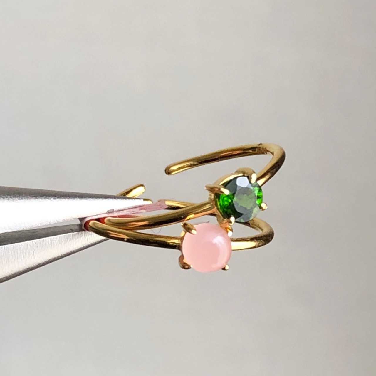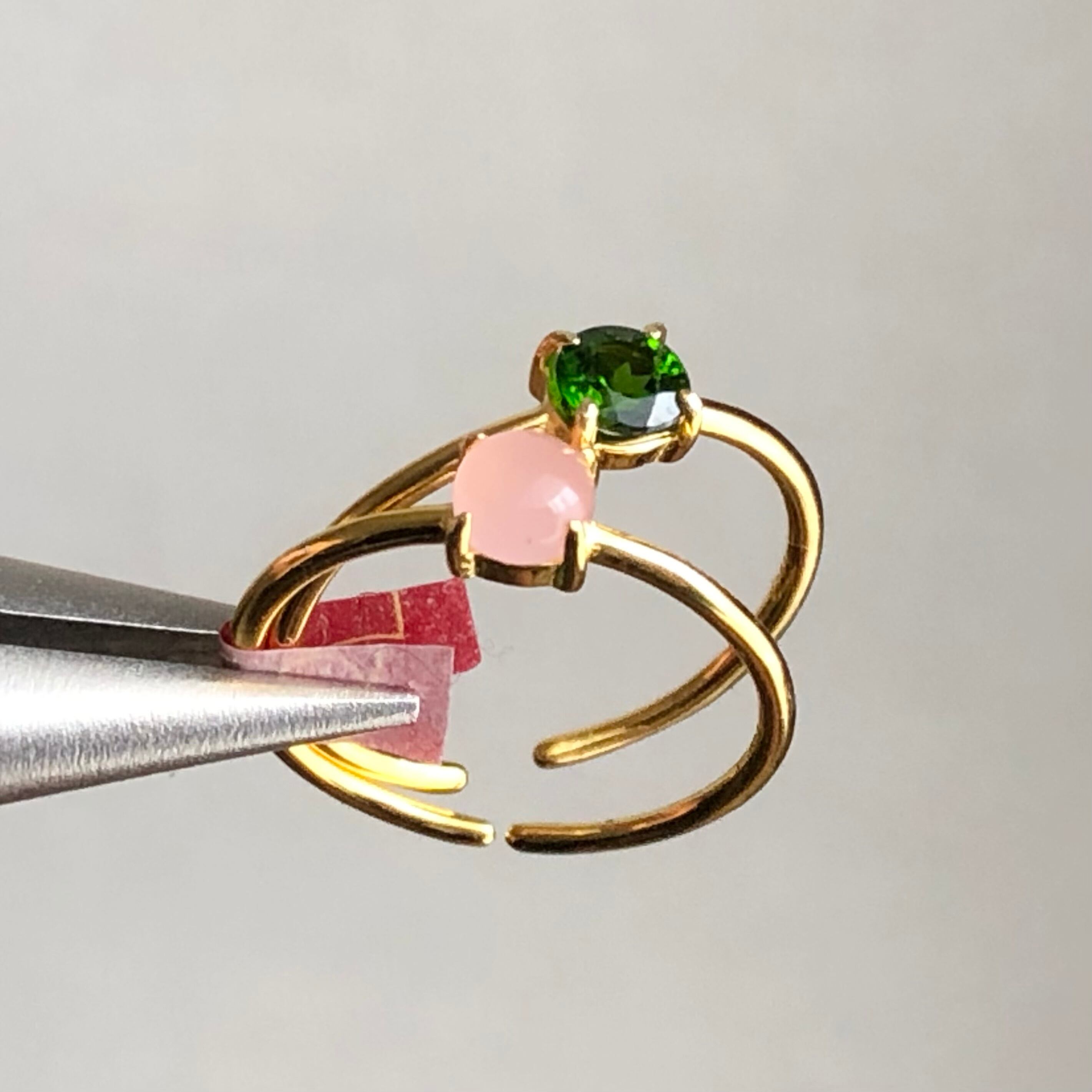 グァバクォーツとクロムダイオプサイドのリングセットです。