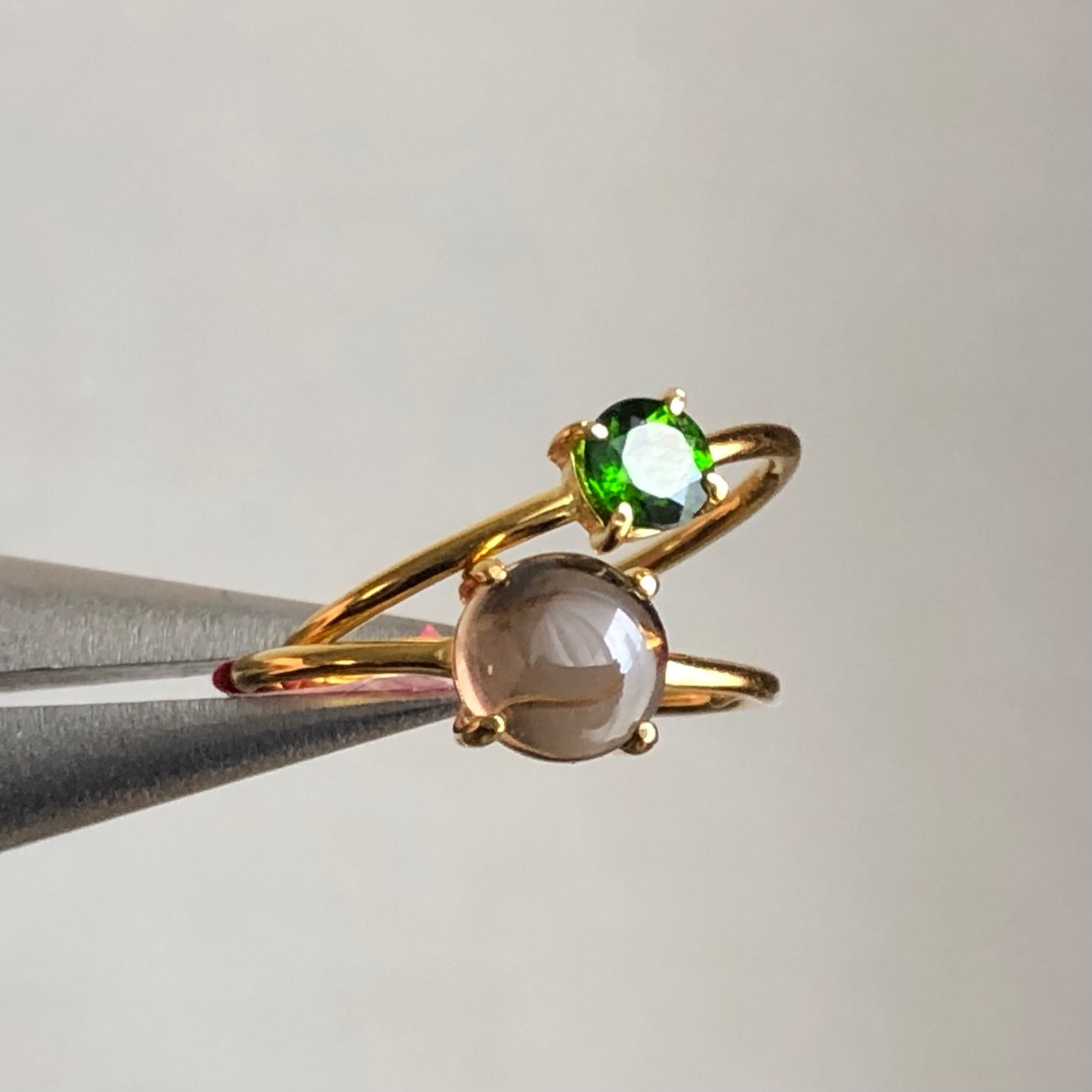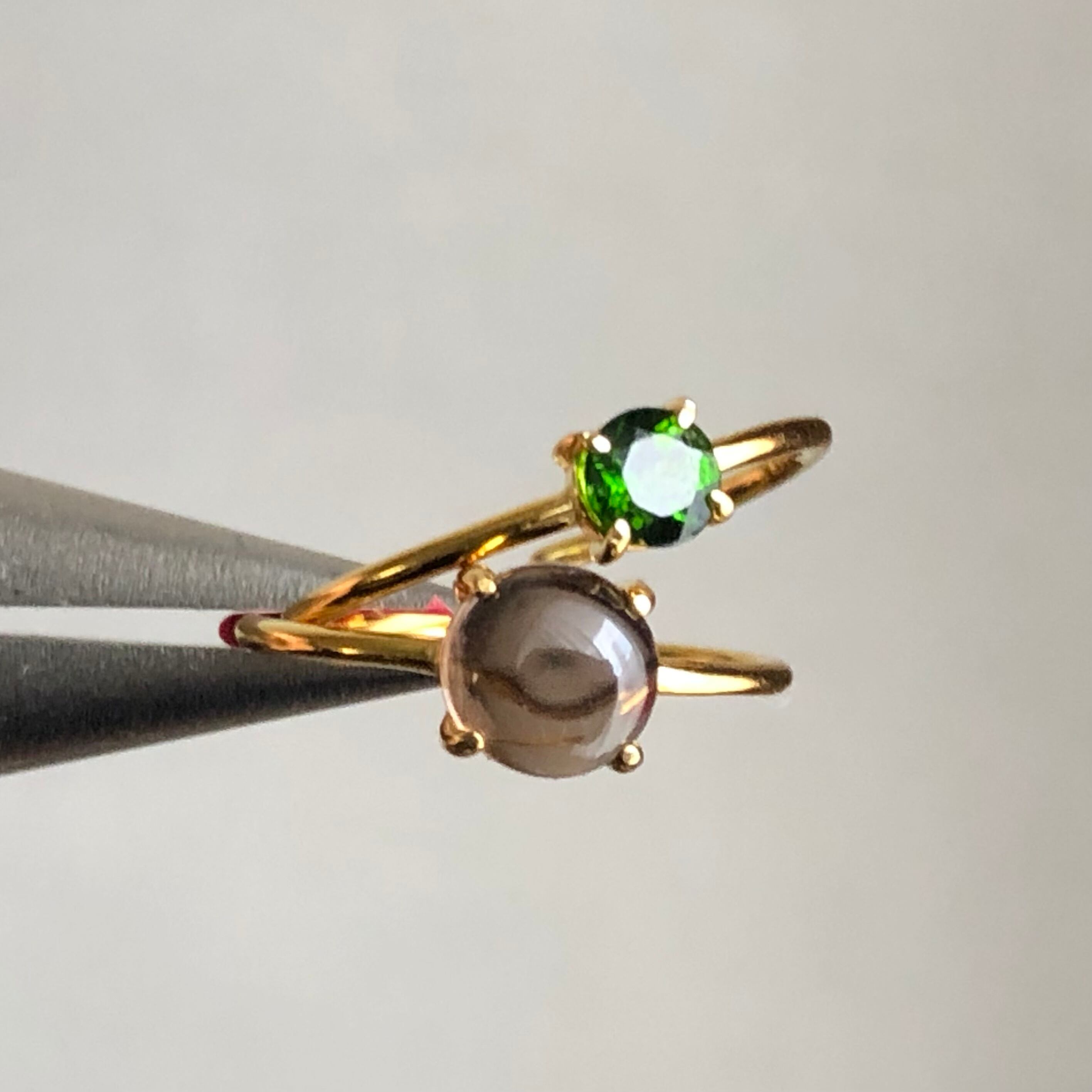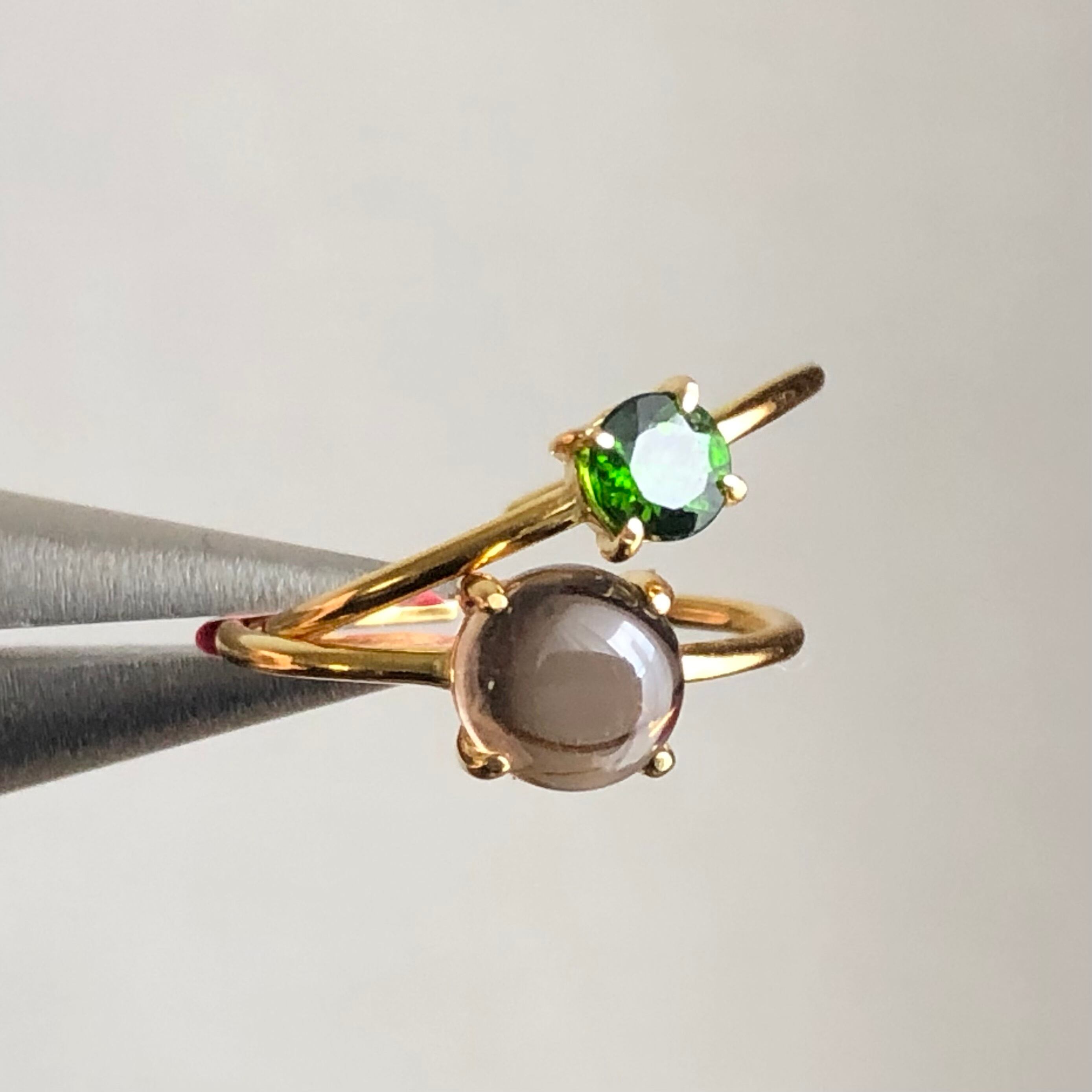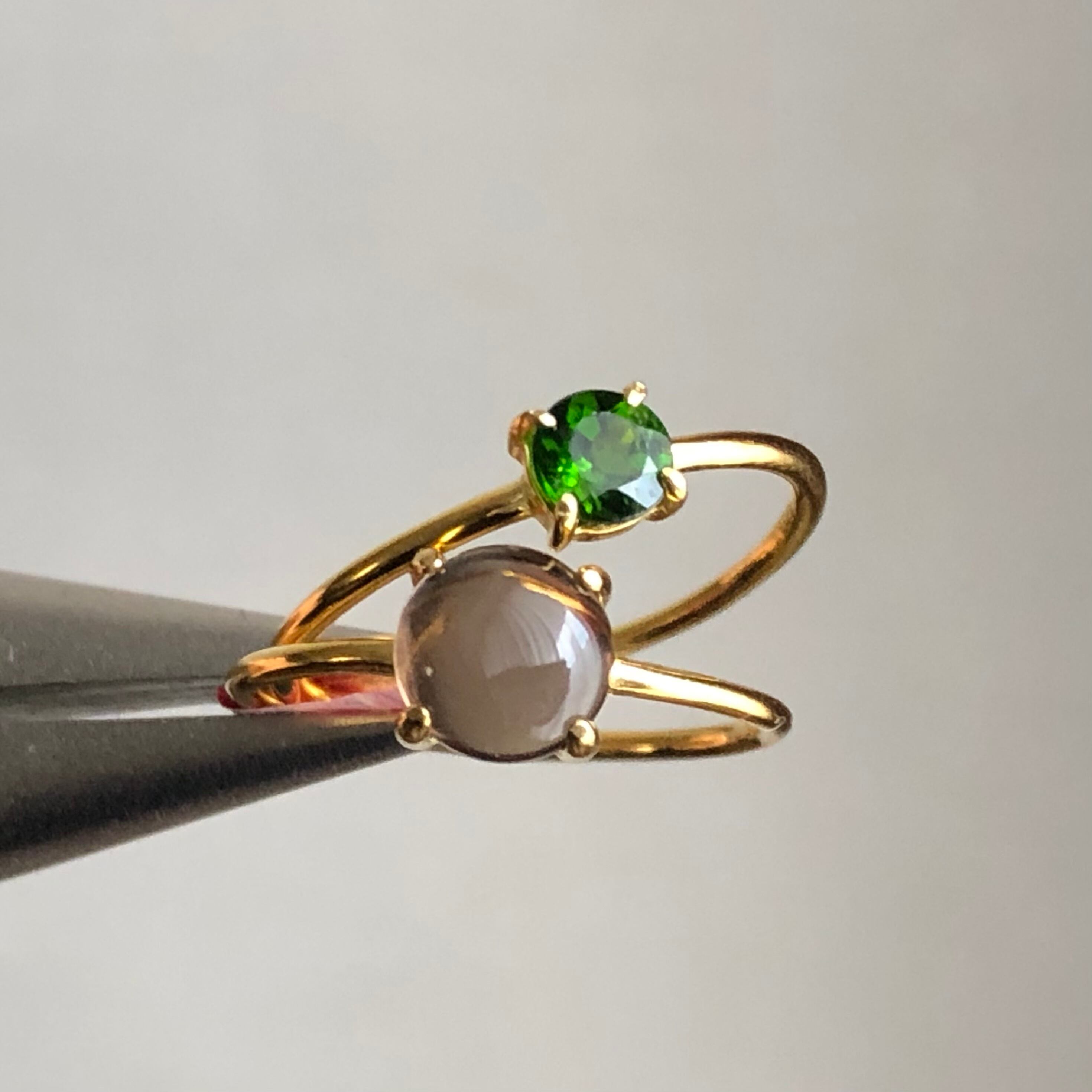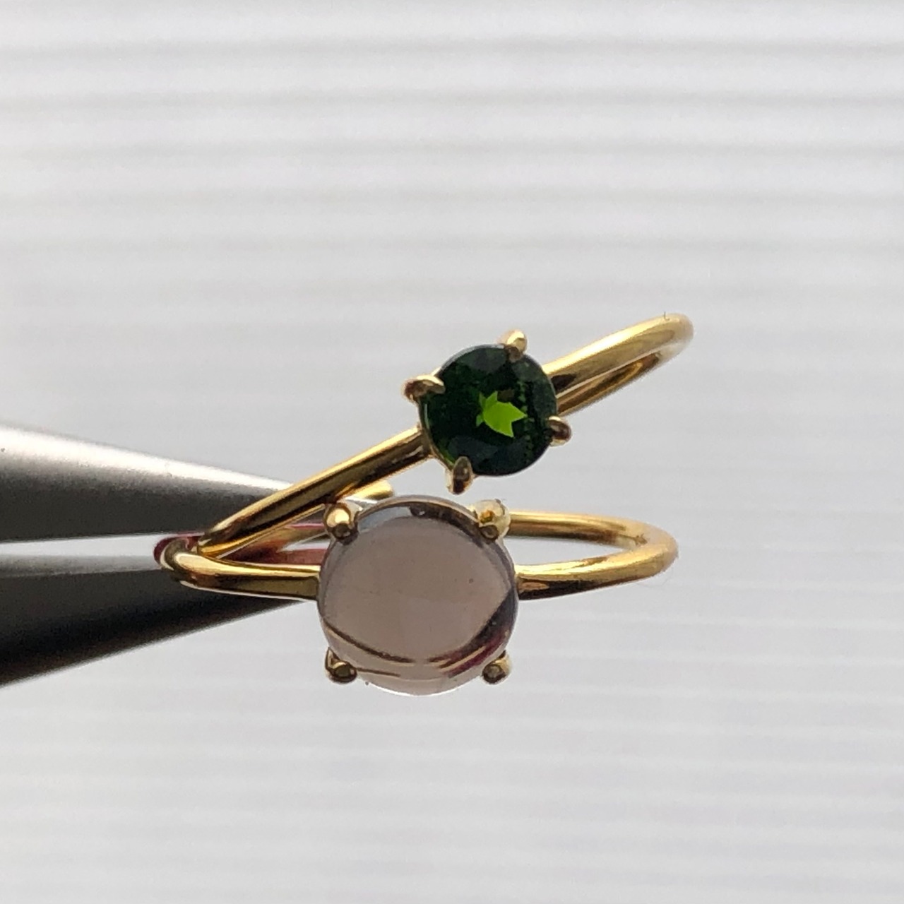 スモーキークォーツとクロムダイオプサイドのリングセットです。