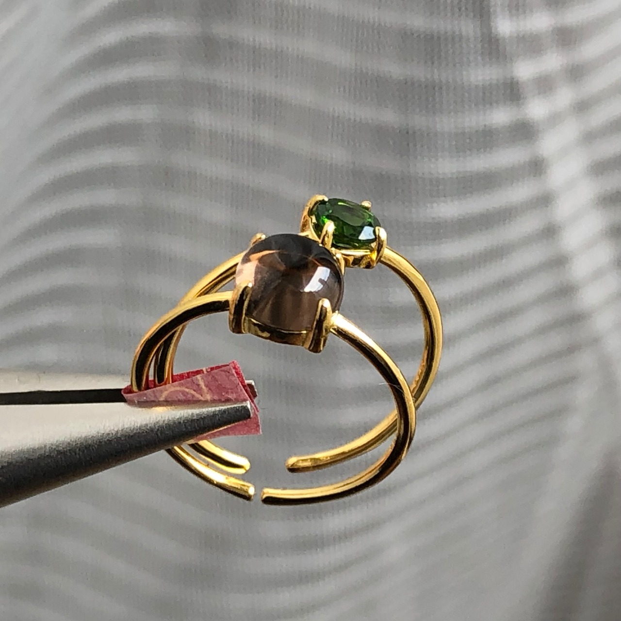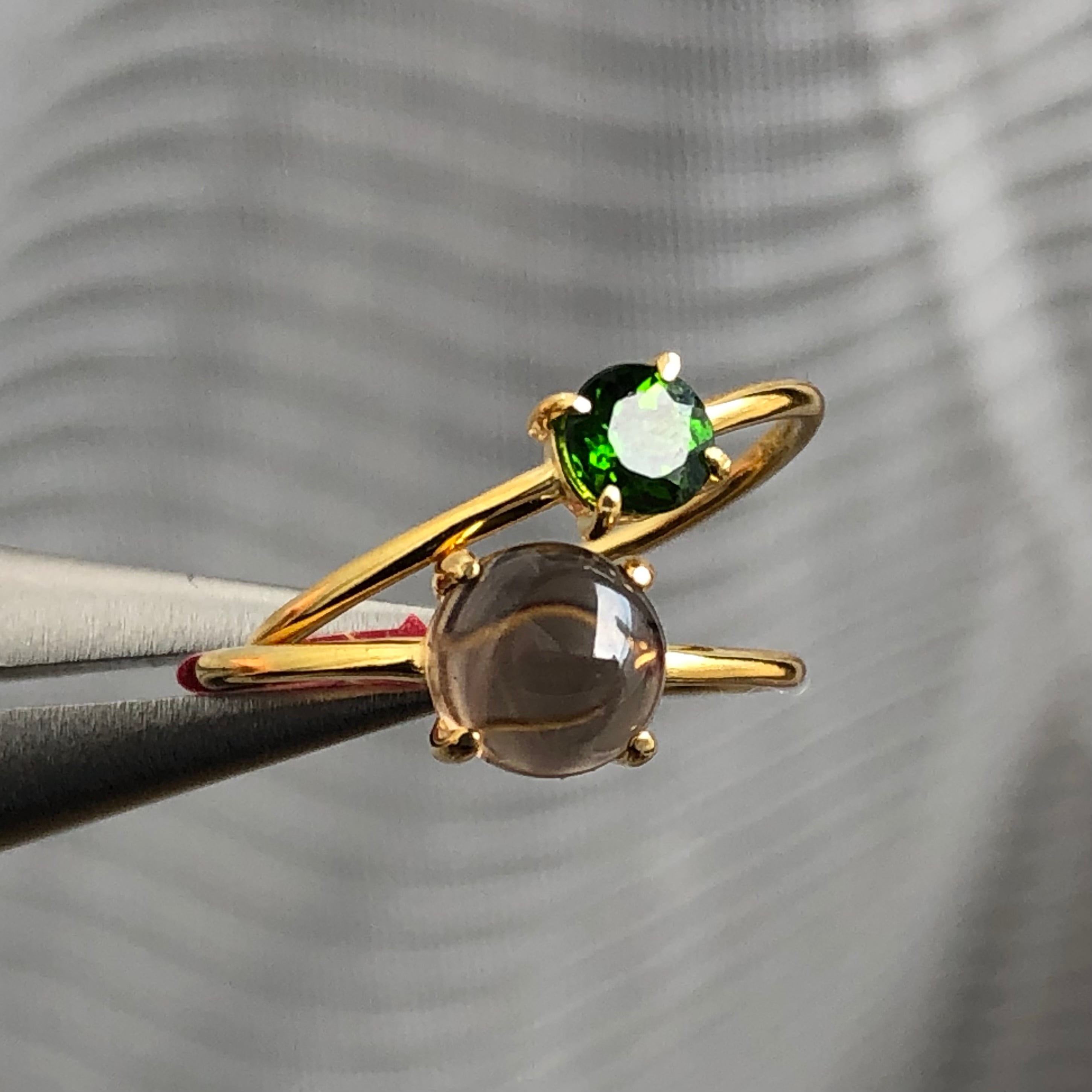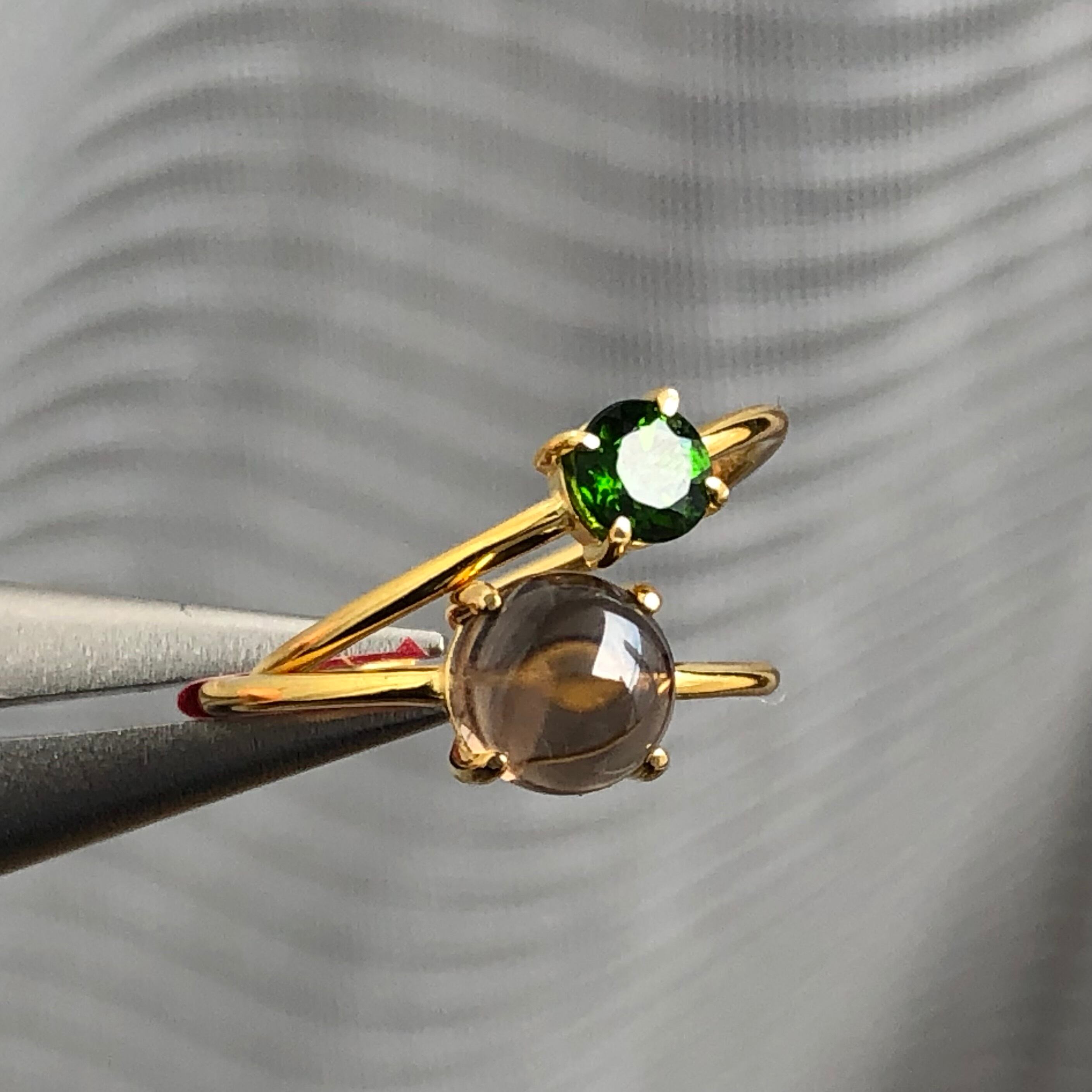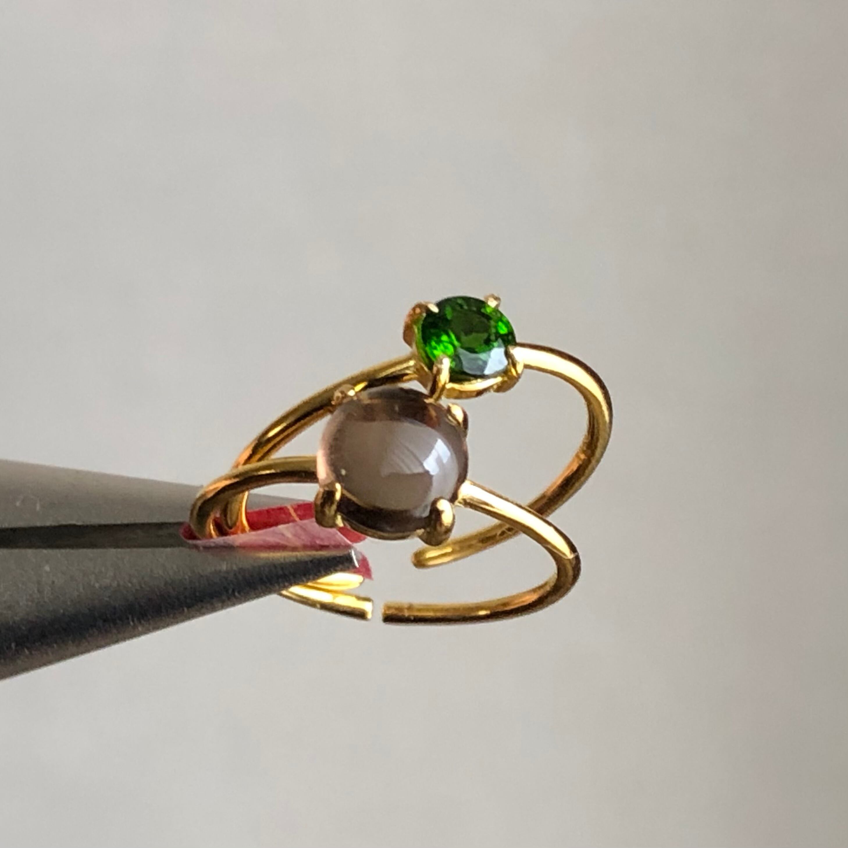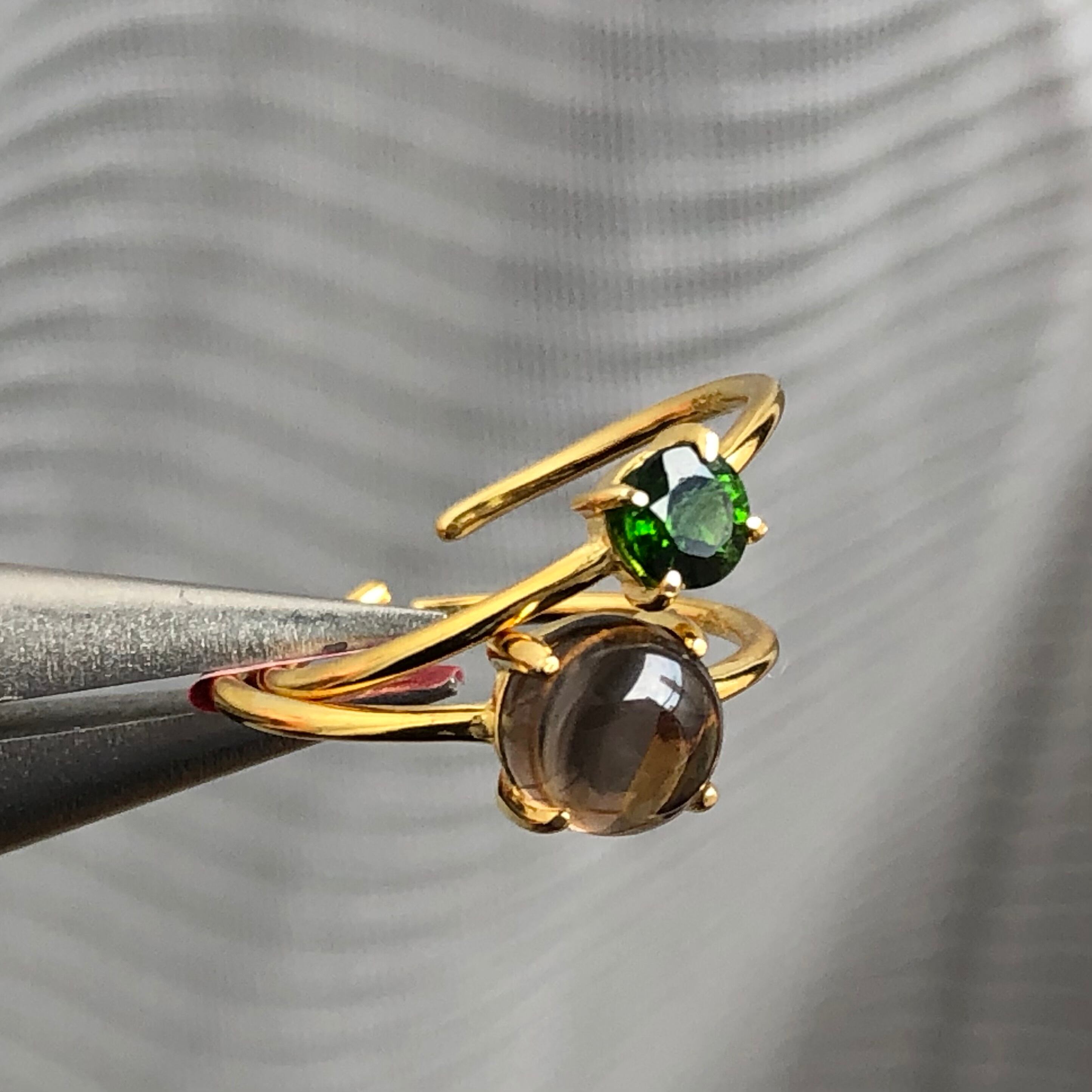 スモーキークォーツとクロムダイオプサイドのリングセットです。