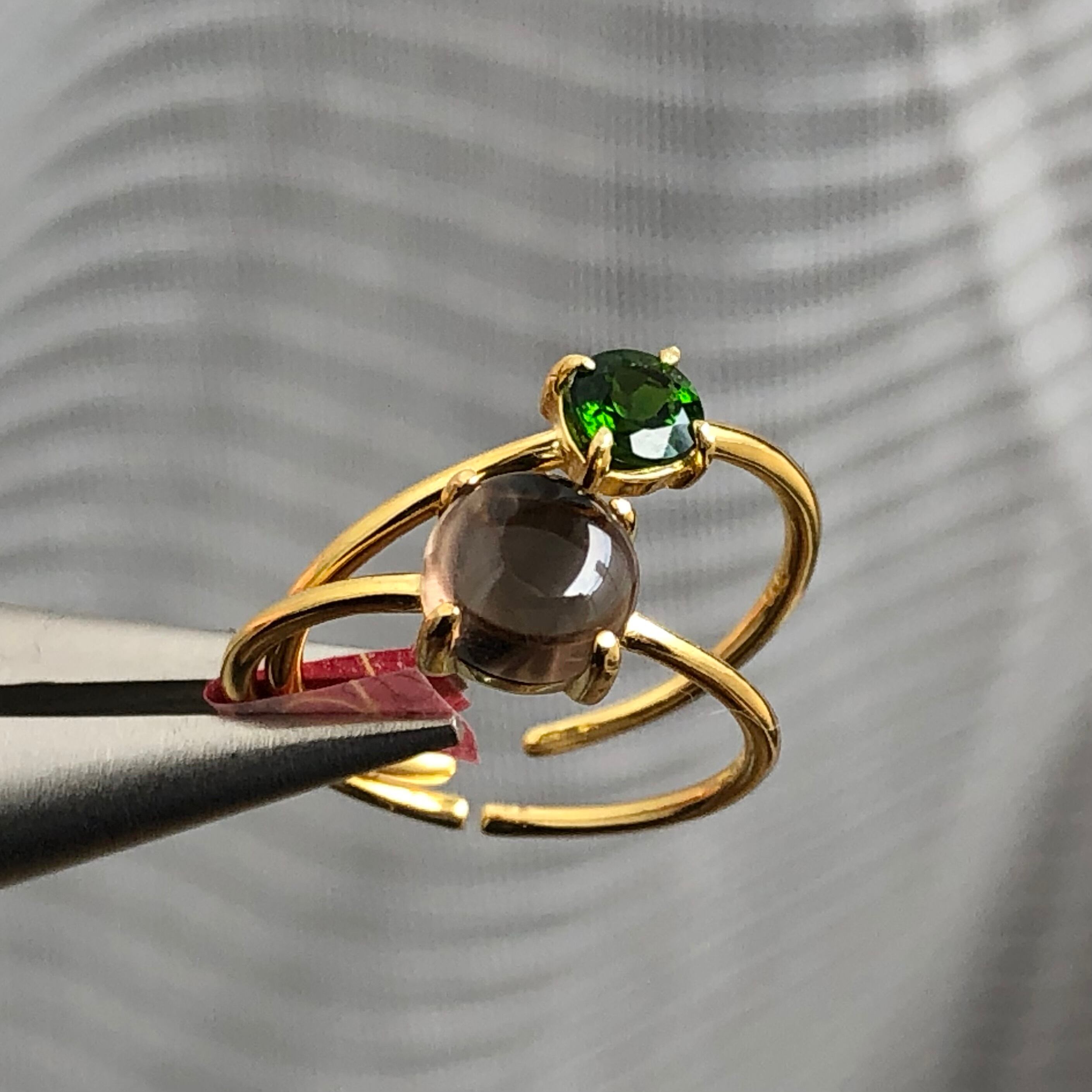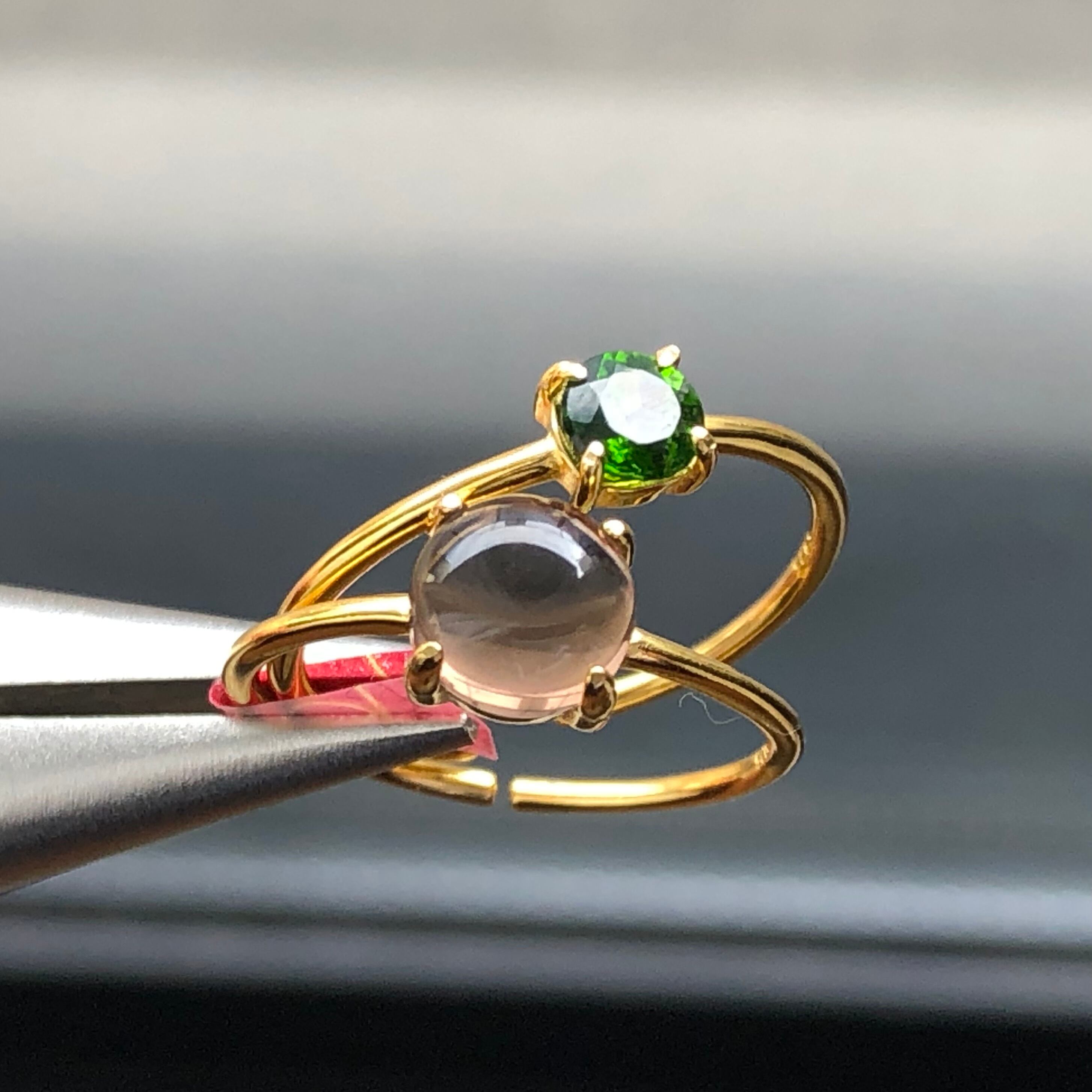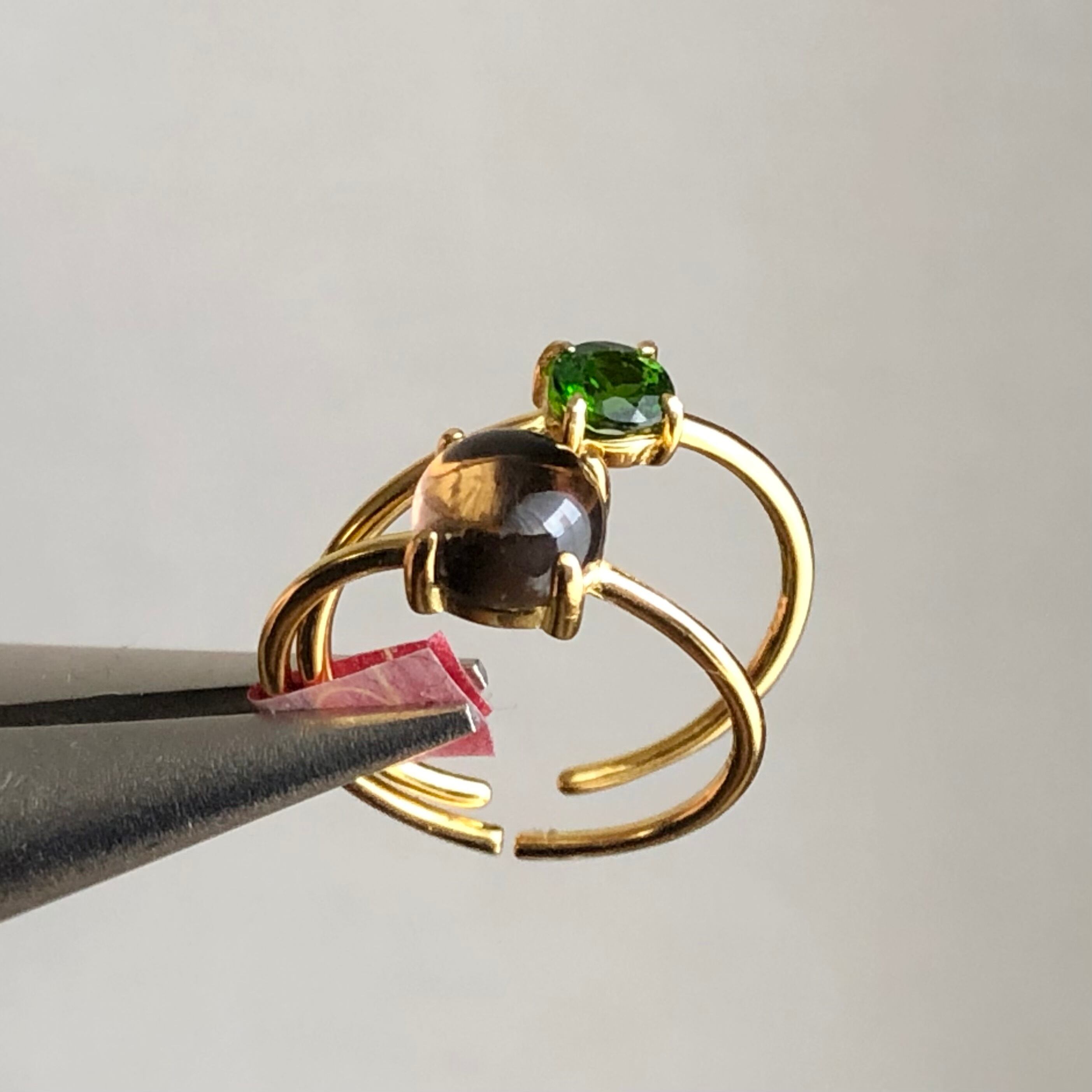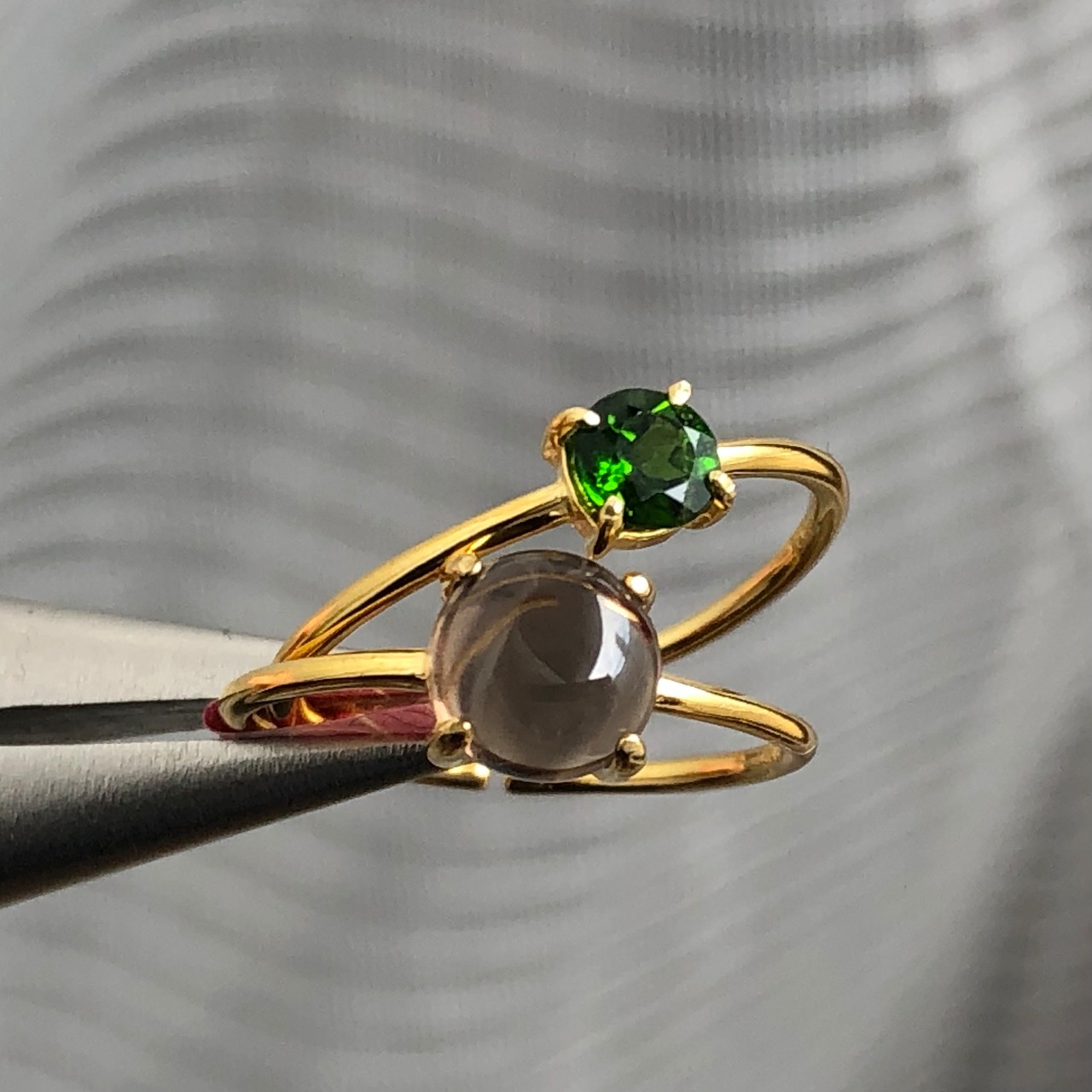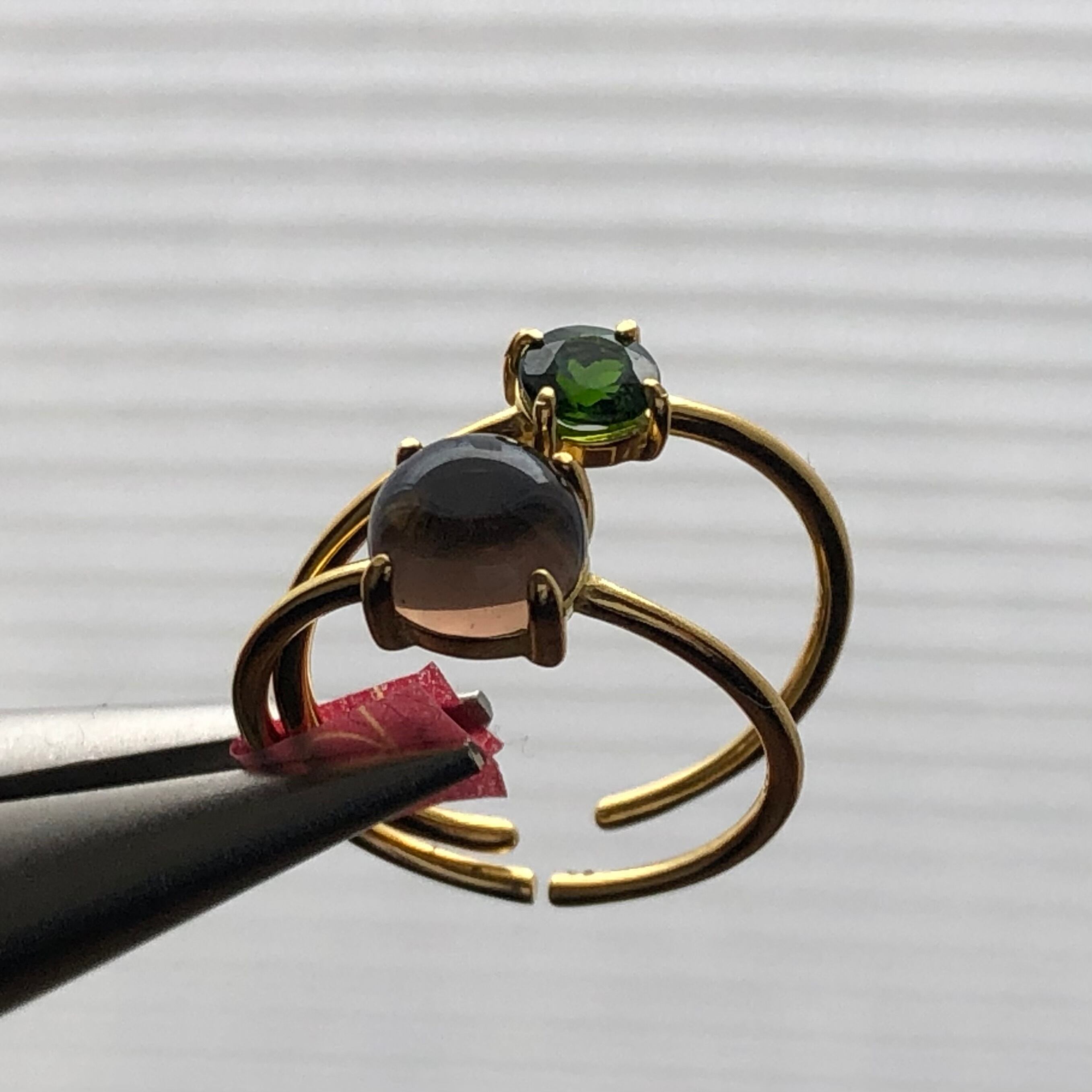 スモーキークォーツとクロムダイオプサイドのリングセットです。