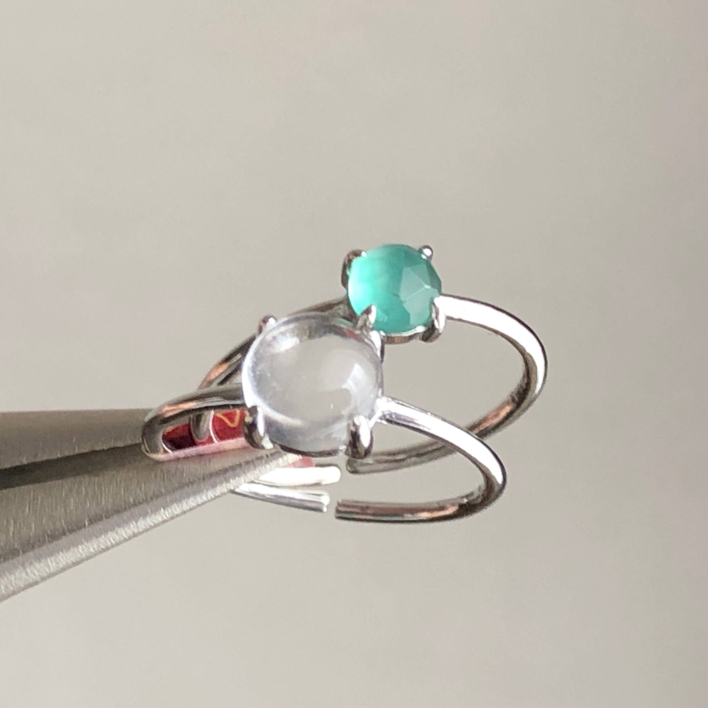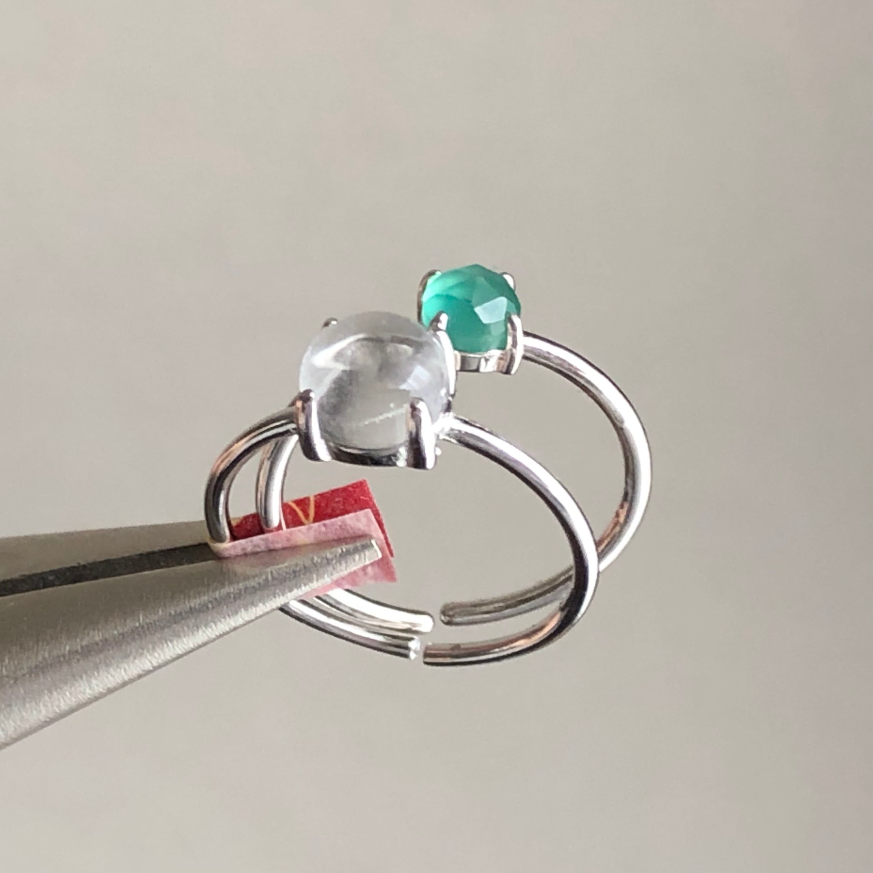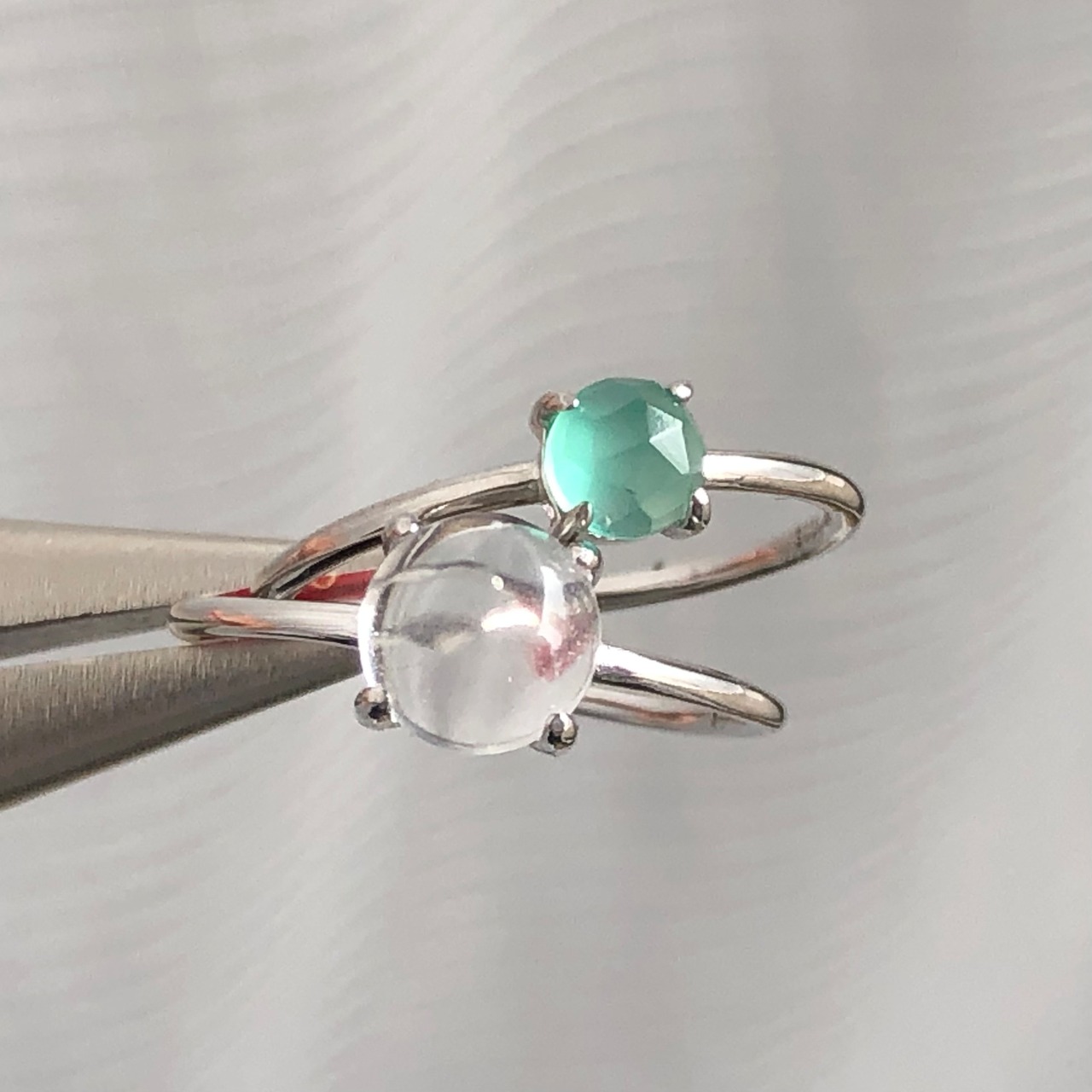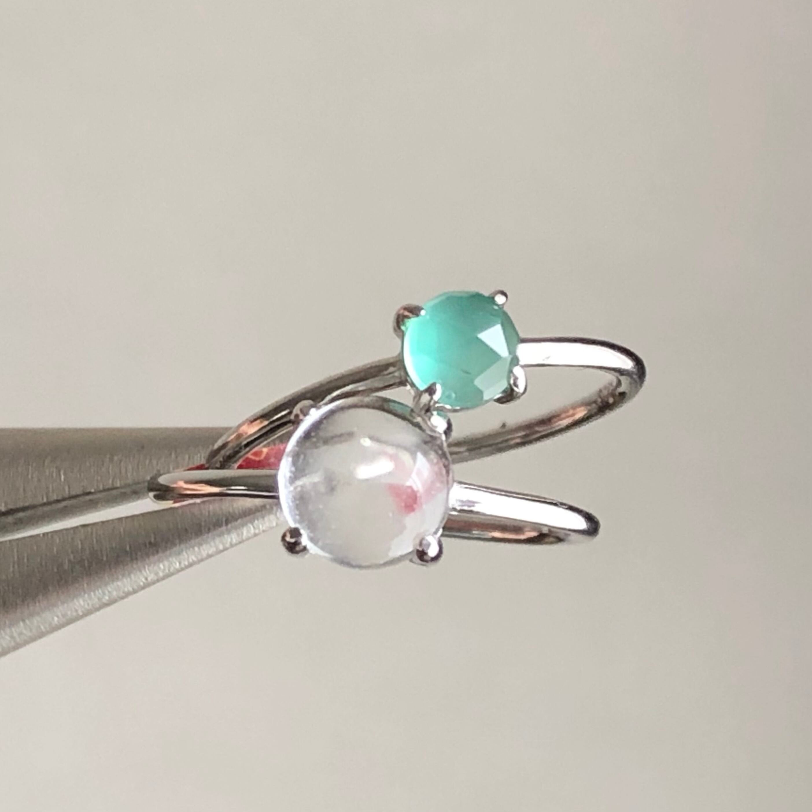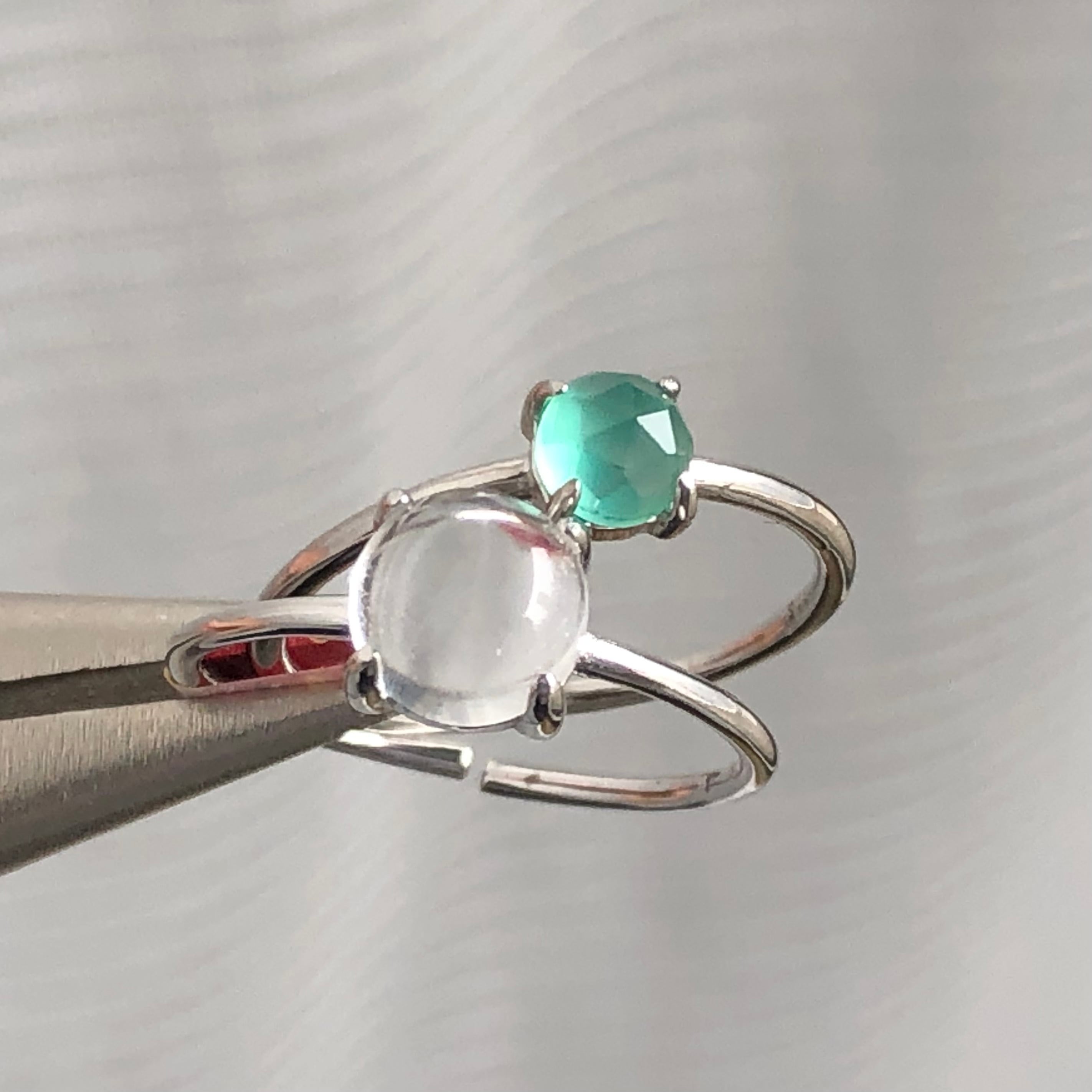 クリスタルとローズカットのグリーンオニキスのリングセットです。
