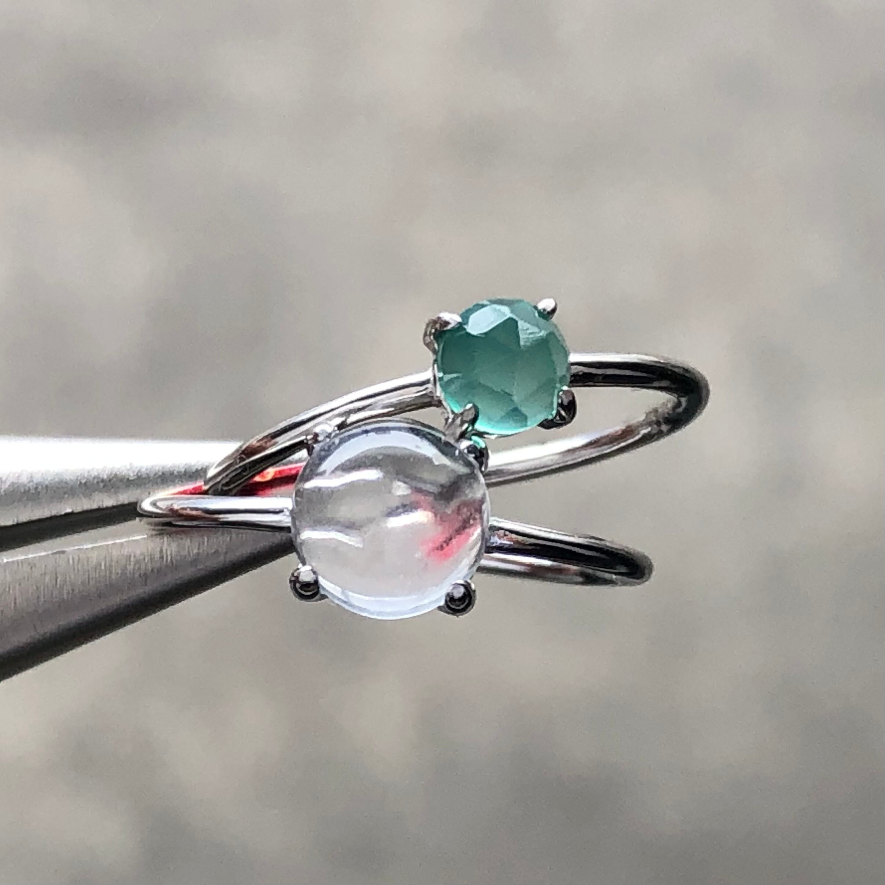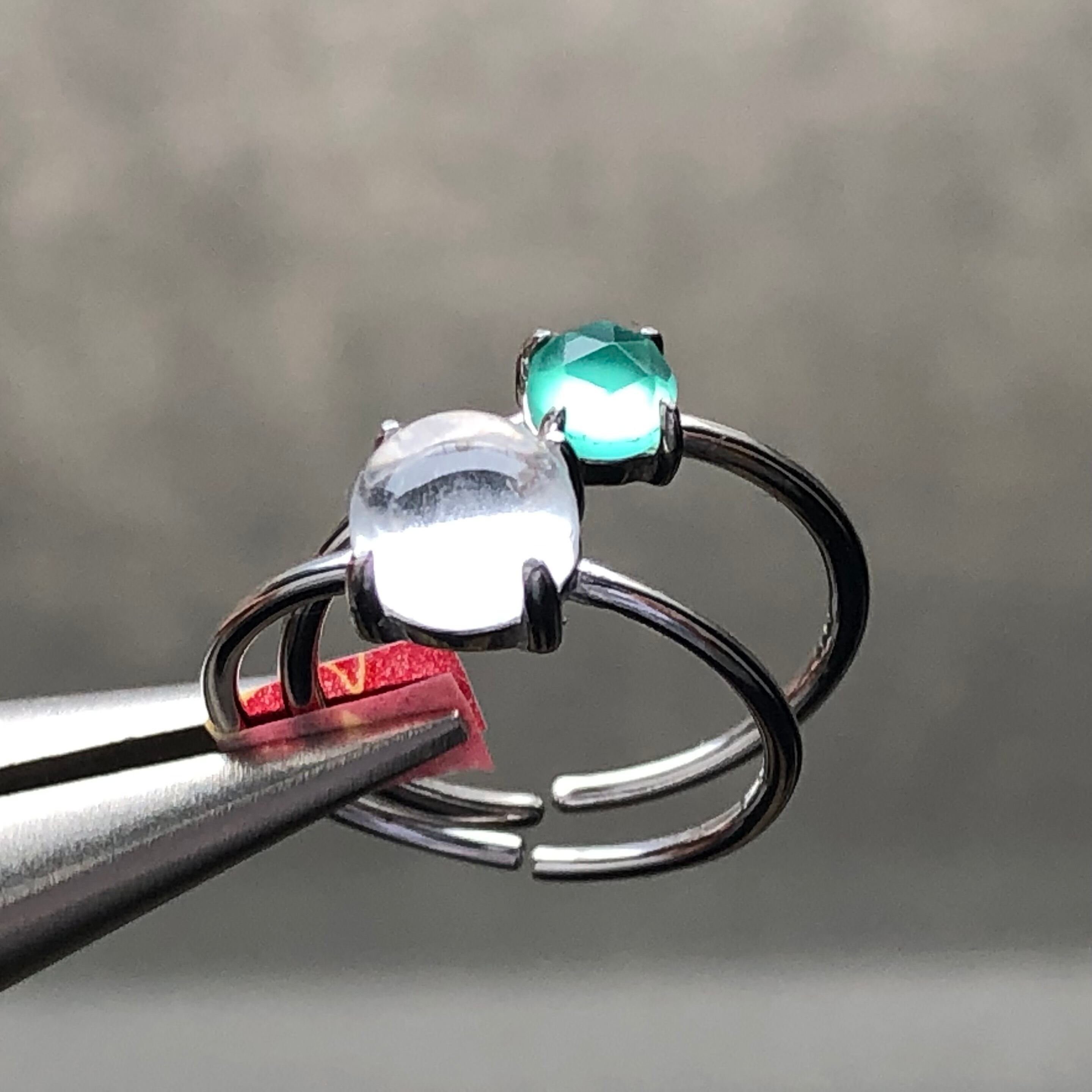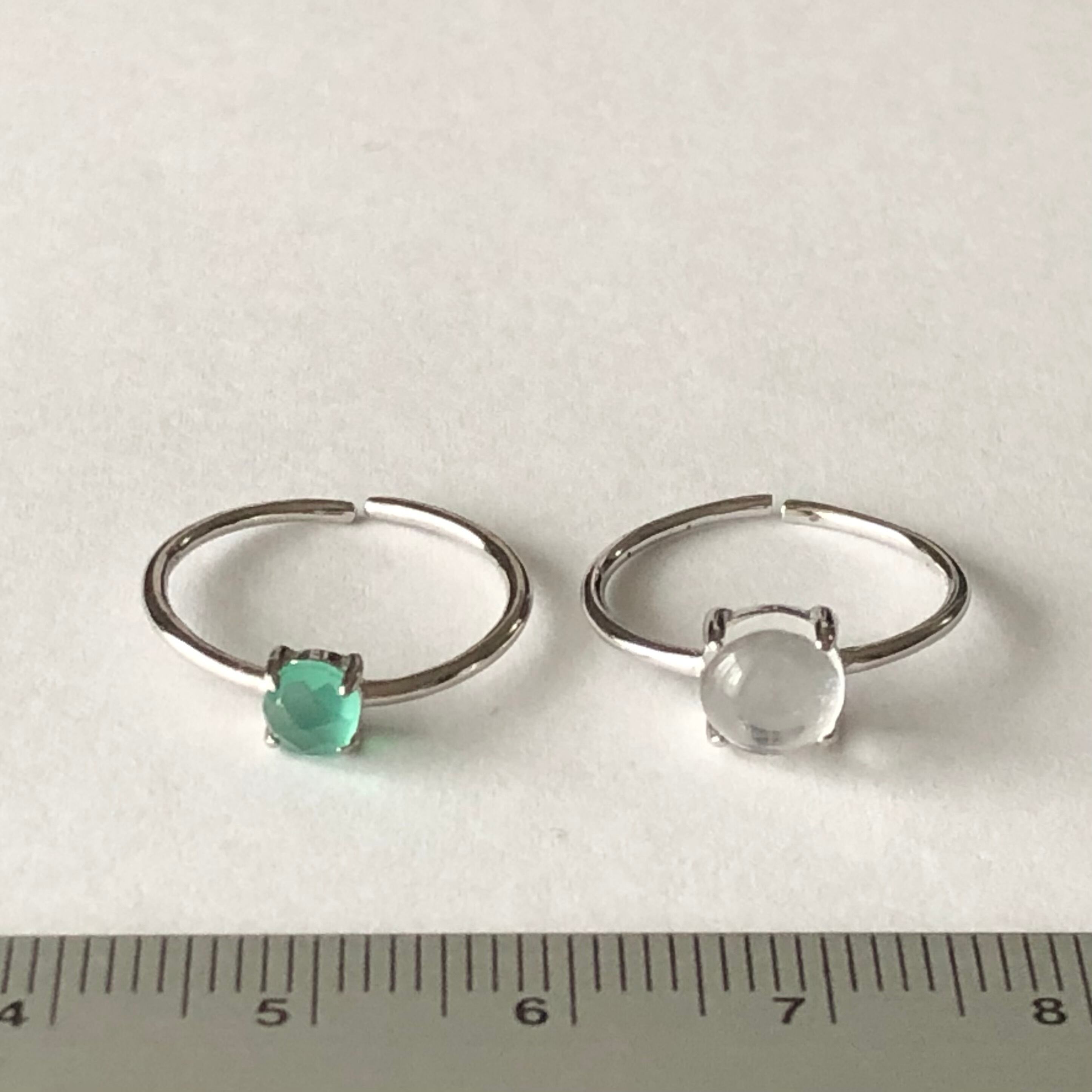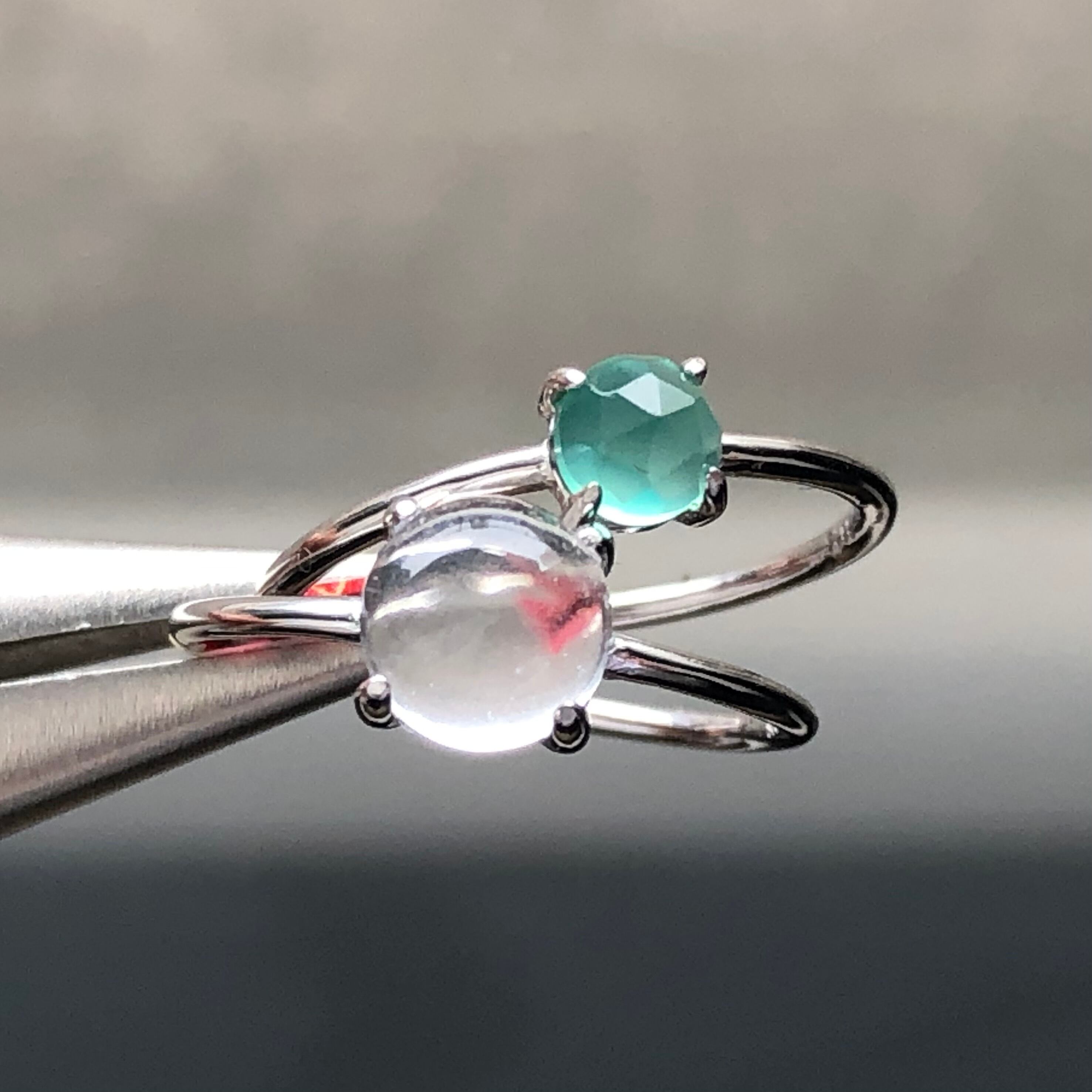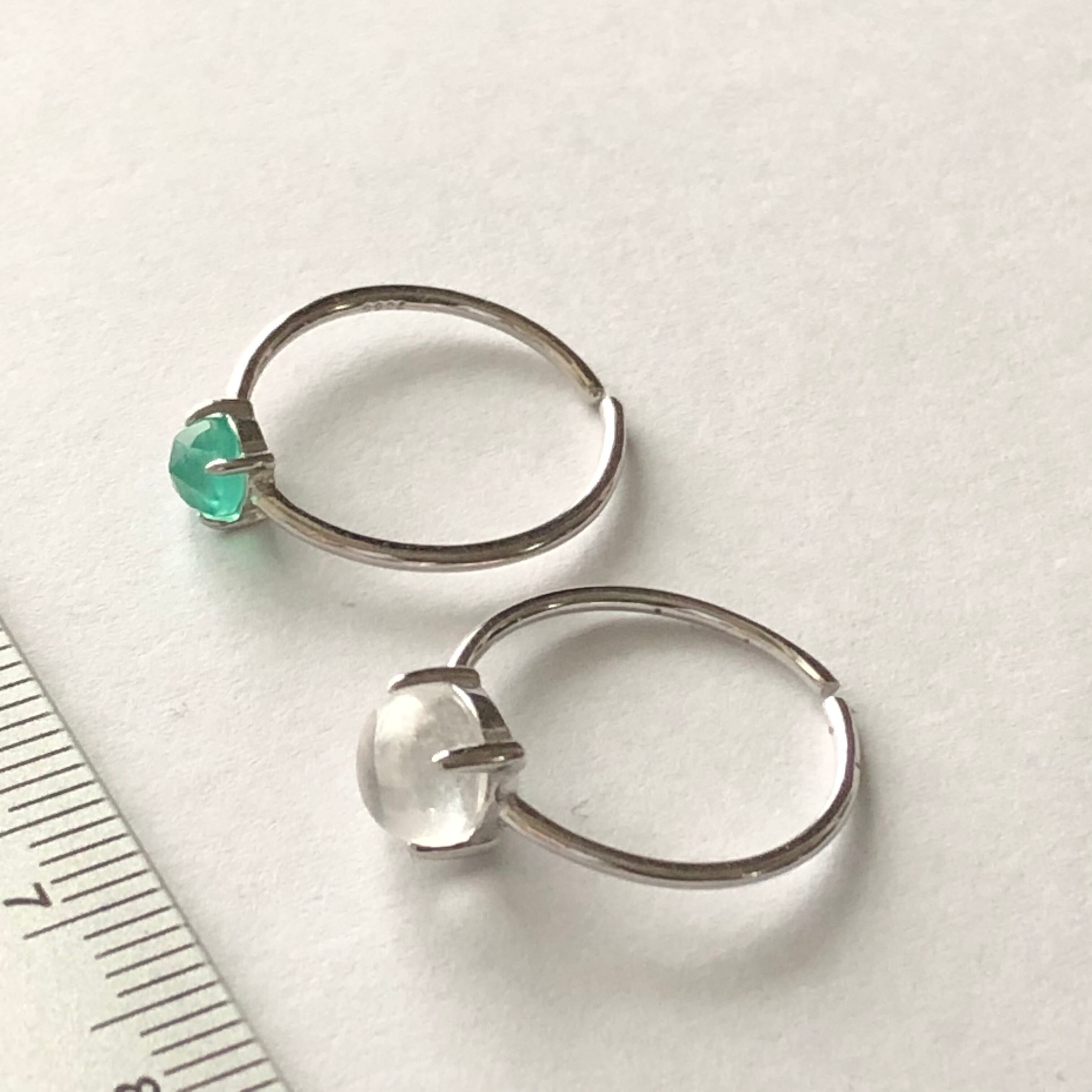 クリスタルとローズカットのグリーンオニキスのリングセットです。