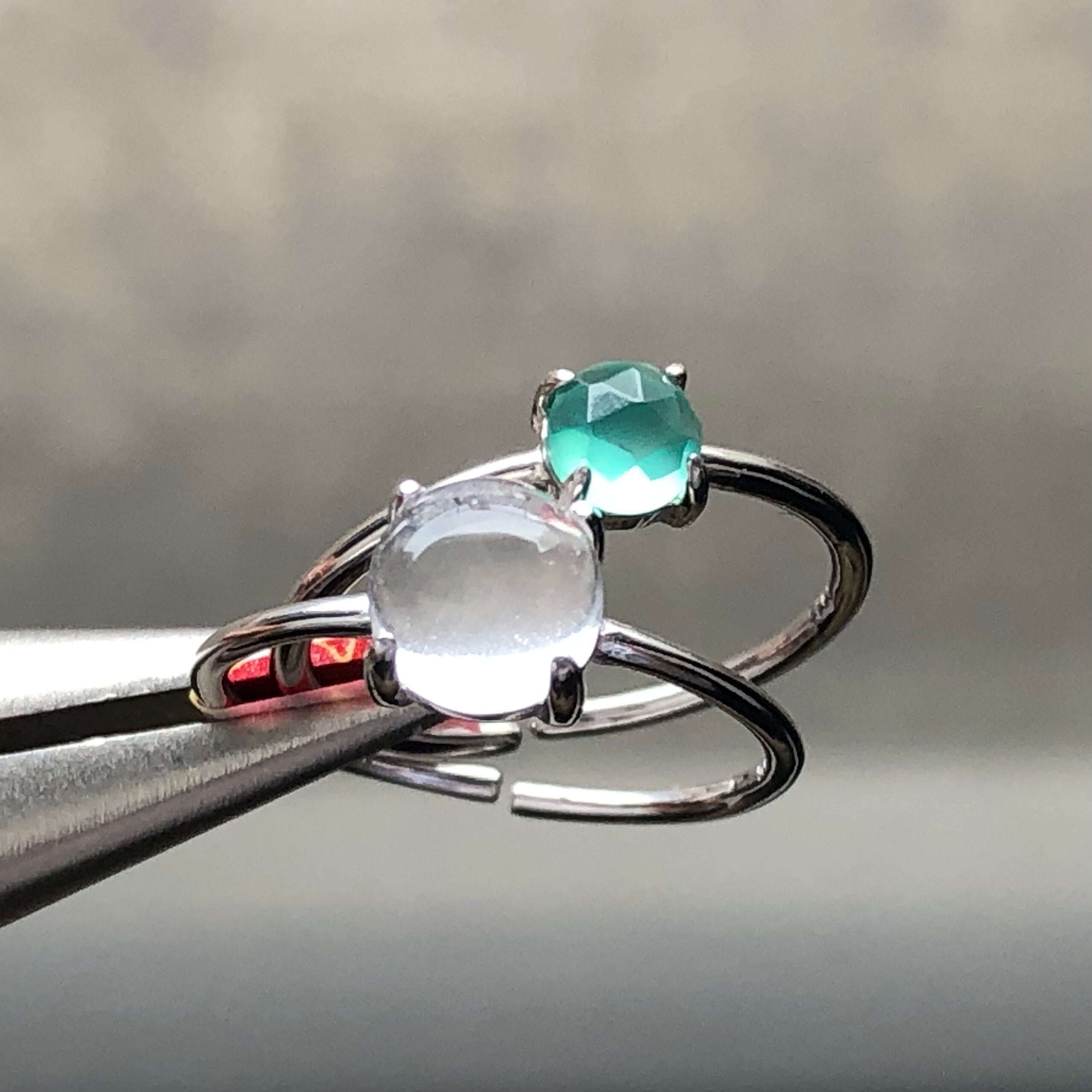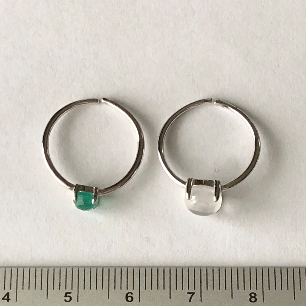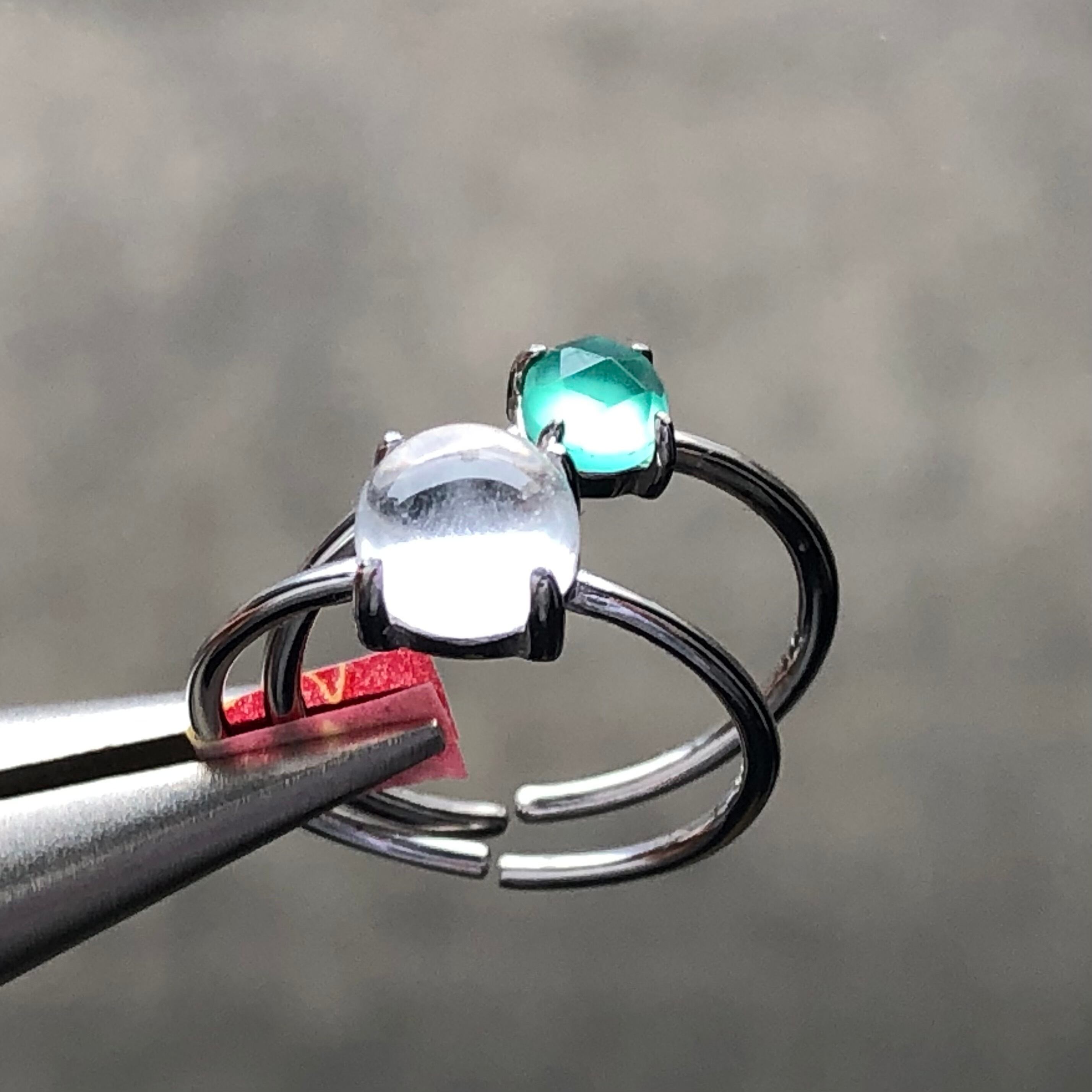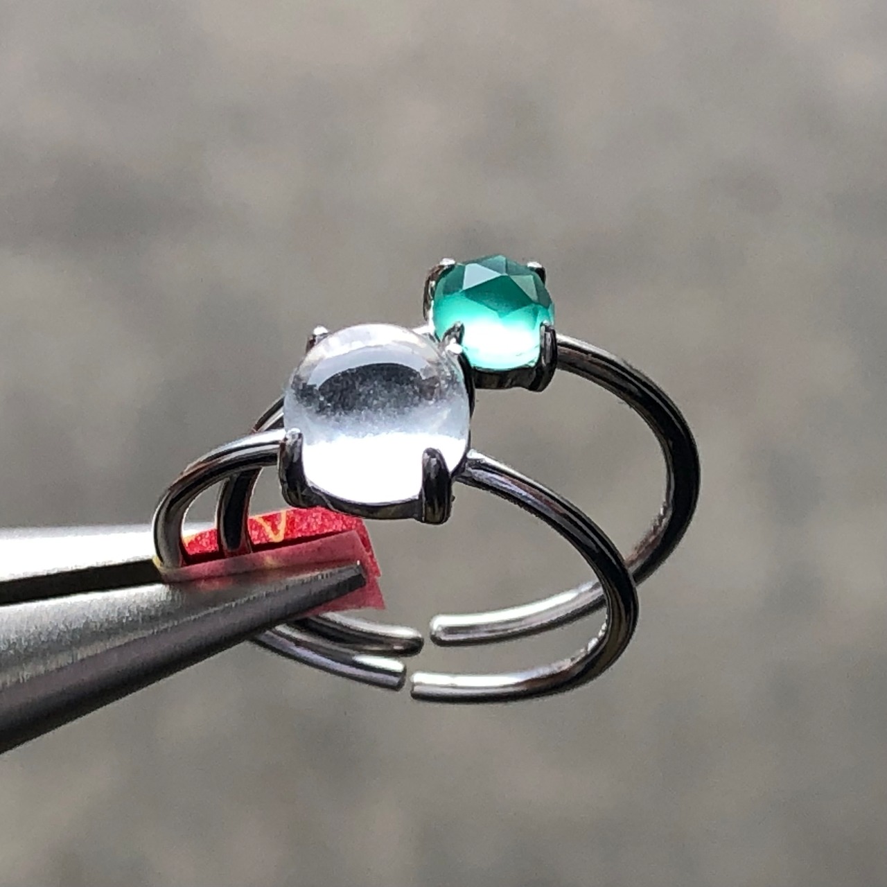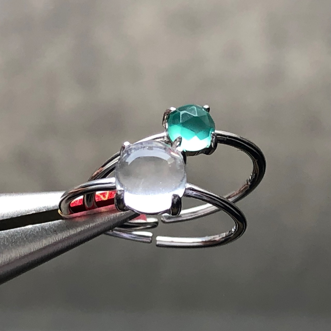 クリスタルとローズカットのグリーンオニキスのリングセットです。