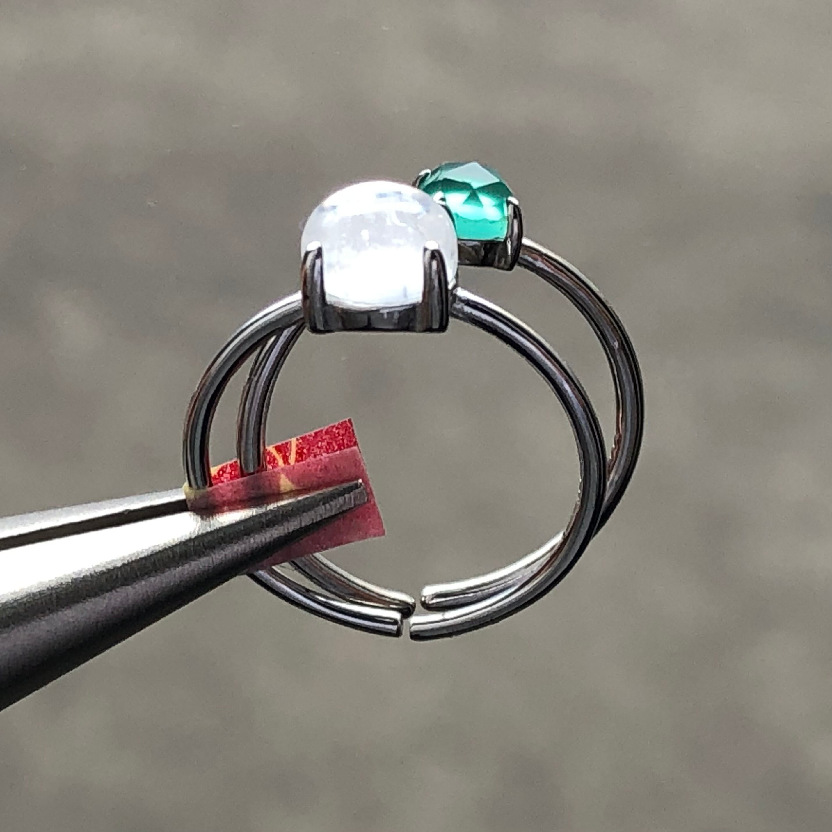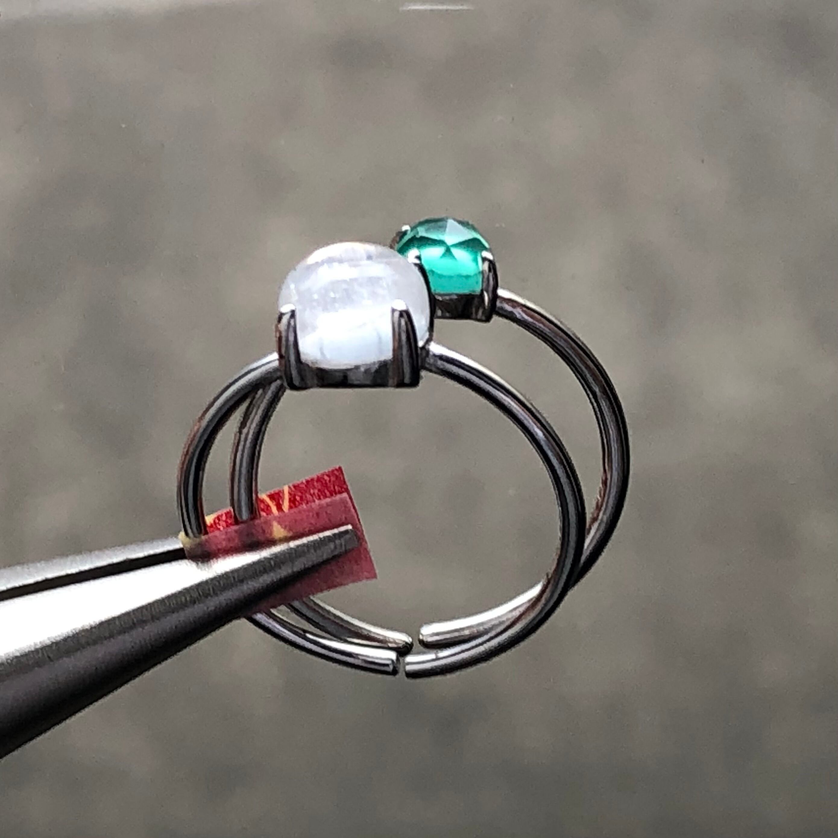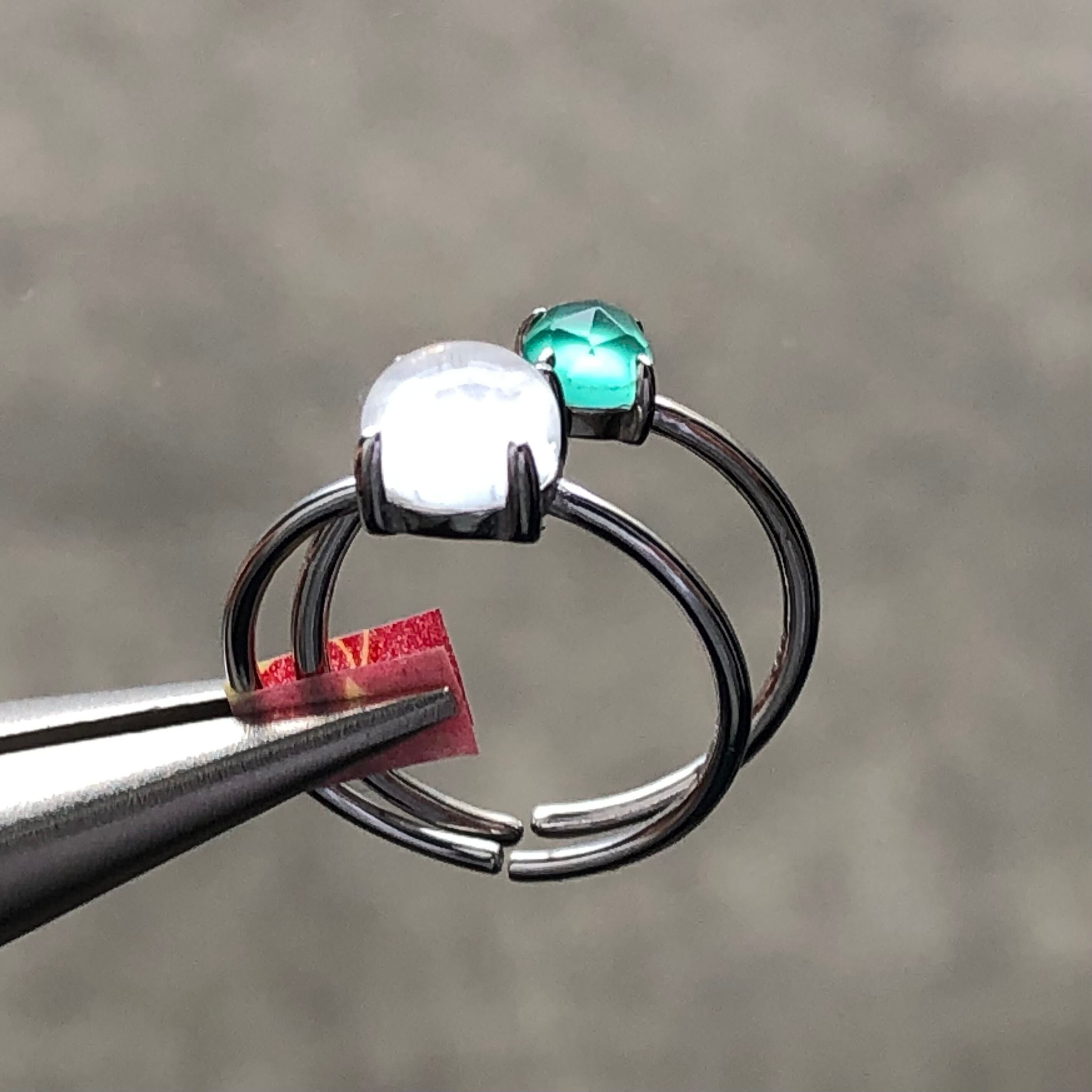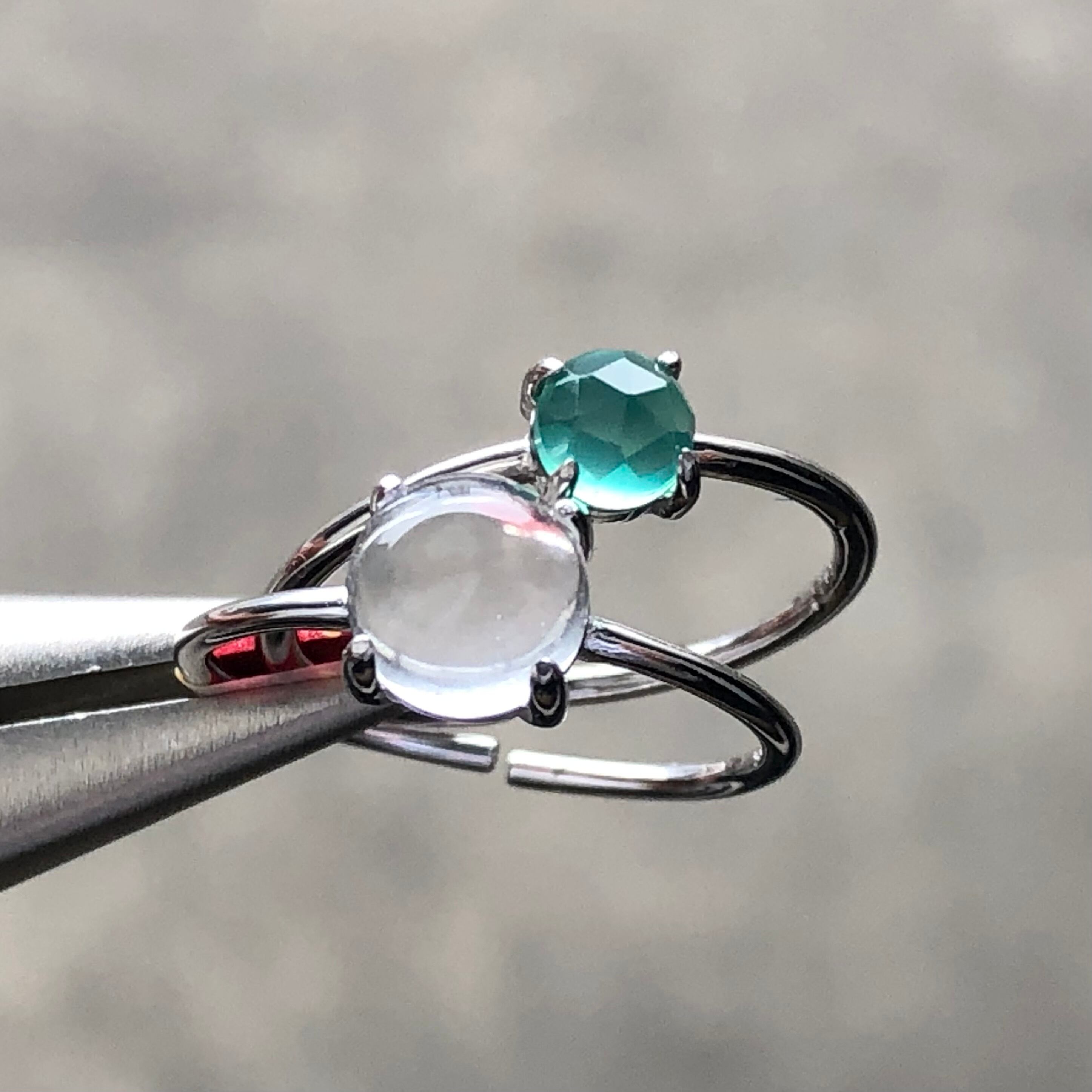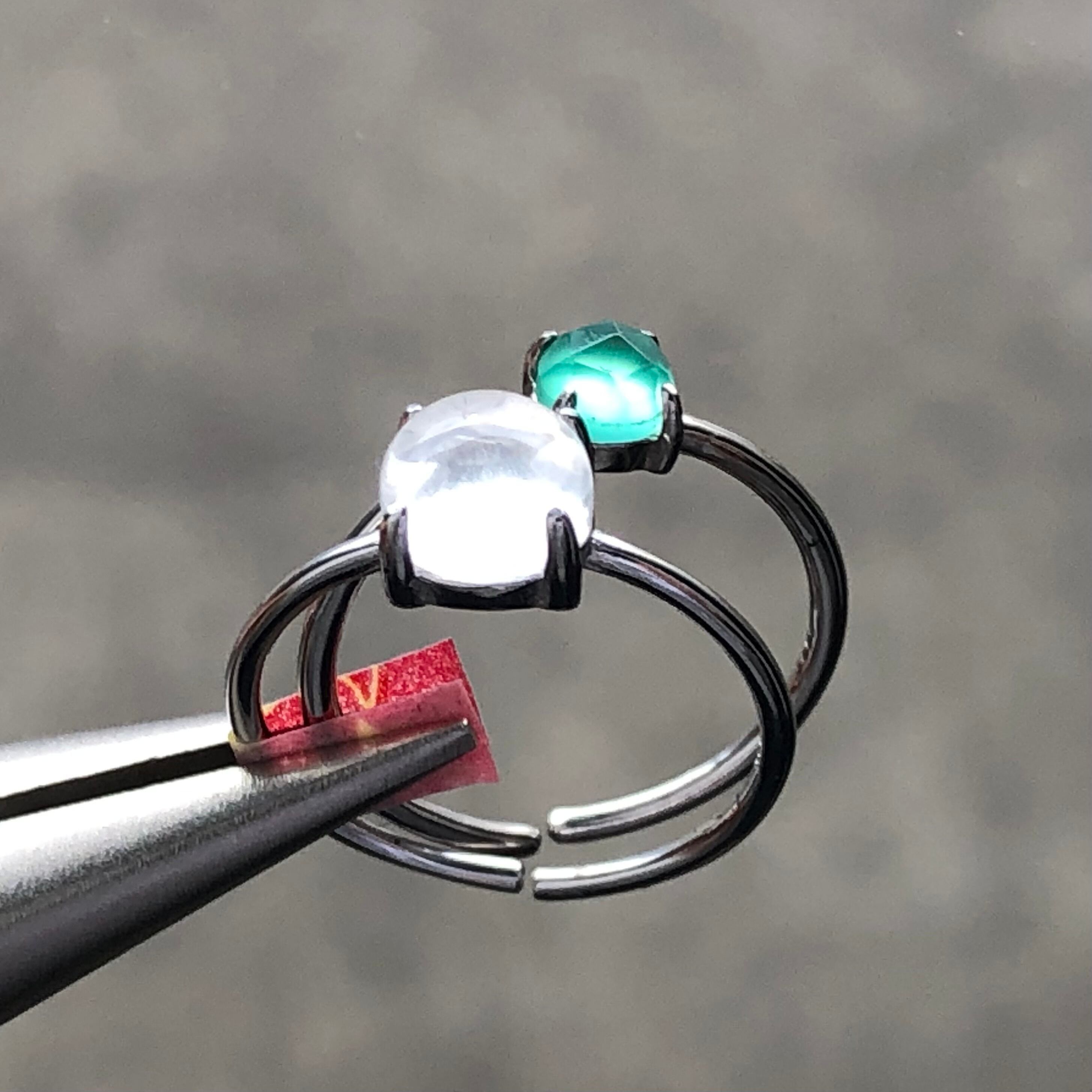 クリスタルとローズカットのグリーンオニキスのリングセットです。