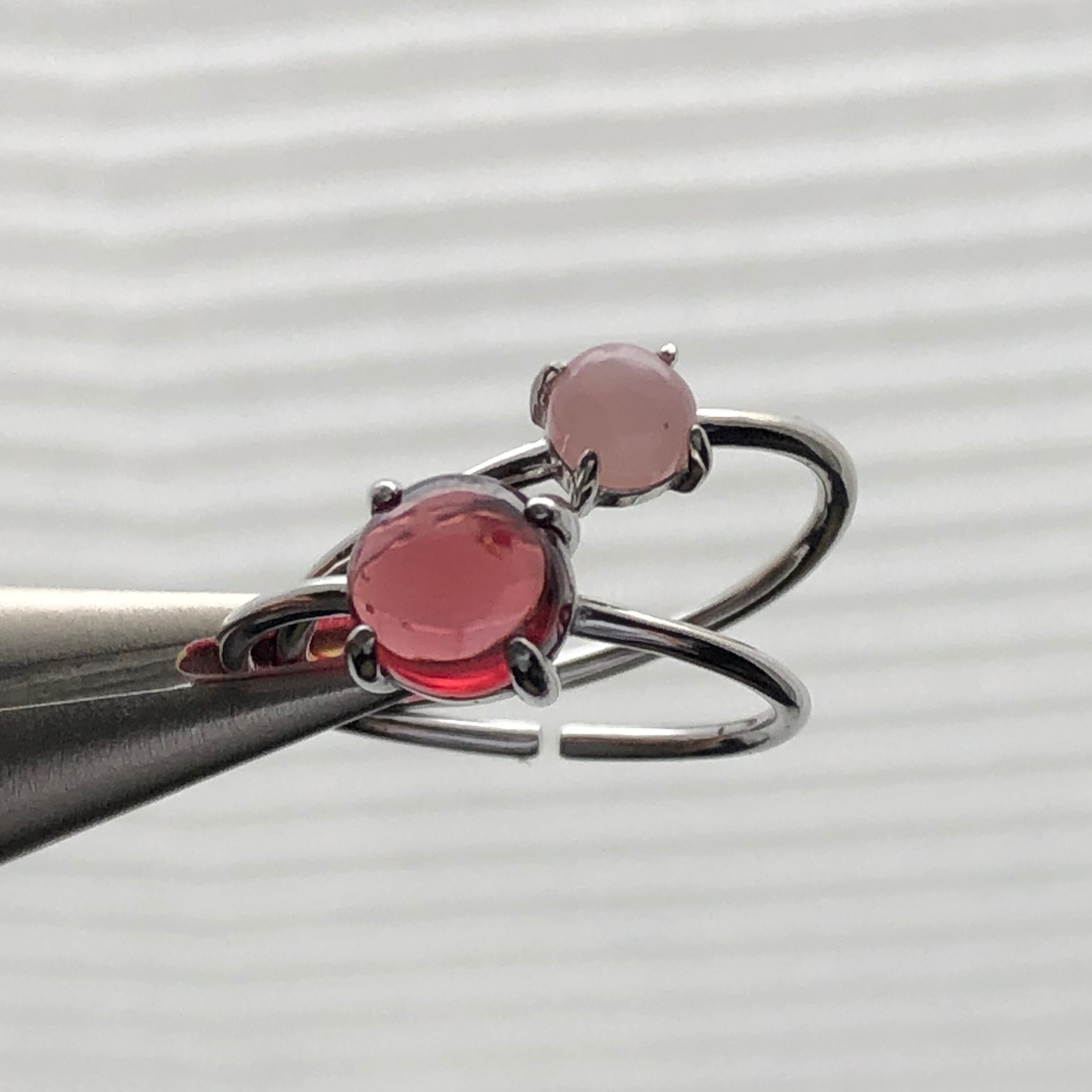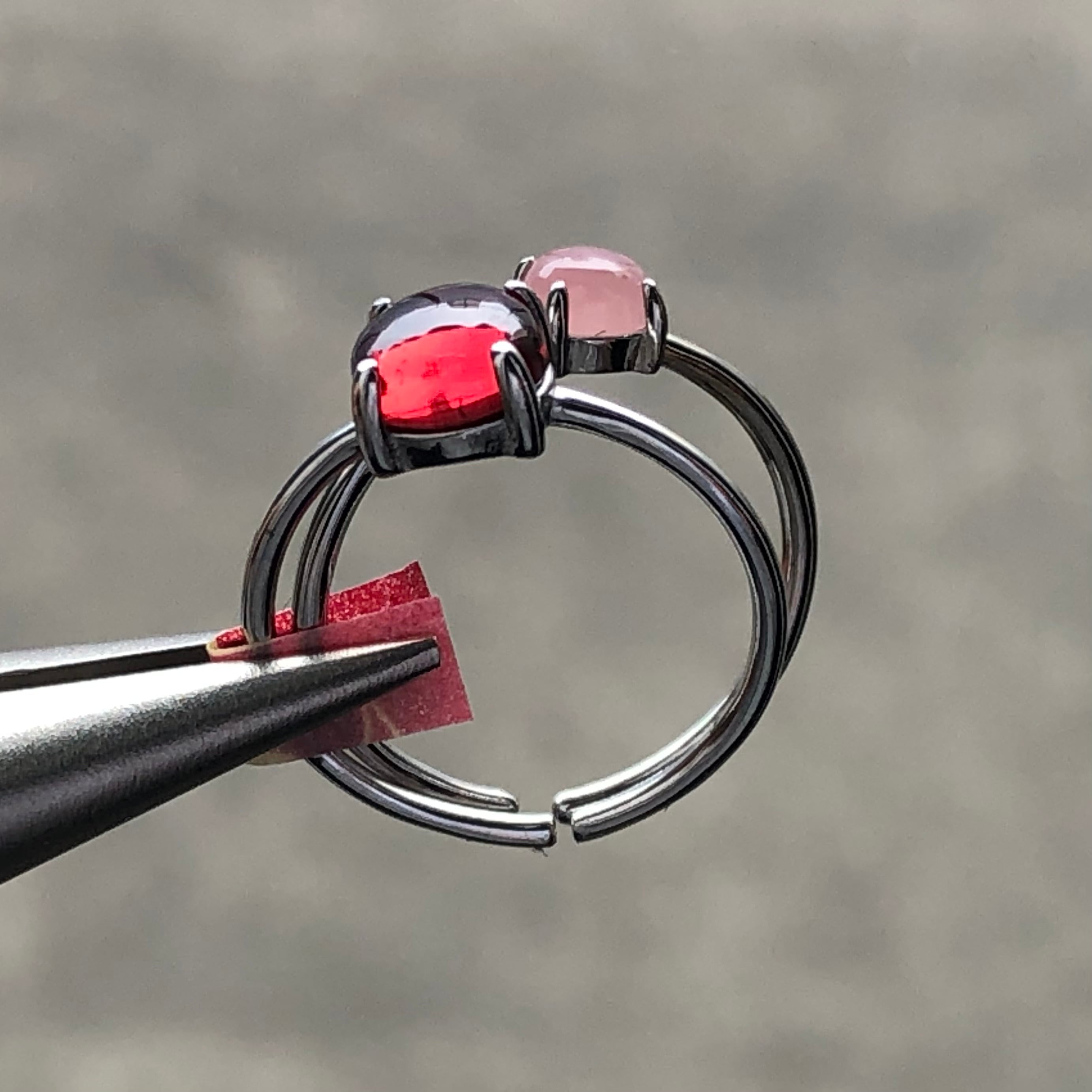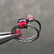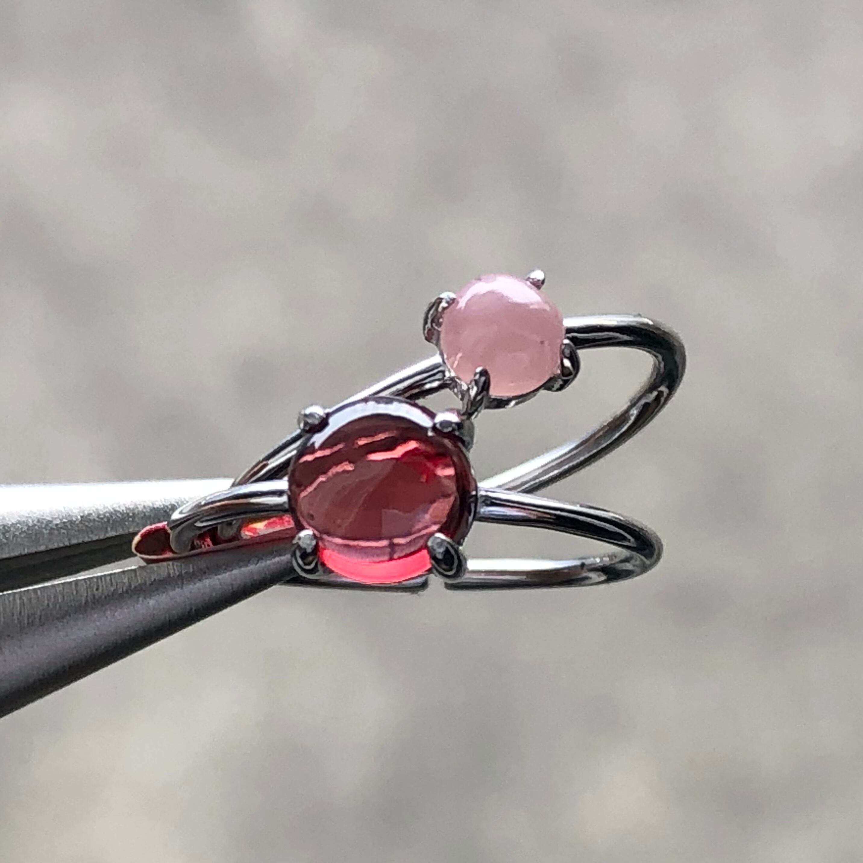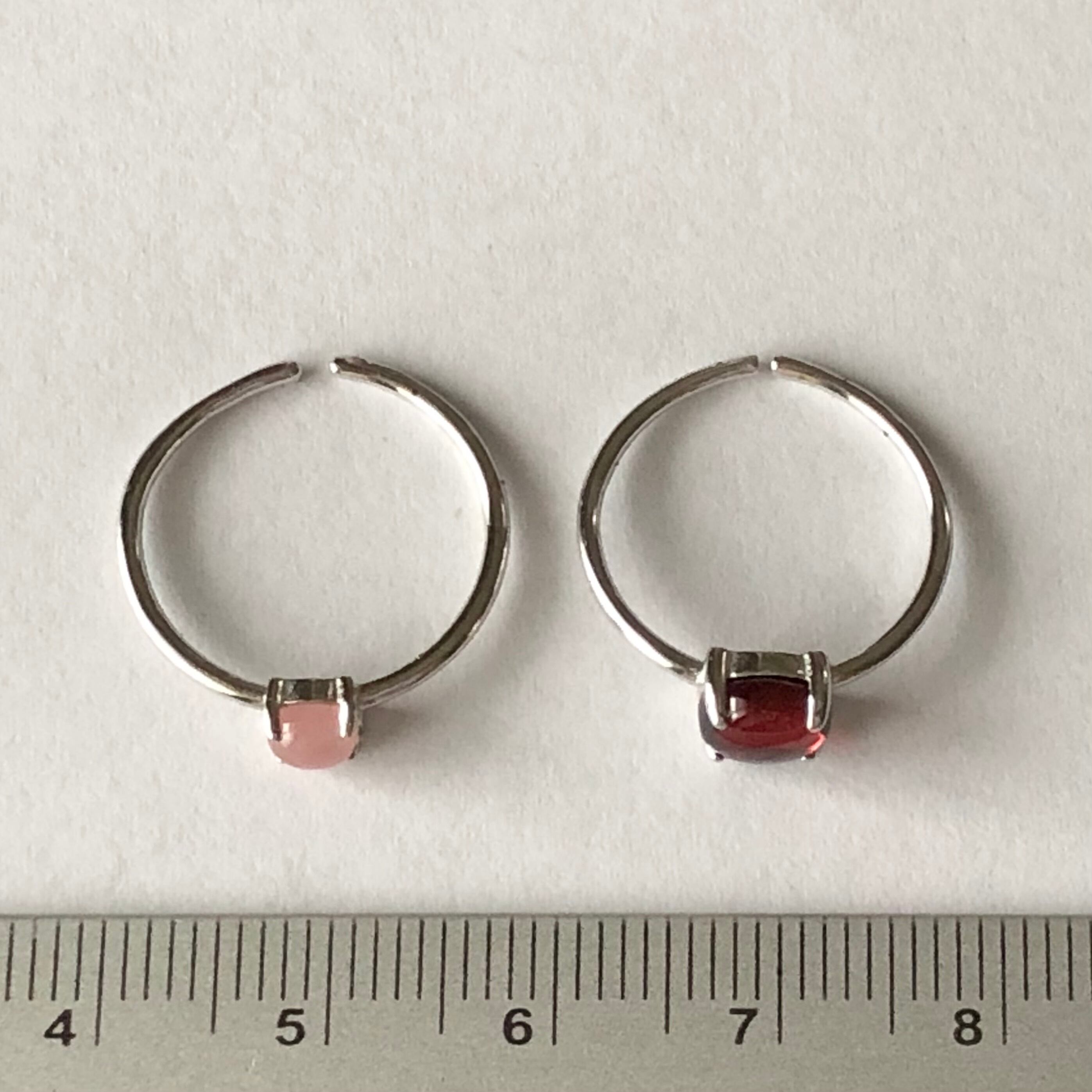 ガーネットとグァバクォーツのリングセットです。