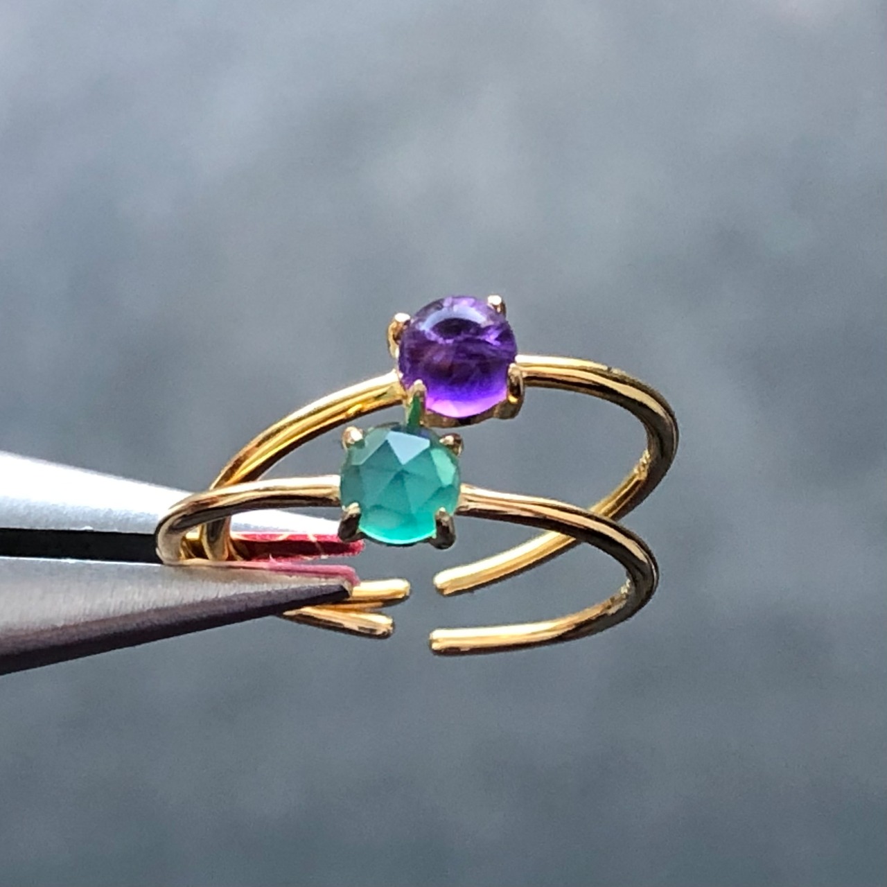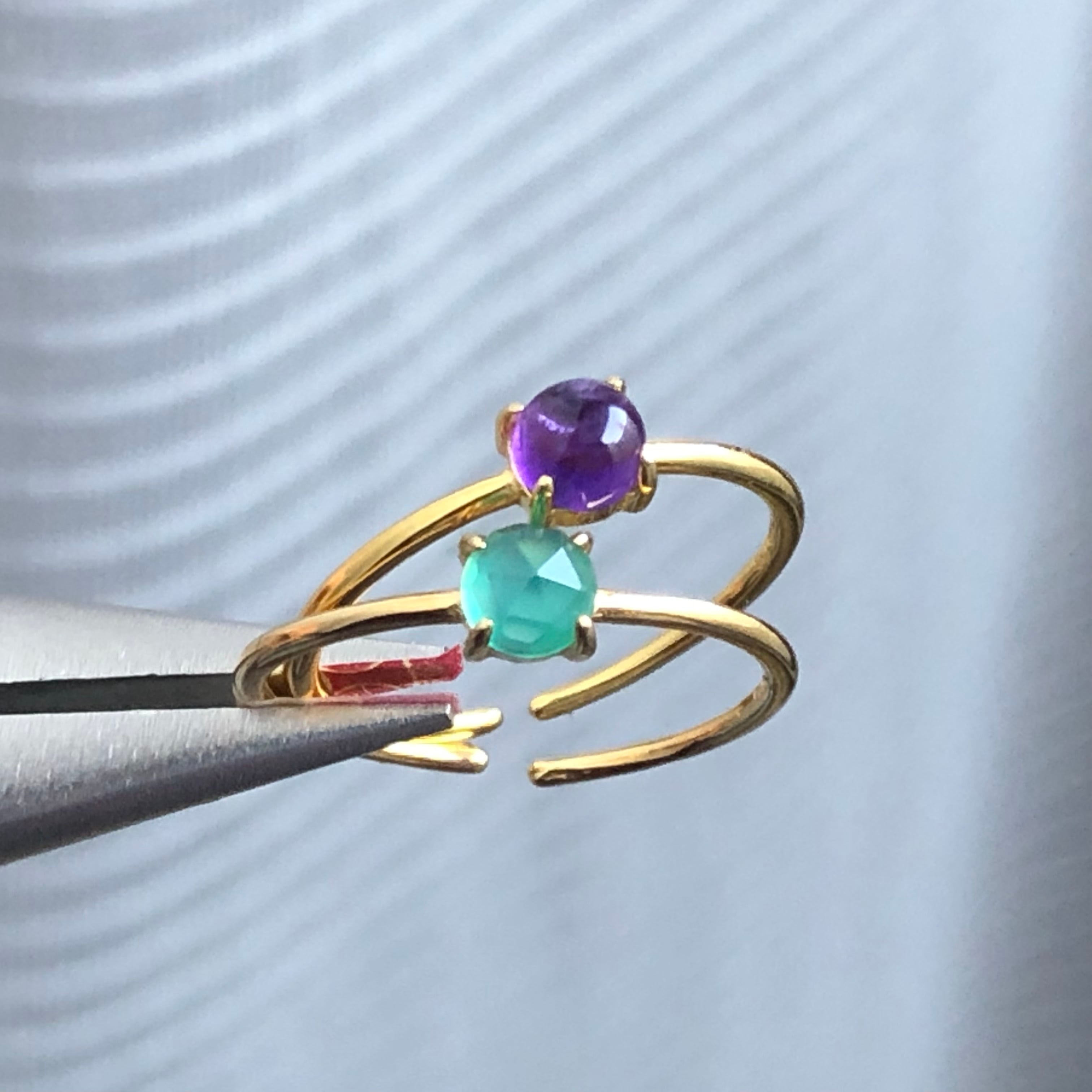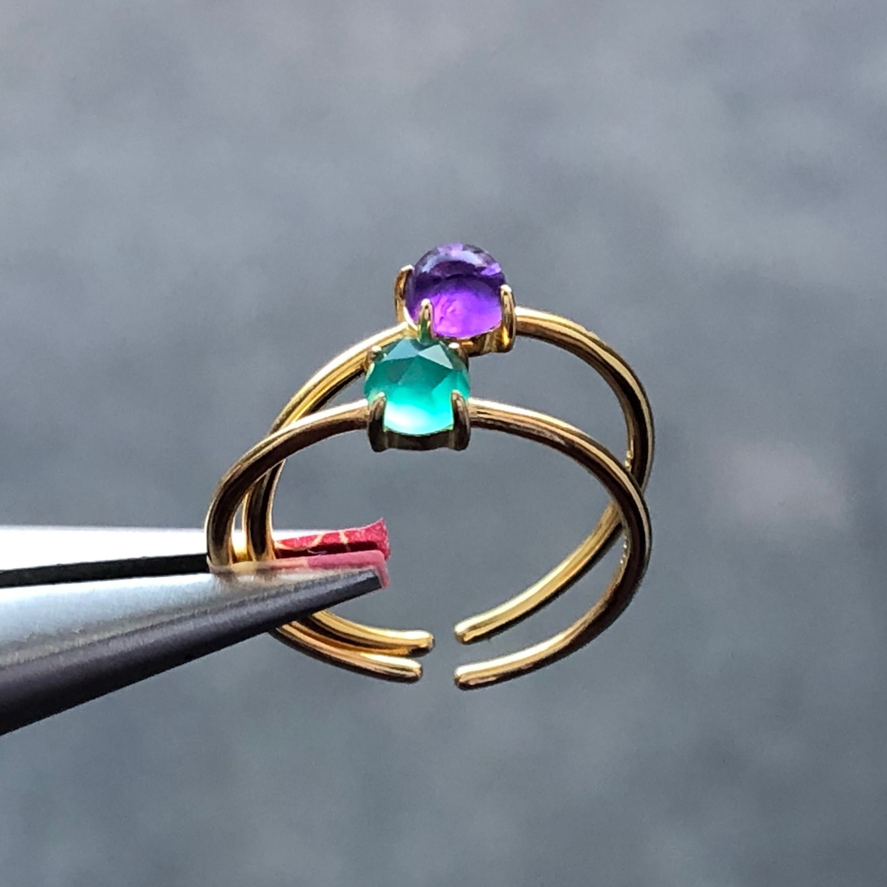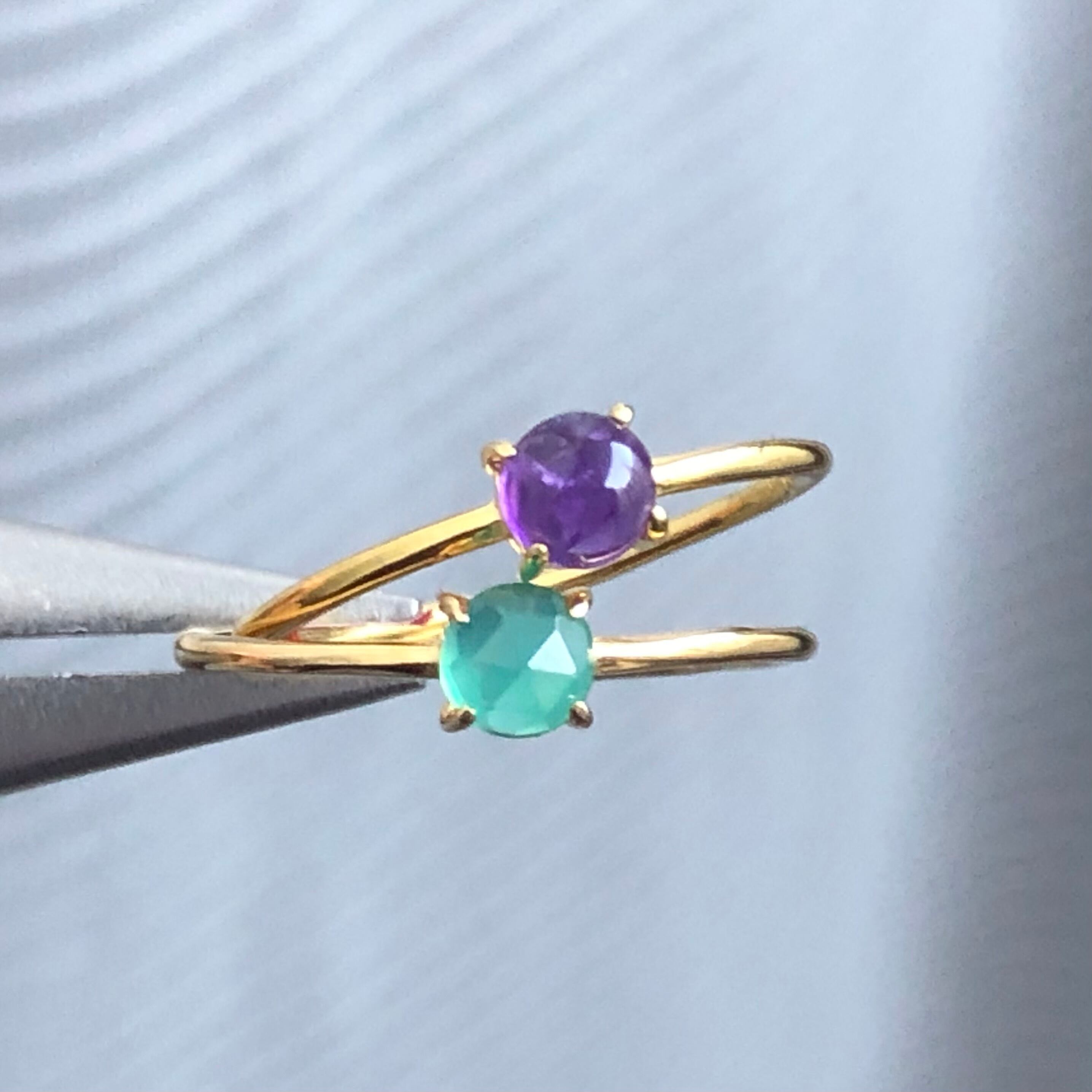 アメシストとローズカットのグリーンオニキスのリングセットです。