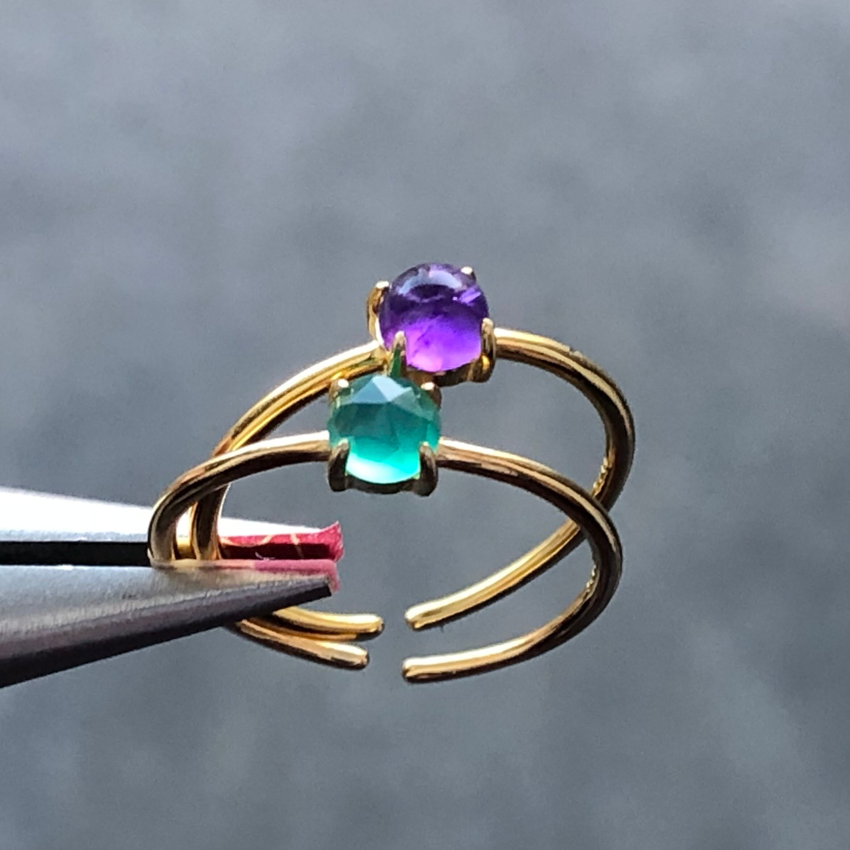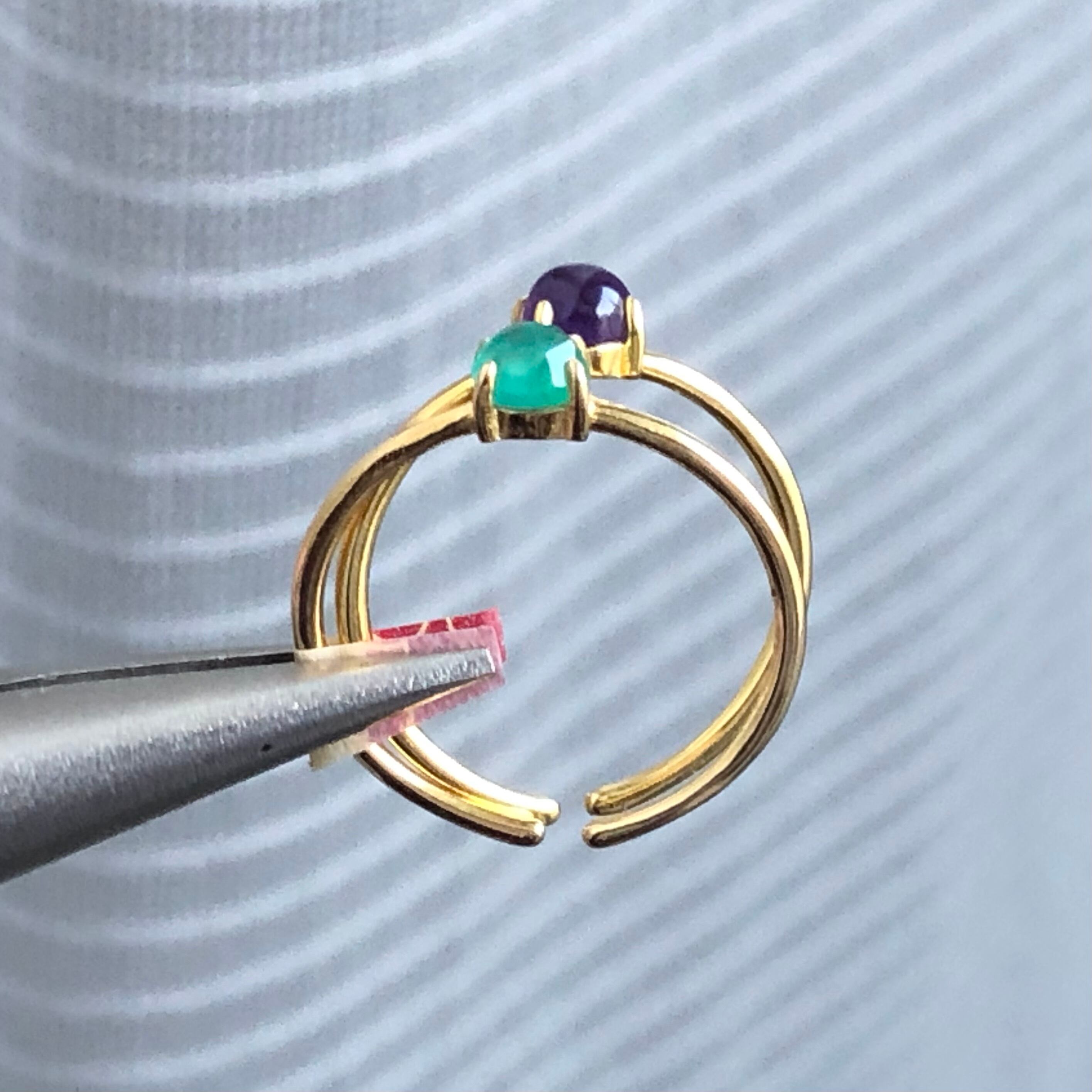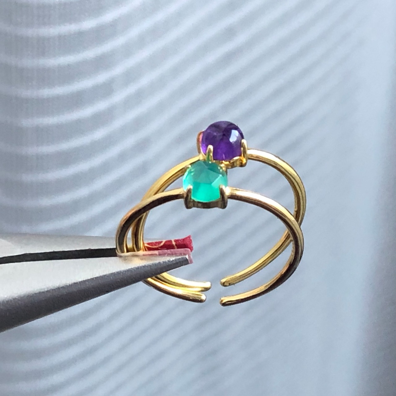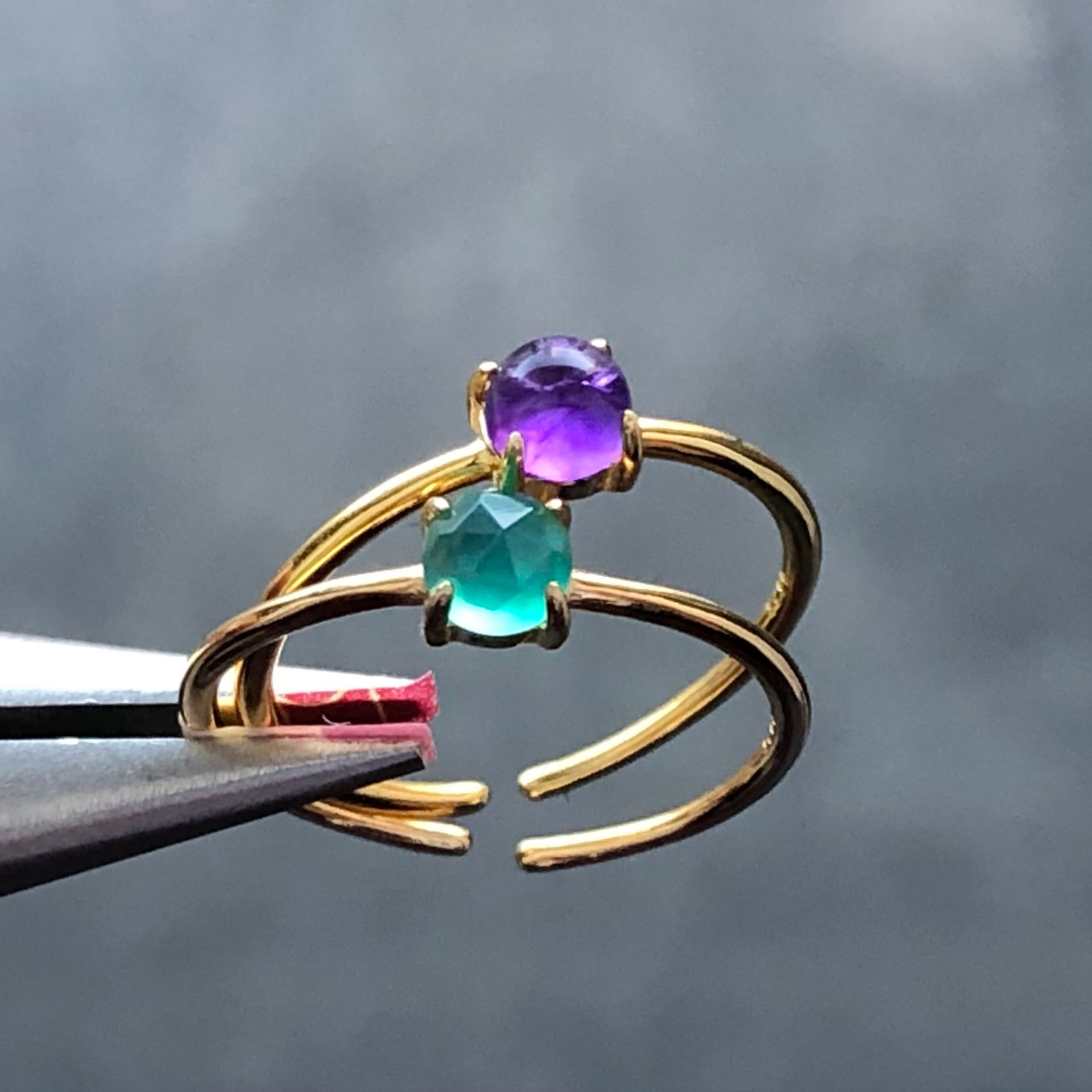 アメシストとローズカットのグリーンオニキスのリングセットです。