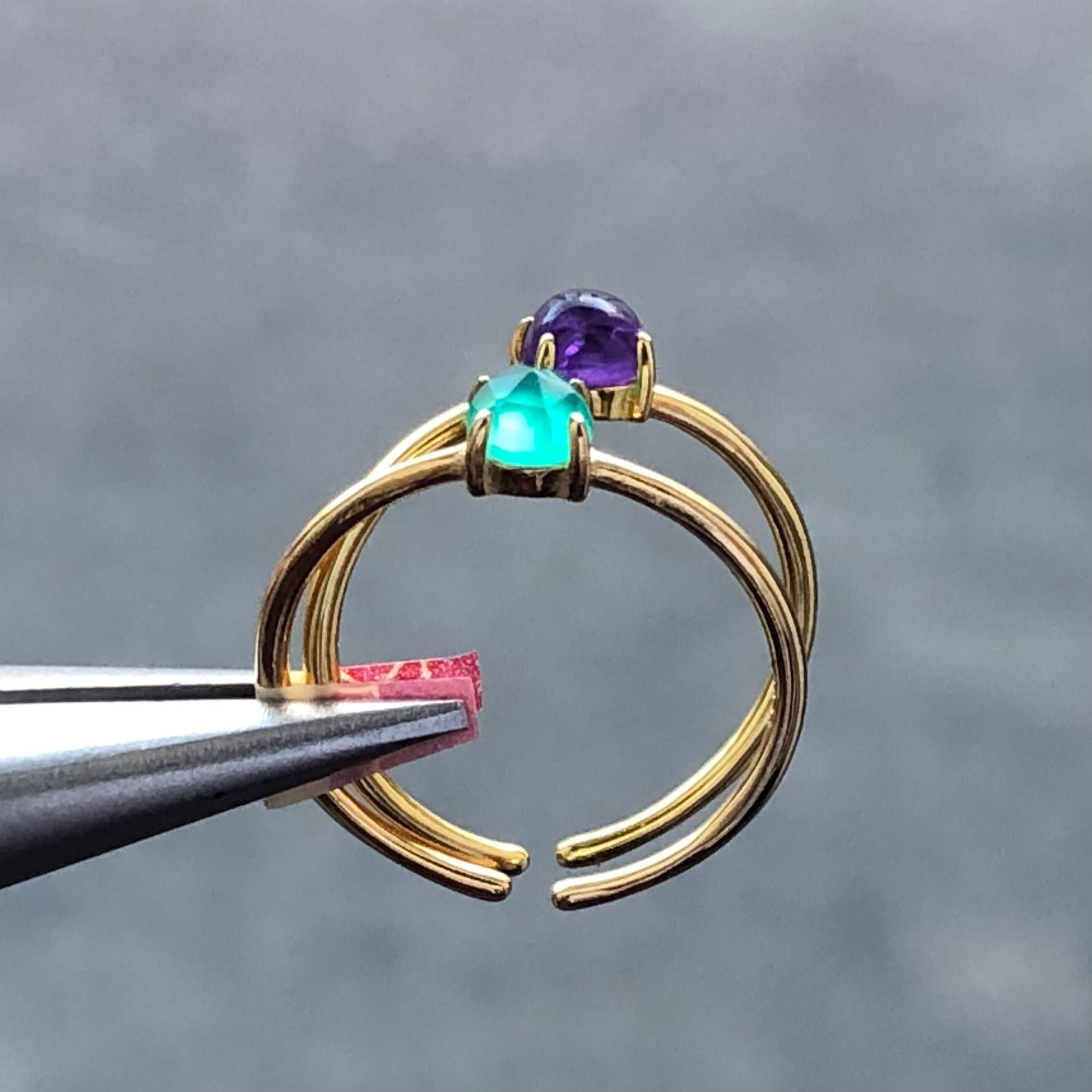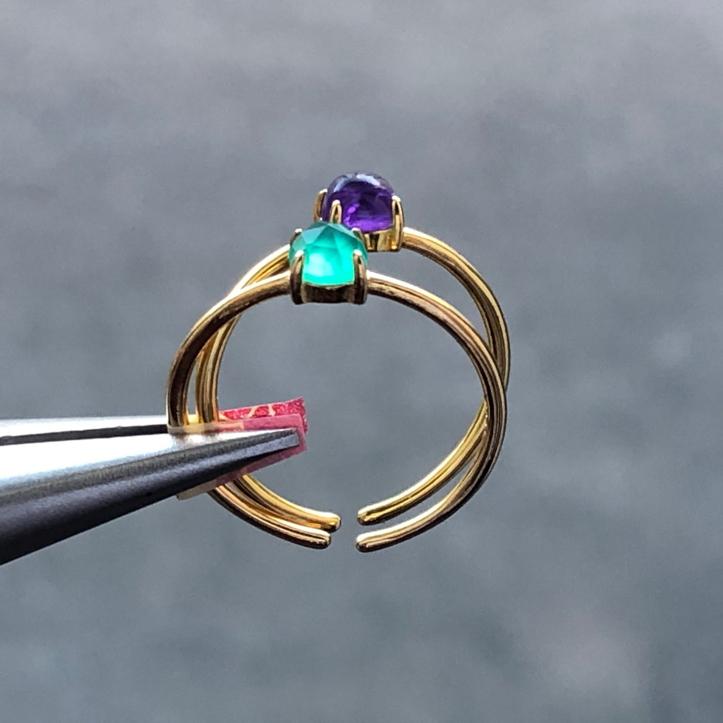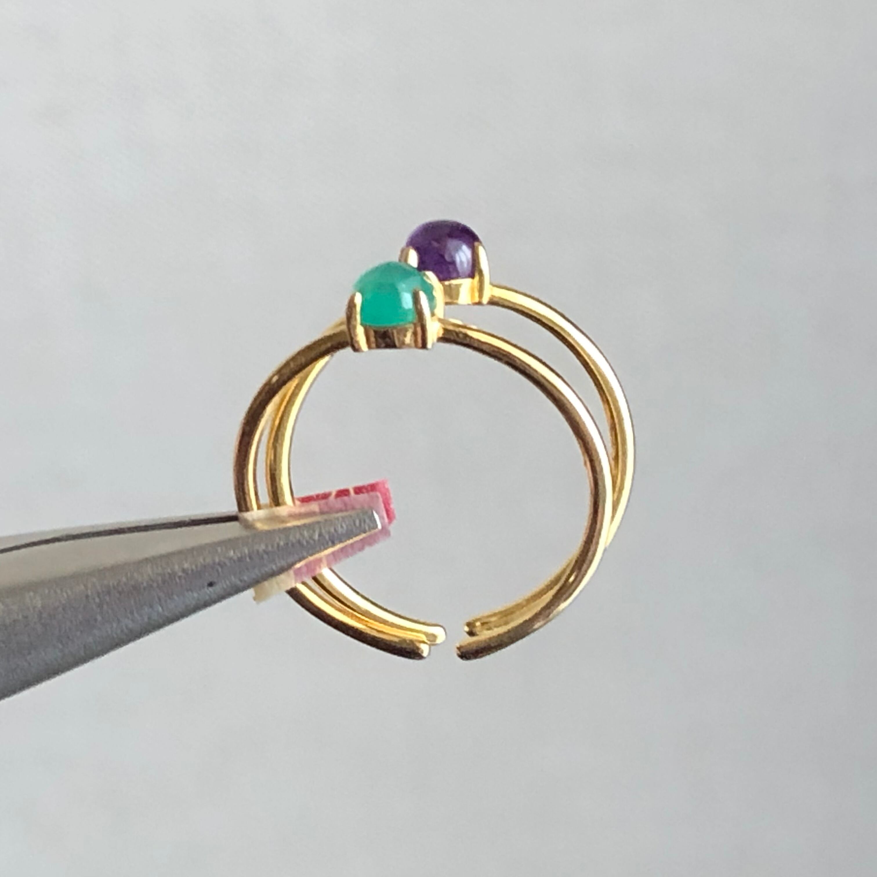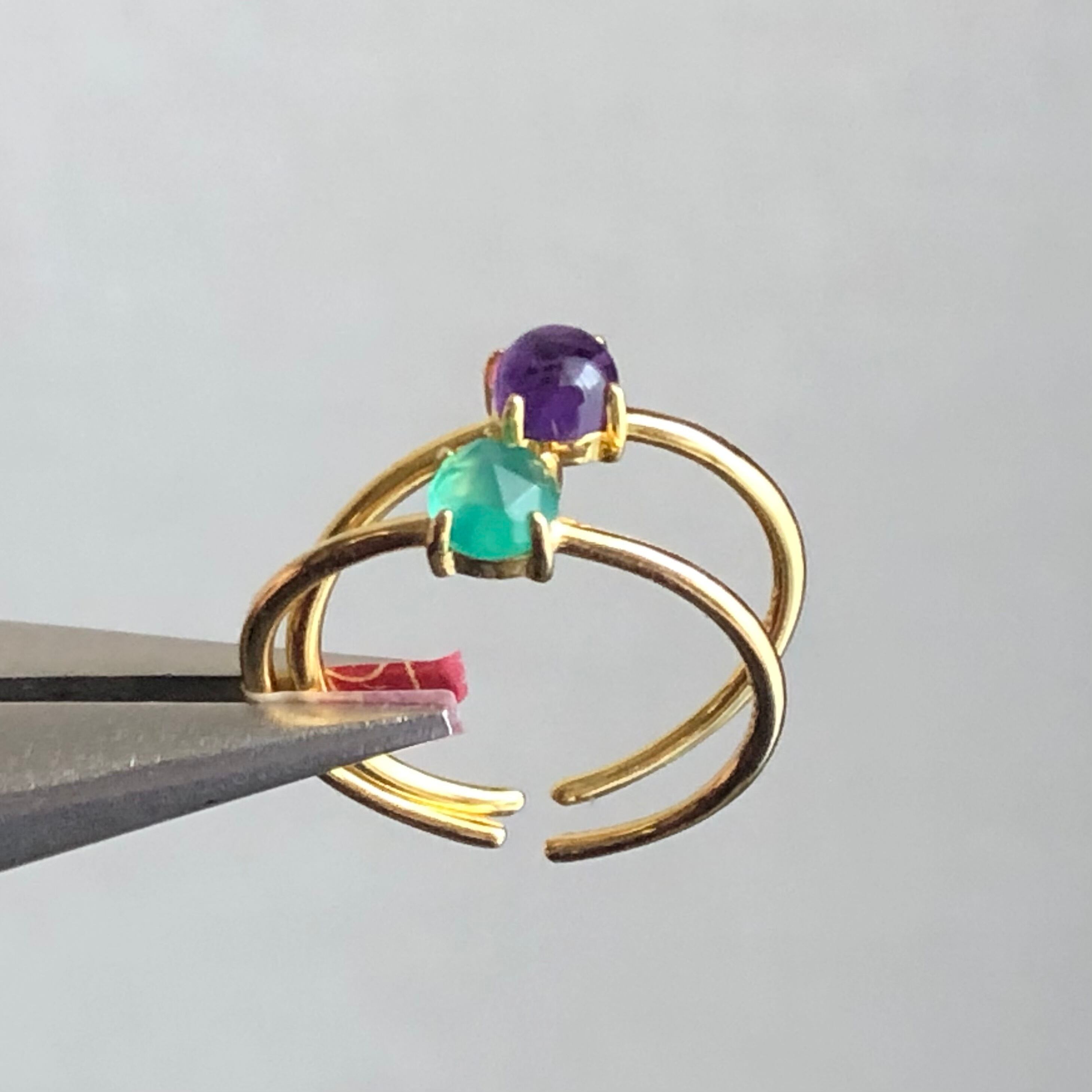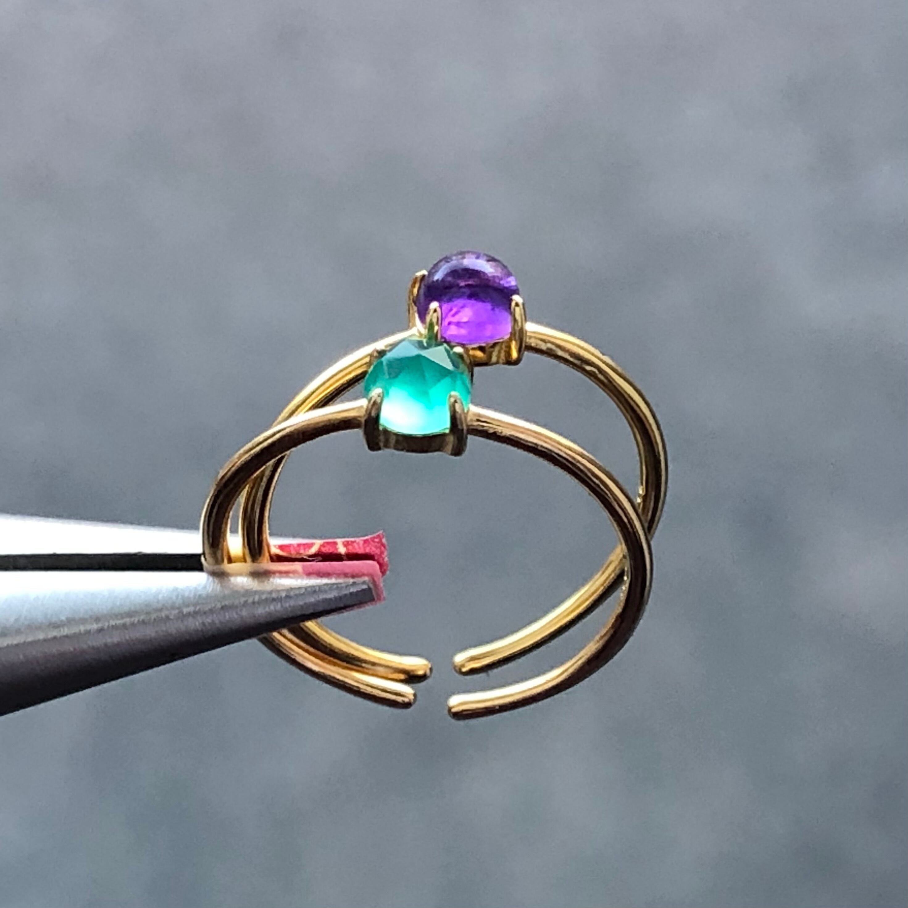 アメシストとローズカットのグリーンオニキスのリングセットです。