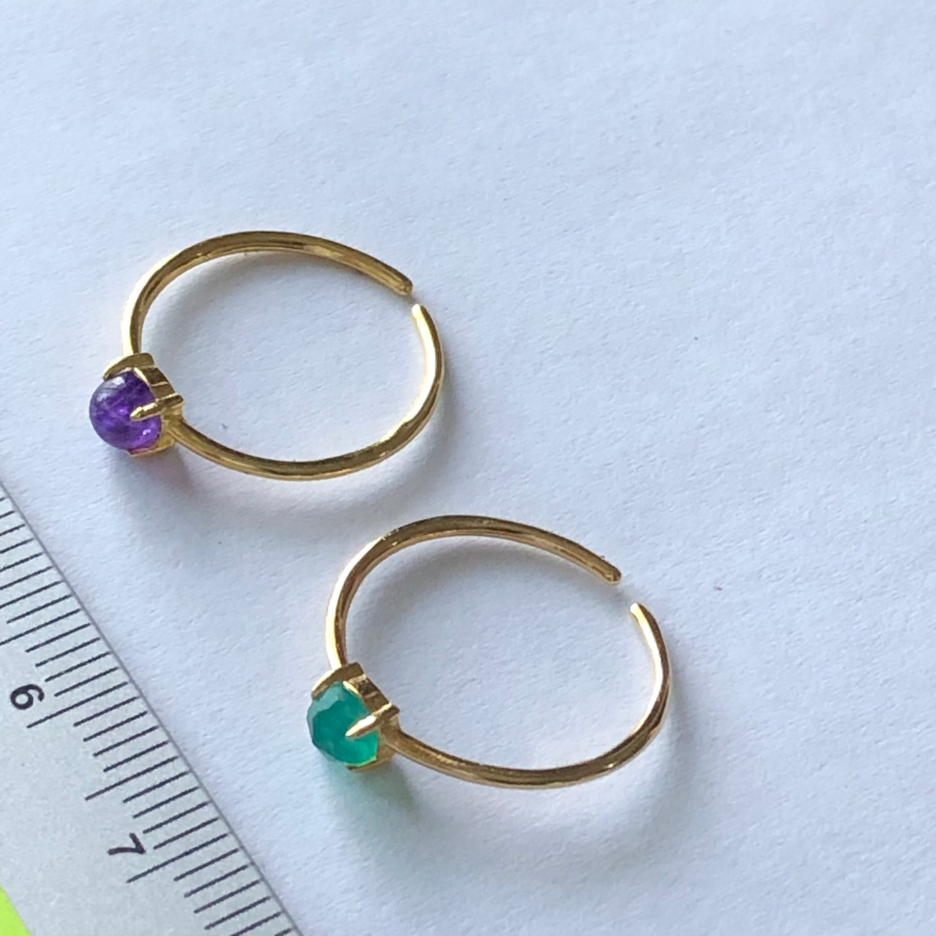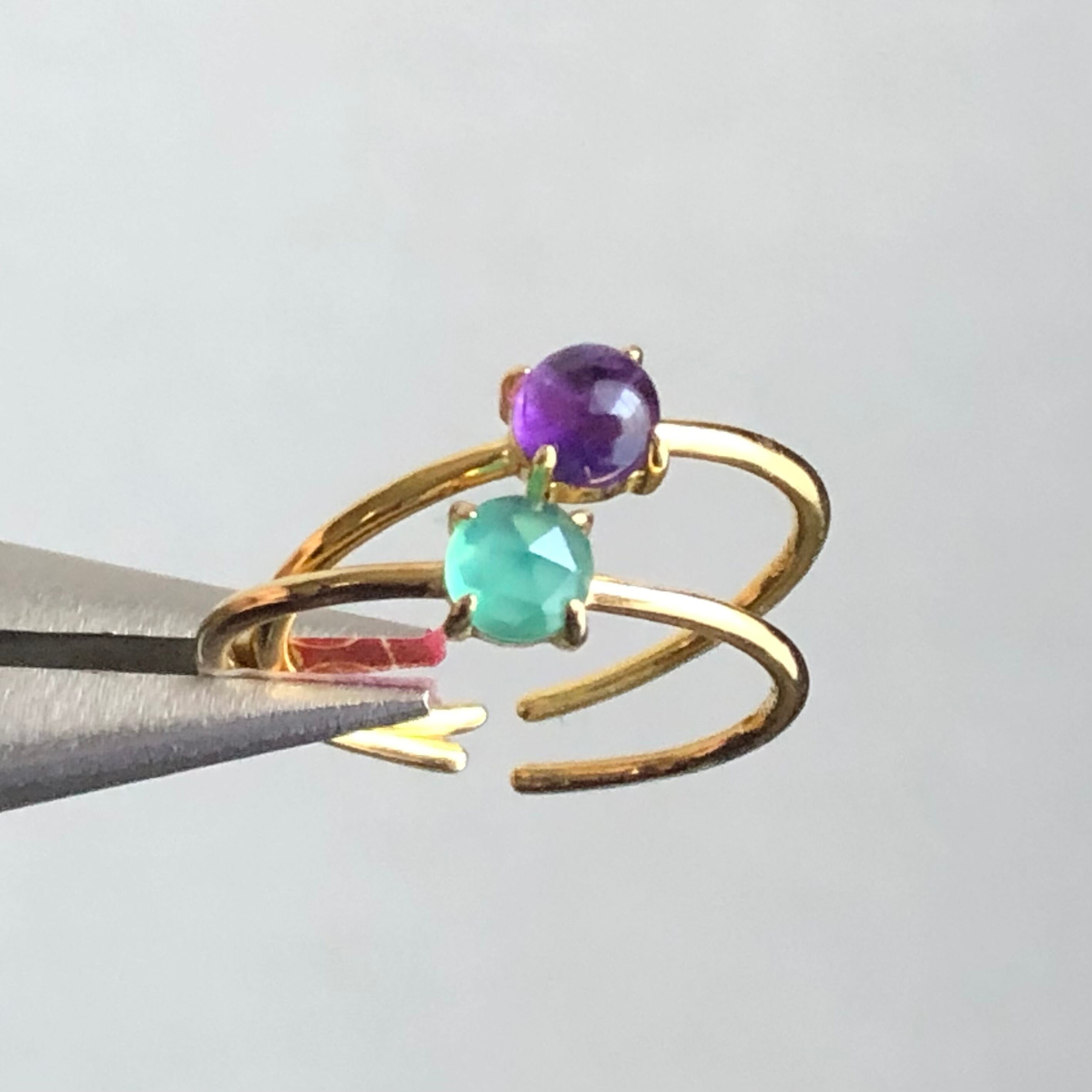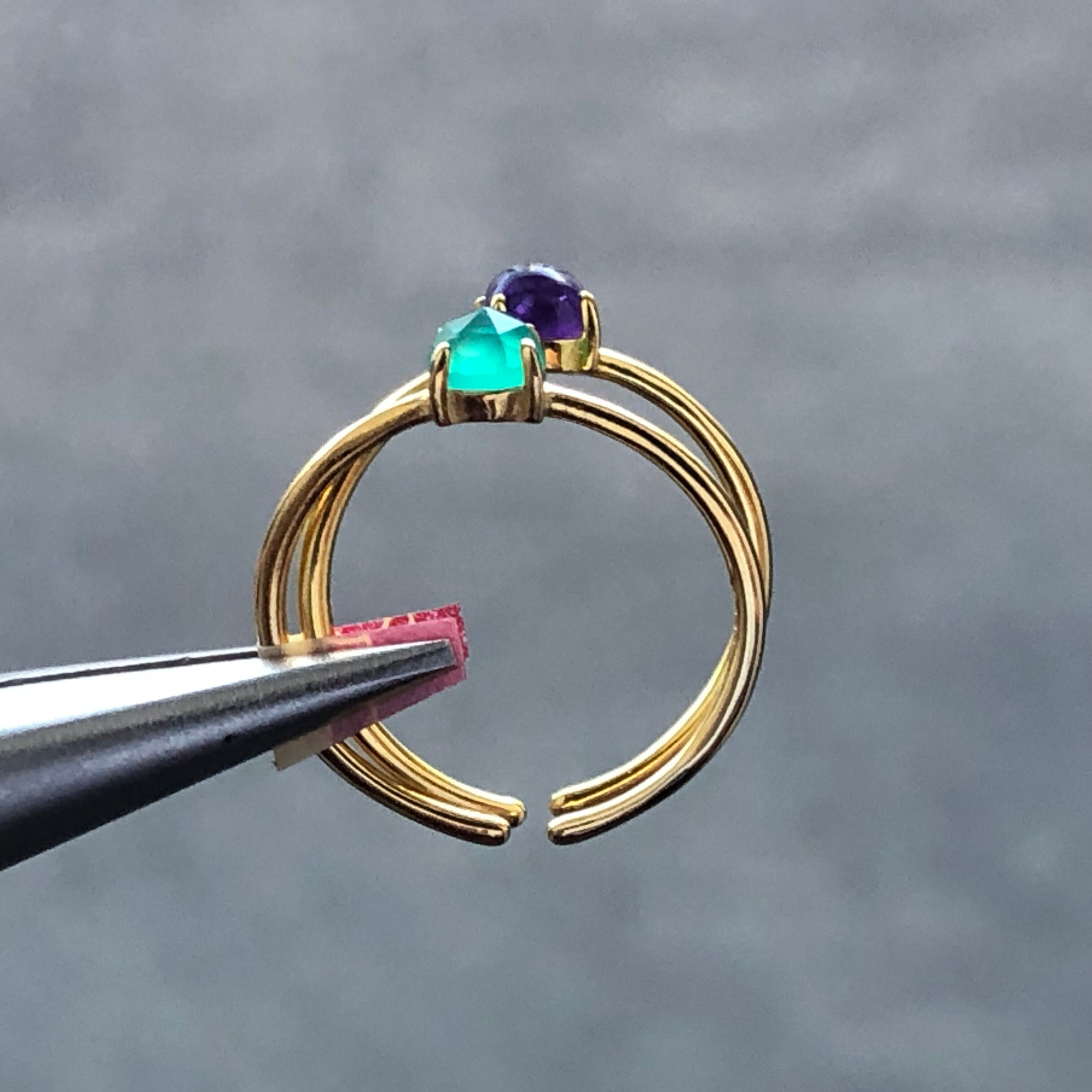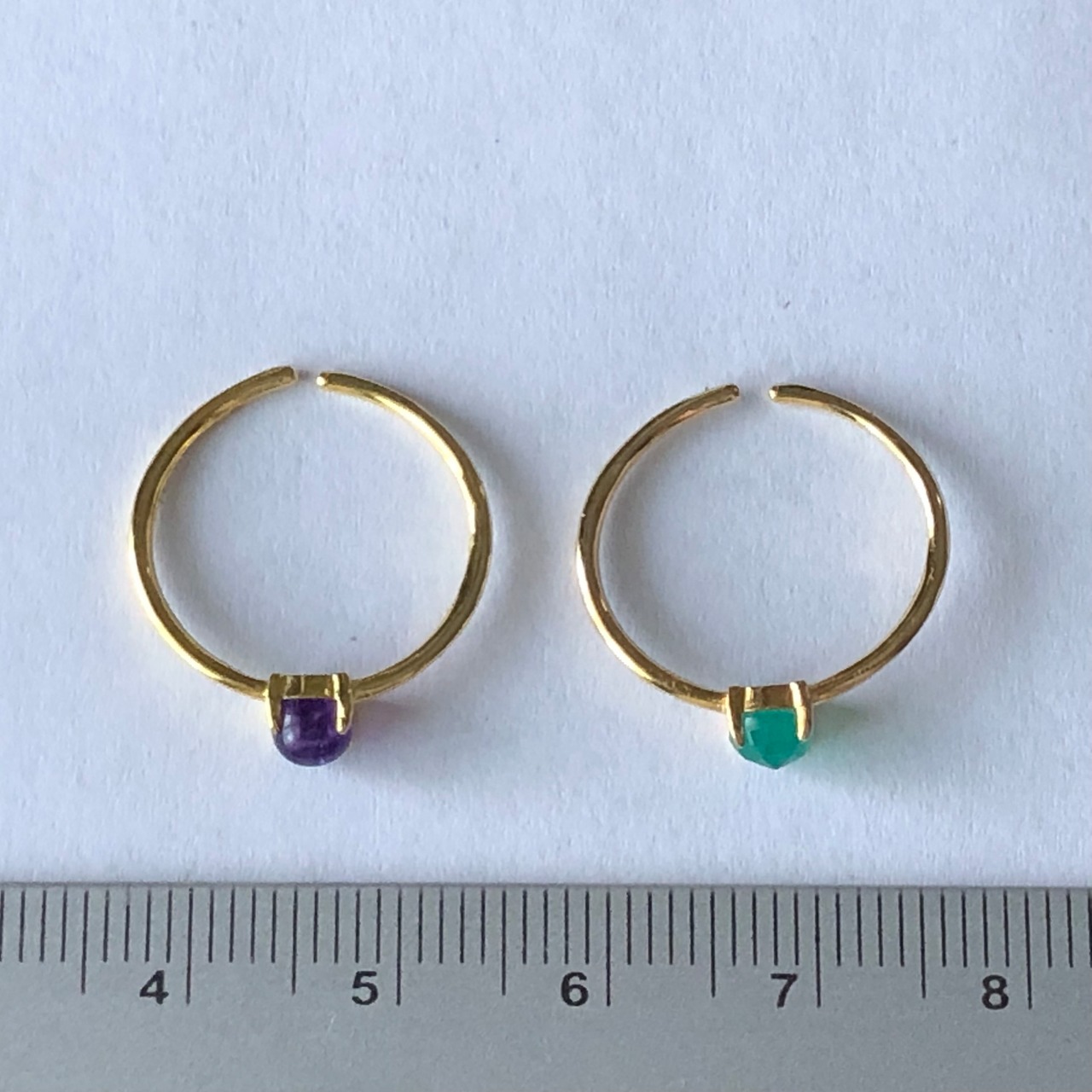 アメシストとローズカットのグリーンオニキスのリングセットです。