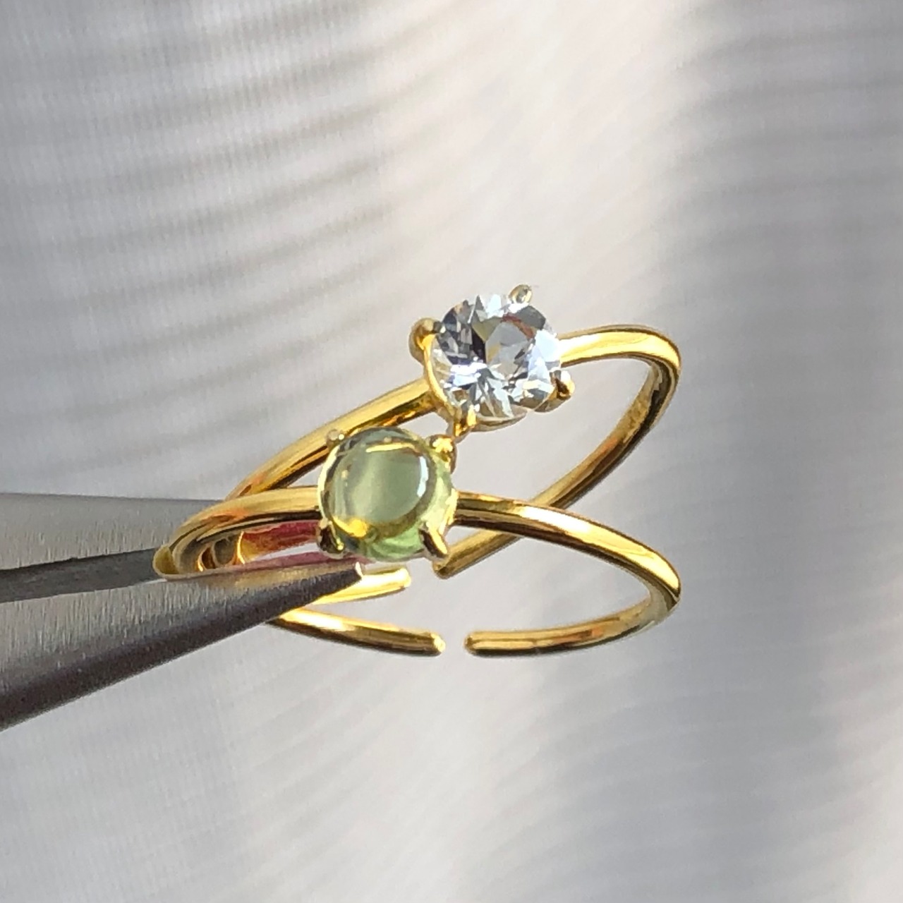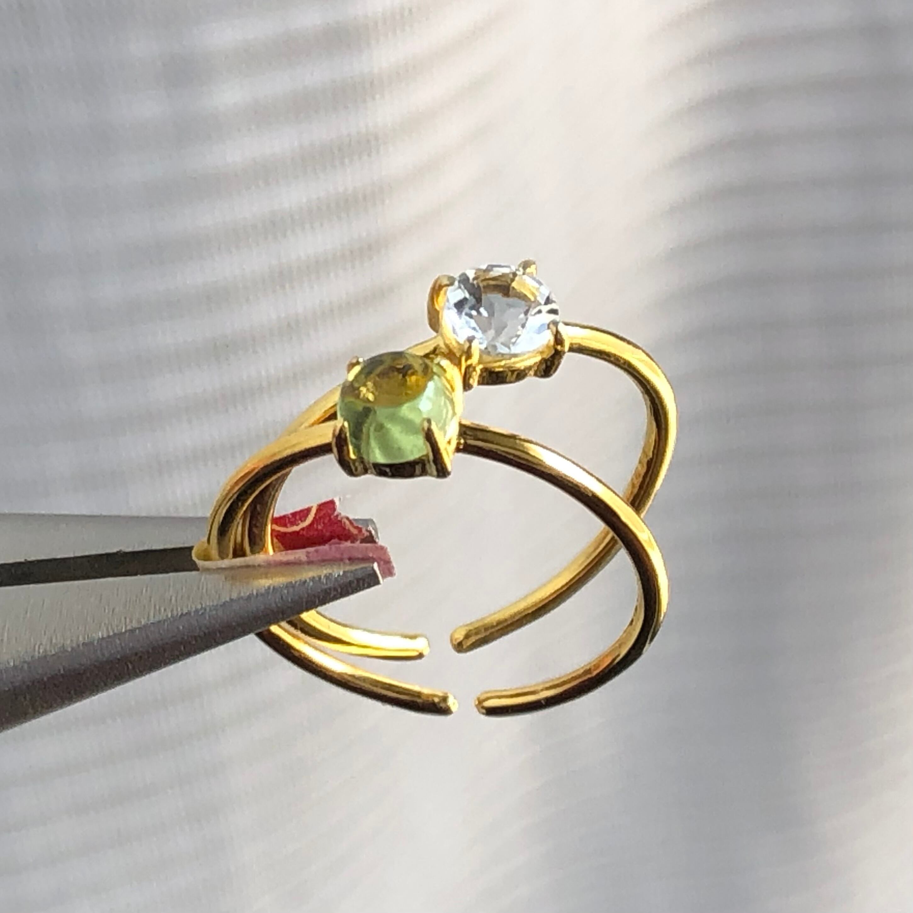 (ホワイトトパーズ4mm、ペリドット4mm)