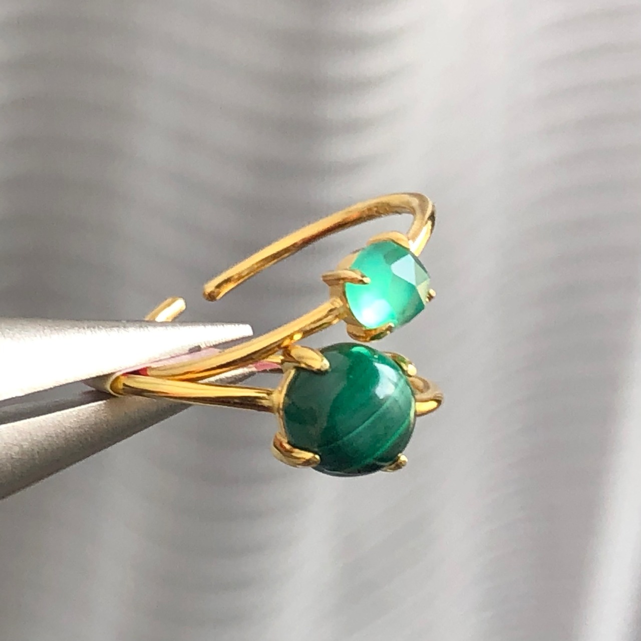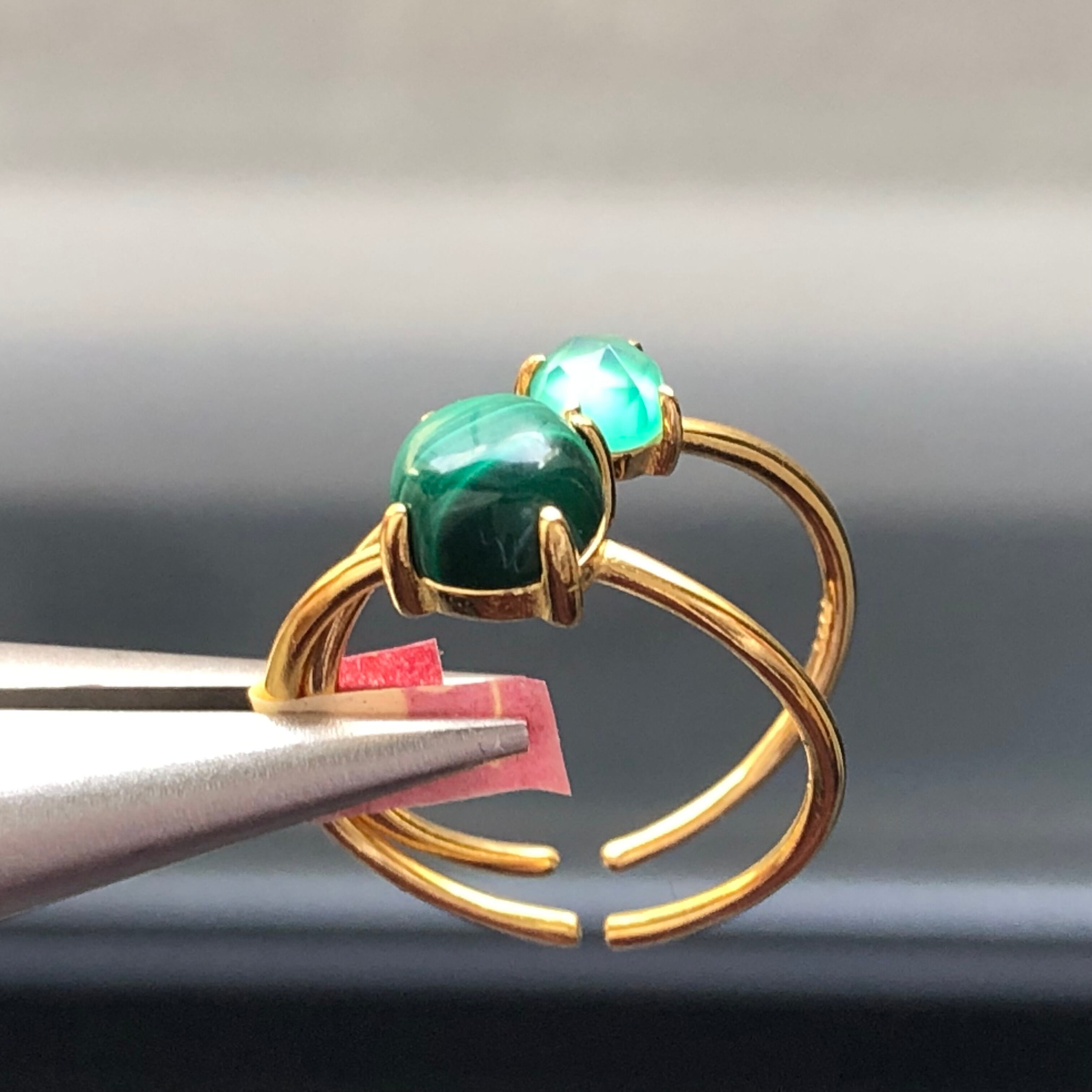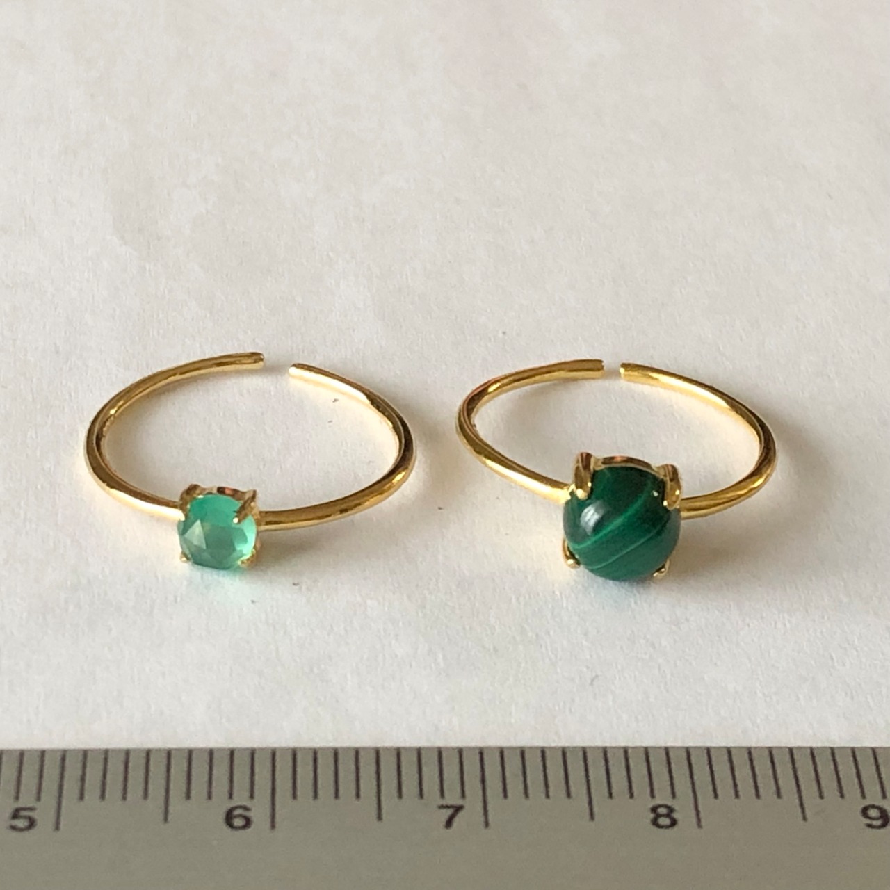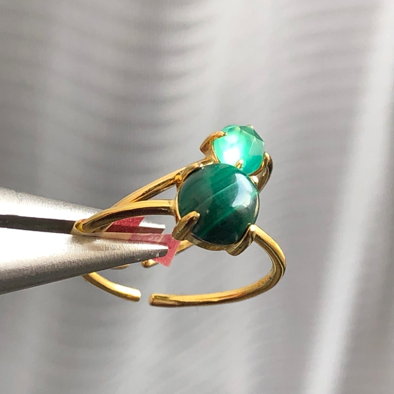 ローズカットのグリーンオニキスとマラカイトのリングセットです。
