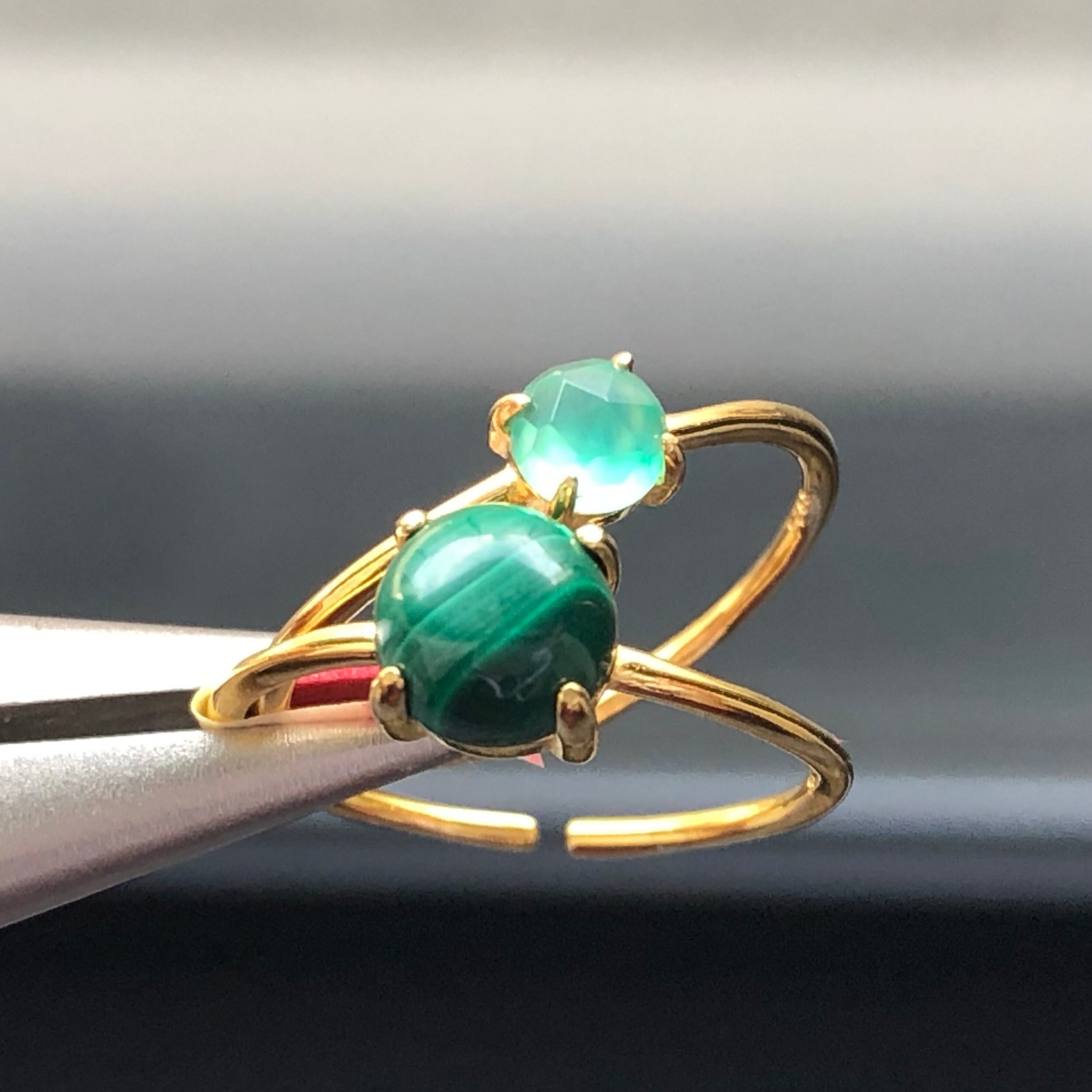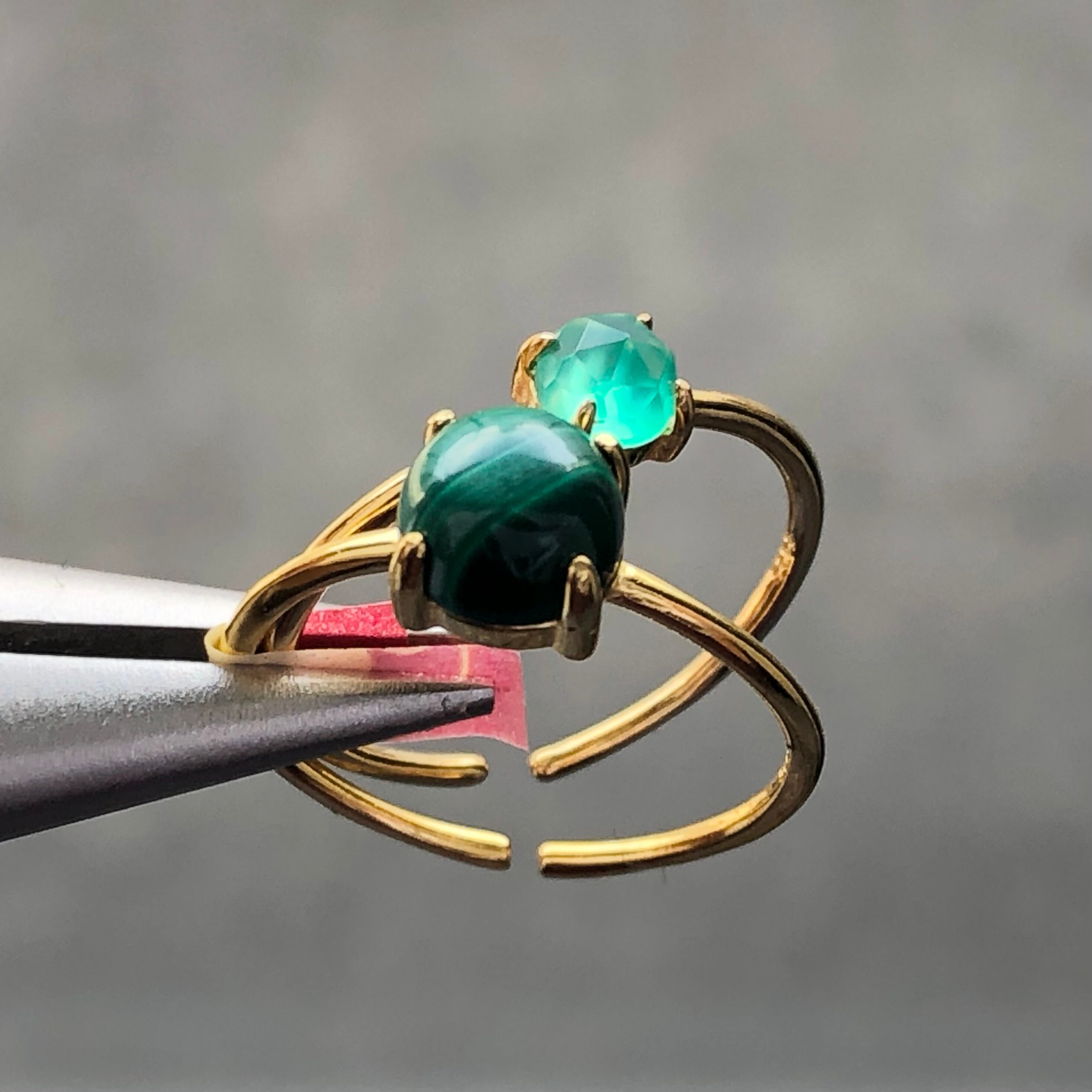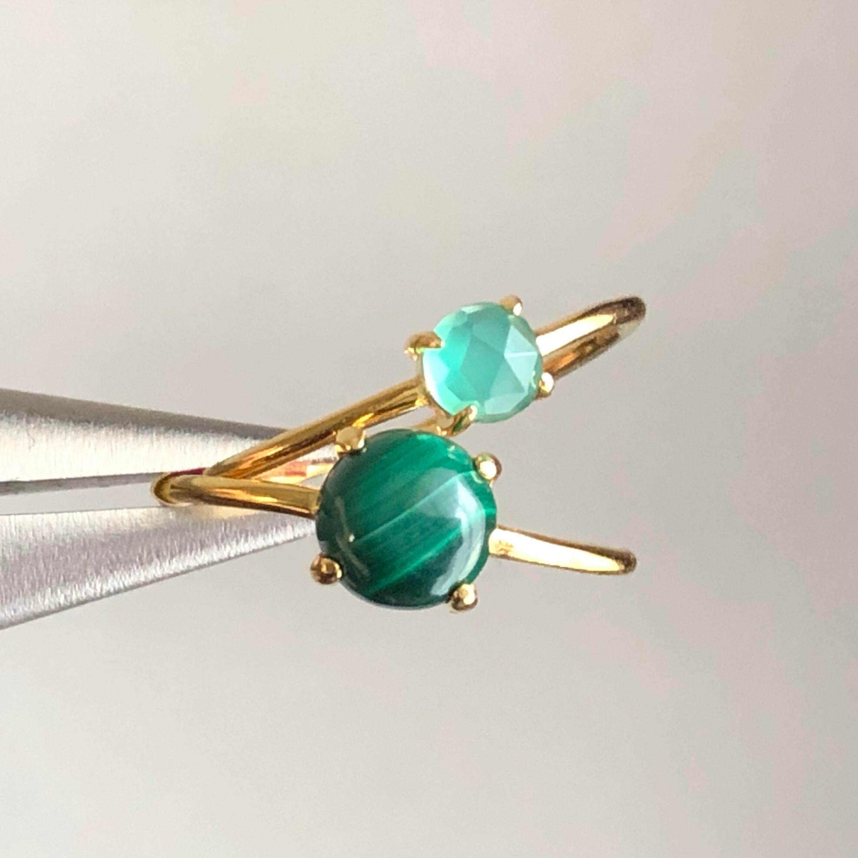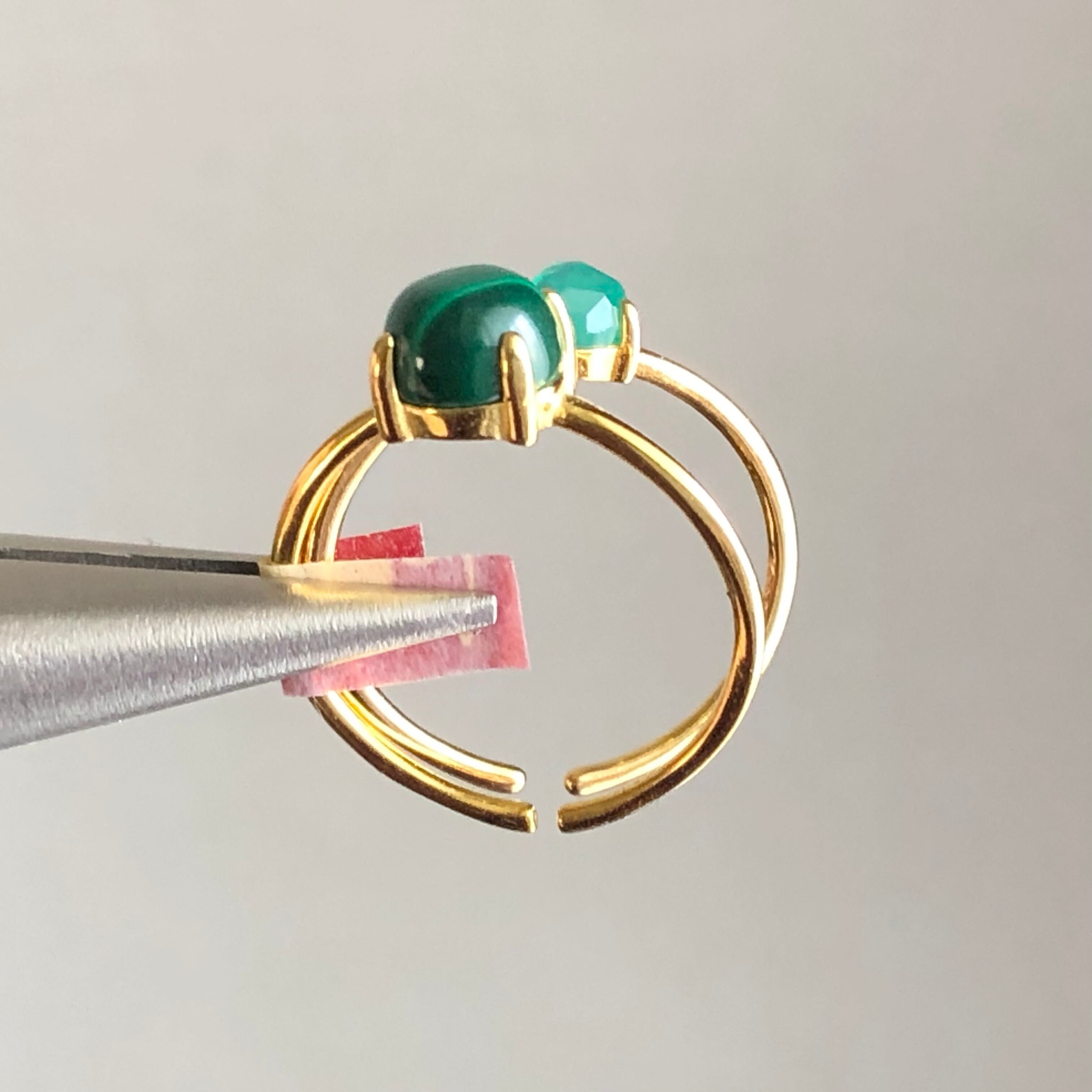 ローズカットのグリーンオニキスとマラカイトのリングセットです。