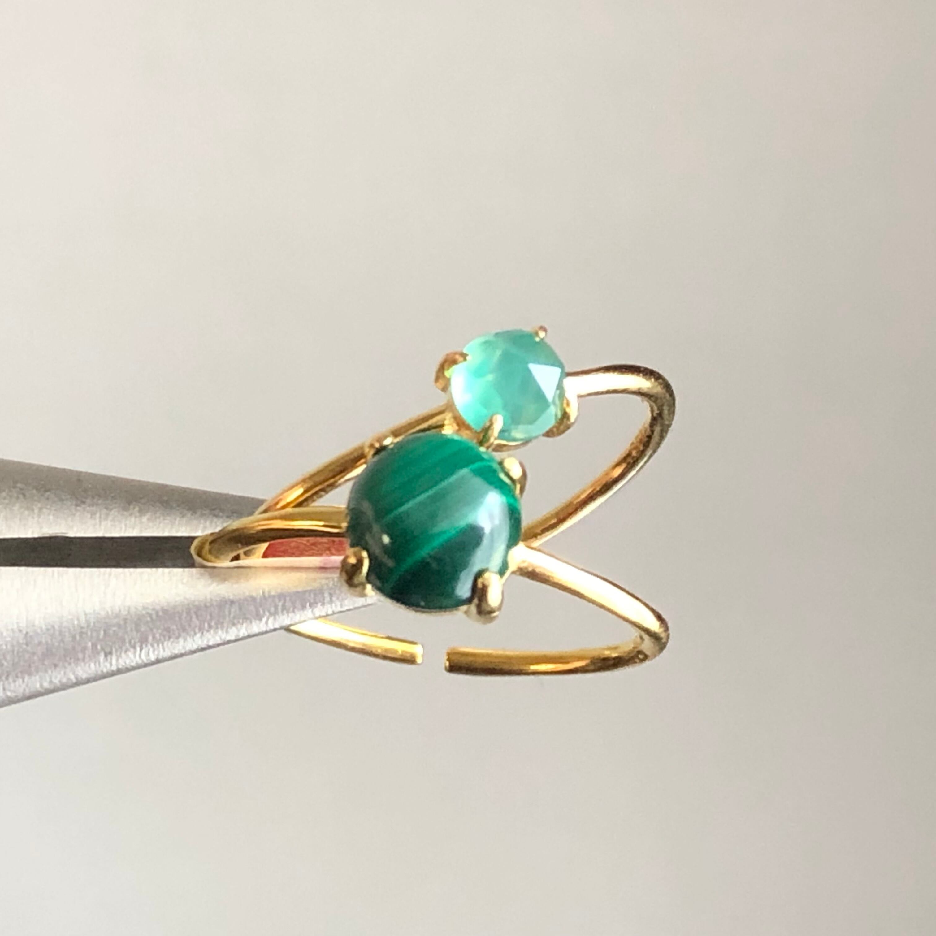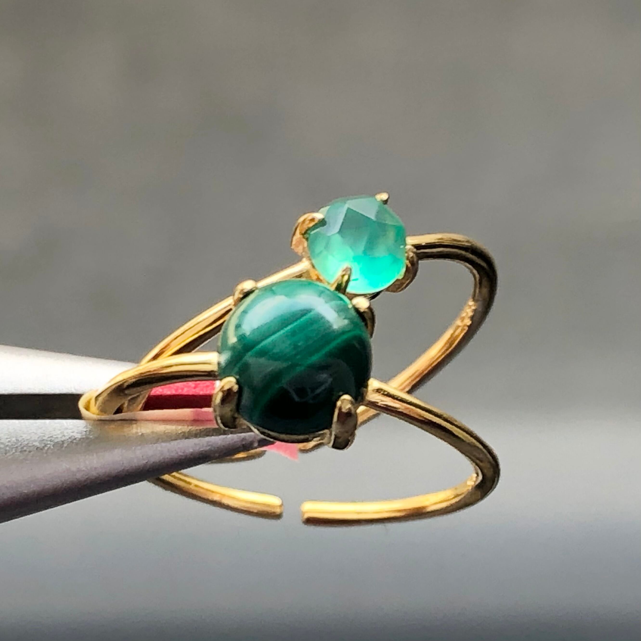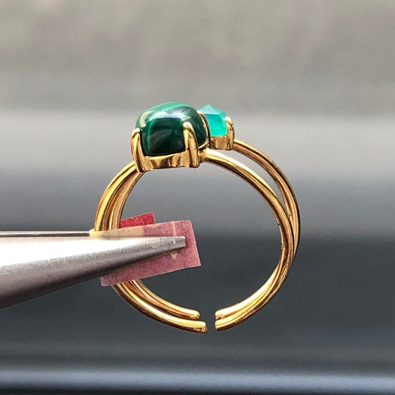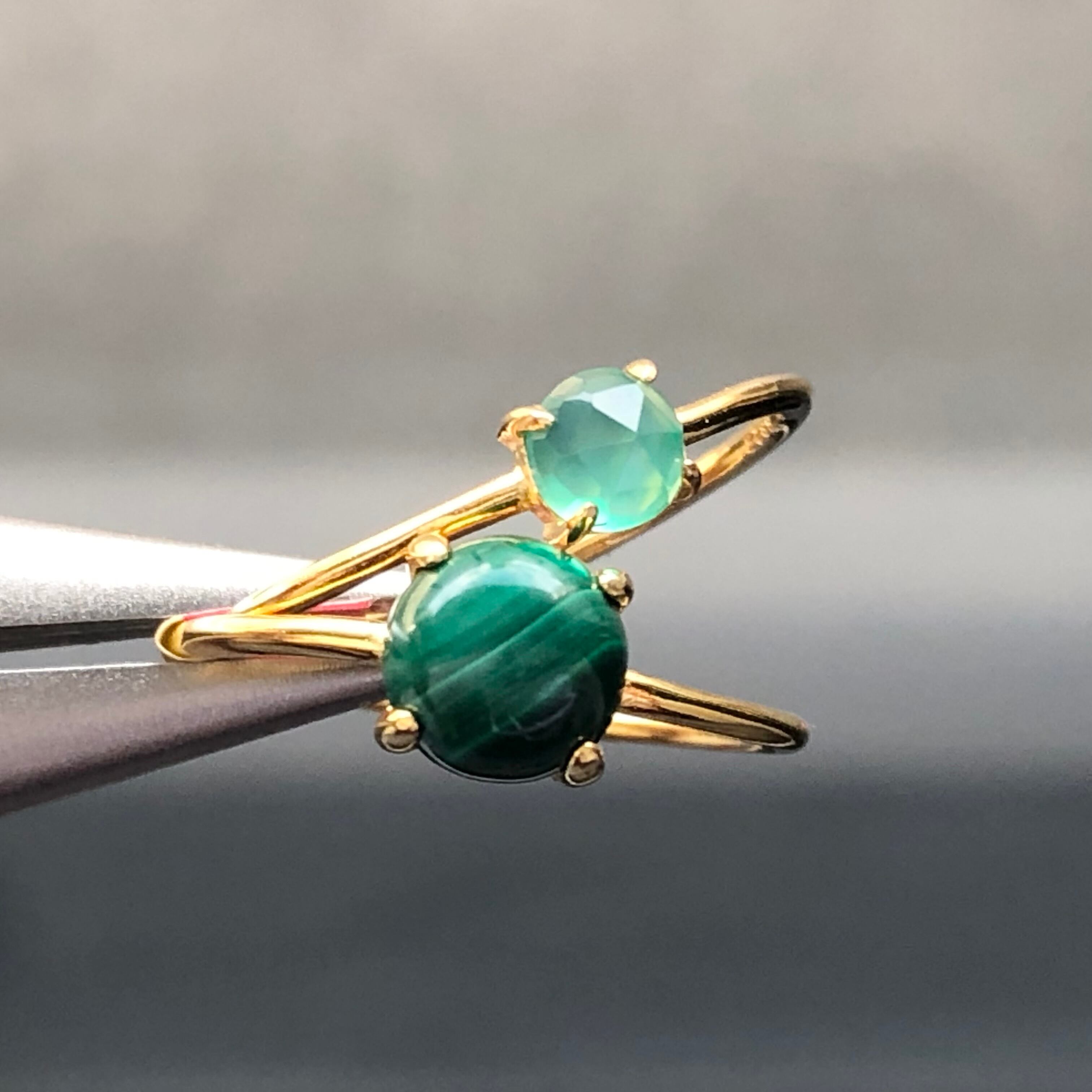 ローズカットのグリーンオニキスとマラカイトのリングセットです。