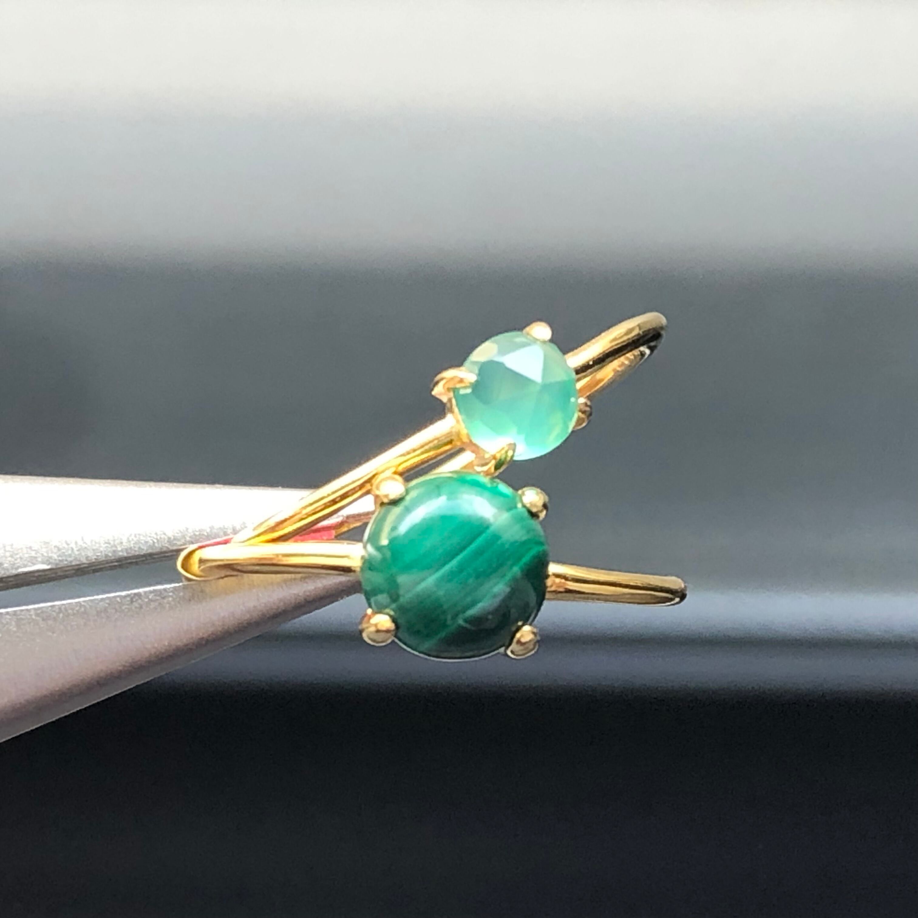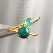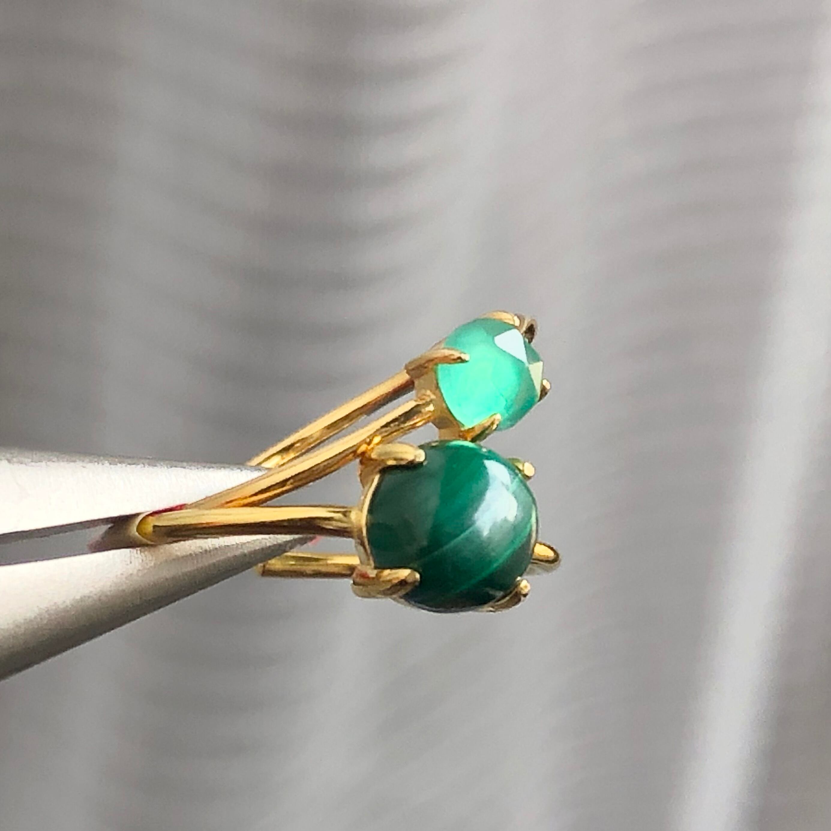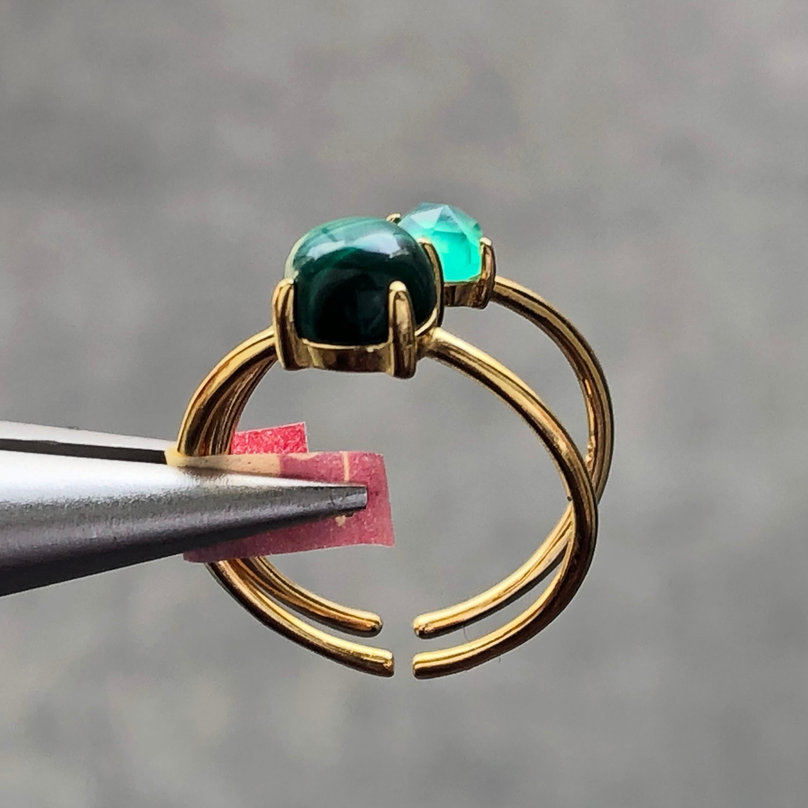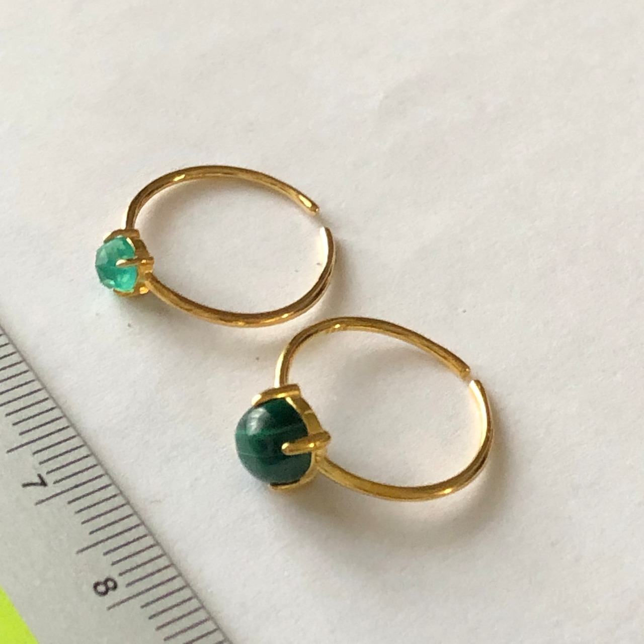ローズカットのグリーンオニキスとマラカイトのリングセットです。