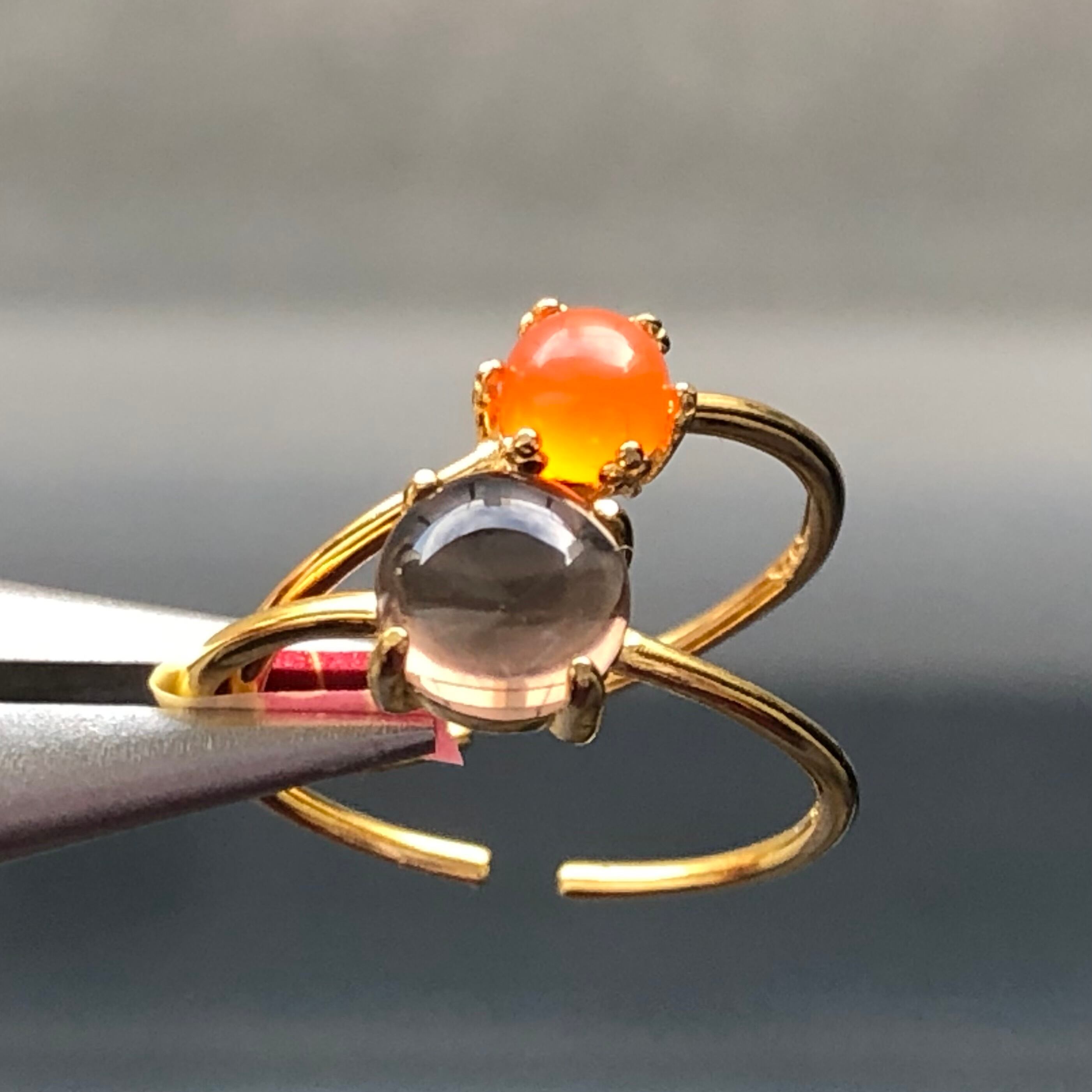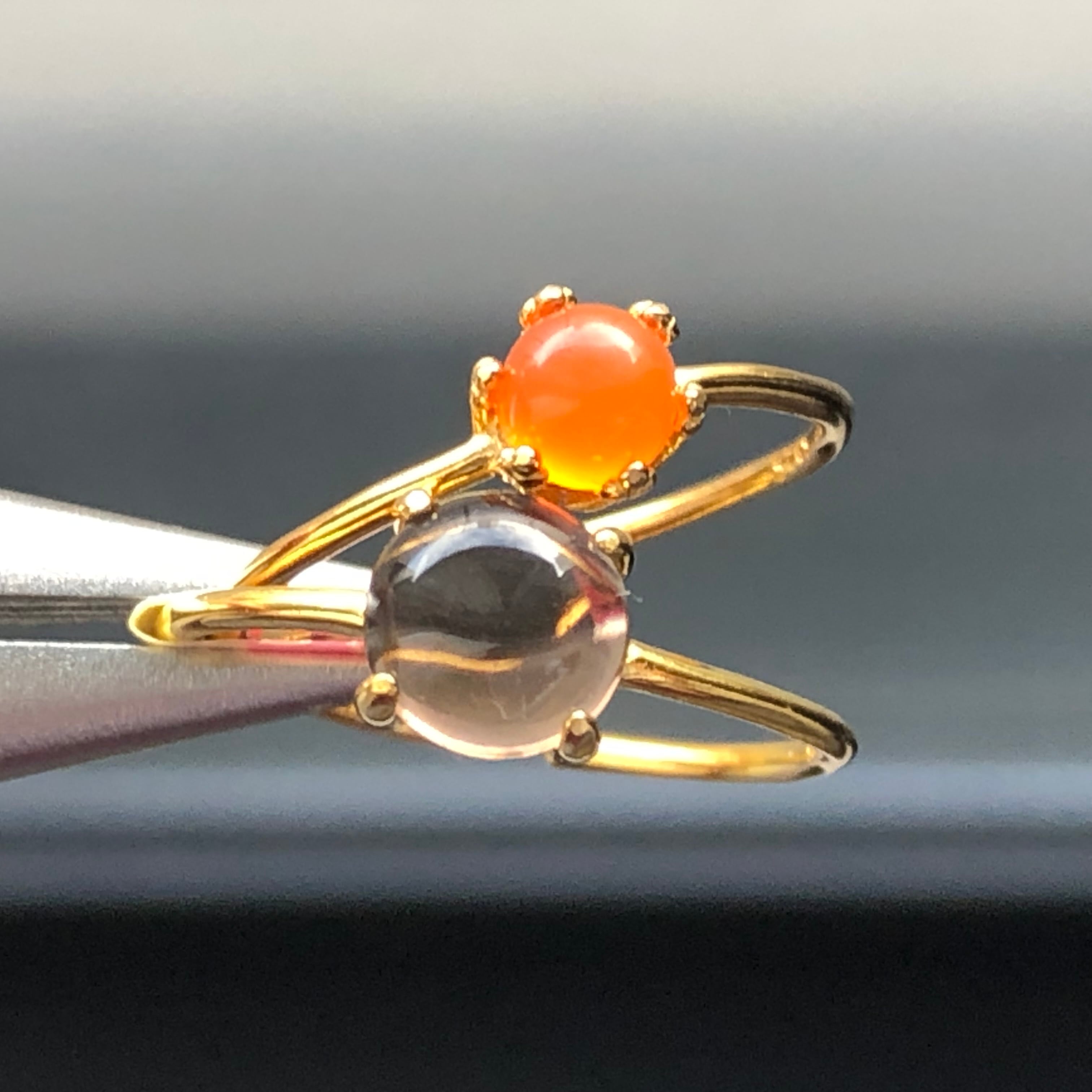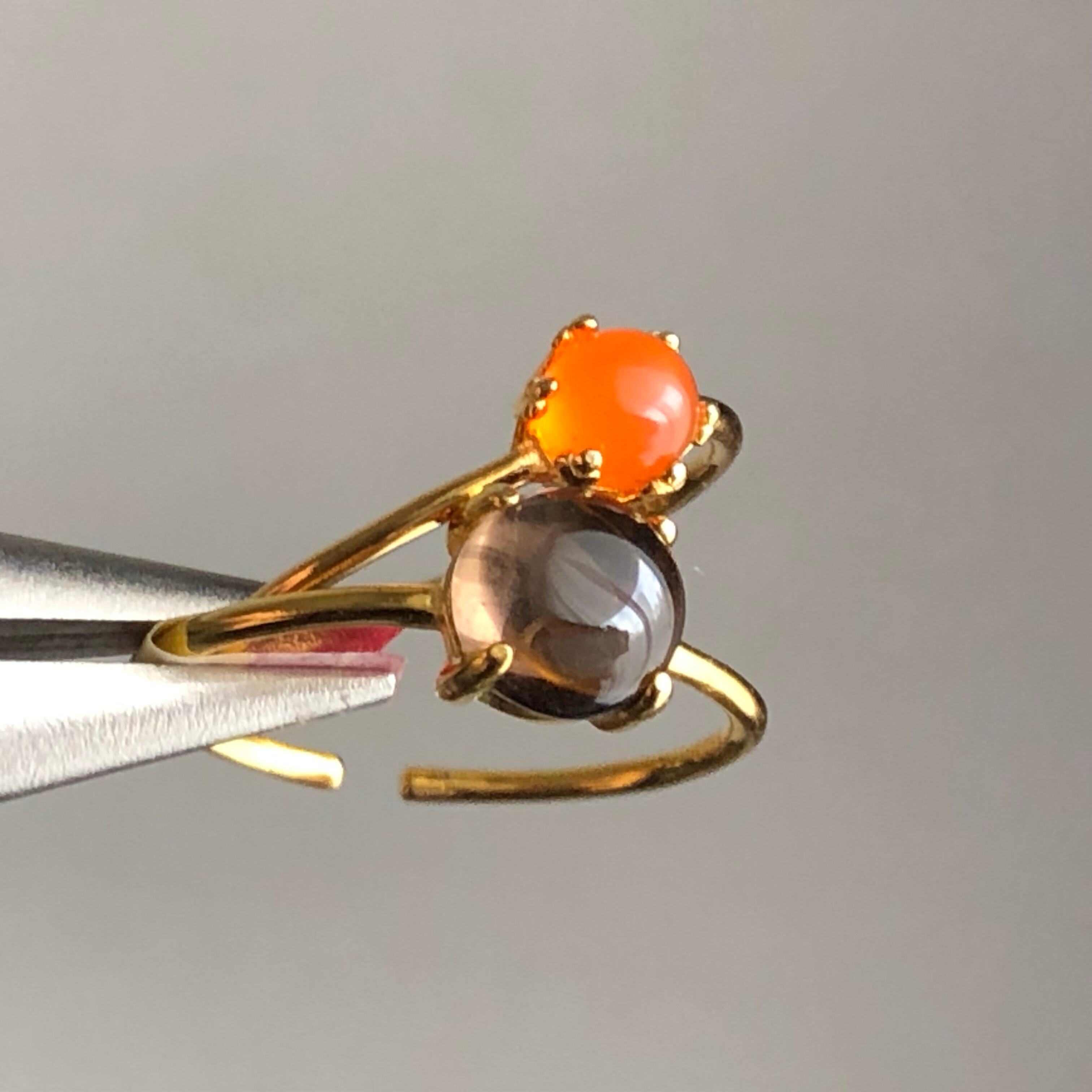 (カーネリアン4mm、スモーキークォーツ6mm)