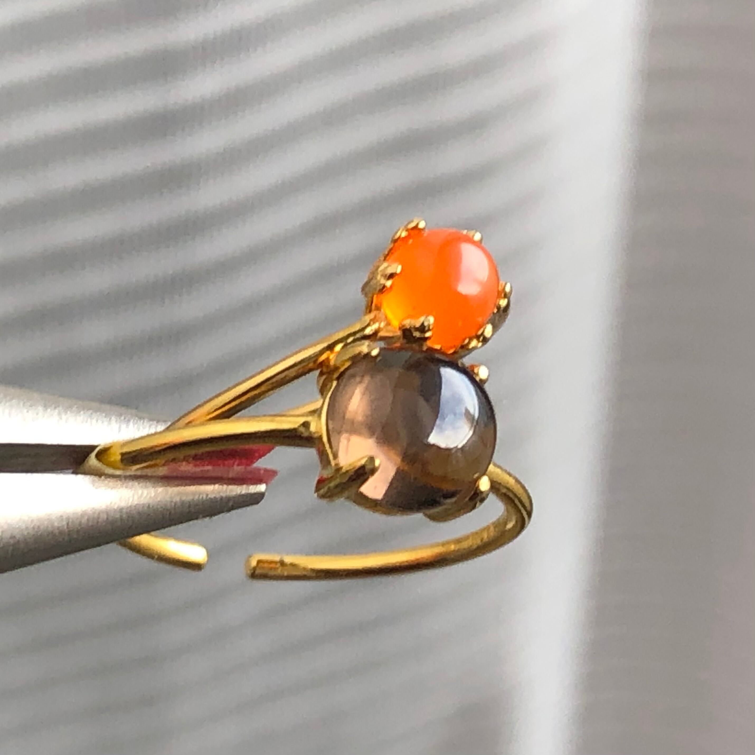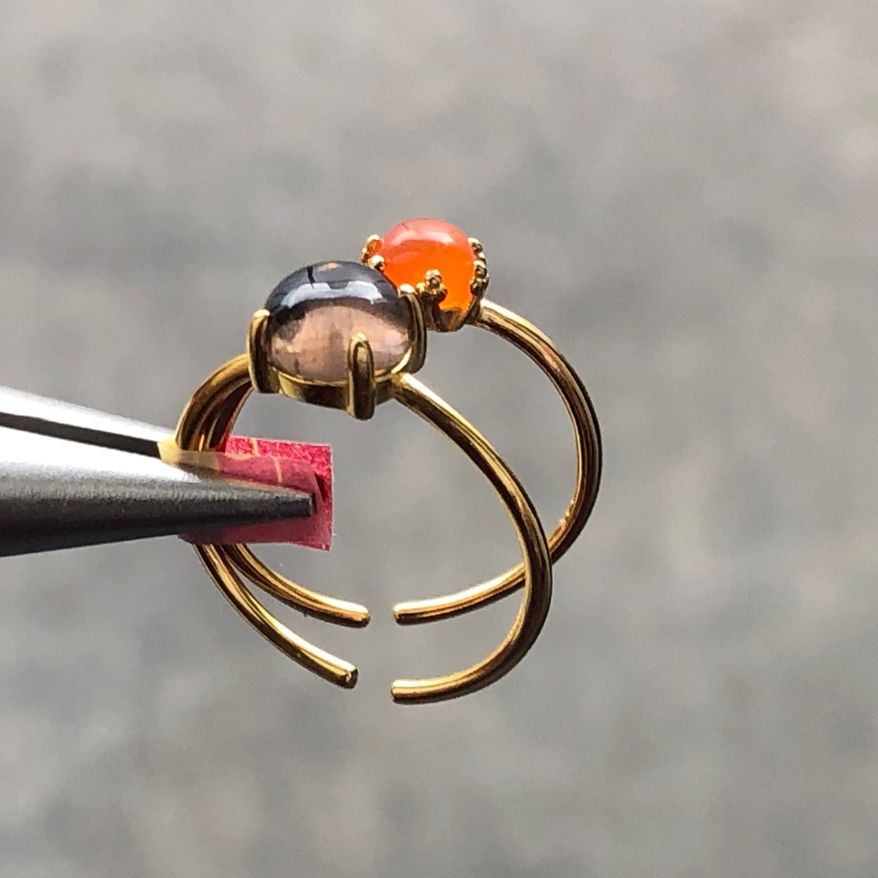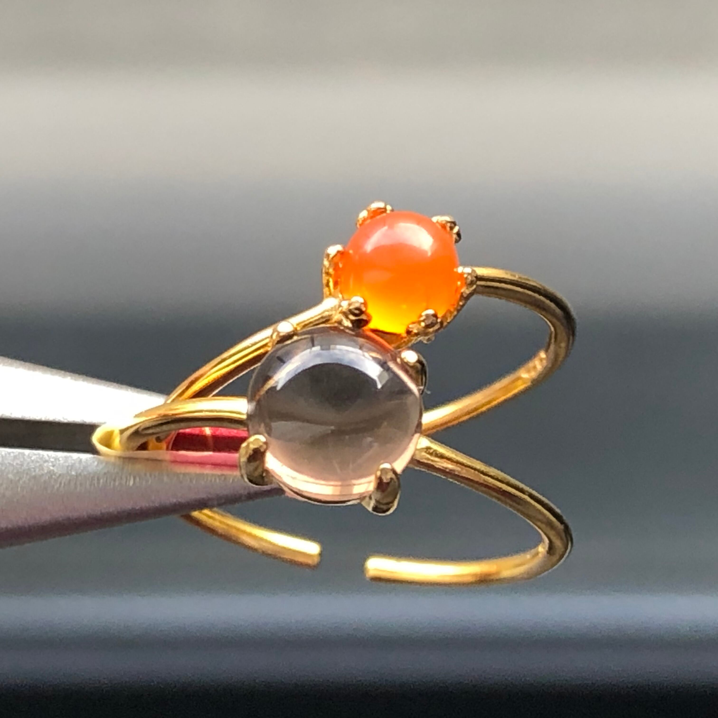 (カーネリアン4mm、スモーキークォーツ6mm)