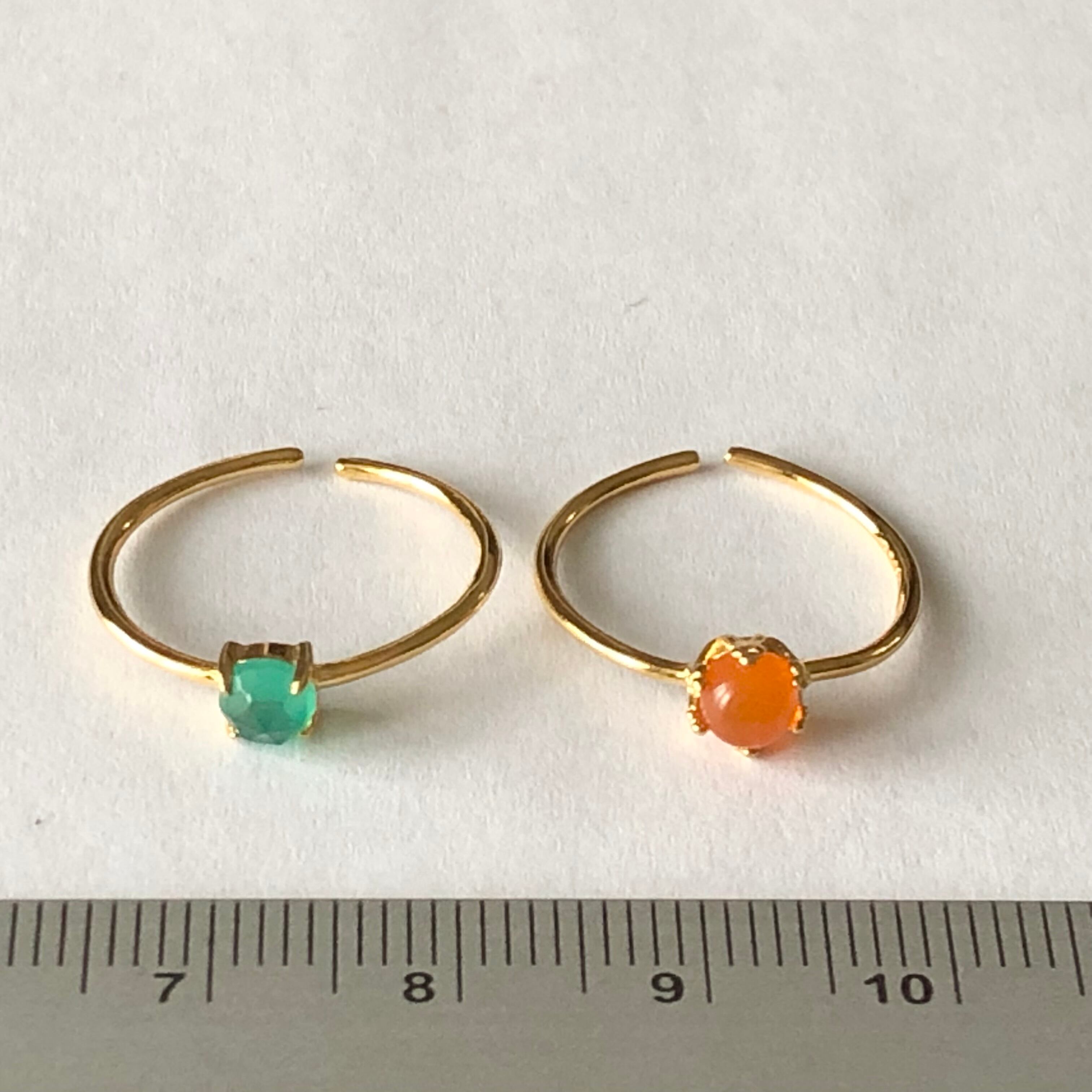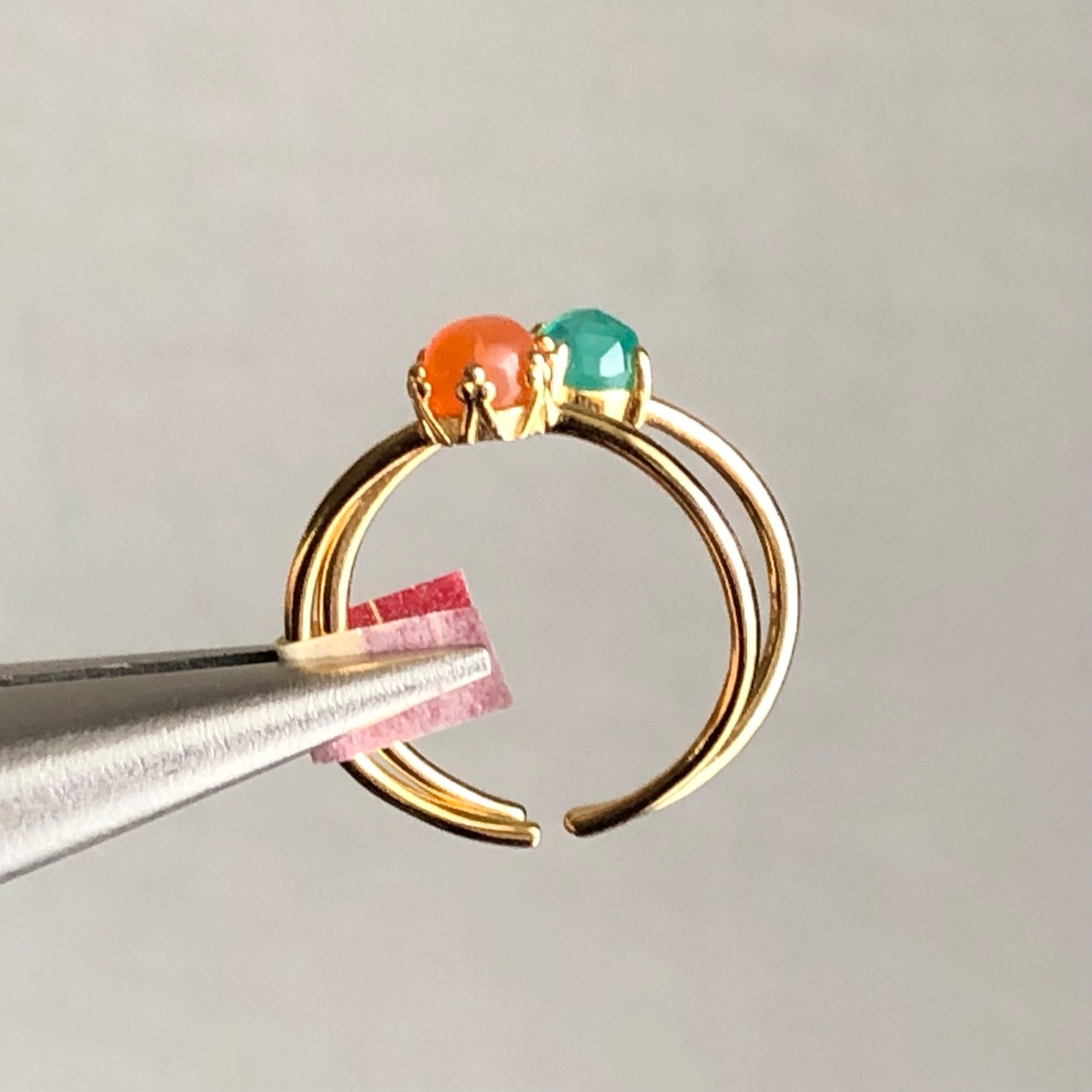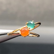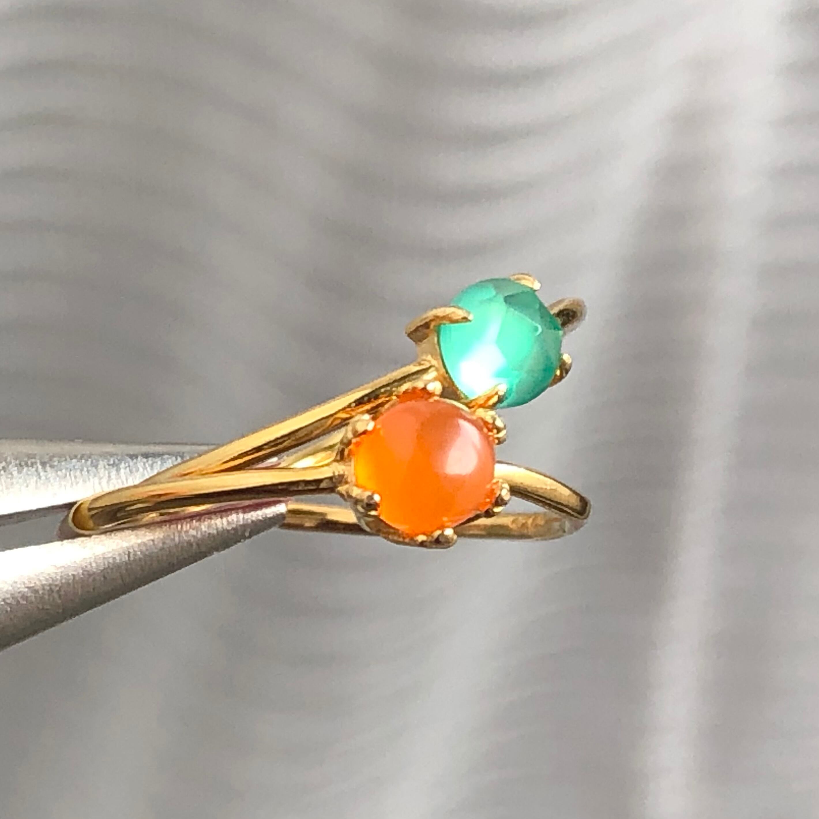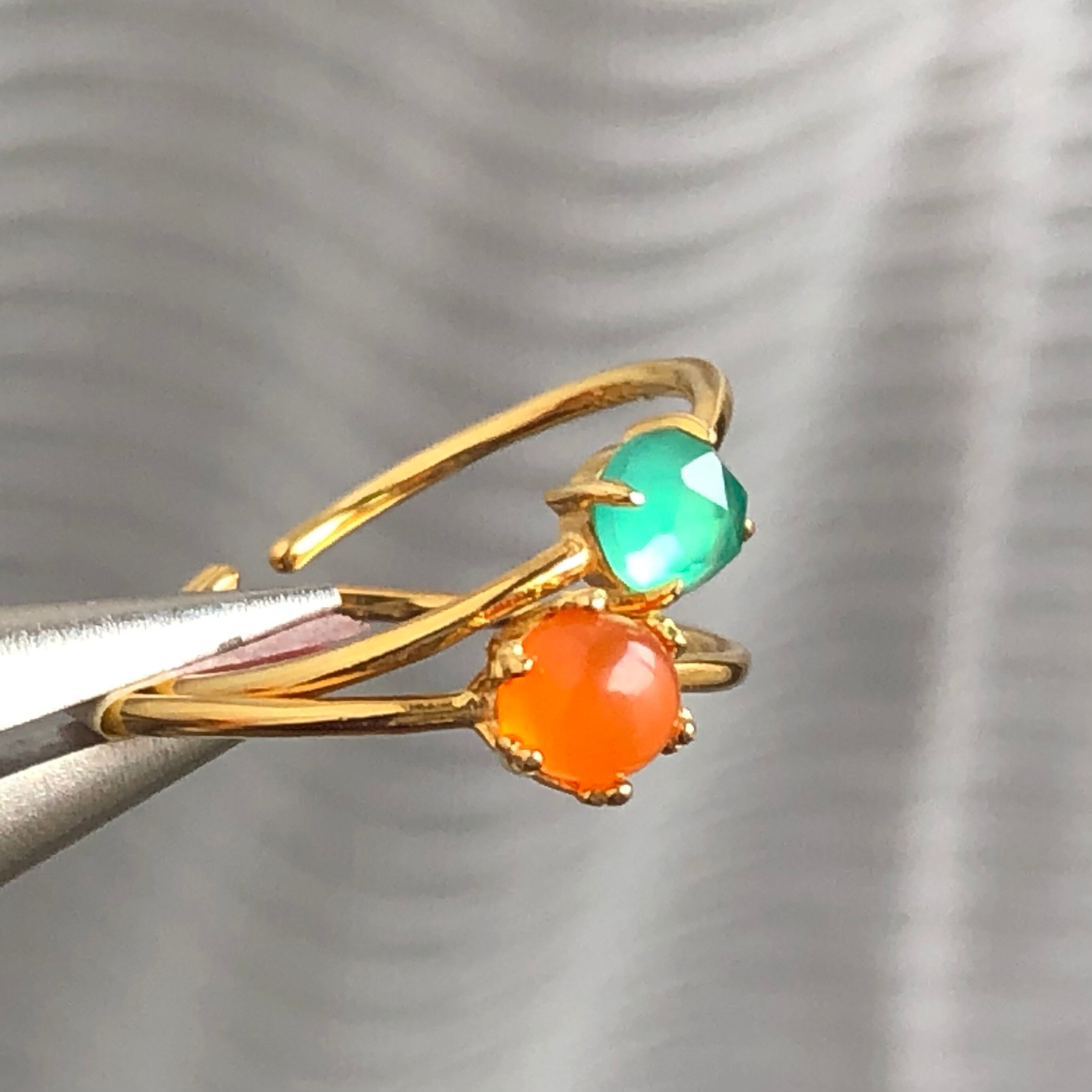 ローズカットのグリーンオニキスとカーネリアンのリングセットです。