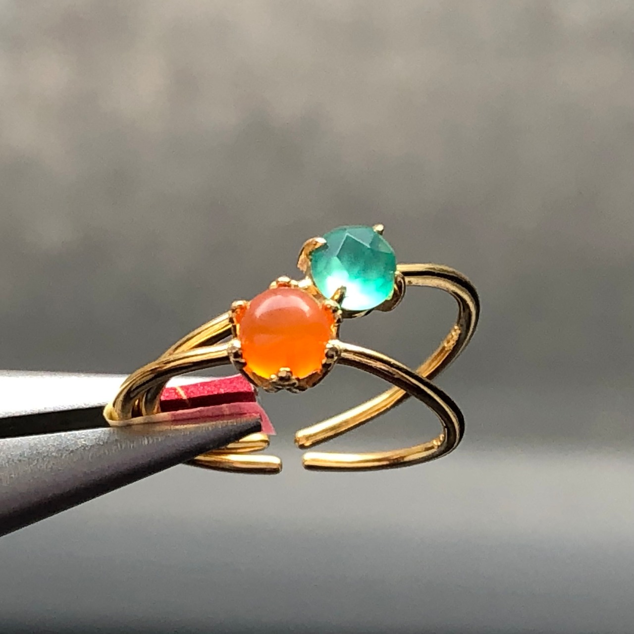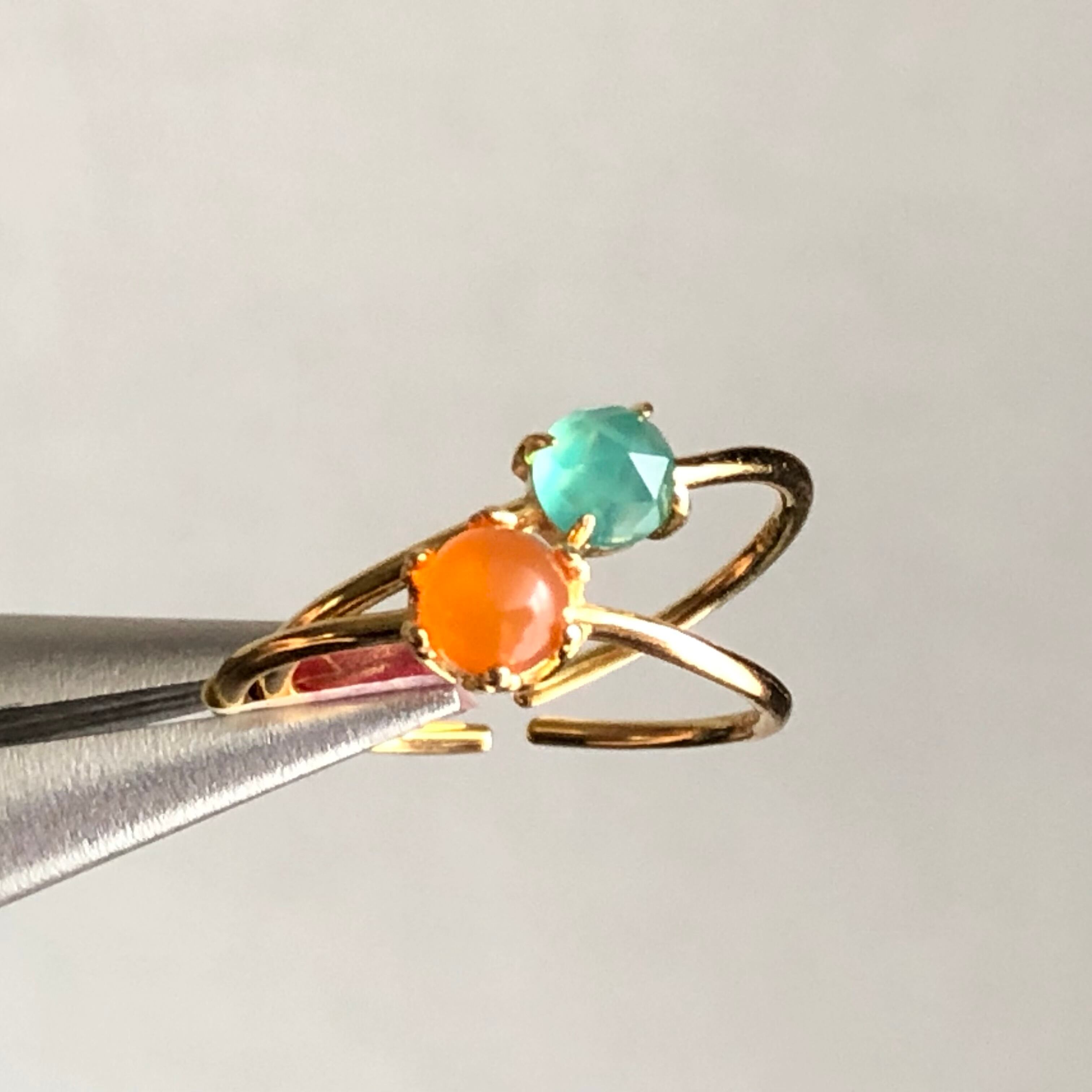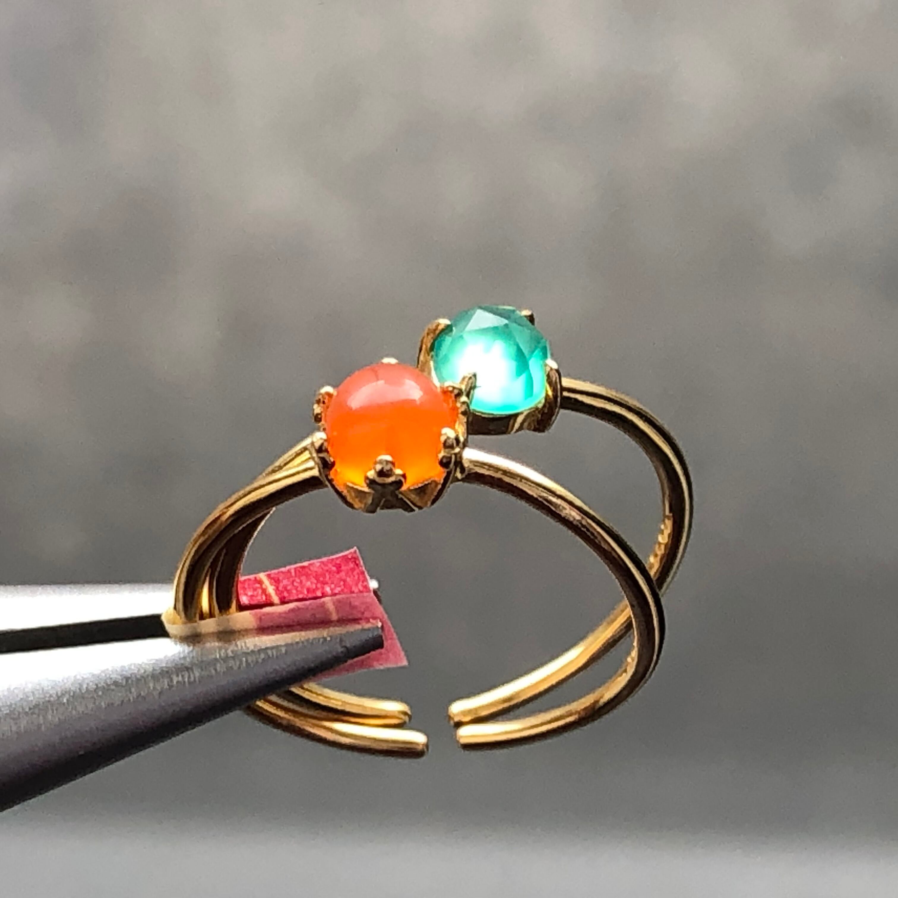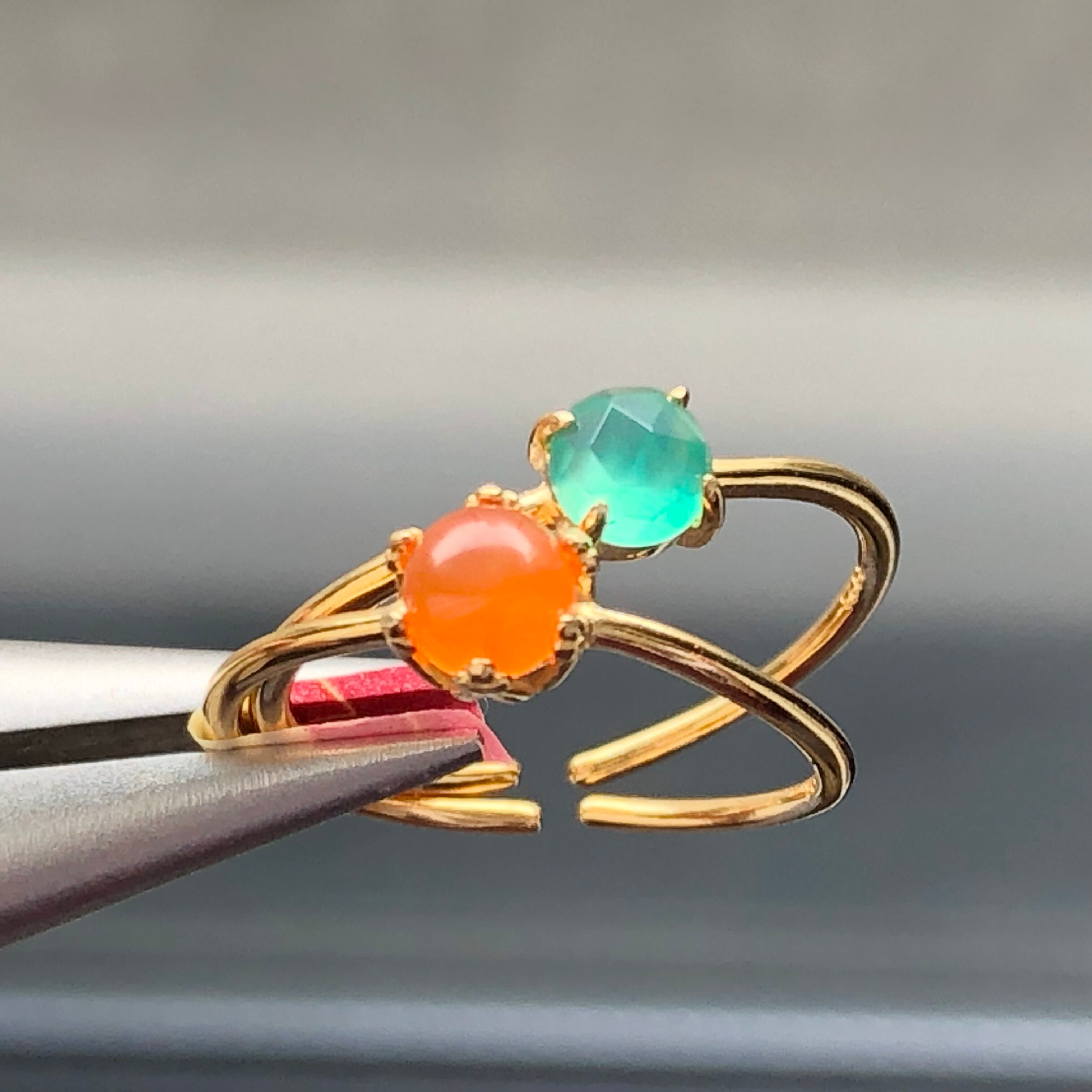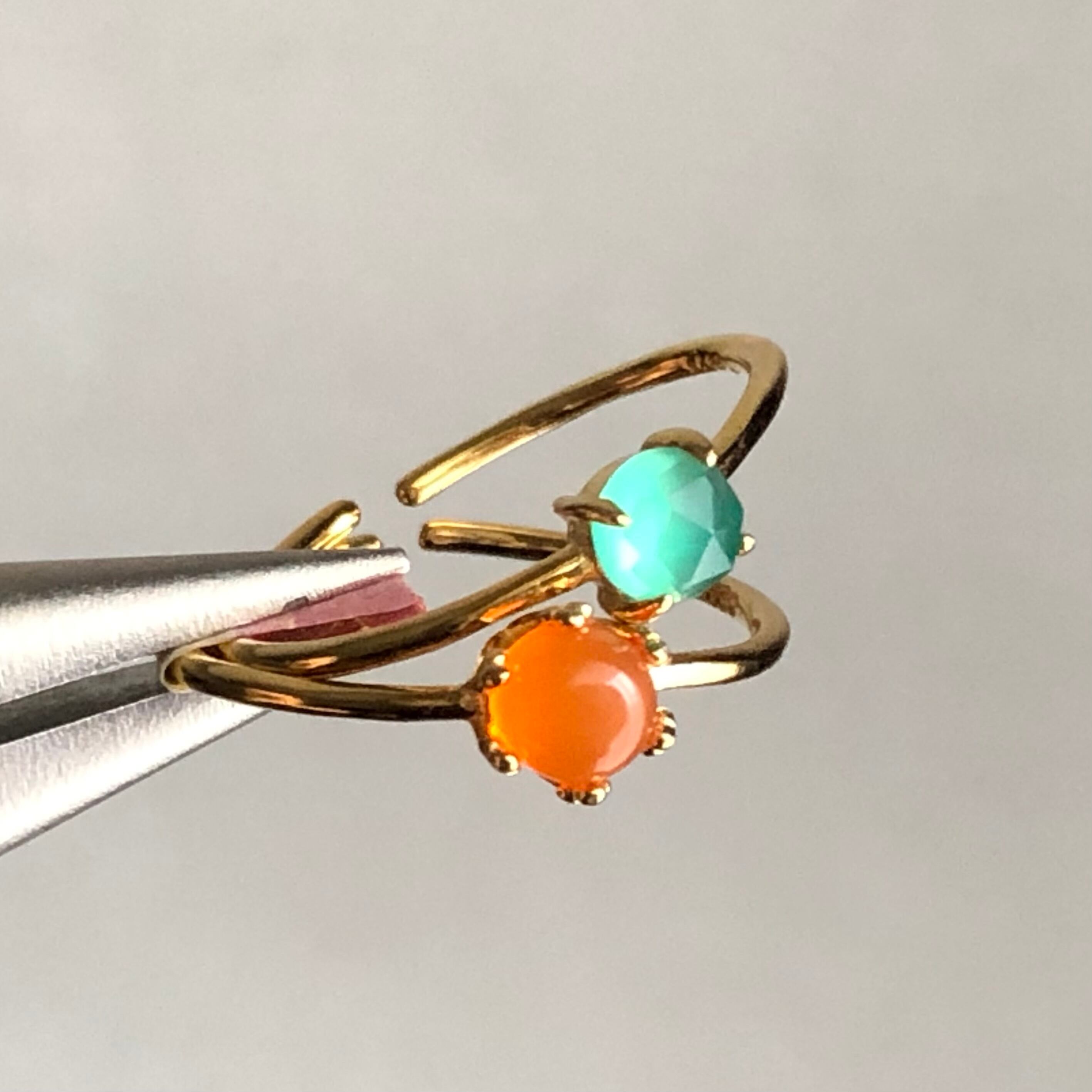 ローズカットのグリーンオニキスとカーネリアンのリングセットです。
