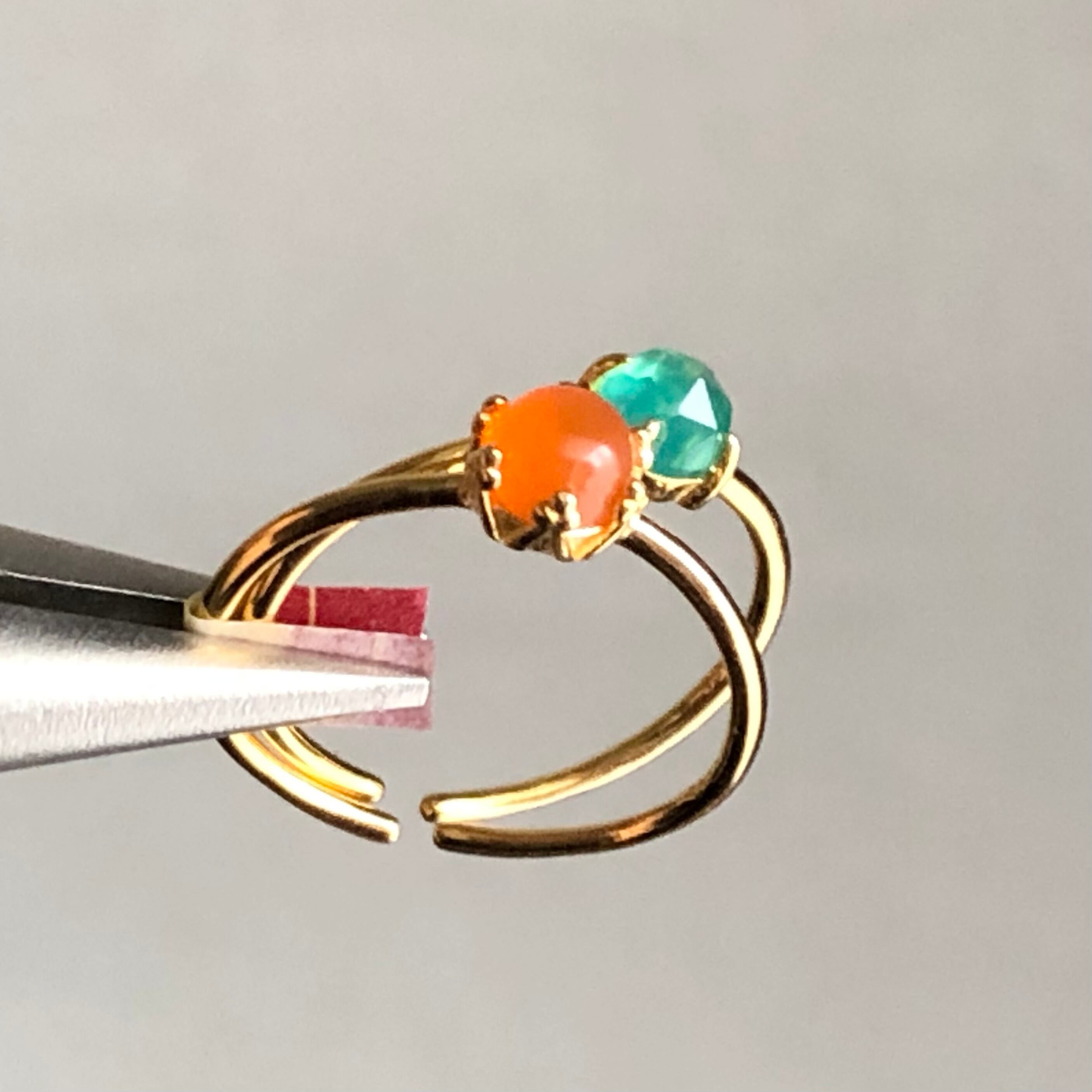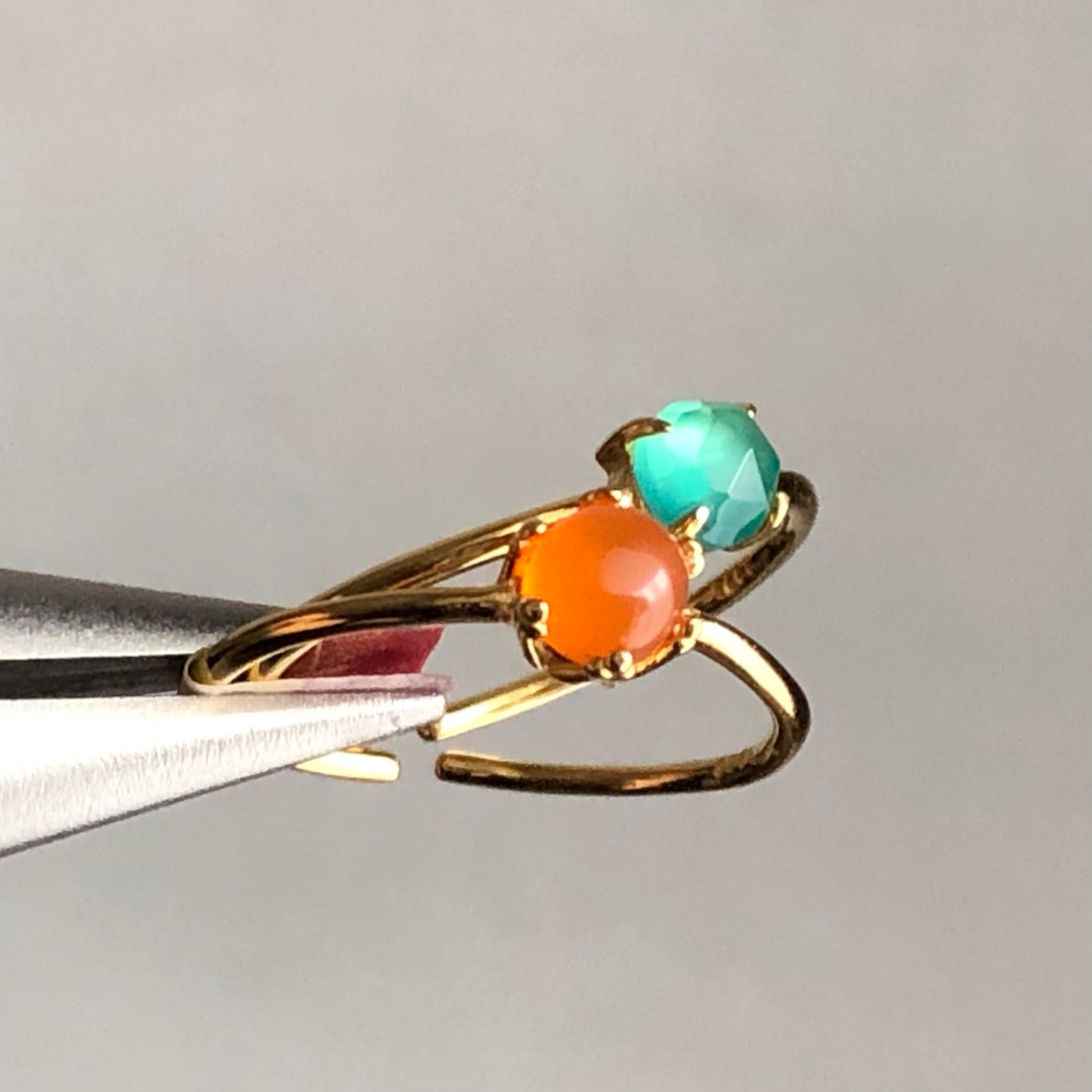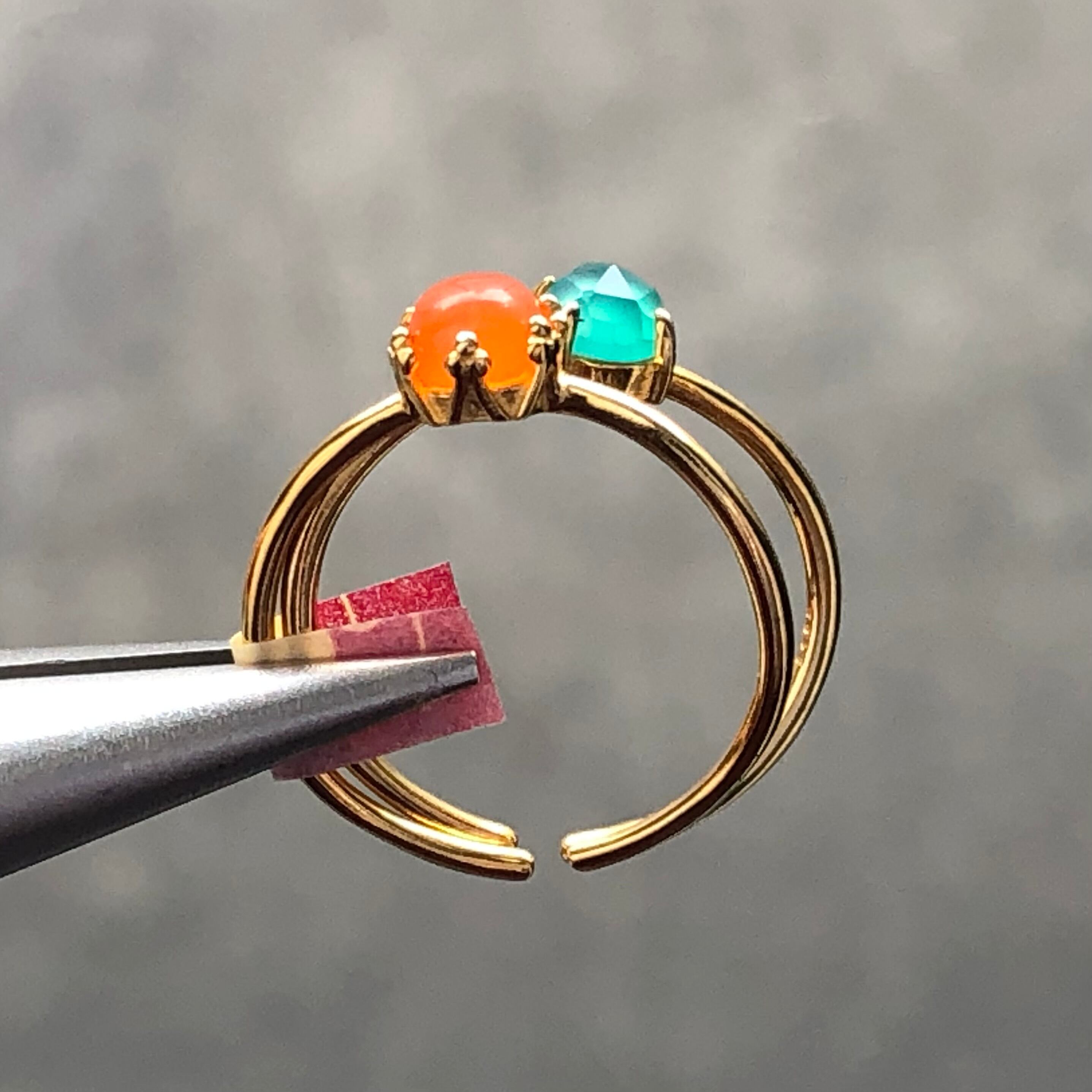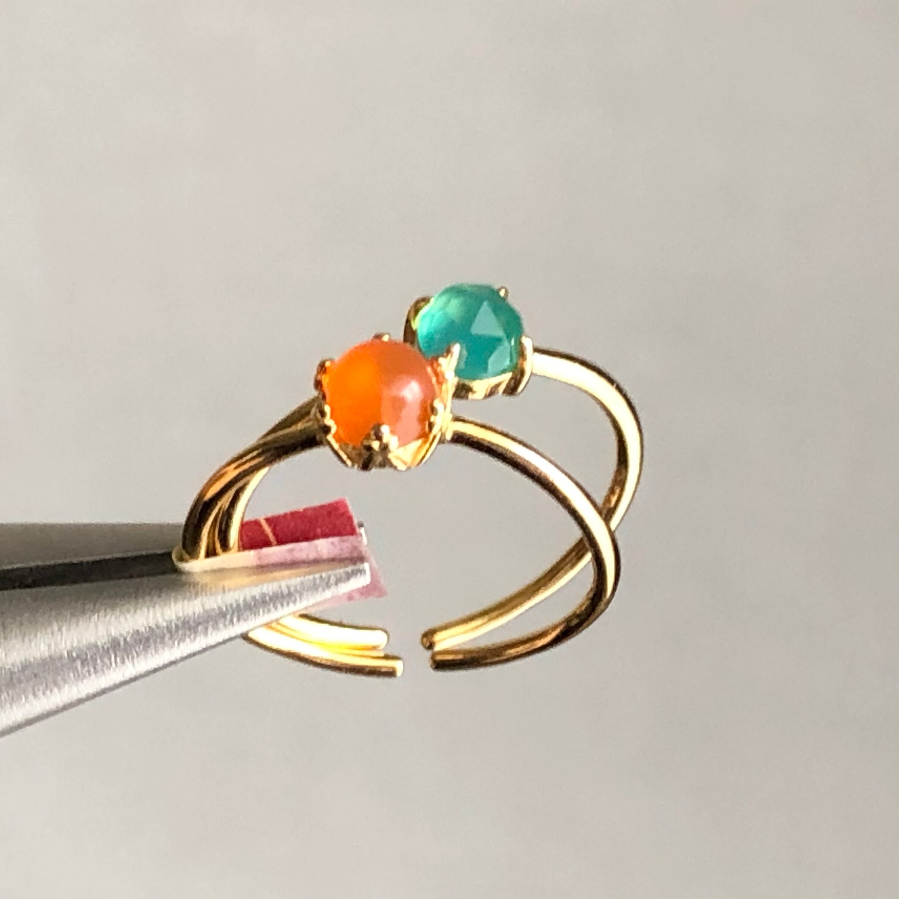 ローズカットのグリーンオニキスとカーネリアンのリングセットです。