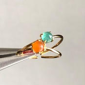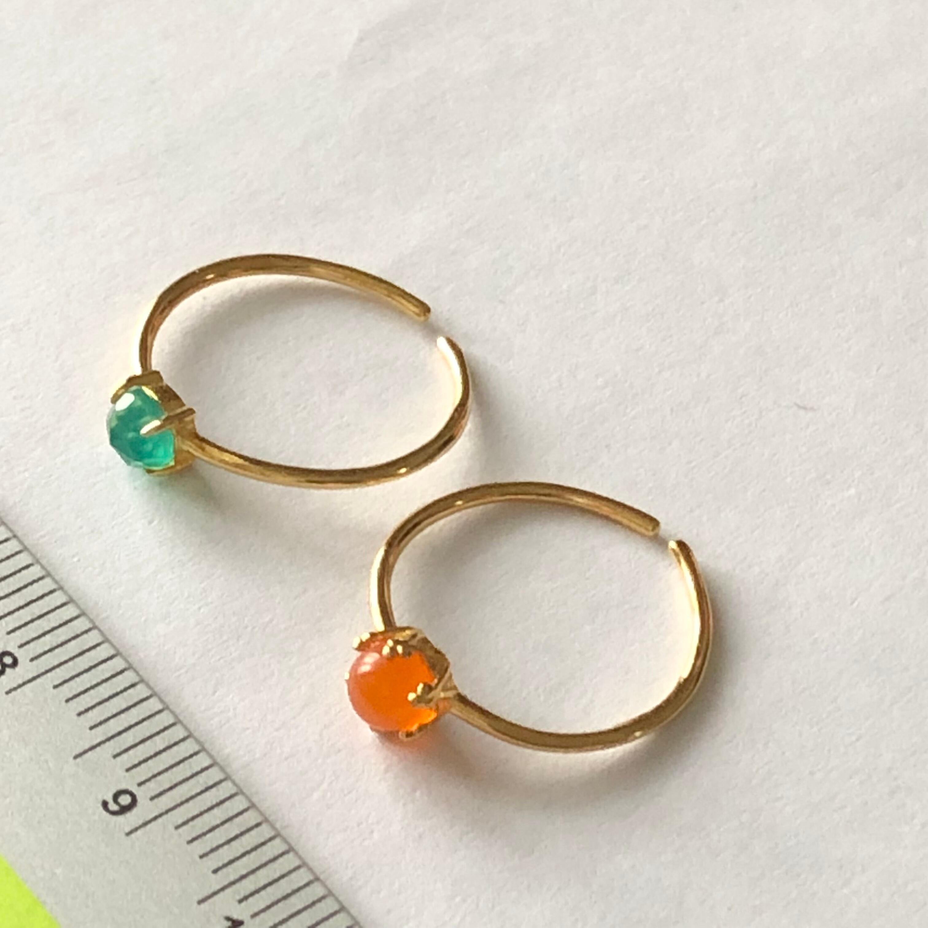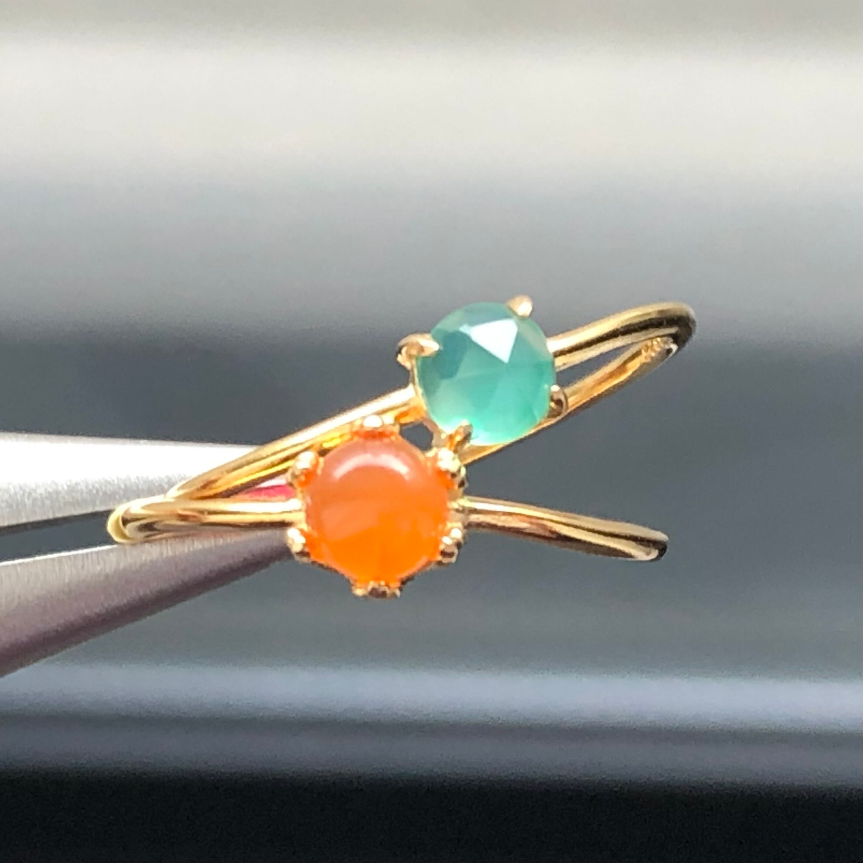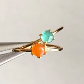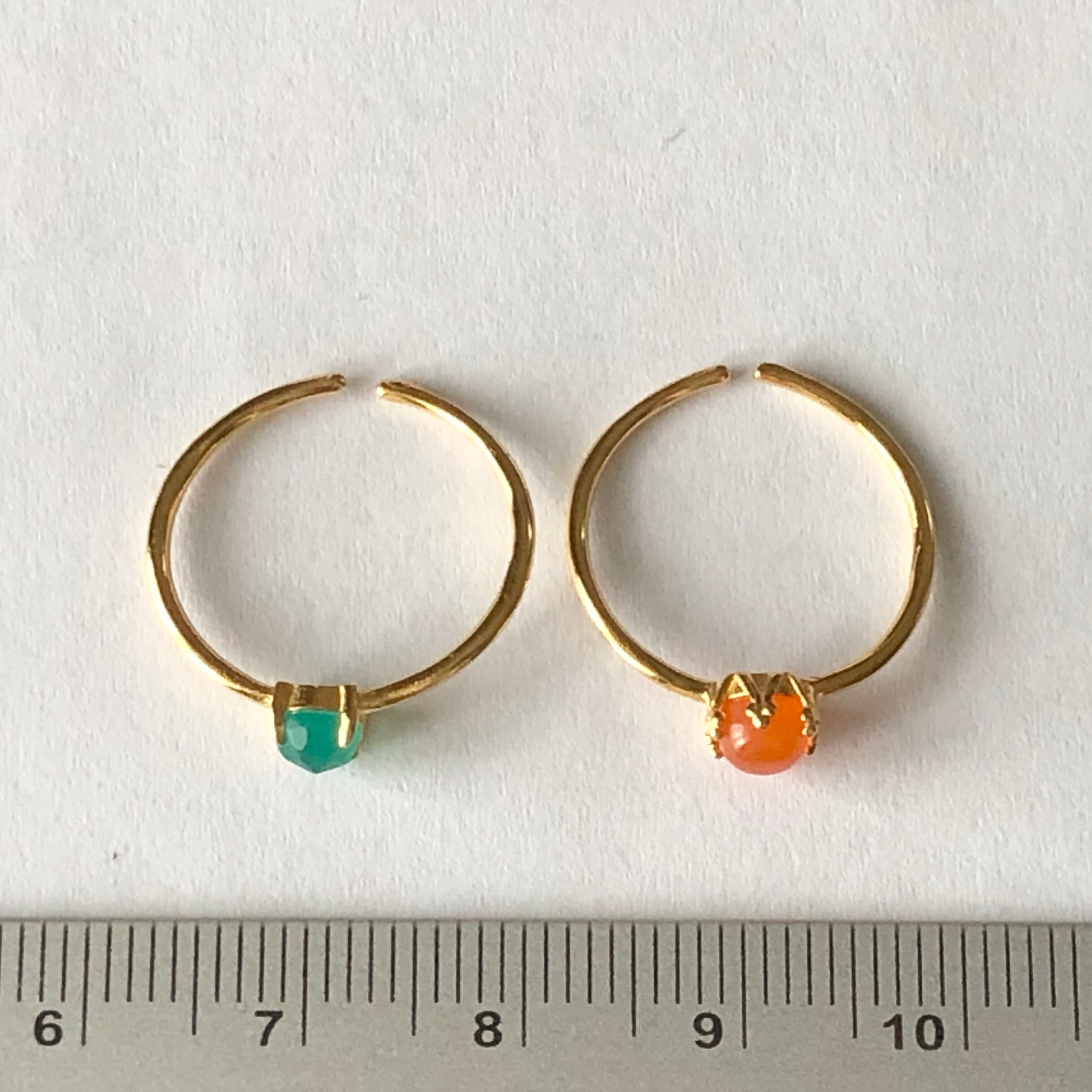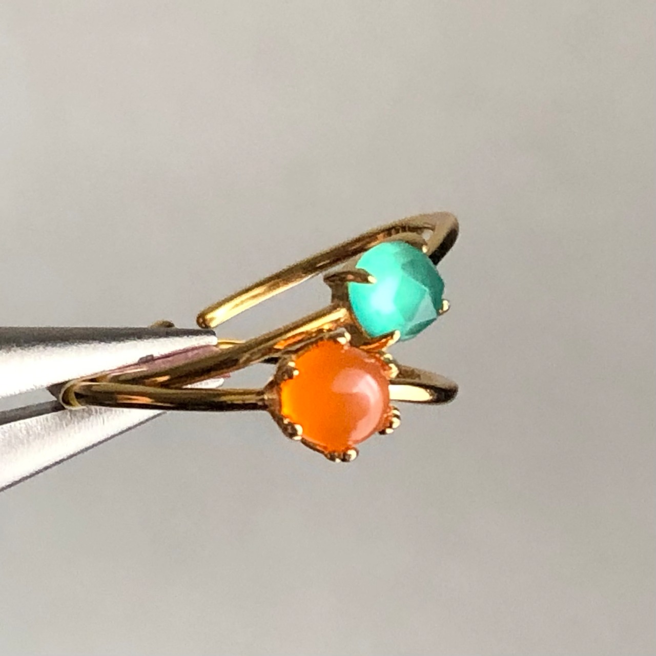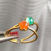 ローズカットのグリーンオニキスとカーネリアンのリングセットです。