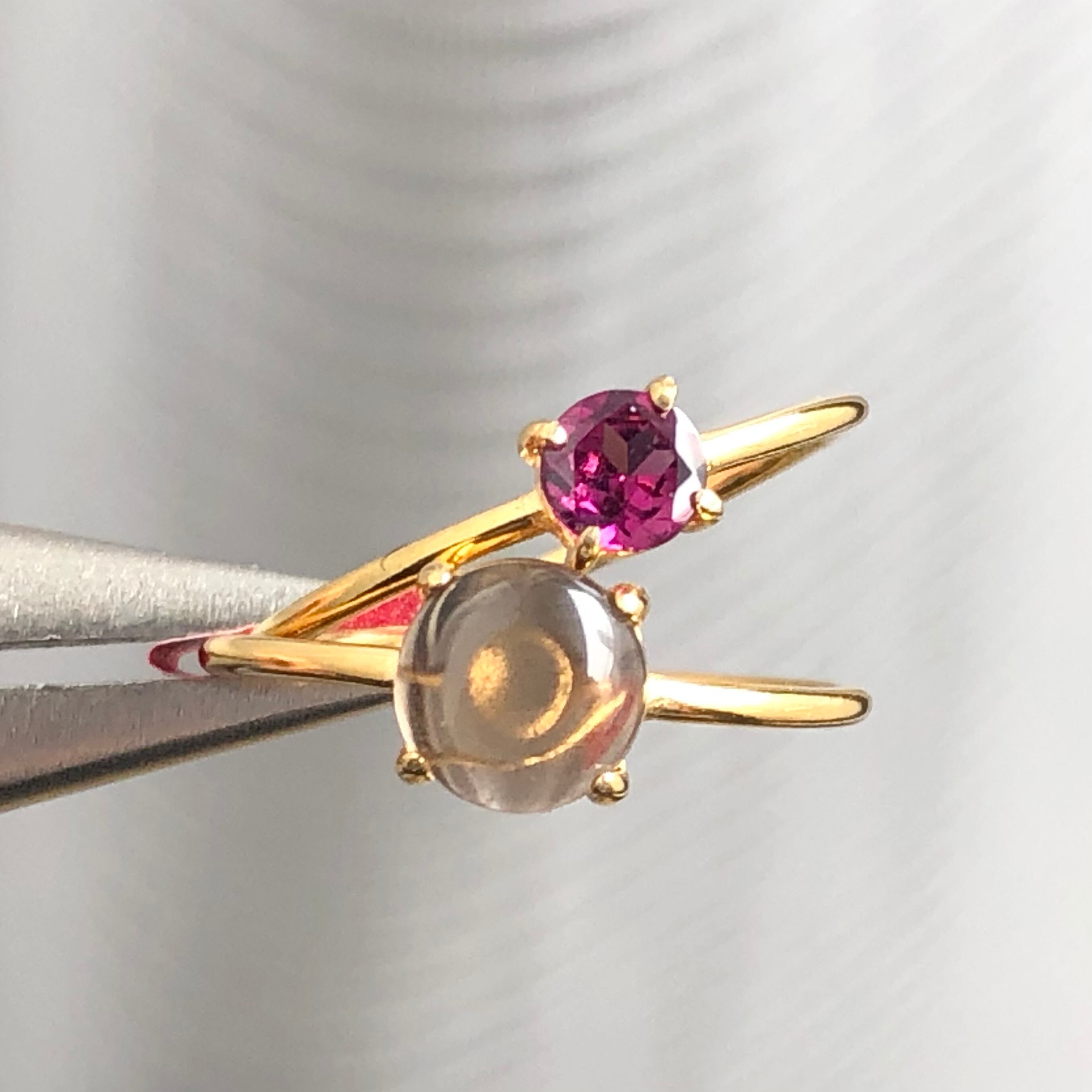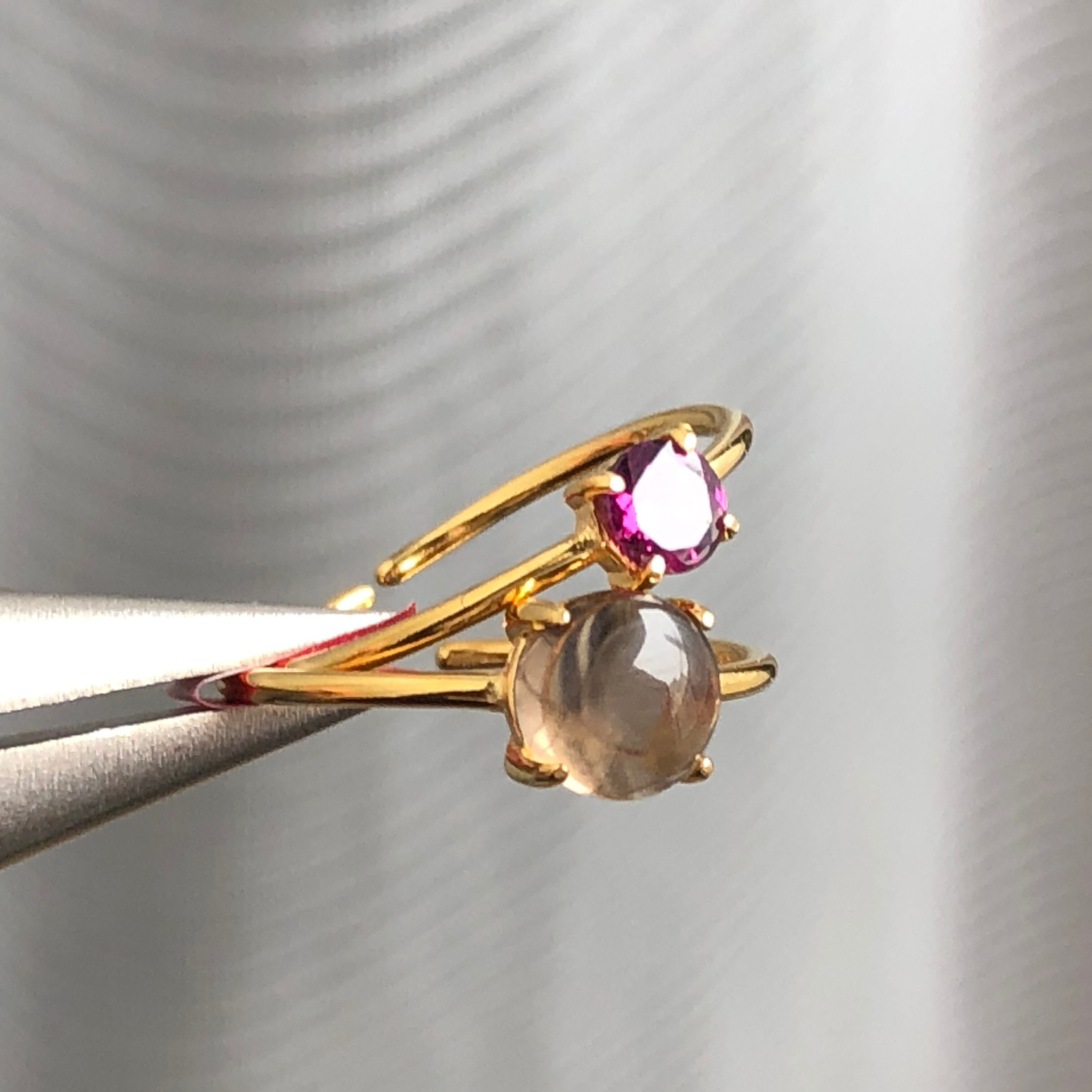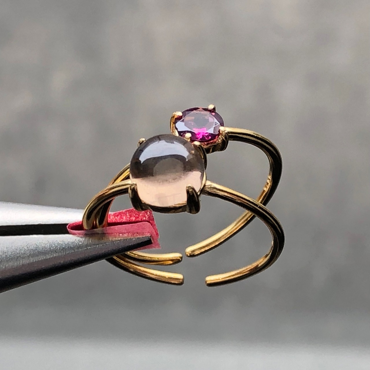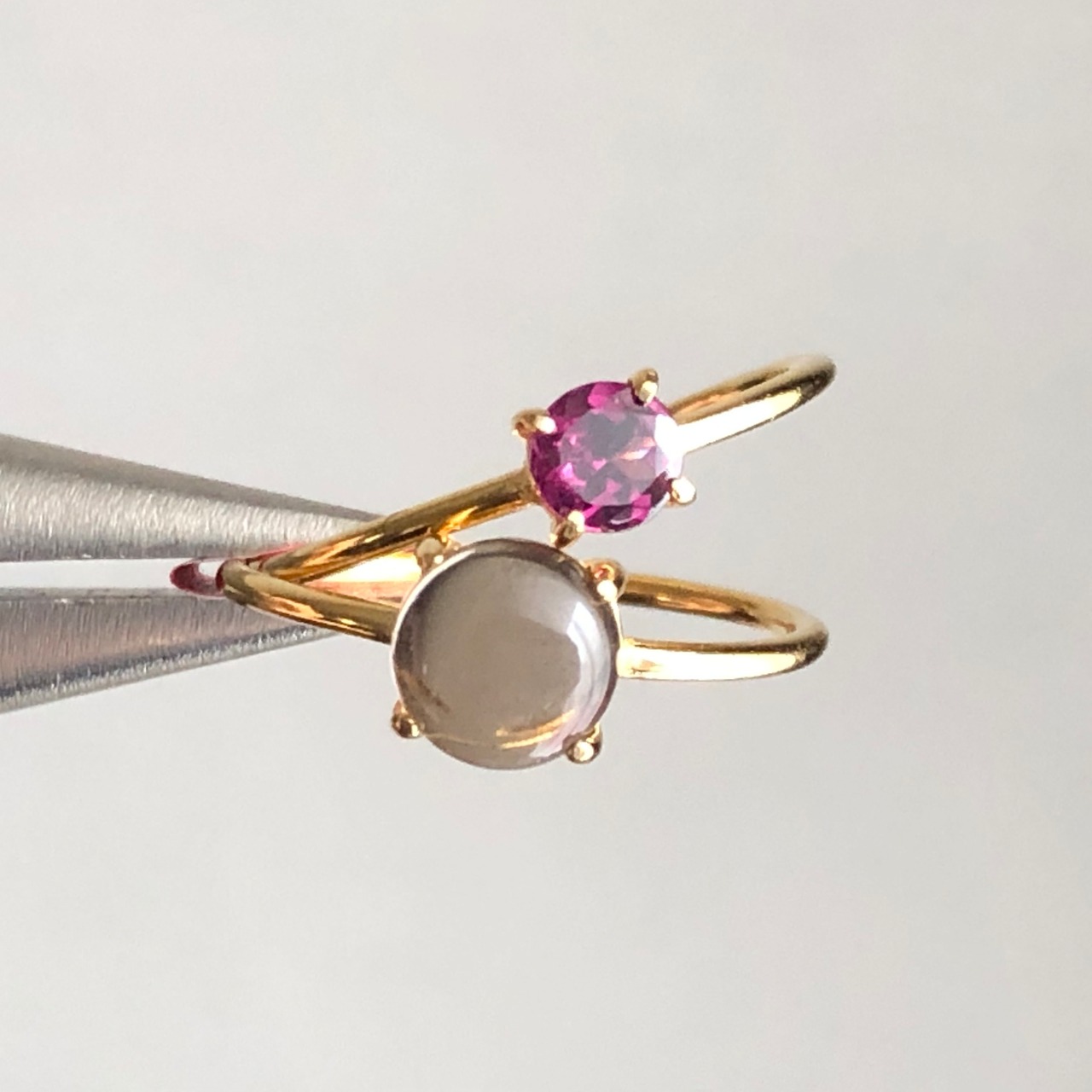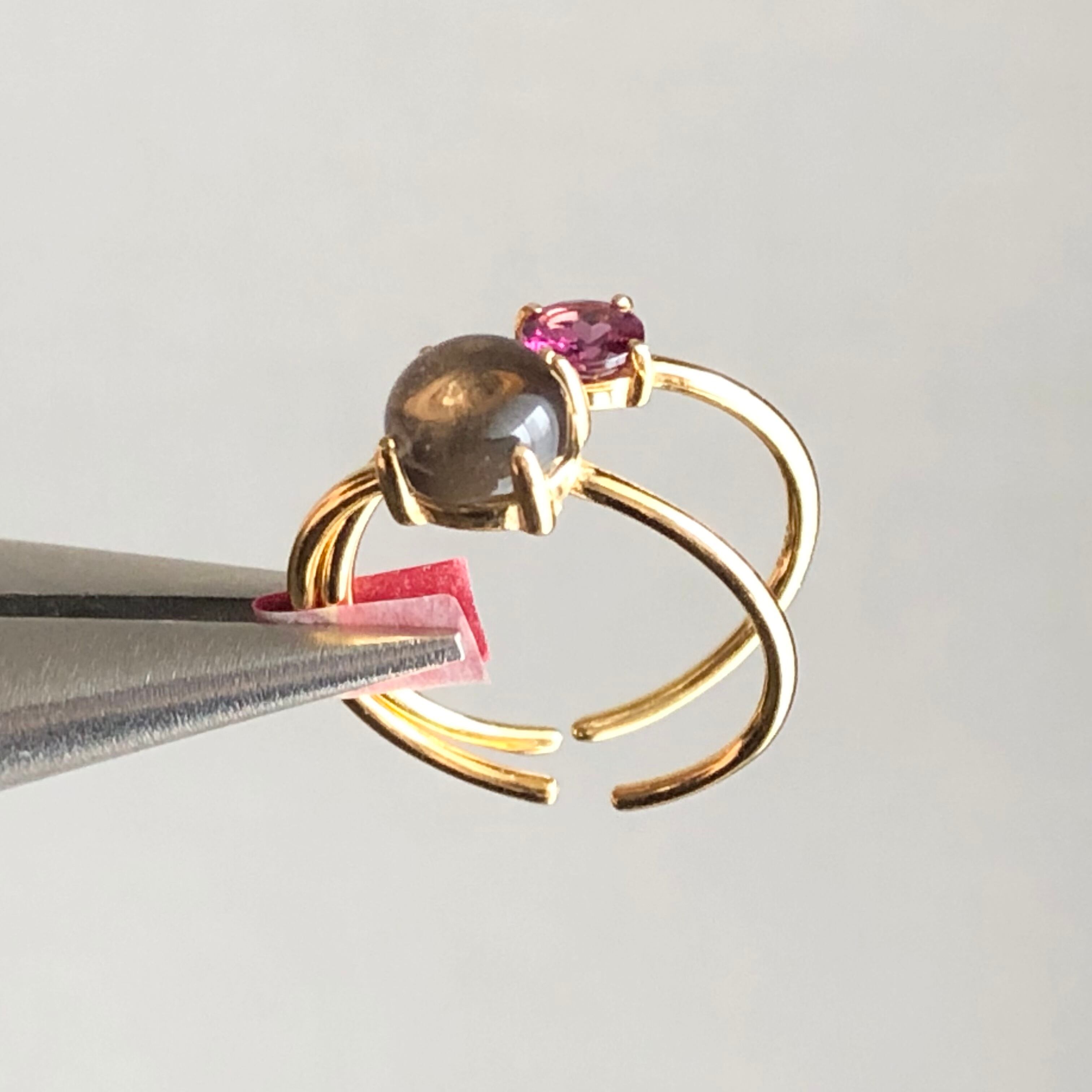ロードライトガーネットとスモーキークォーツのリングセットです。