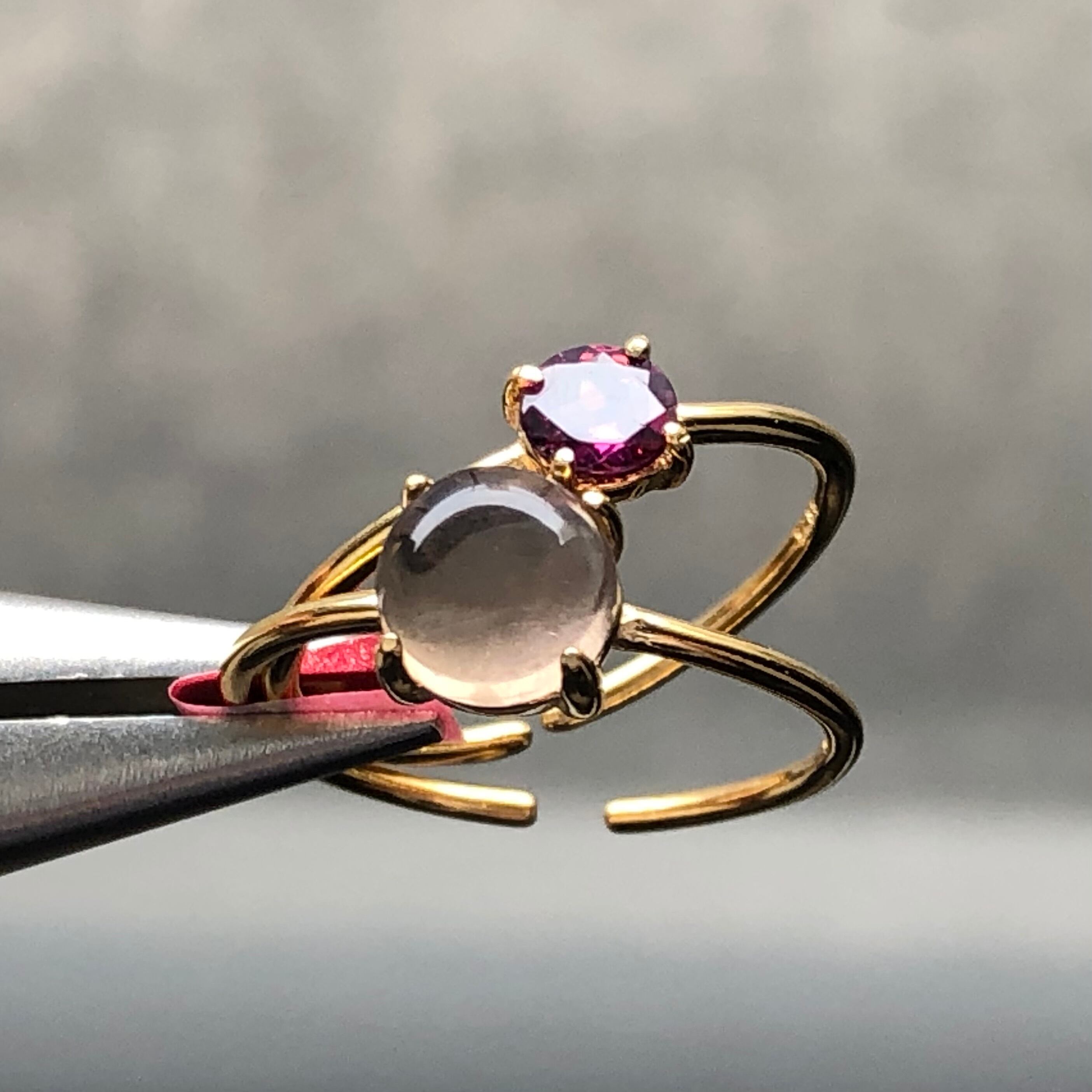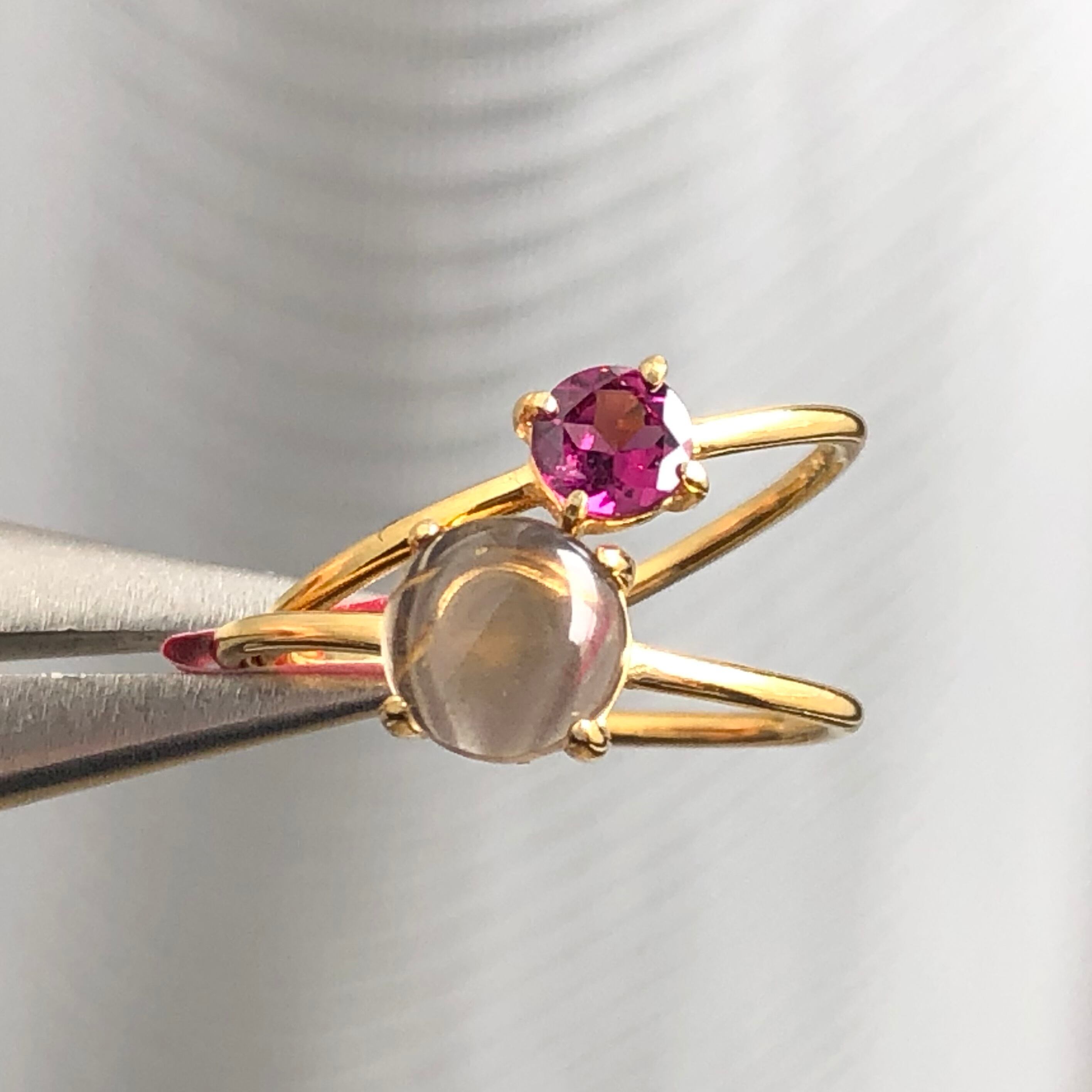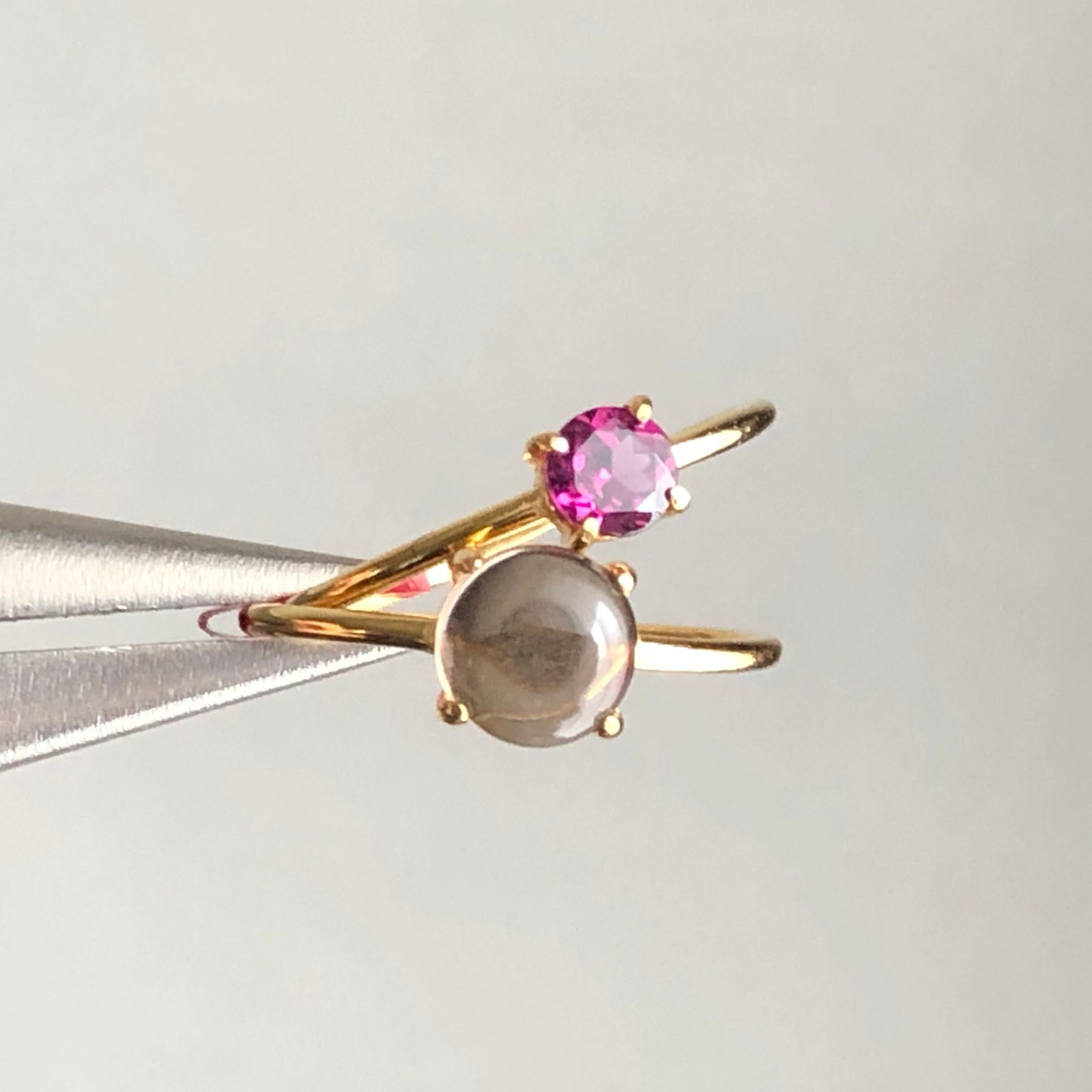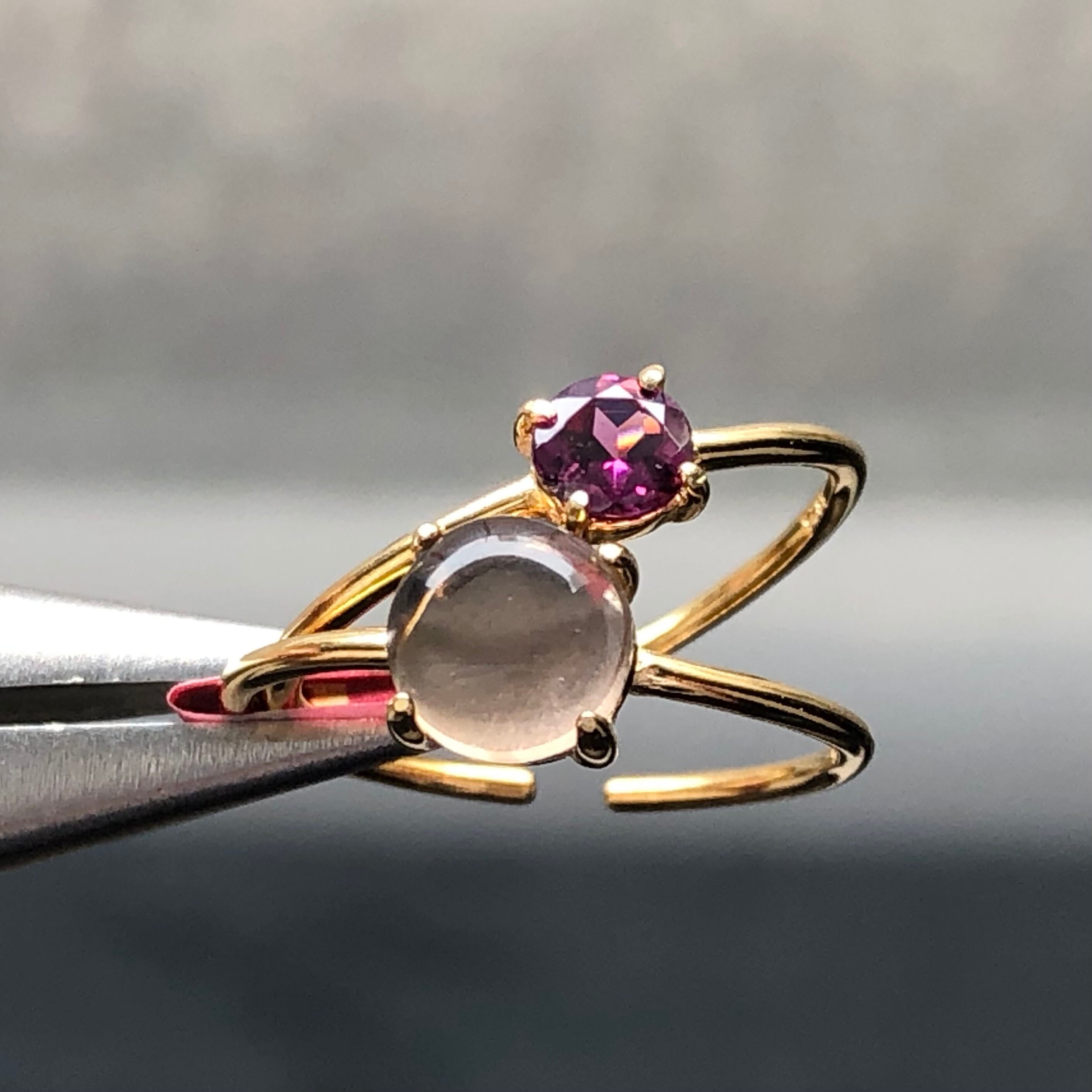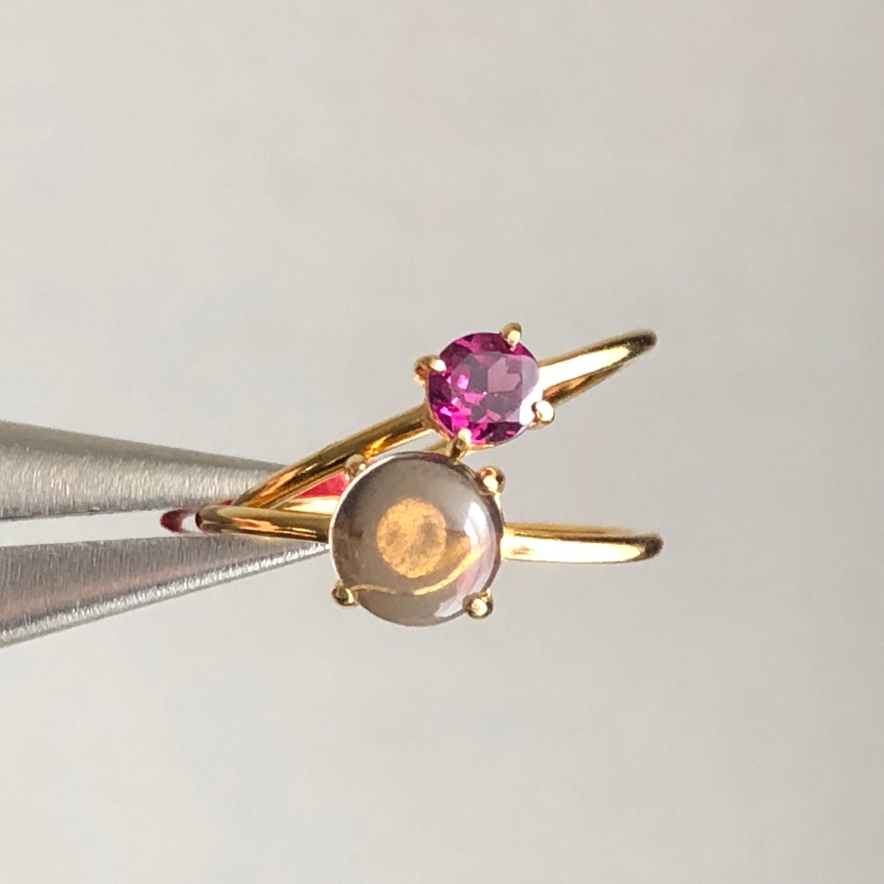 ロードライトガーネットとスモーキークォーツのリングセットです。