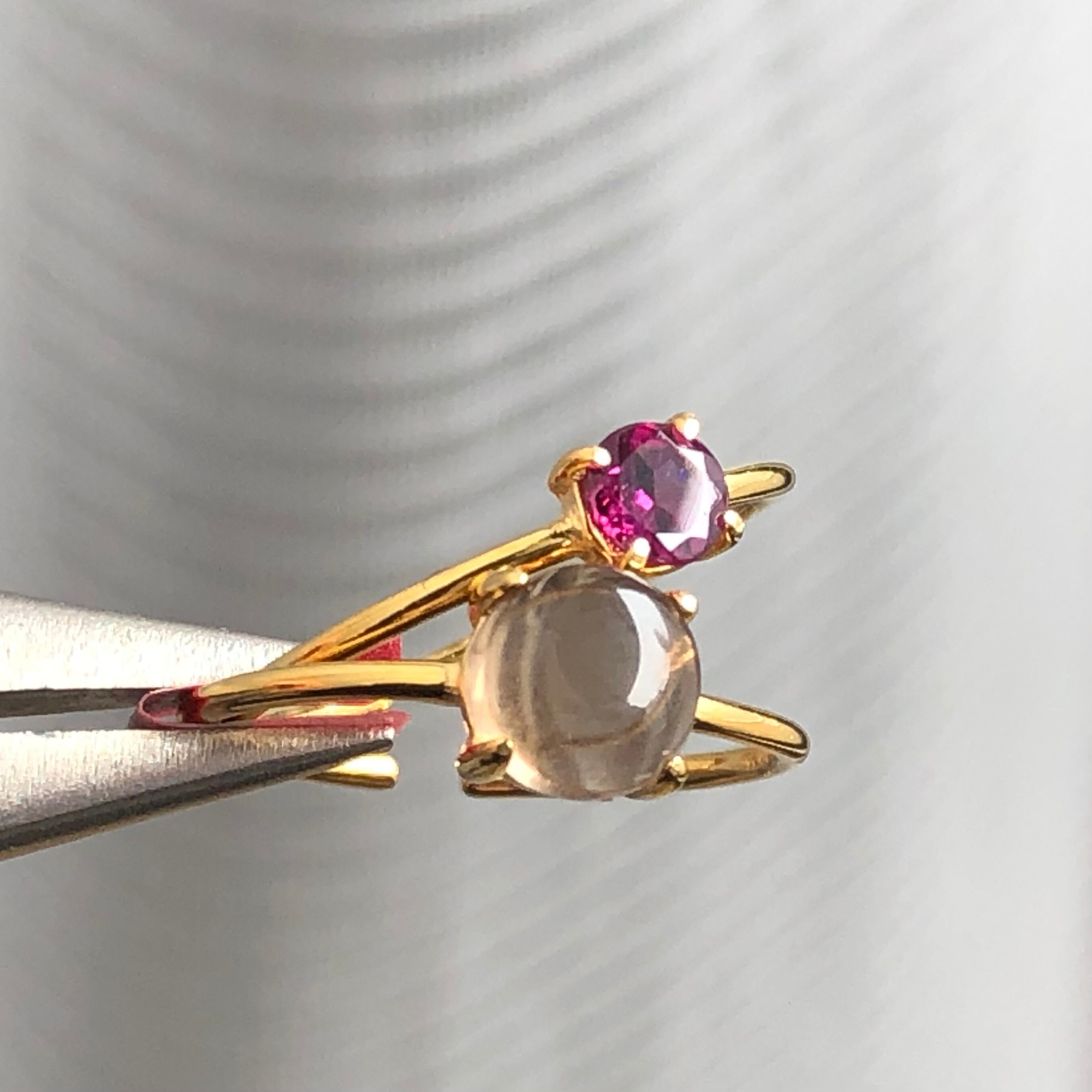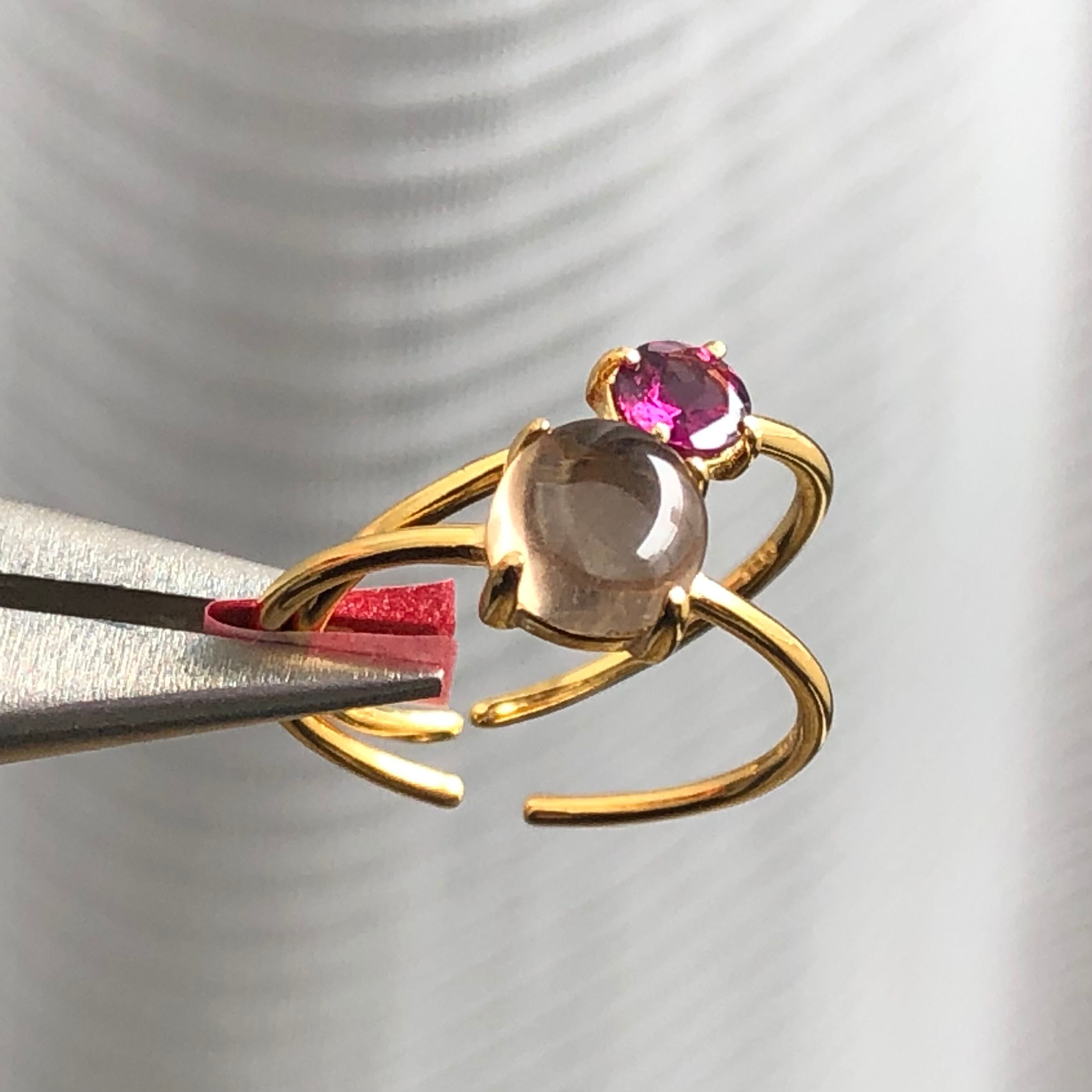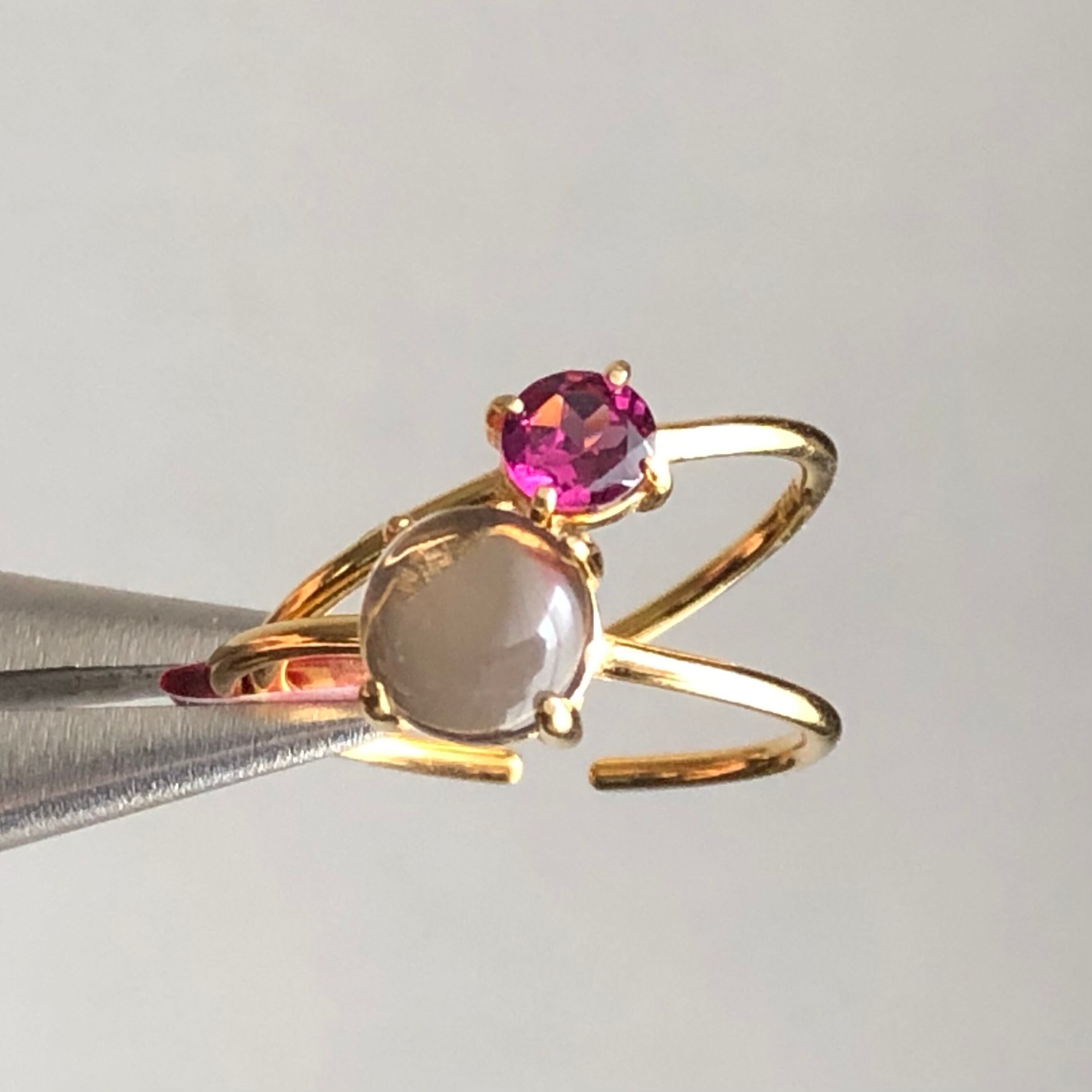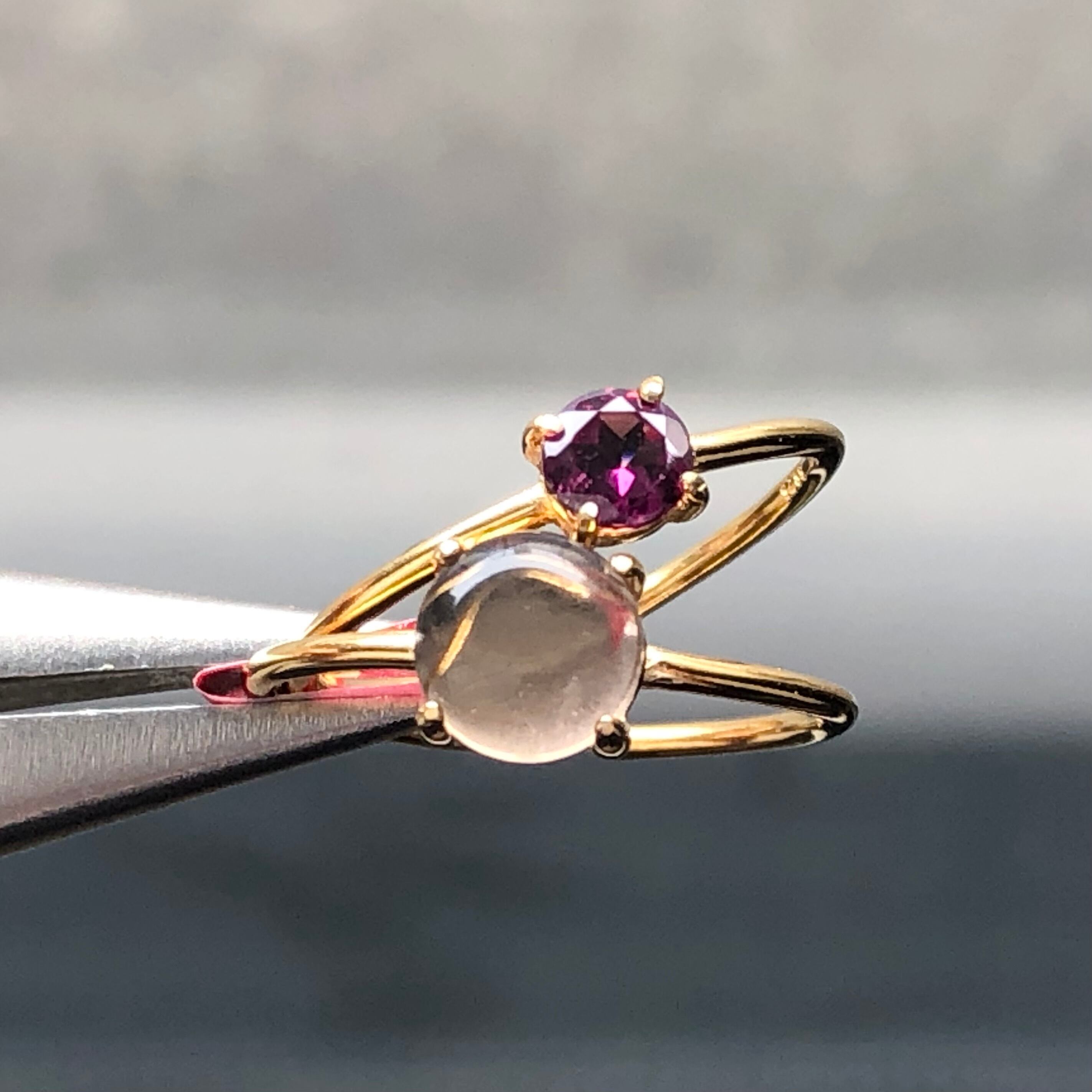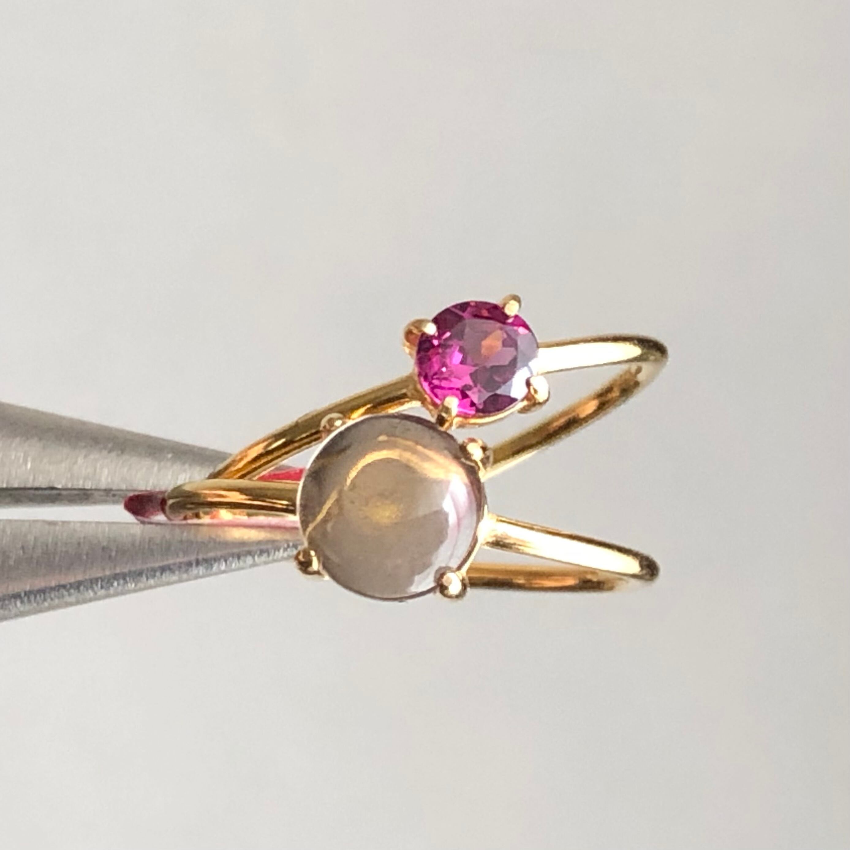ロードライトガーネットとスモーキークォーツのリングセットです。
