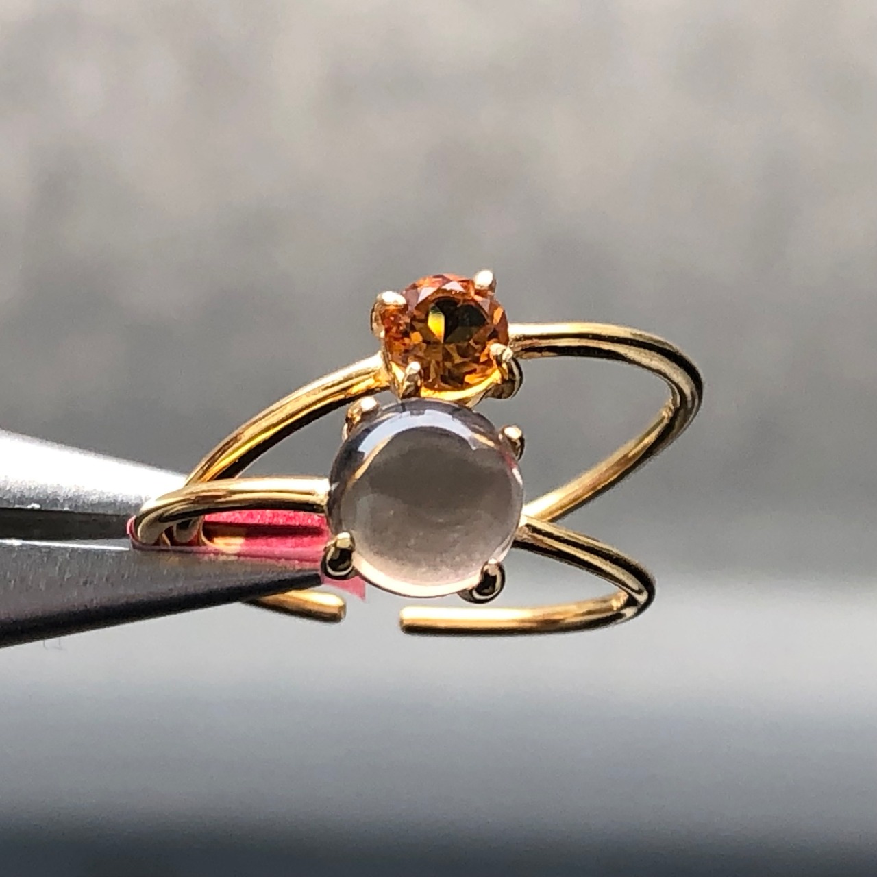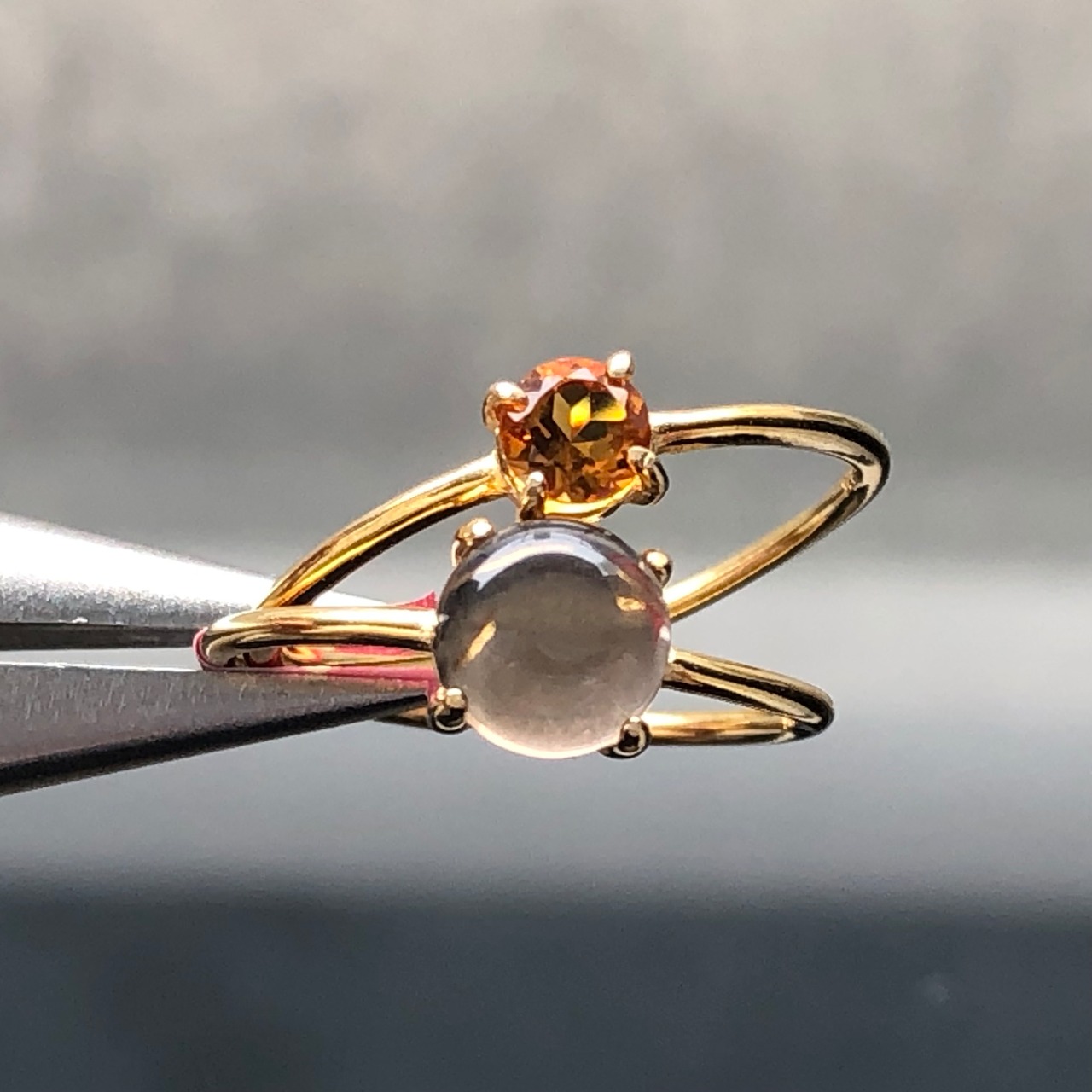 (マデイラシトリン4mm、スモーキークォーツ6mm)