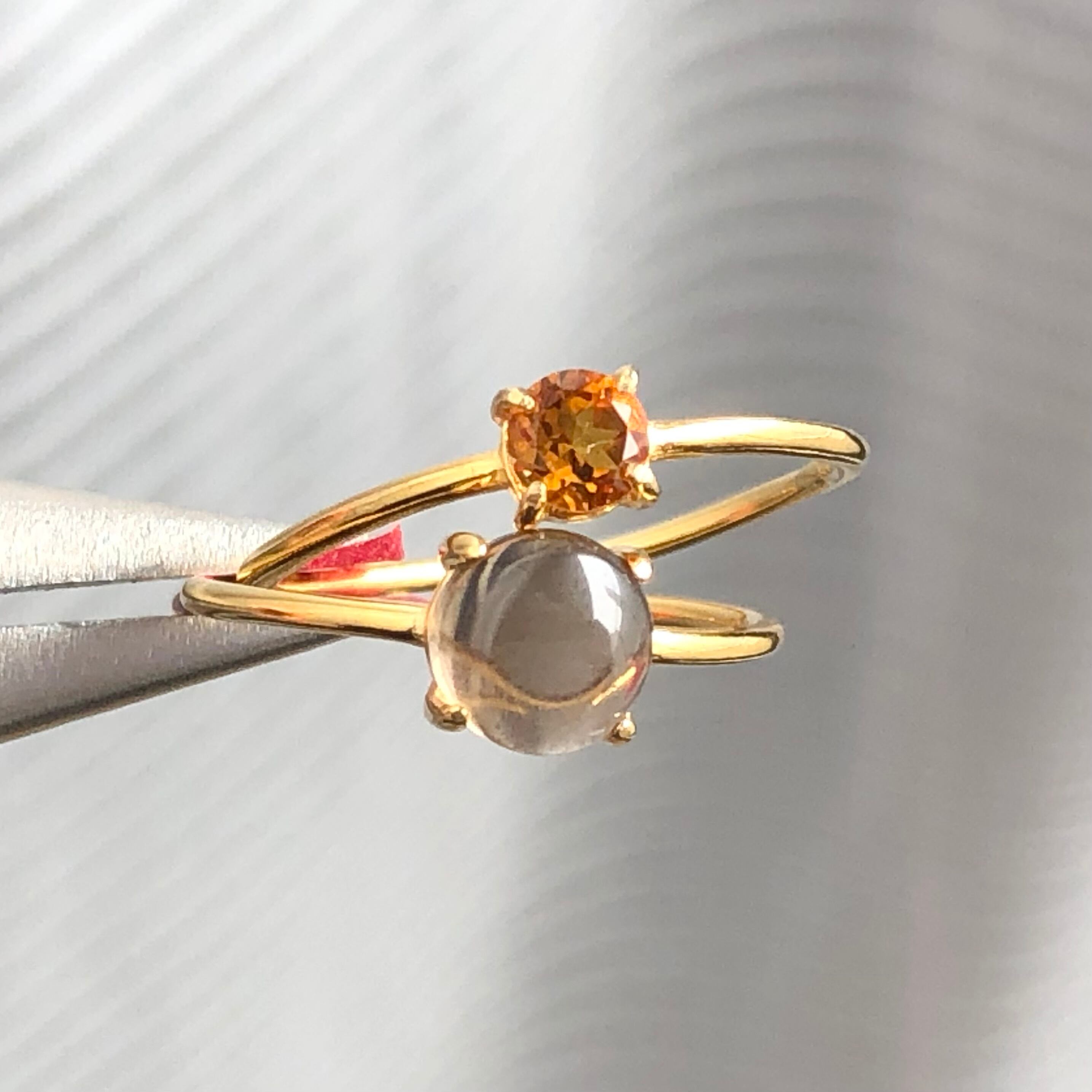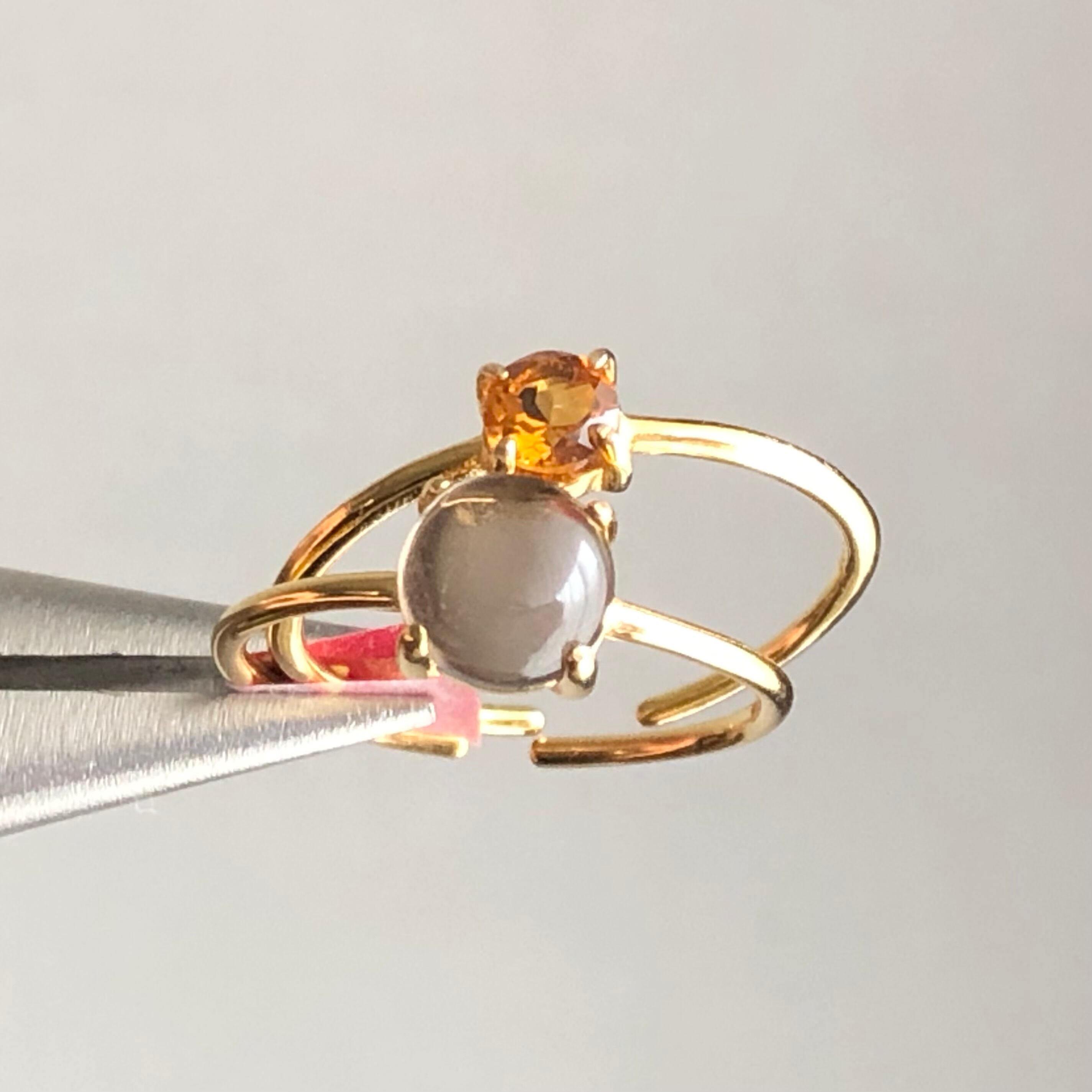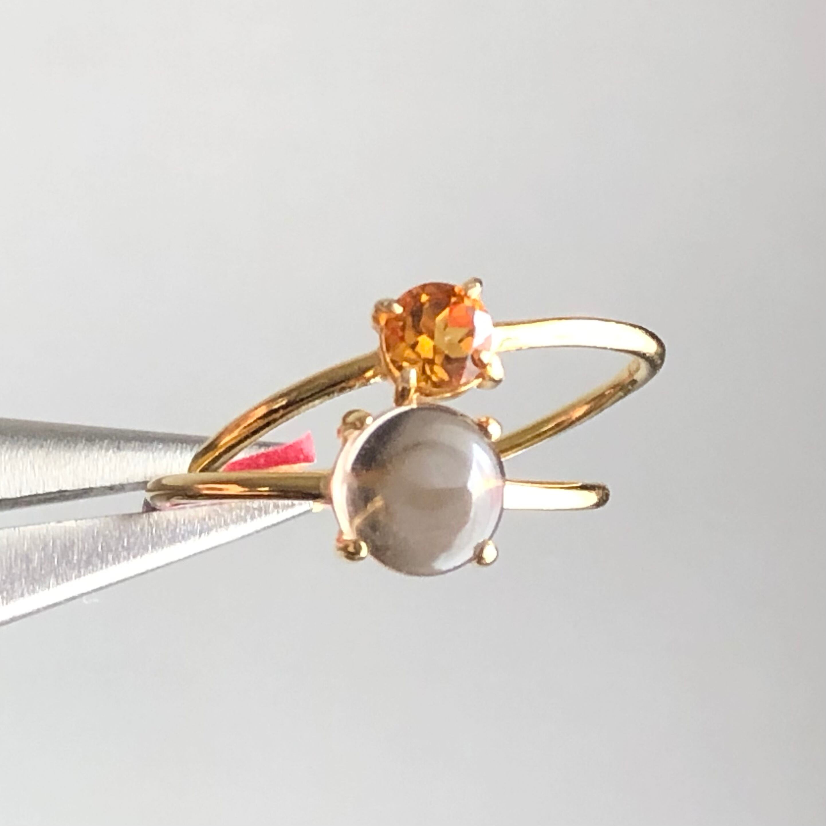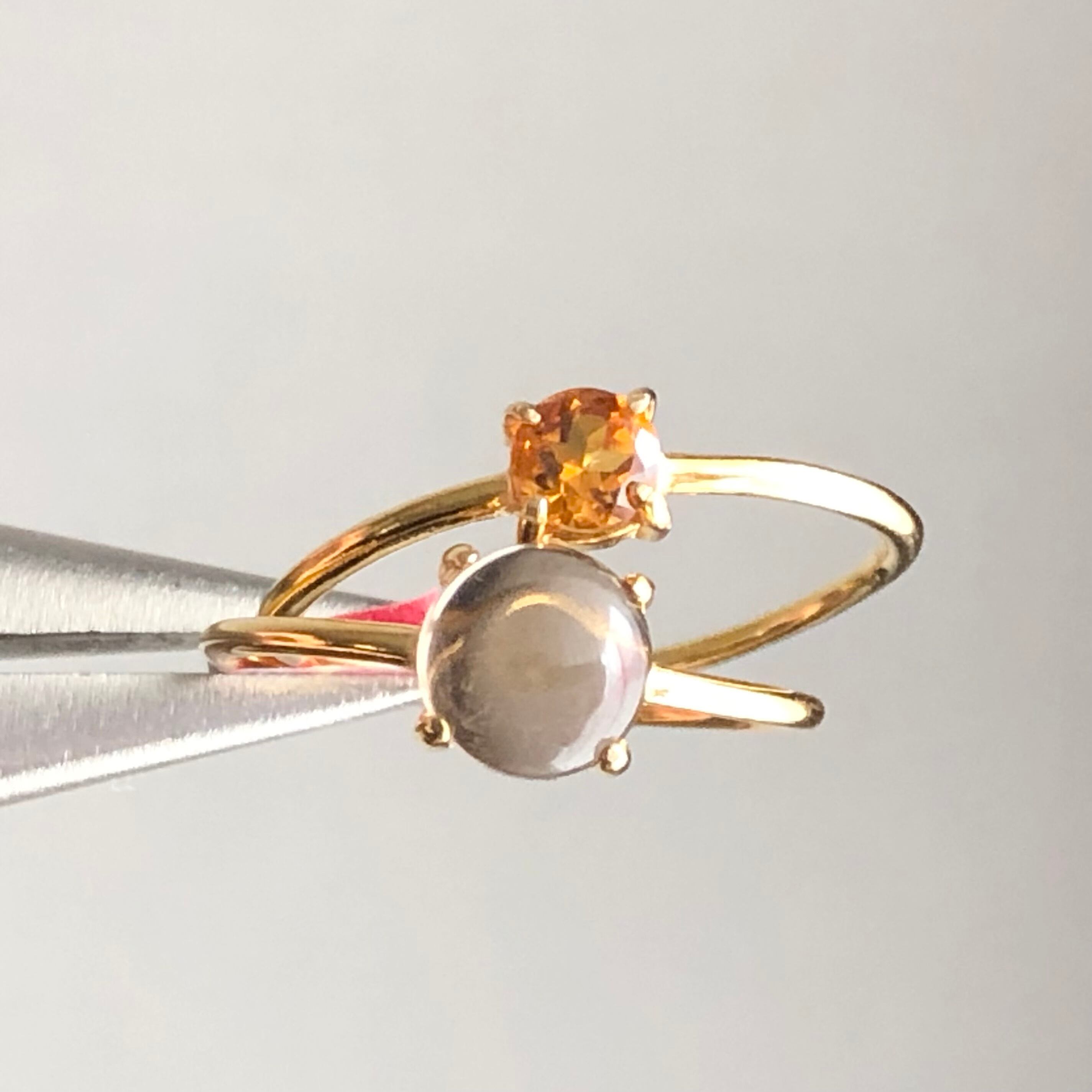 マデイラシトリンとスモーキークォーツのリングセットです。