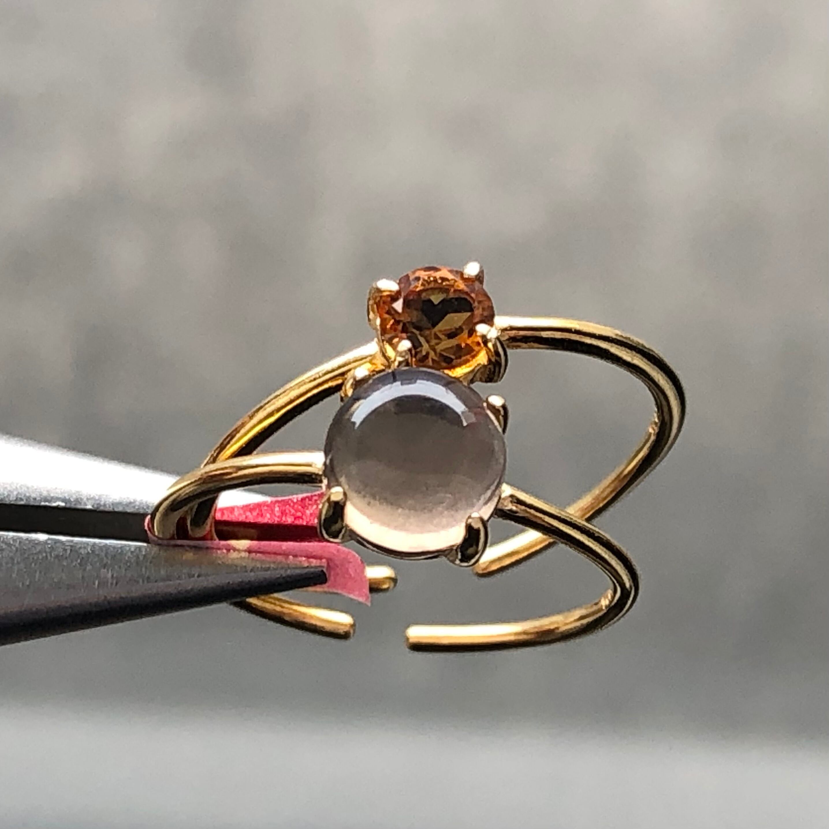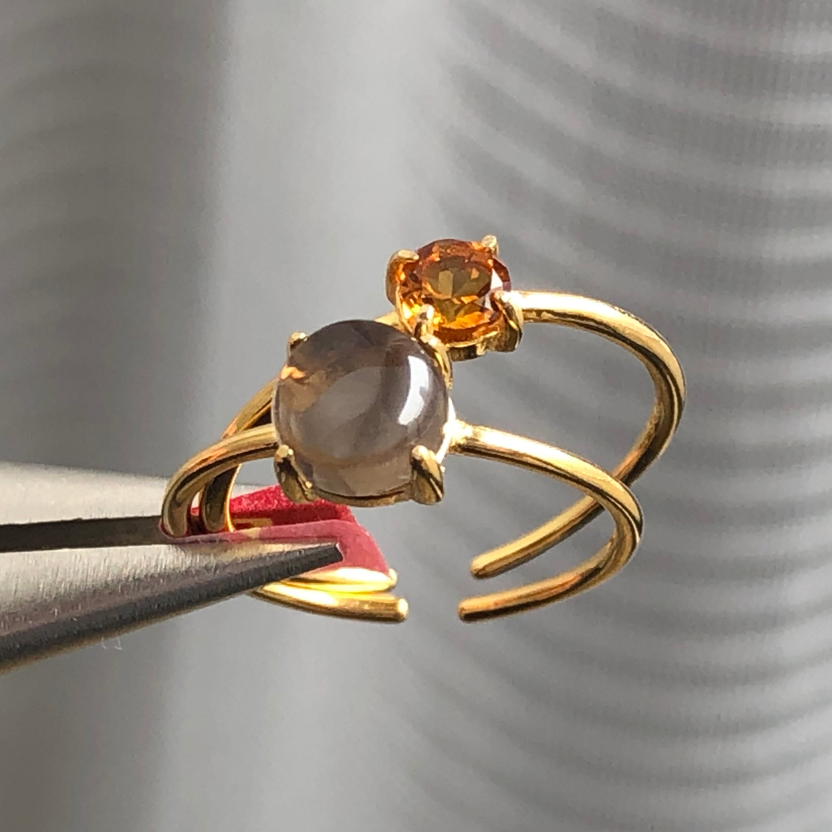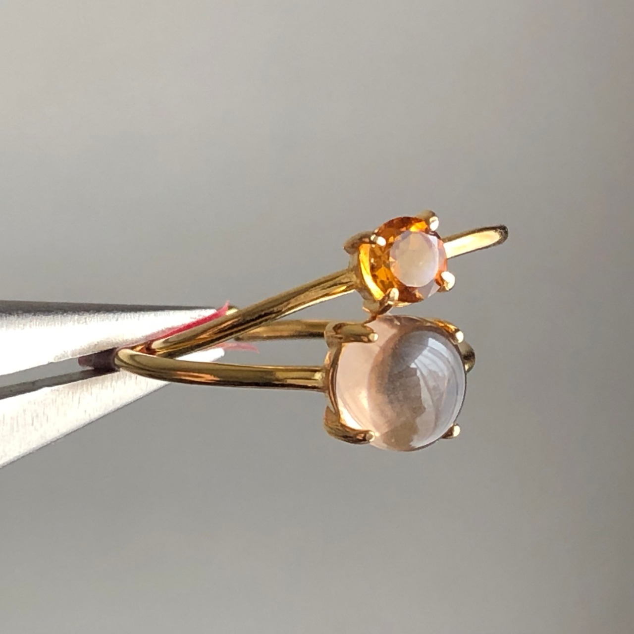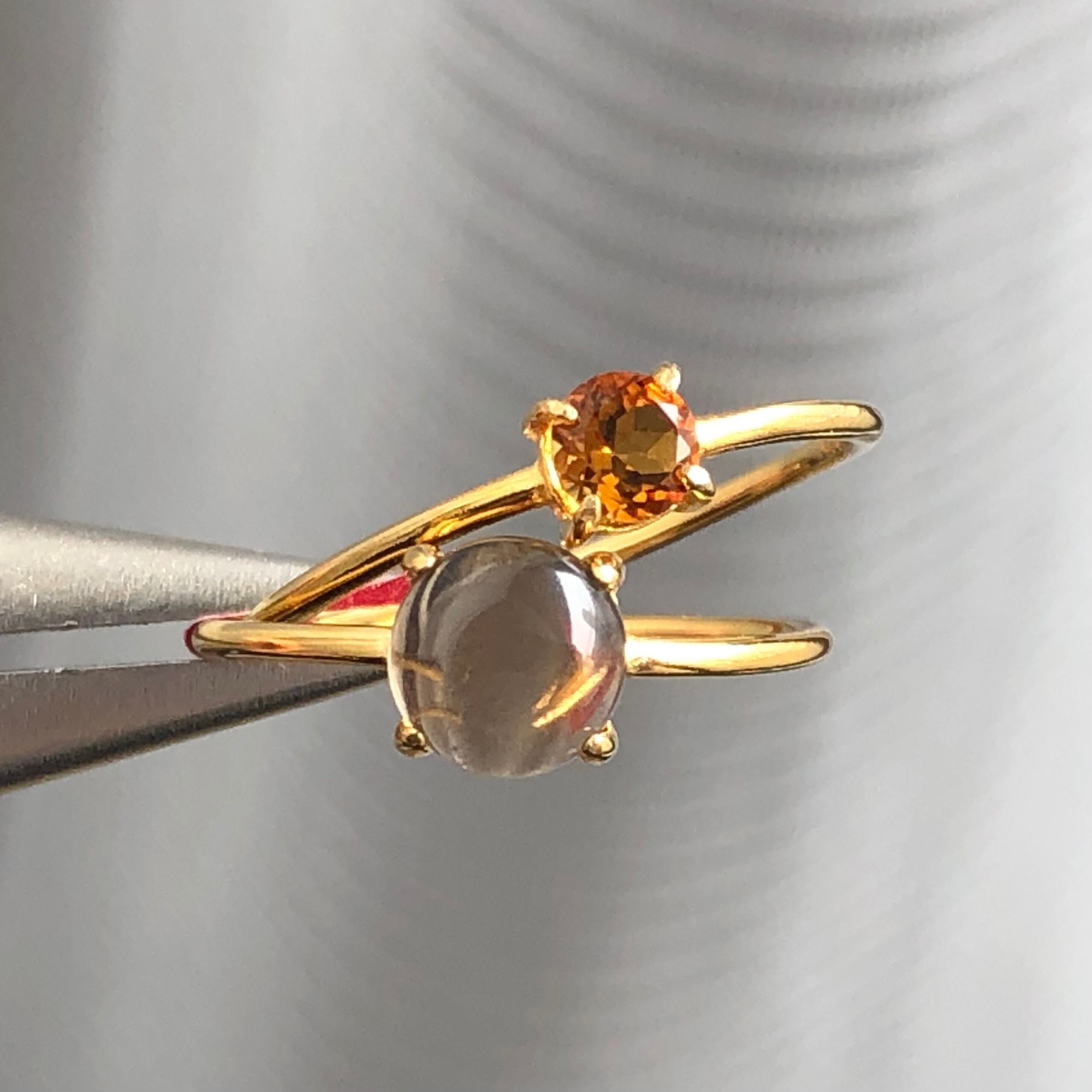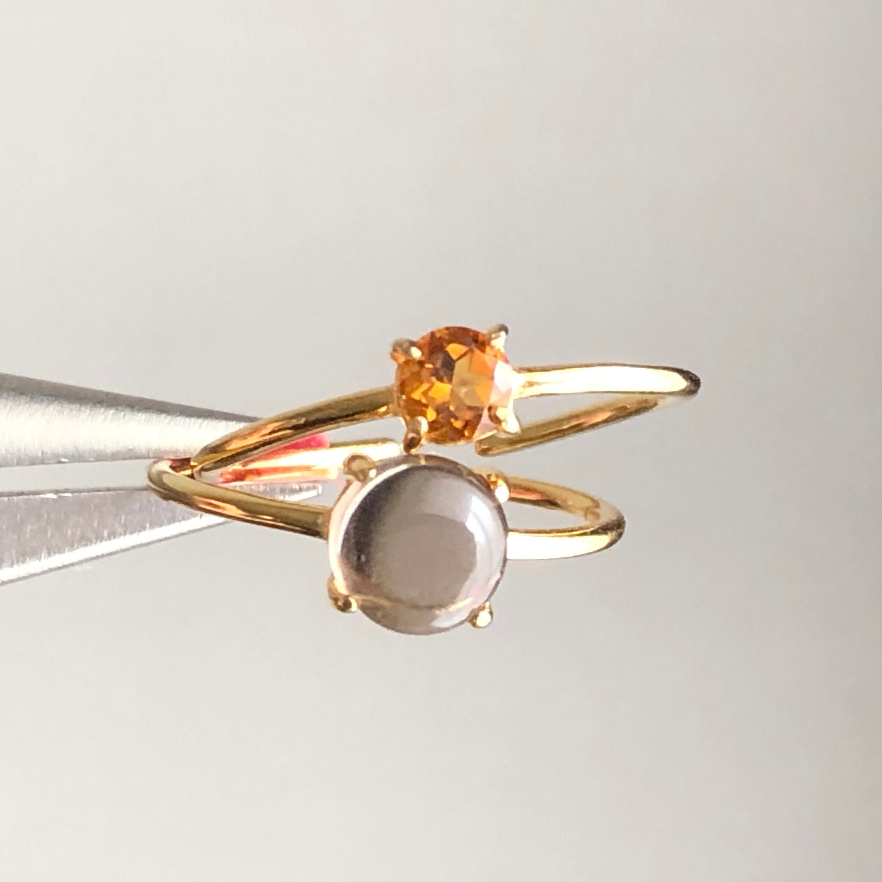マデイラシトリンとスモーキークォーツのリングセットです。