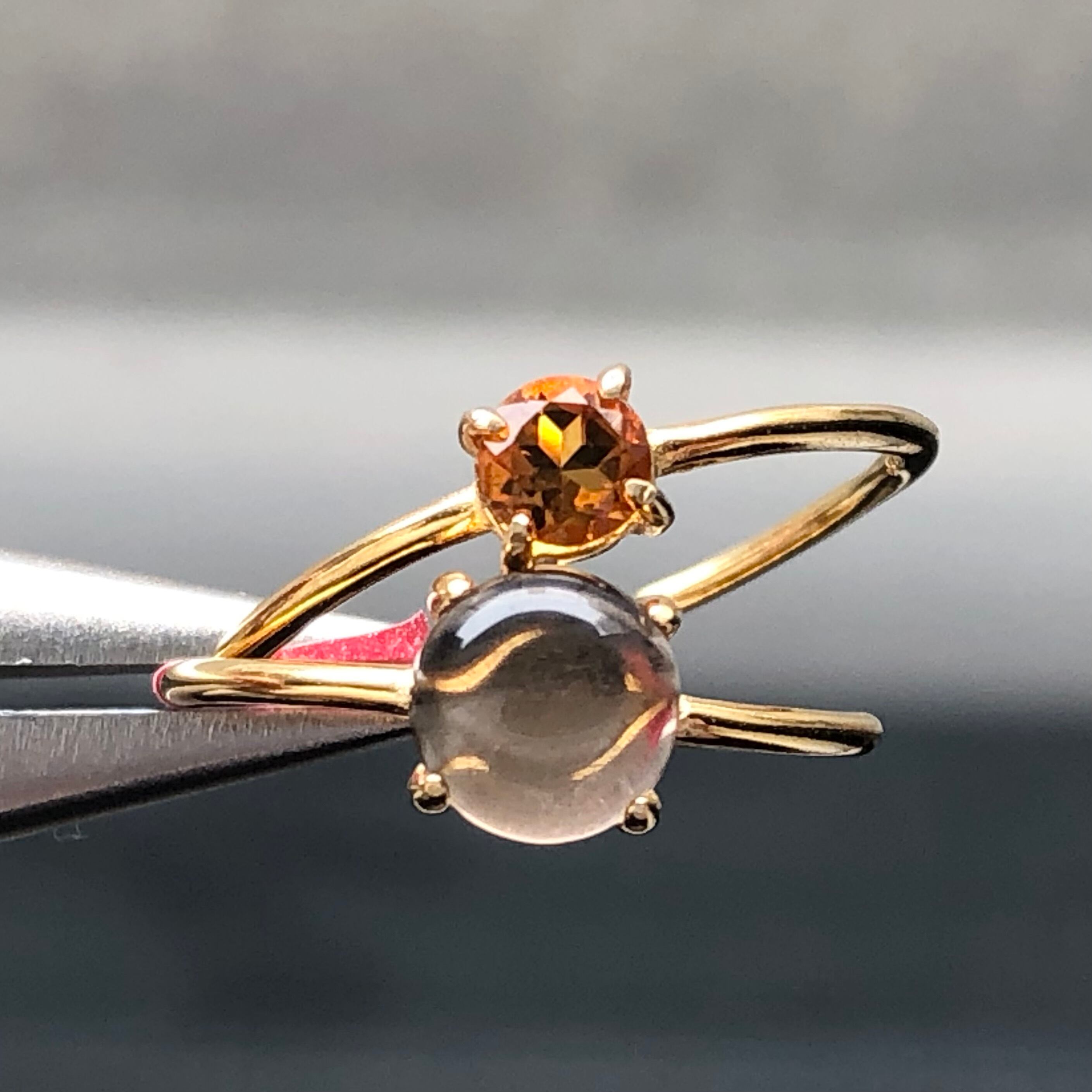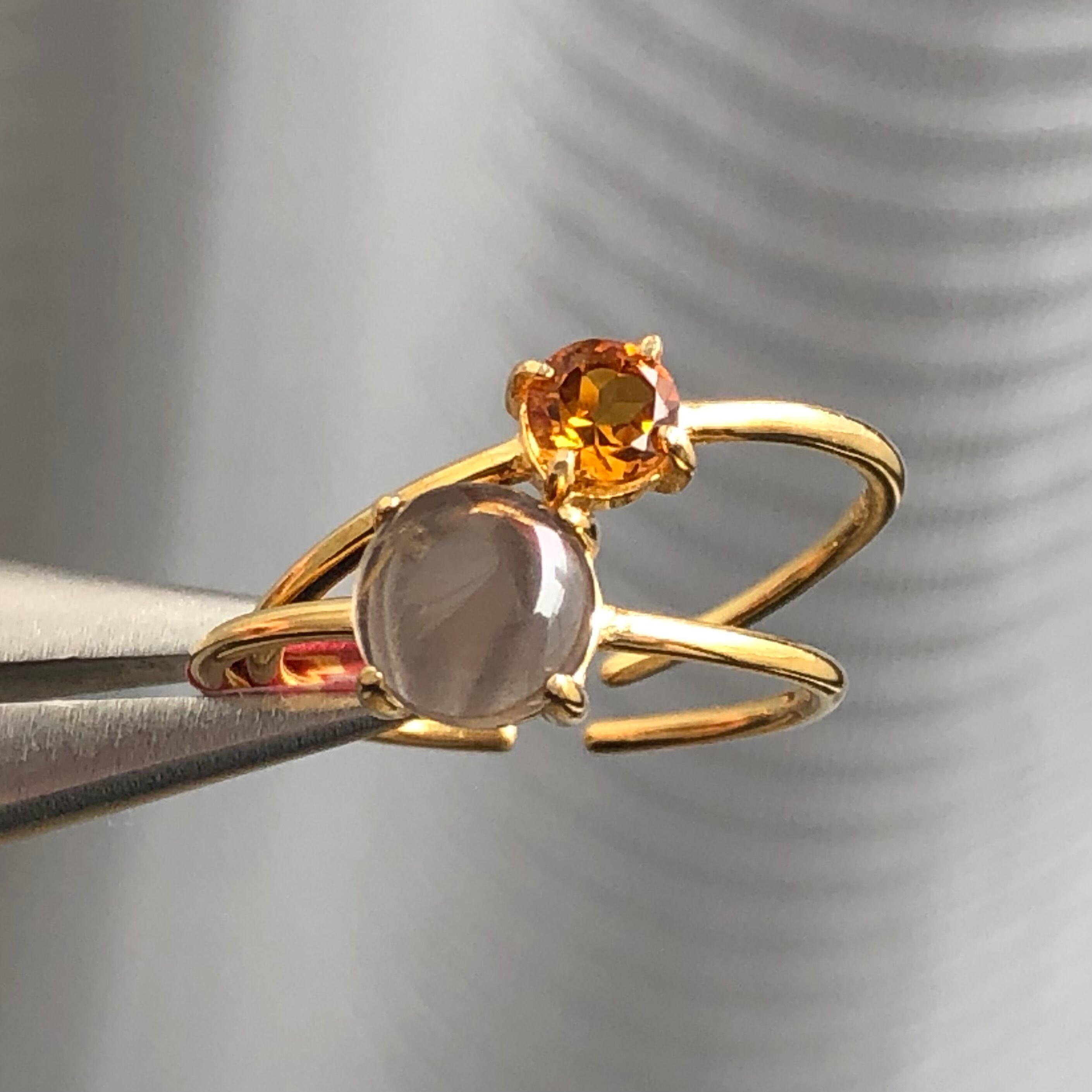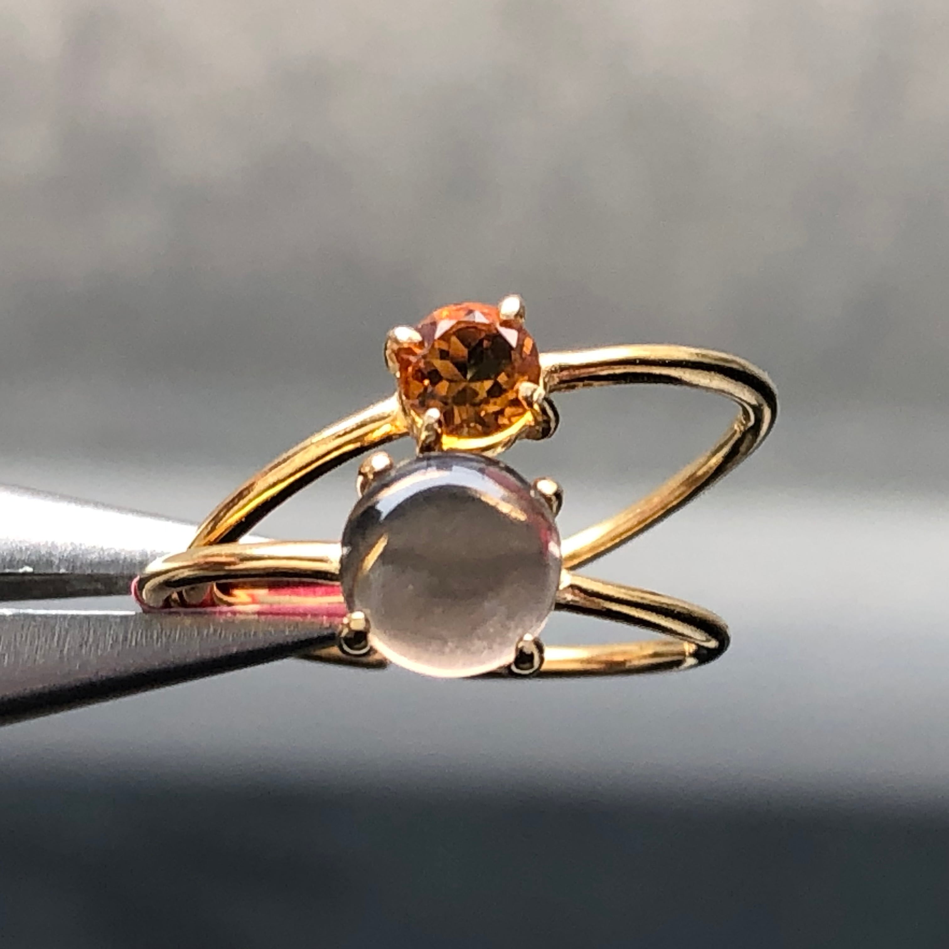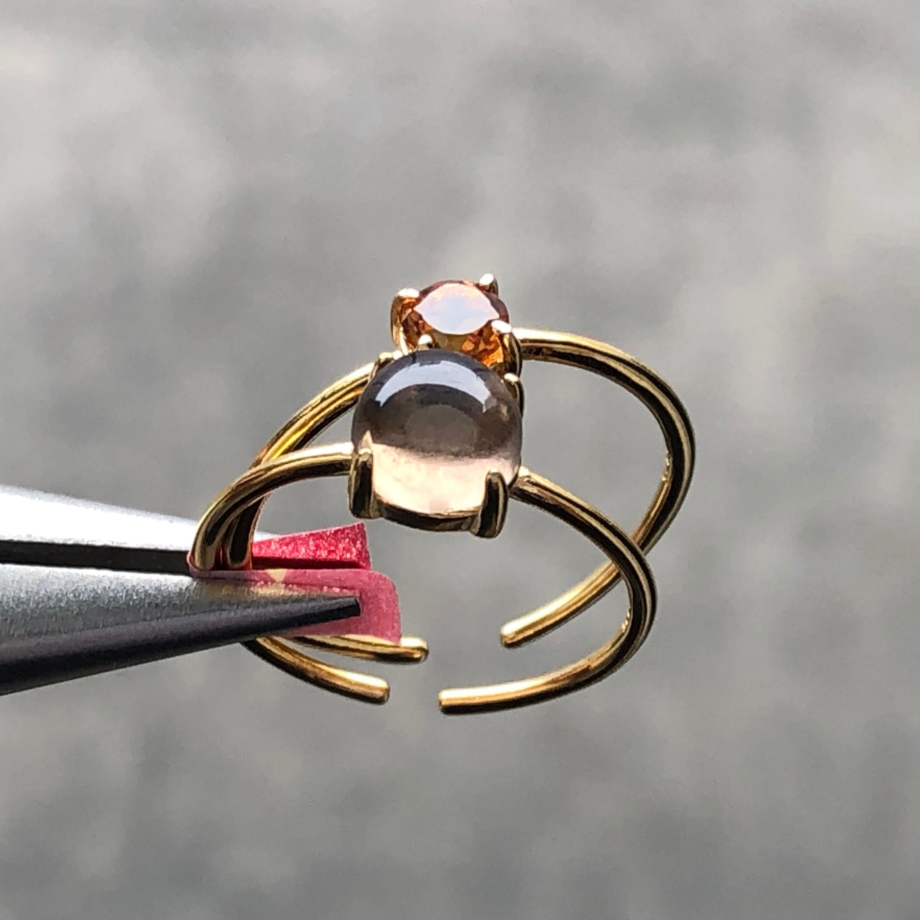 マデイラシトリンとスモーキークォーツのリングセットです。