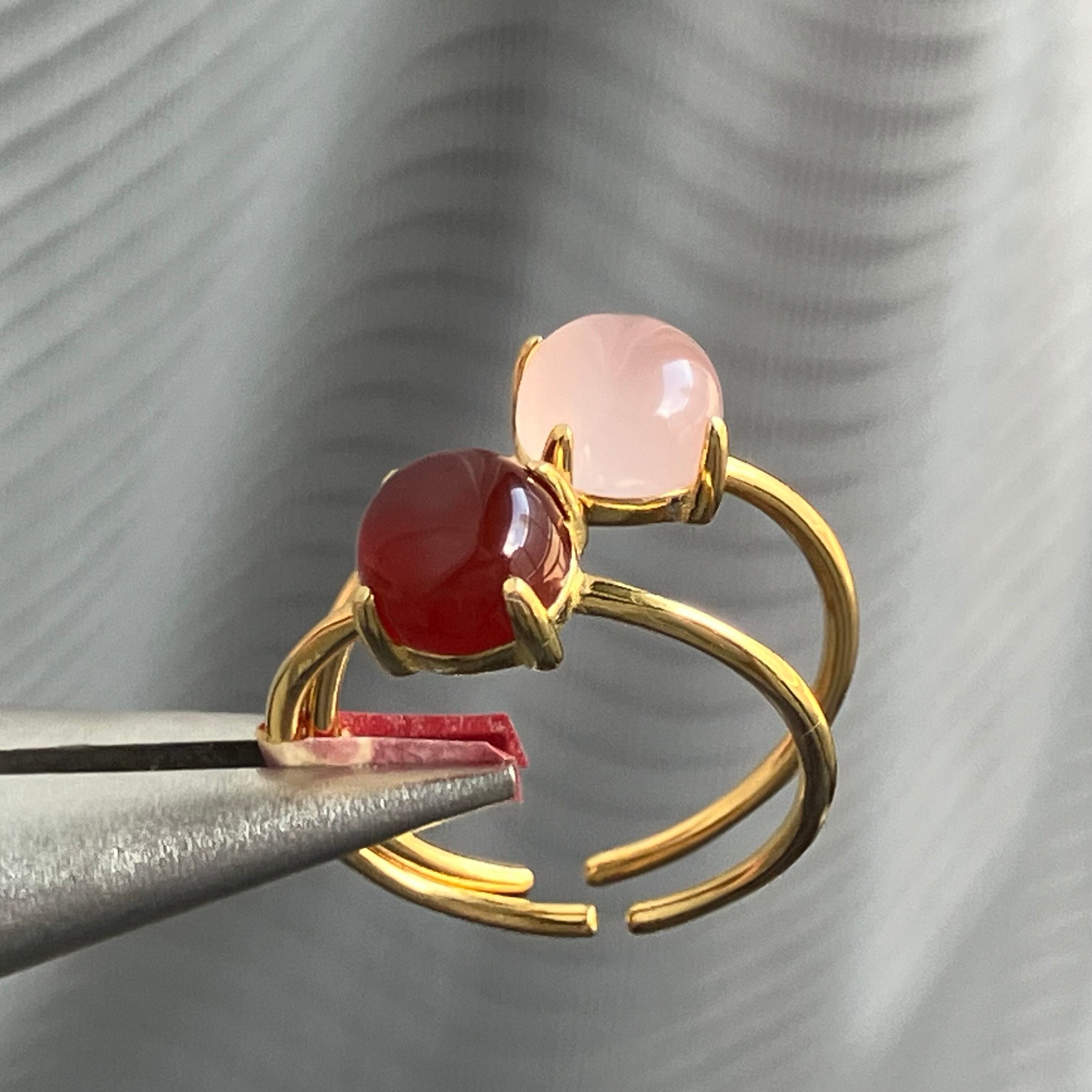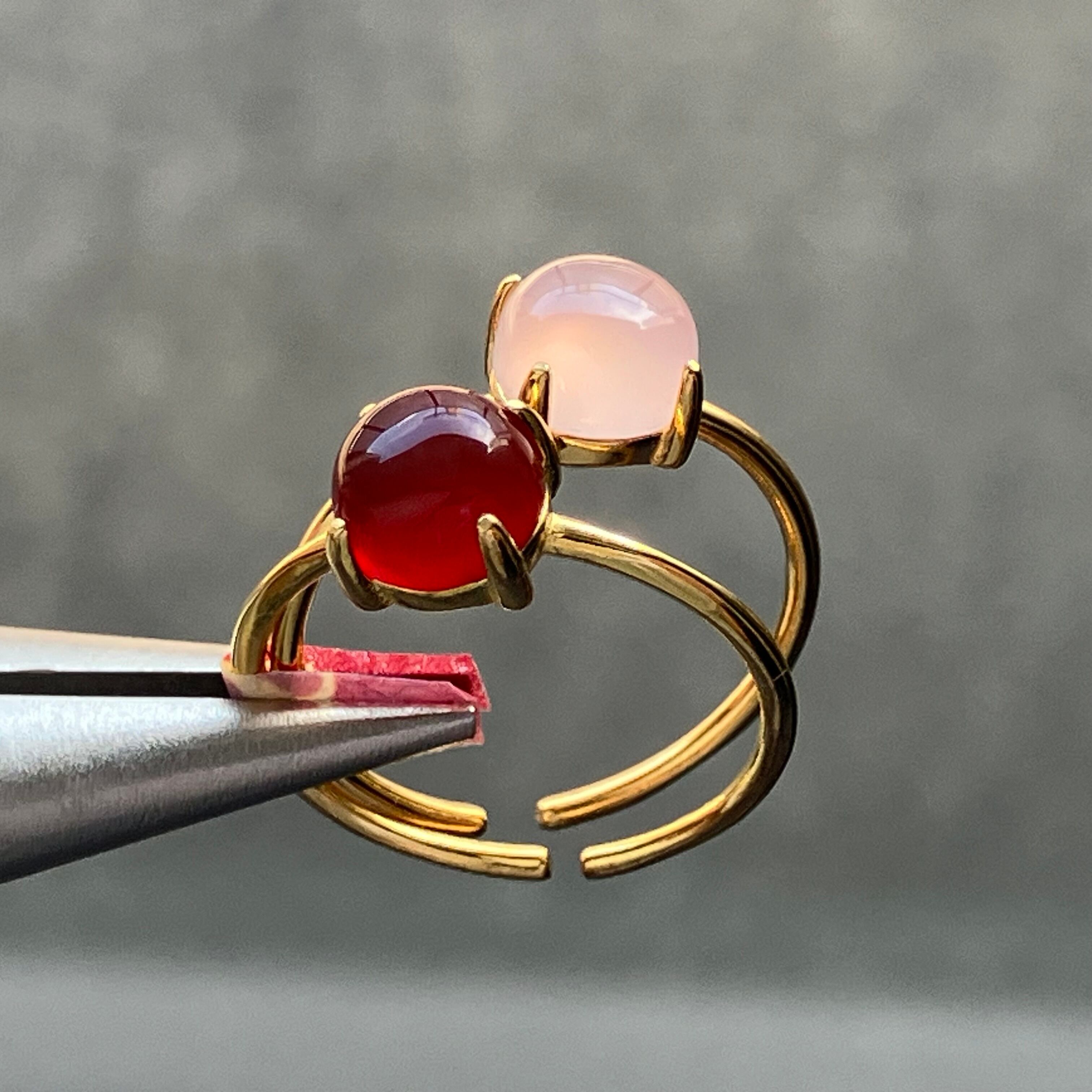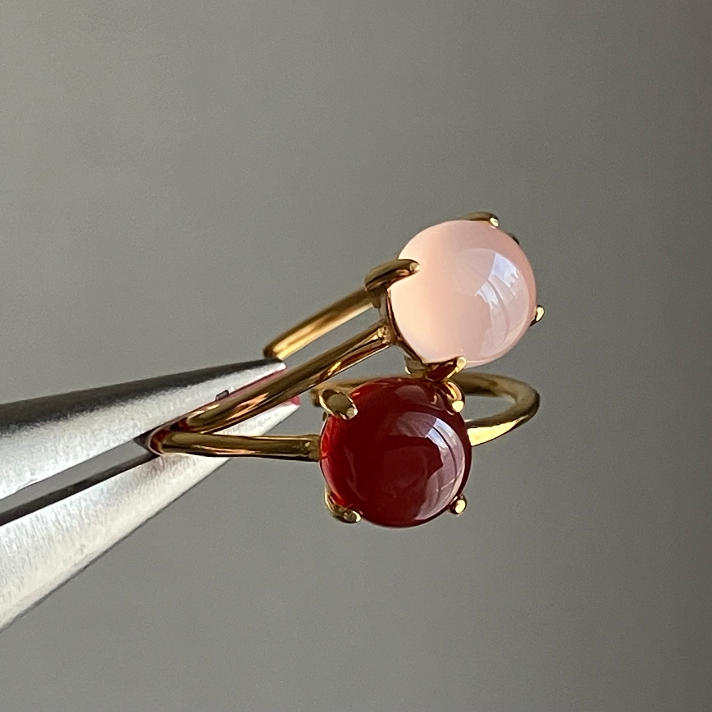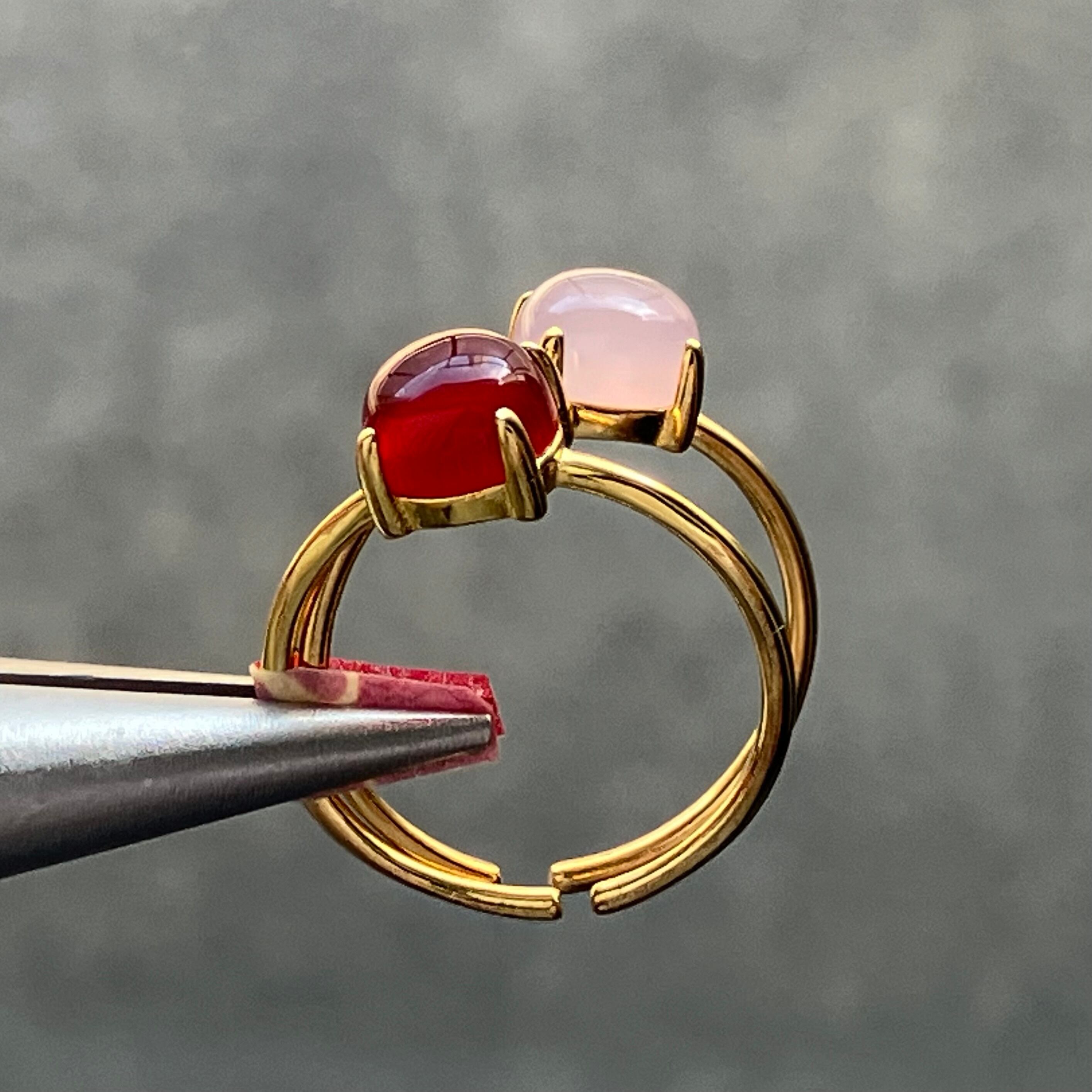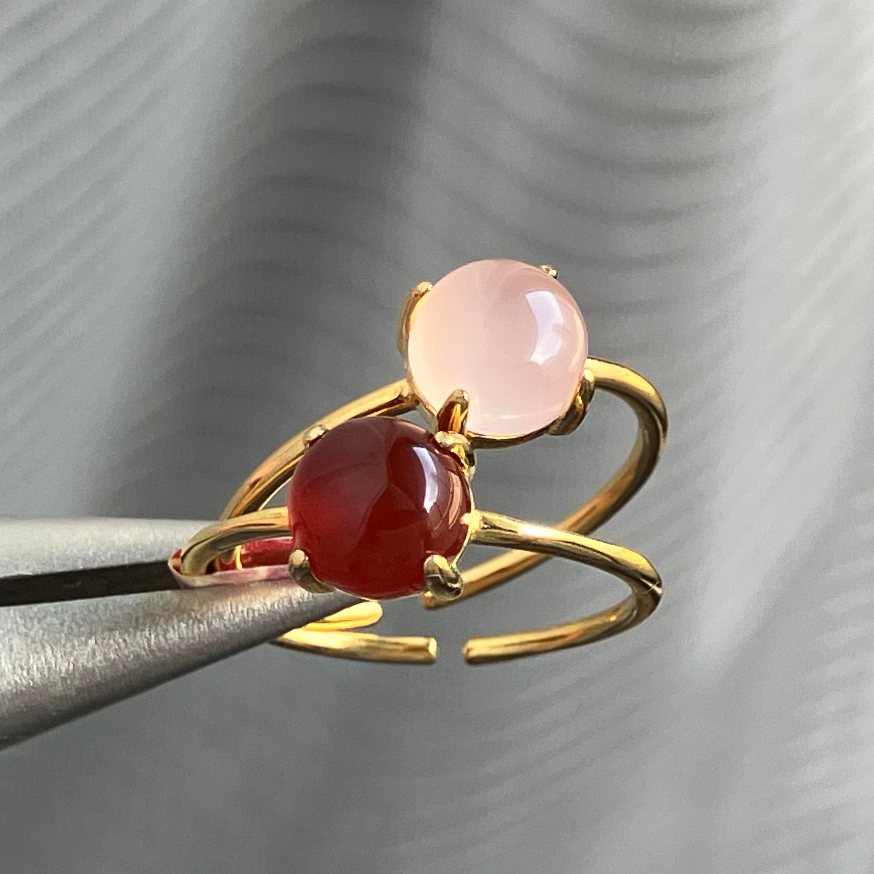 レッドアゲートとピンクカルセドニーのリングセットです。