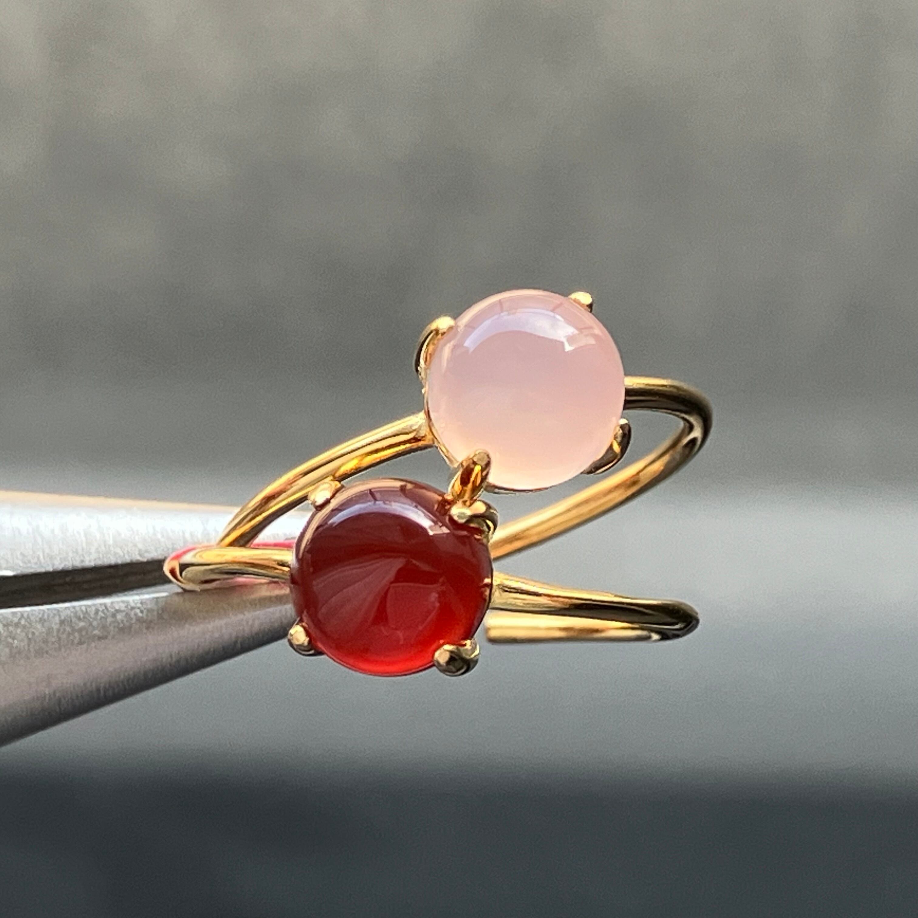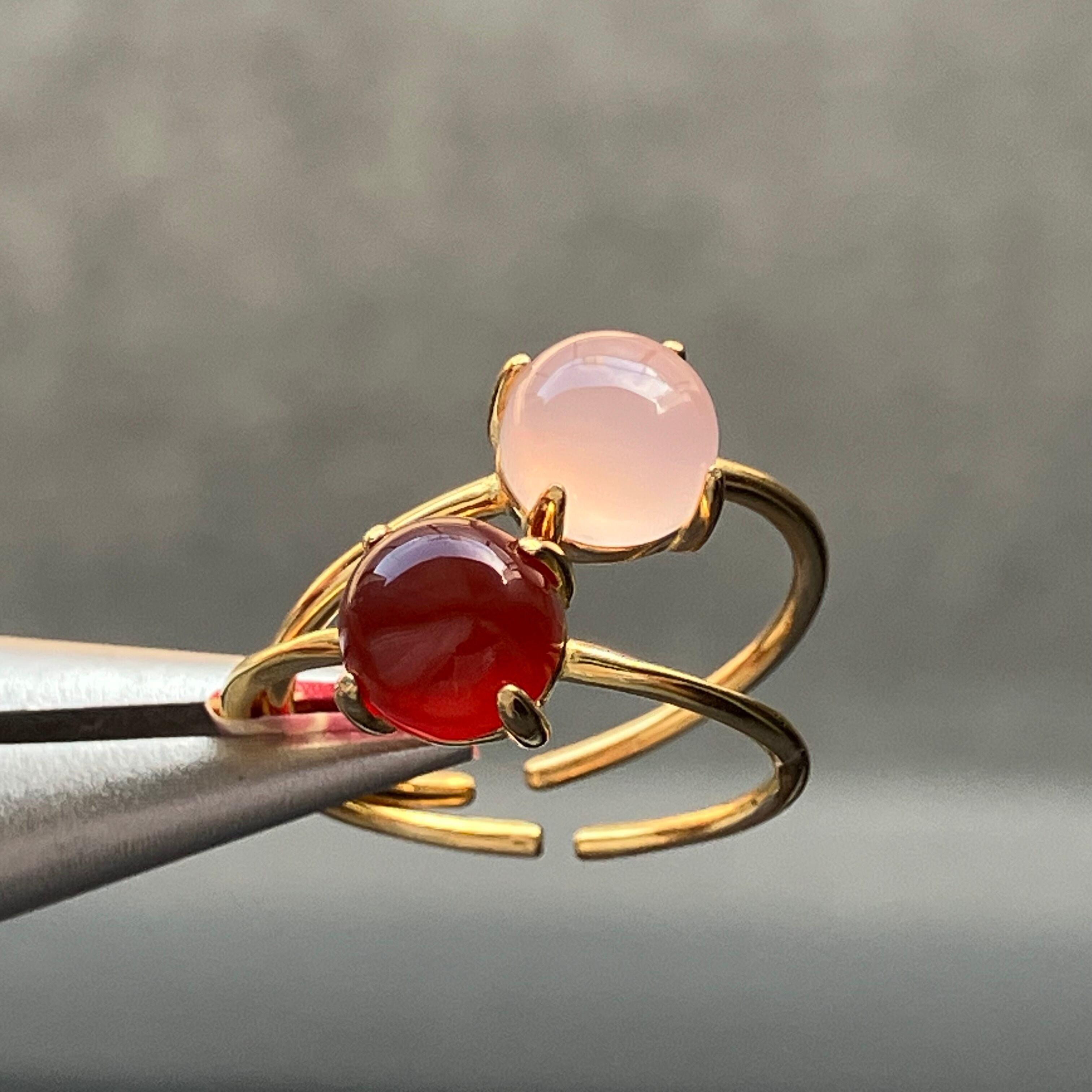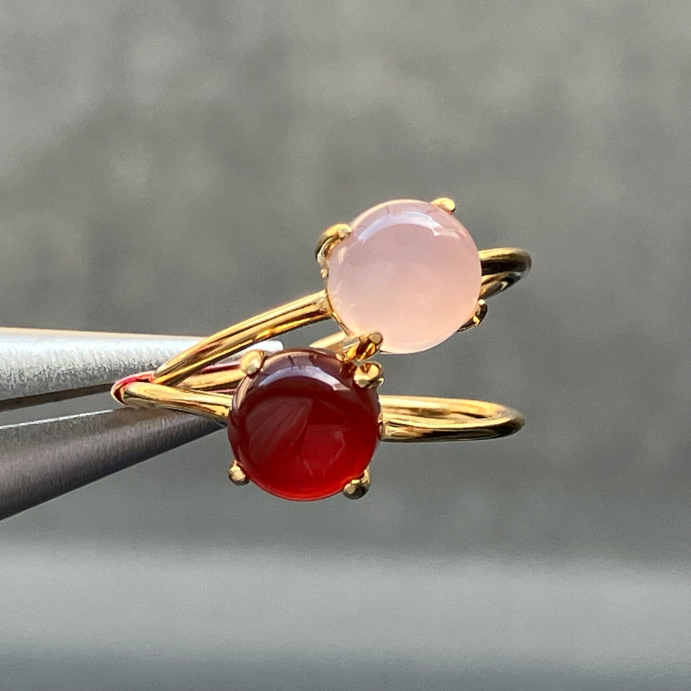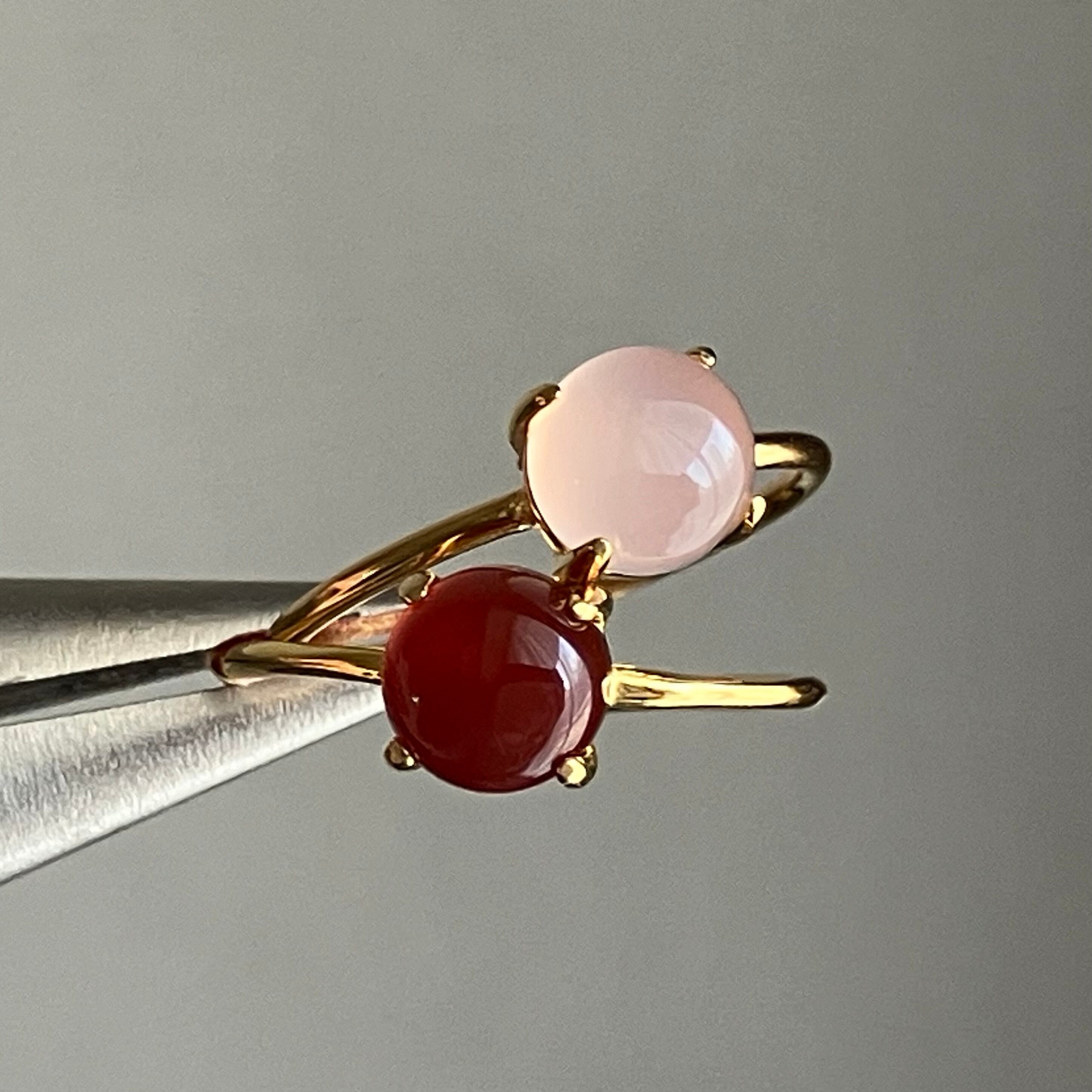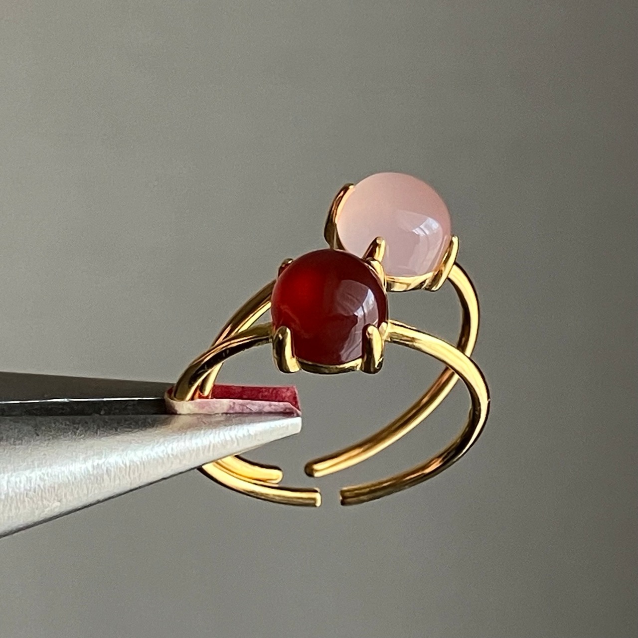 レッドアゲートとピンクカルセドニーのリングセットです。