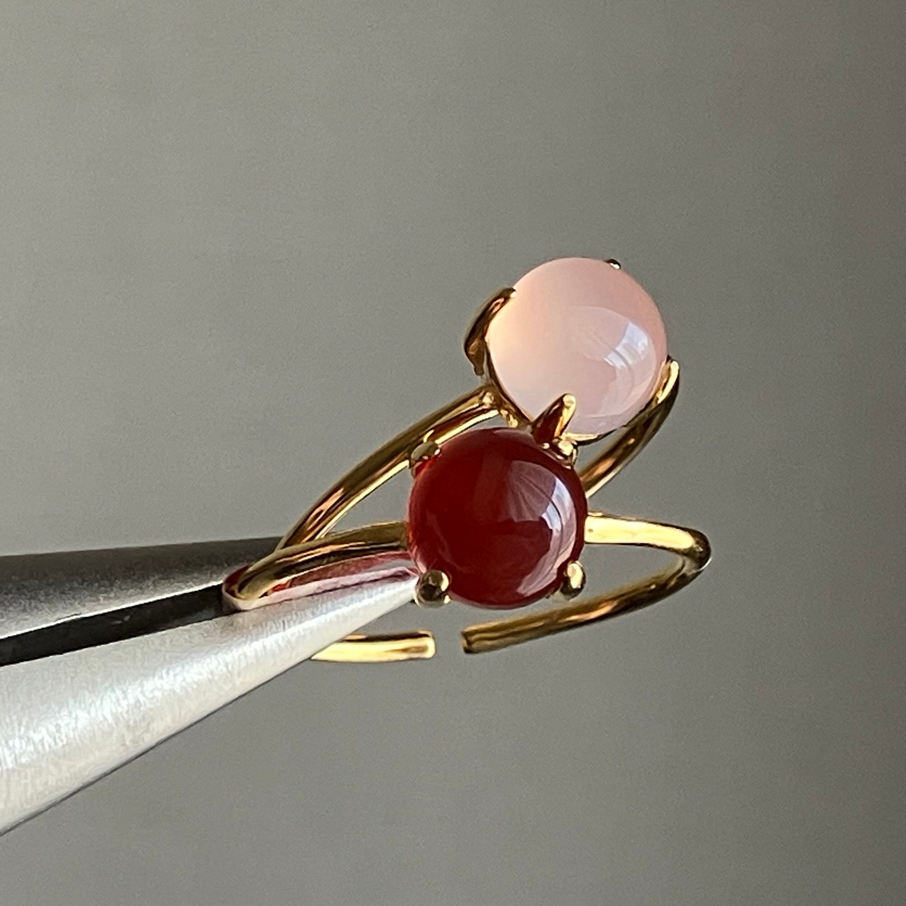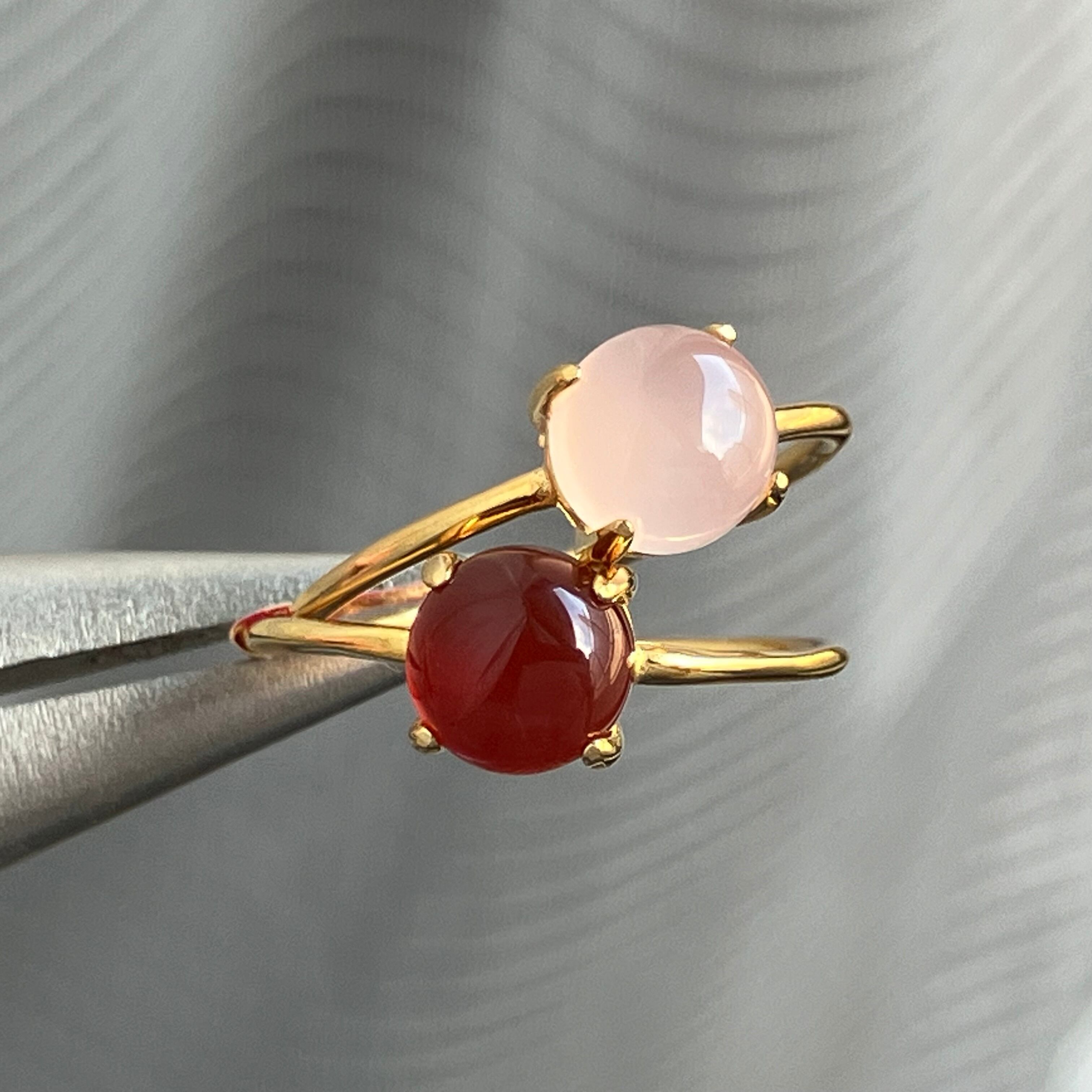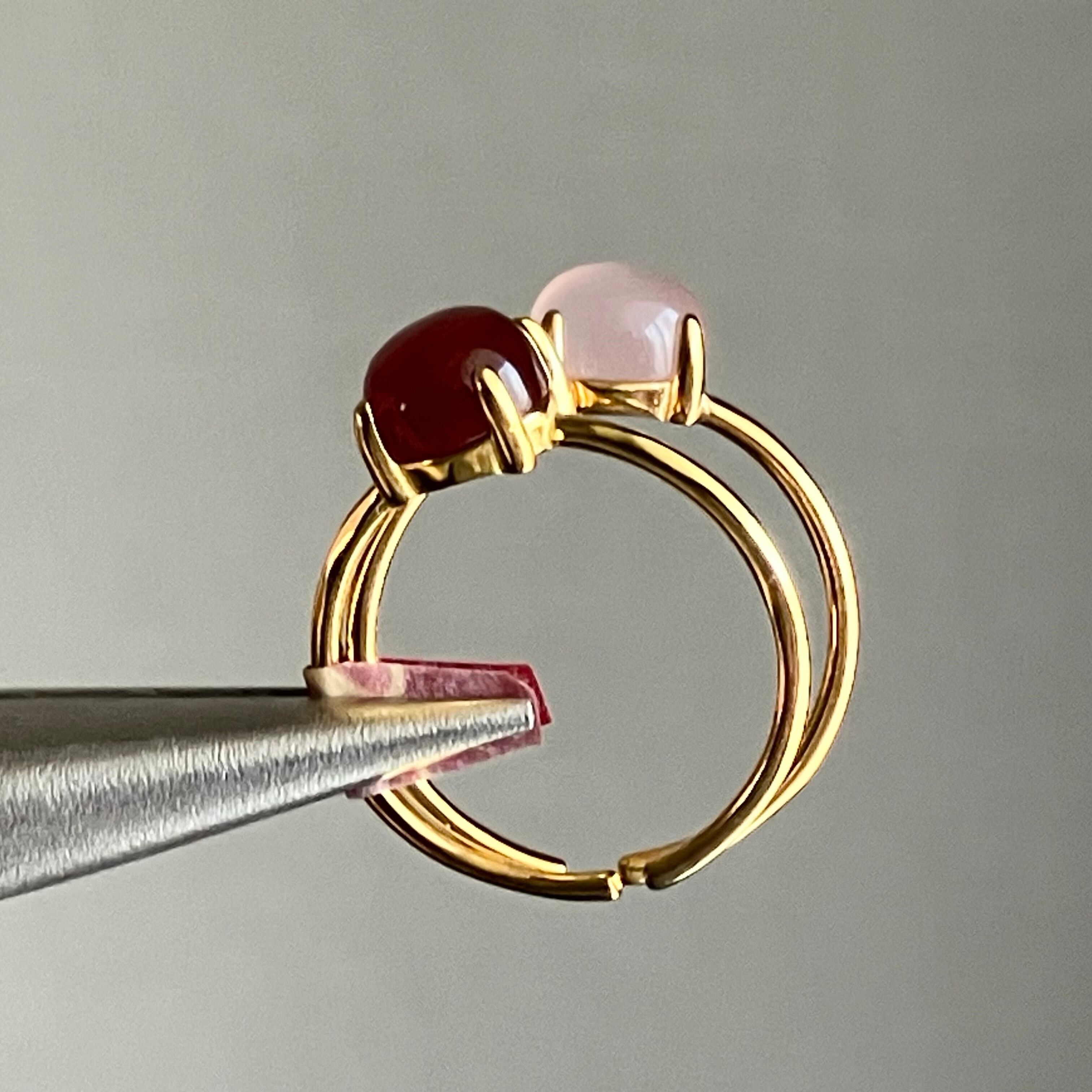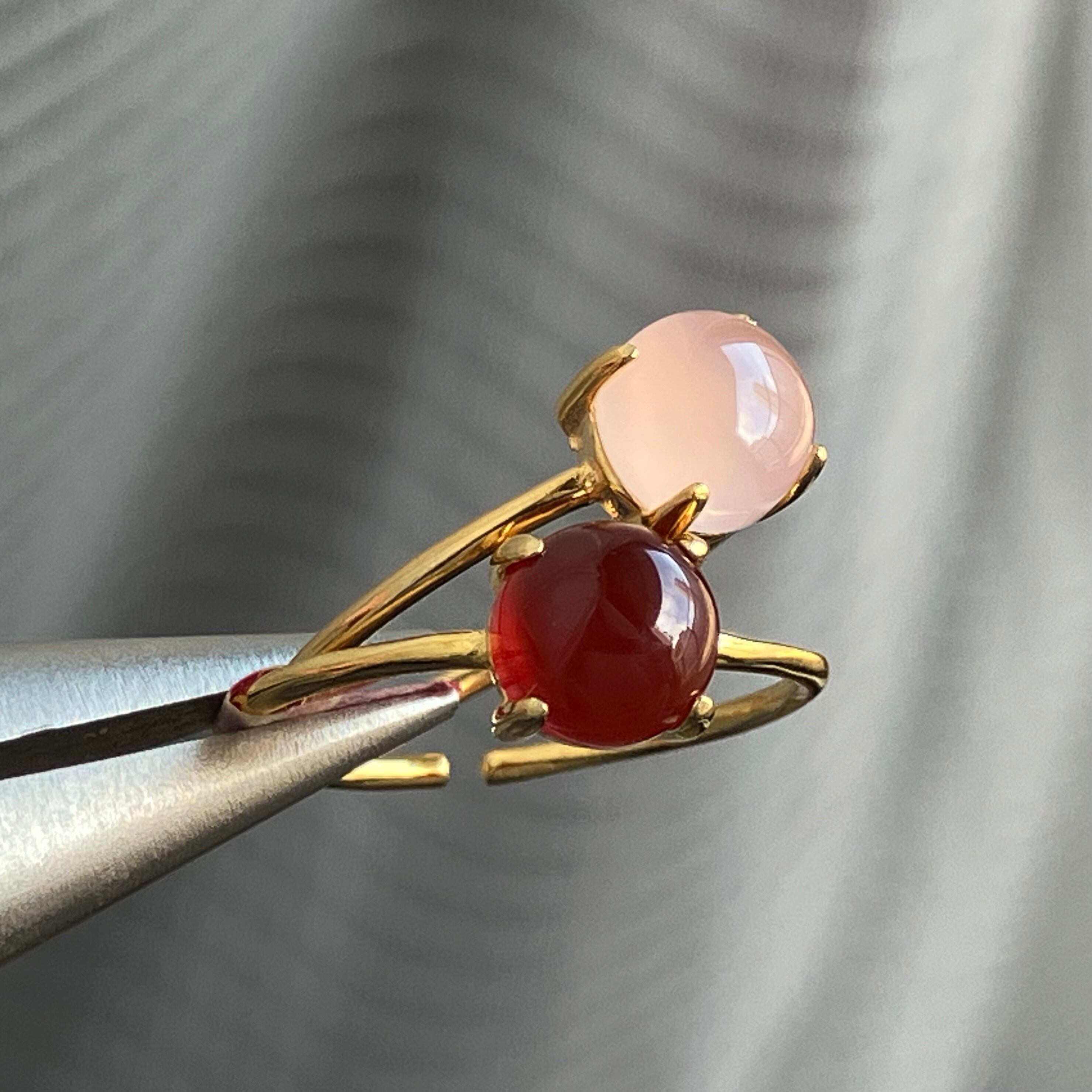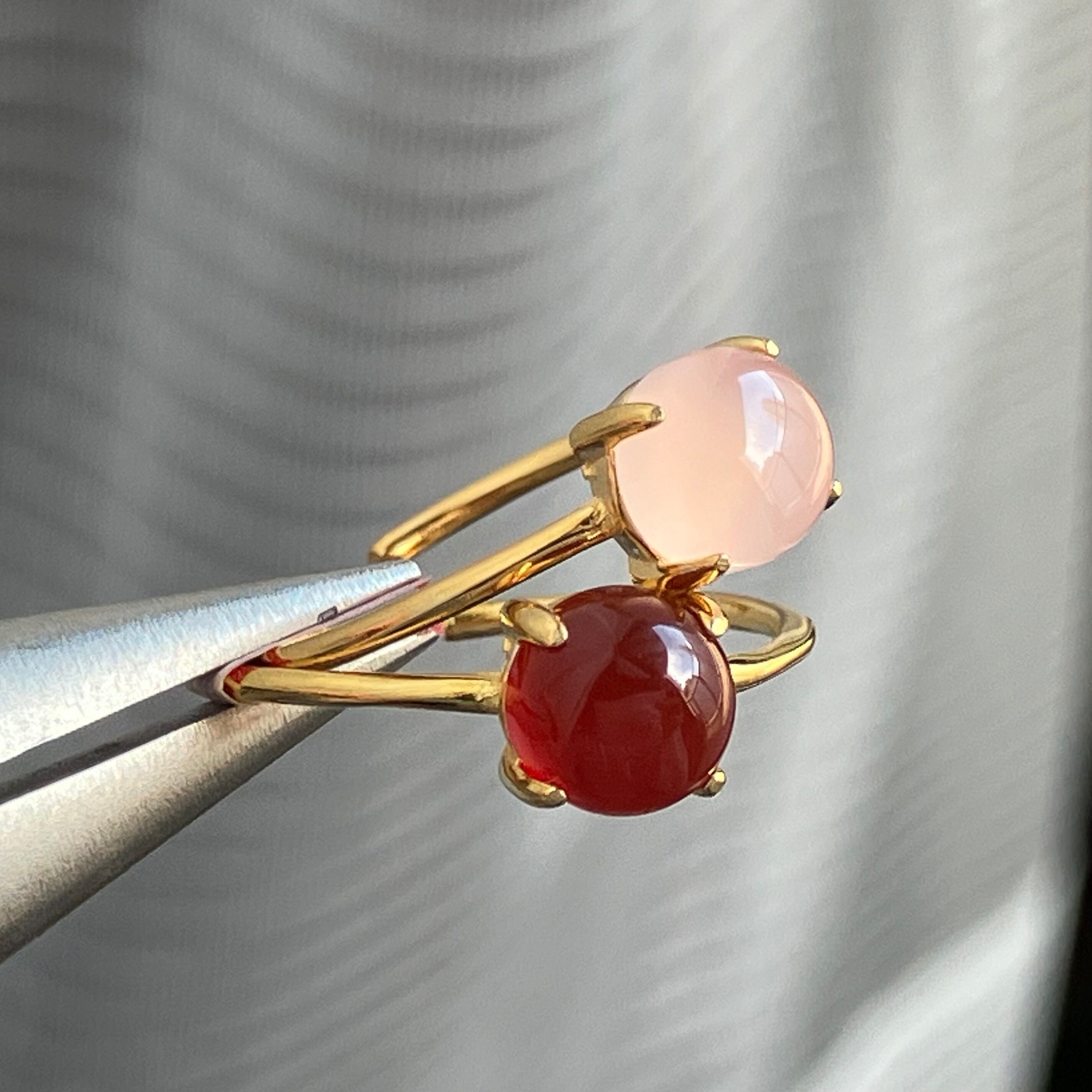 レッドアゲートとピンクカルセドニーのリングセットです。