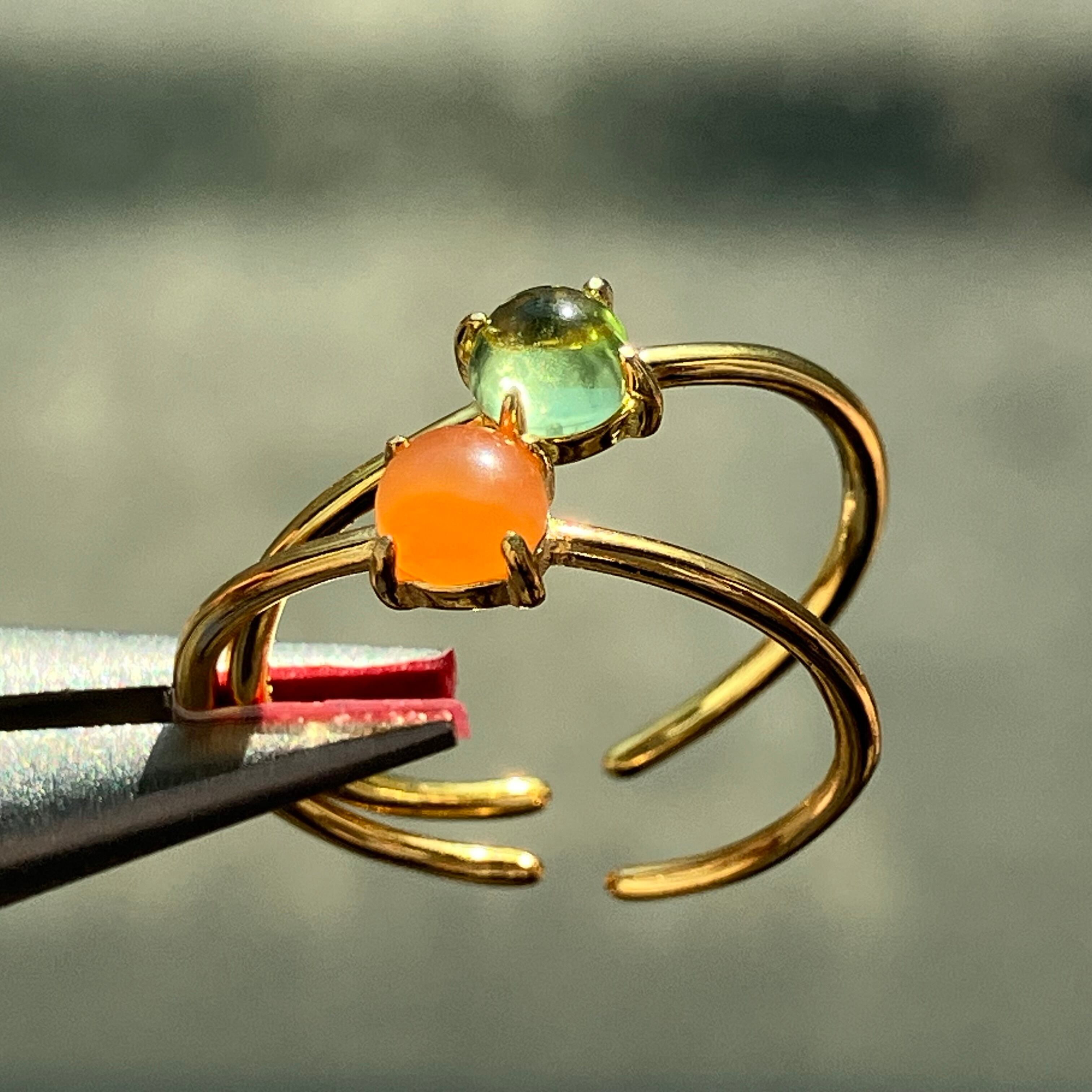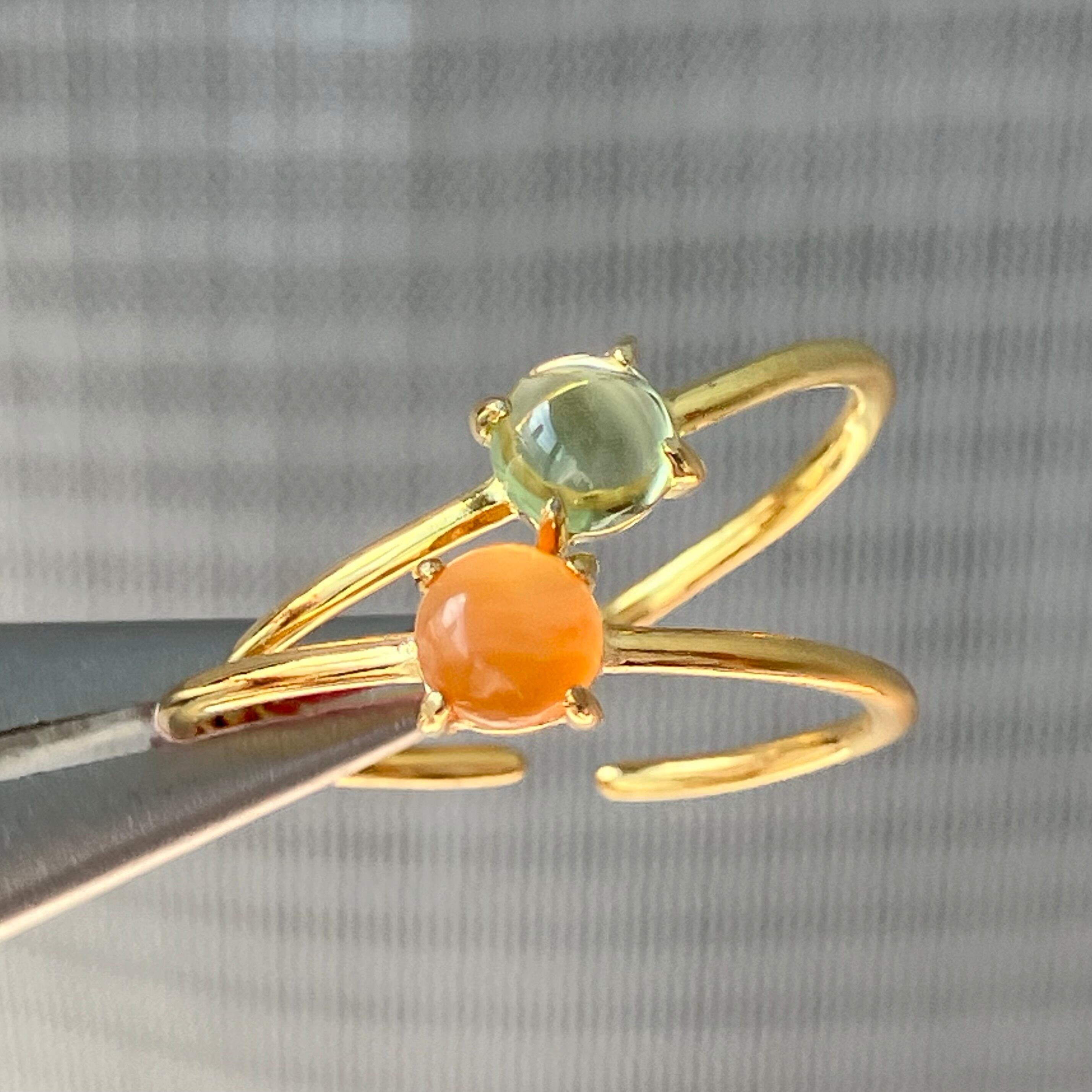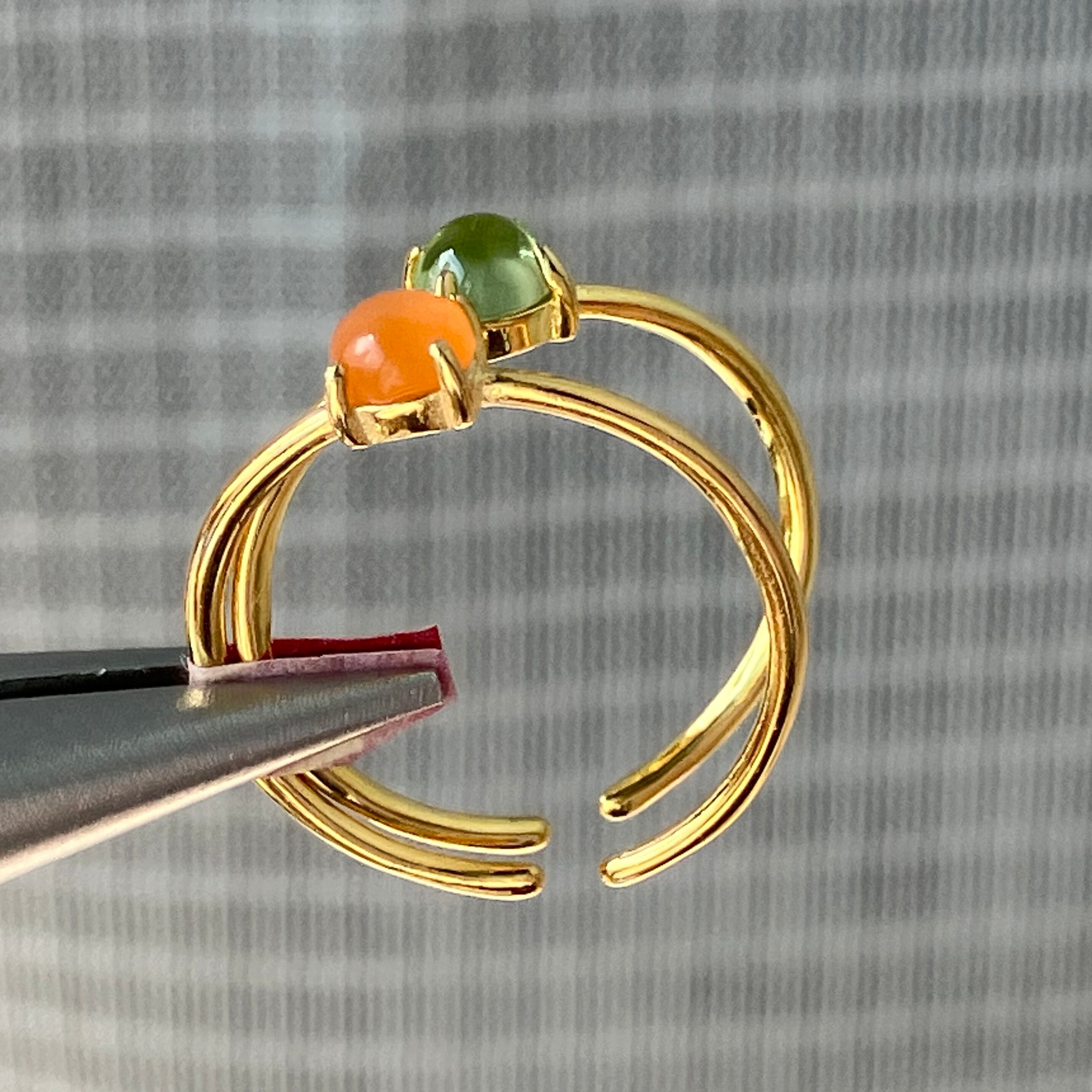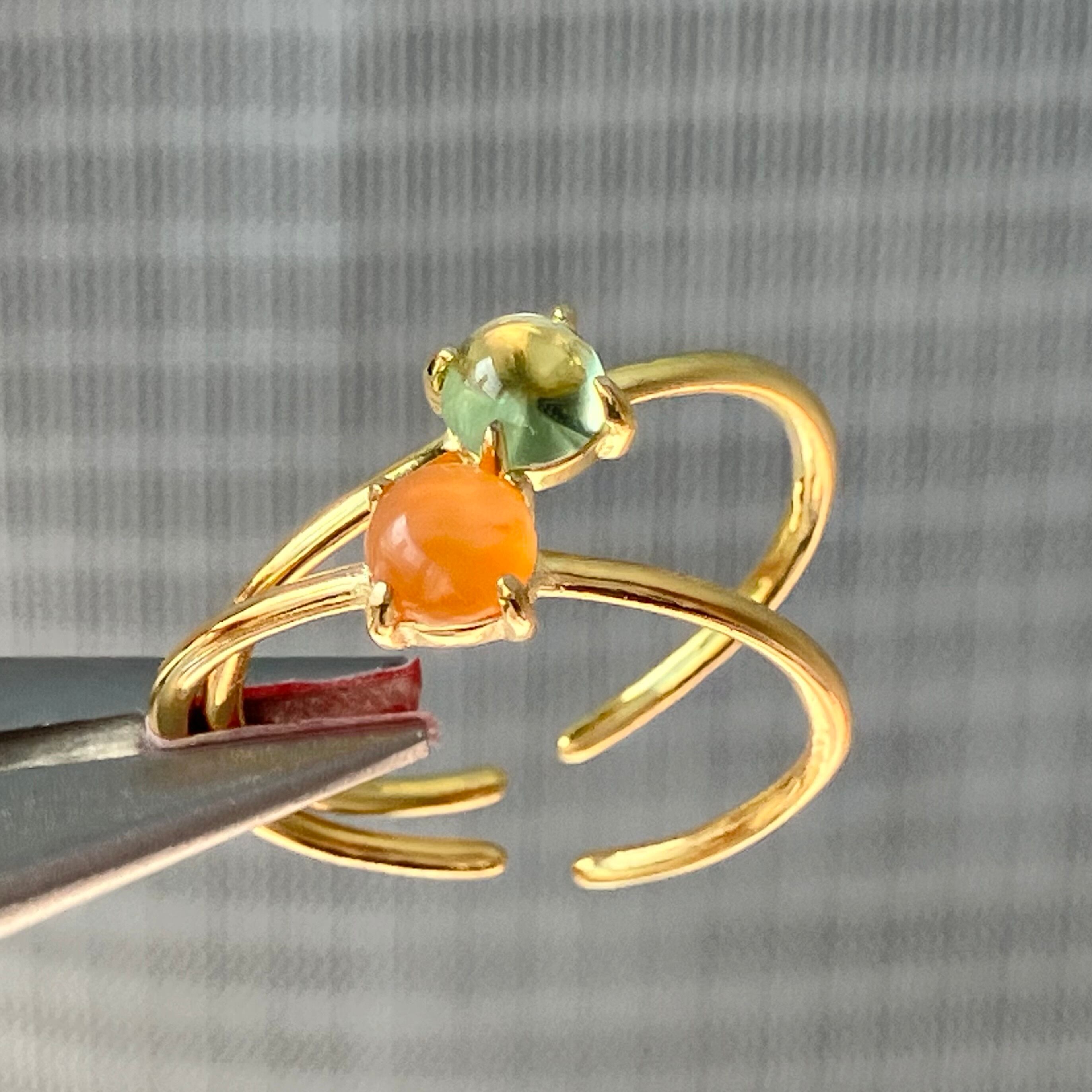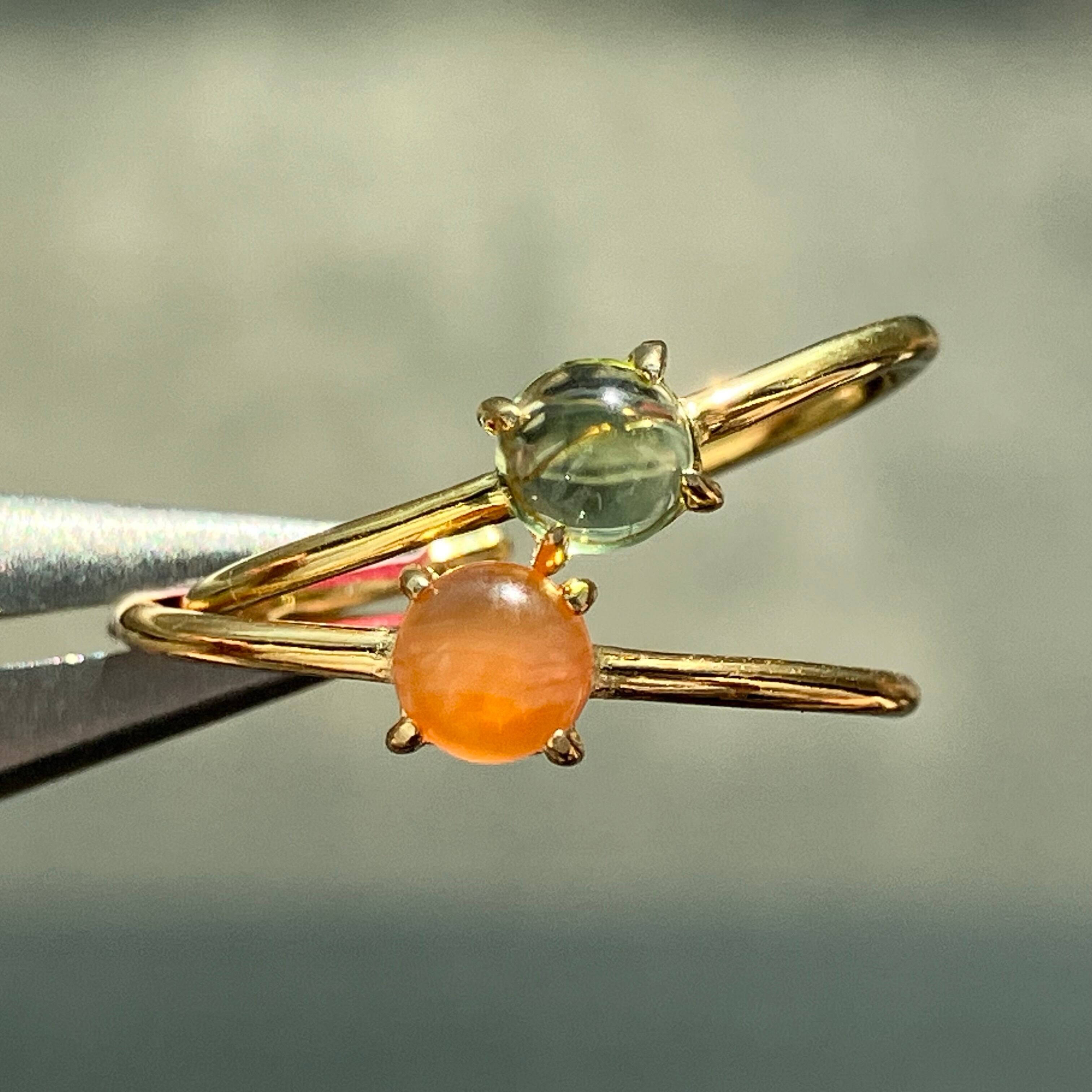 カーネリアンとペリドットのリングセットです。