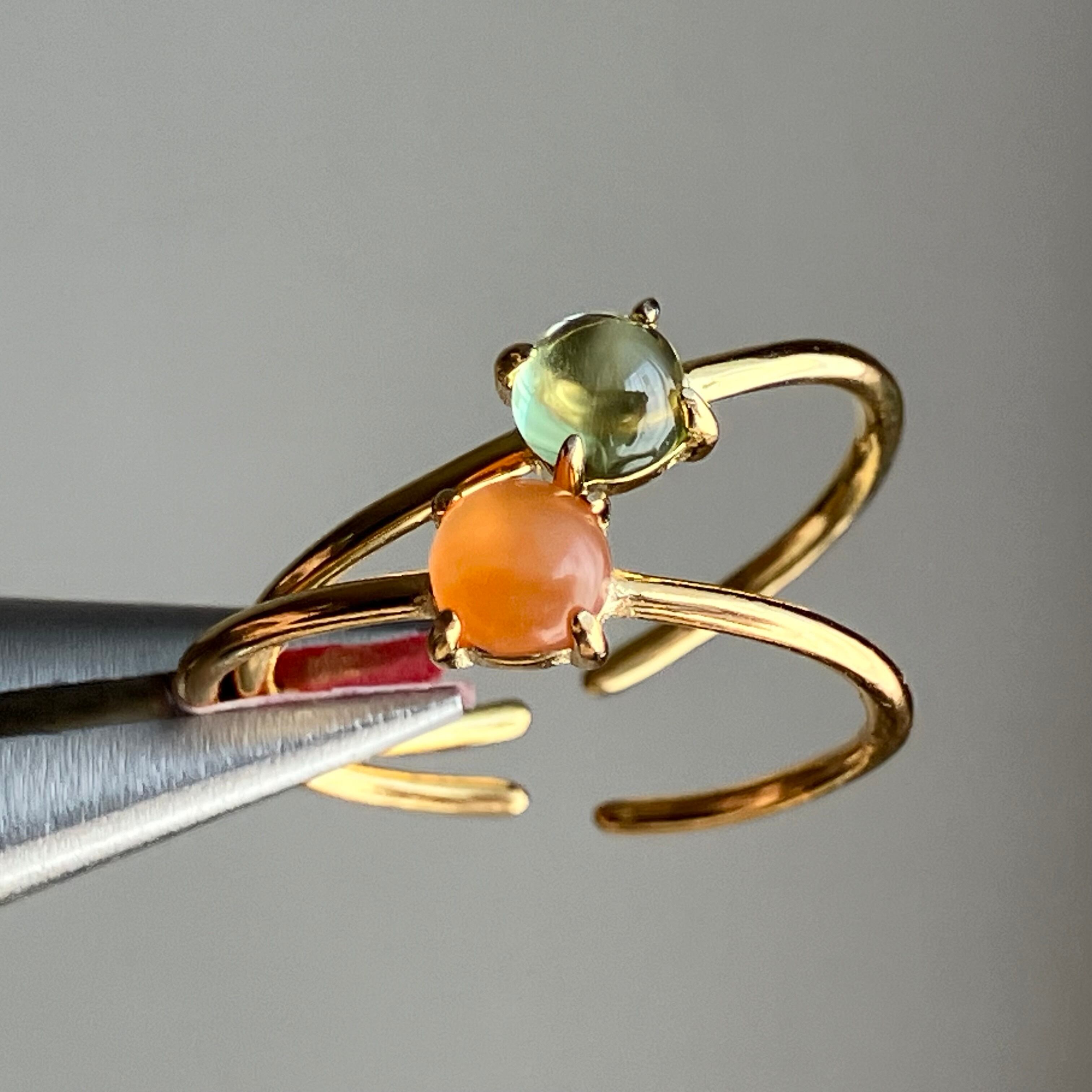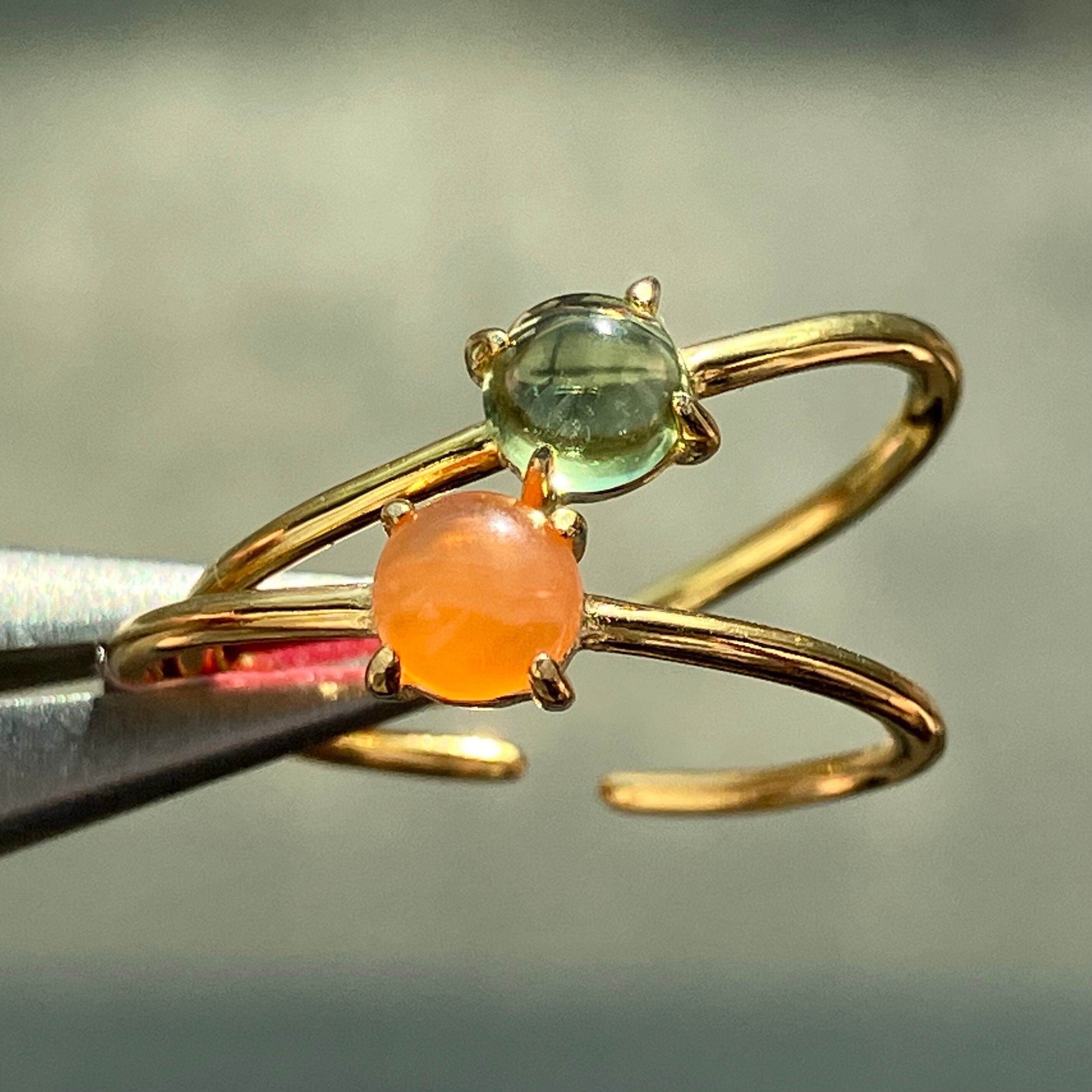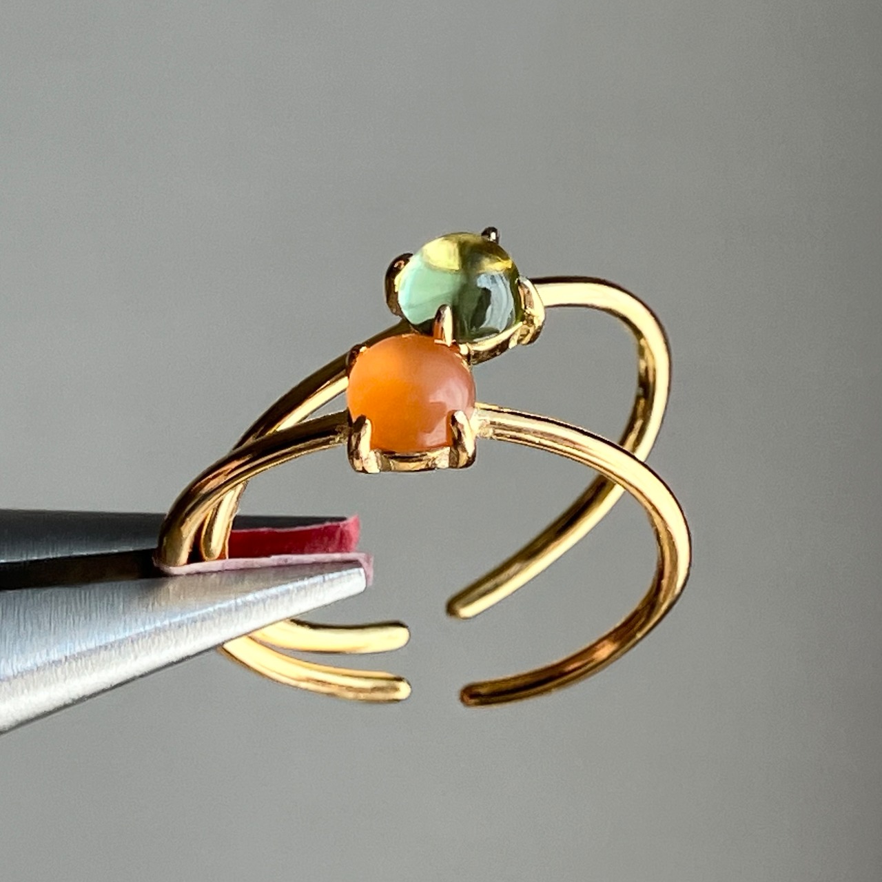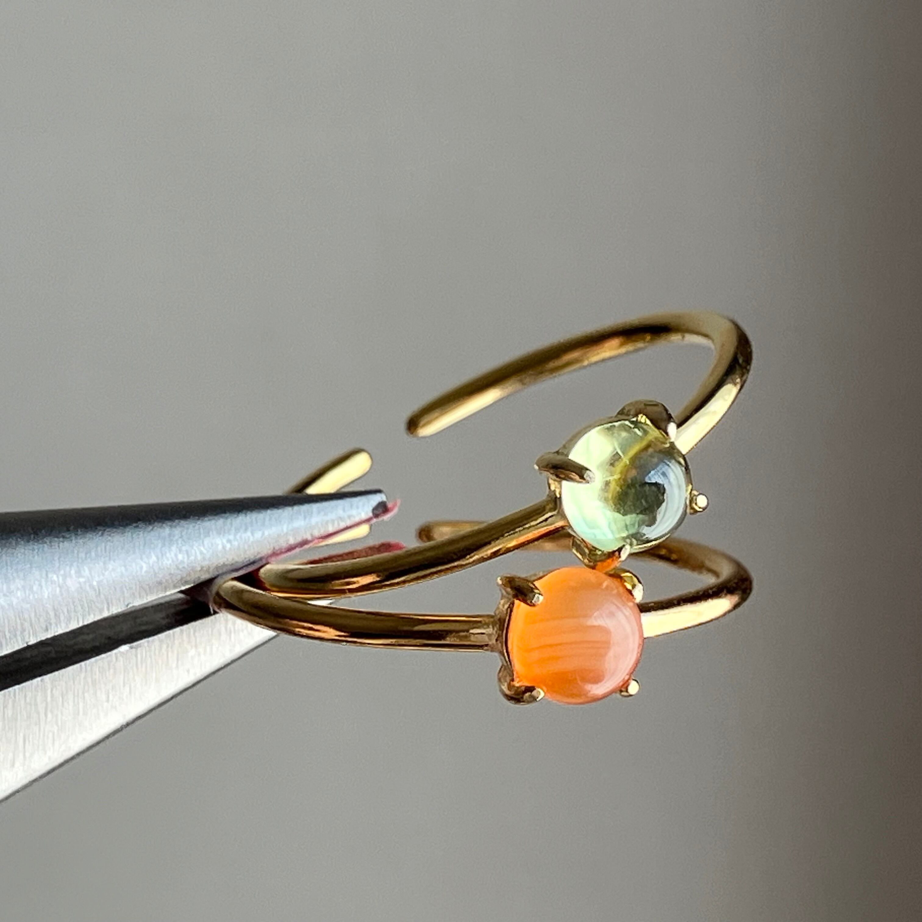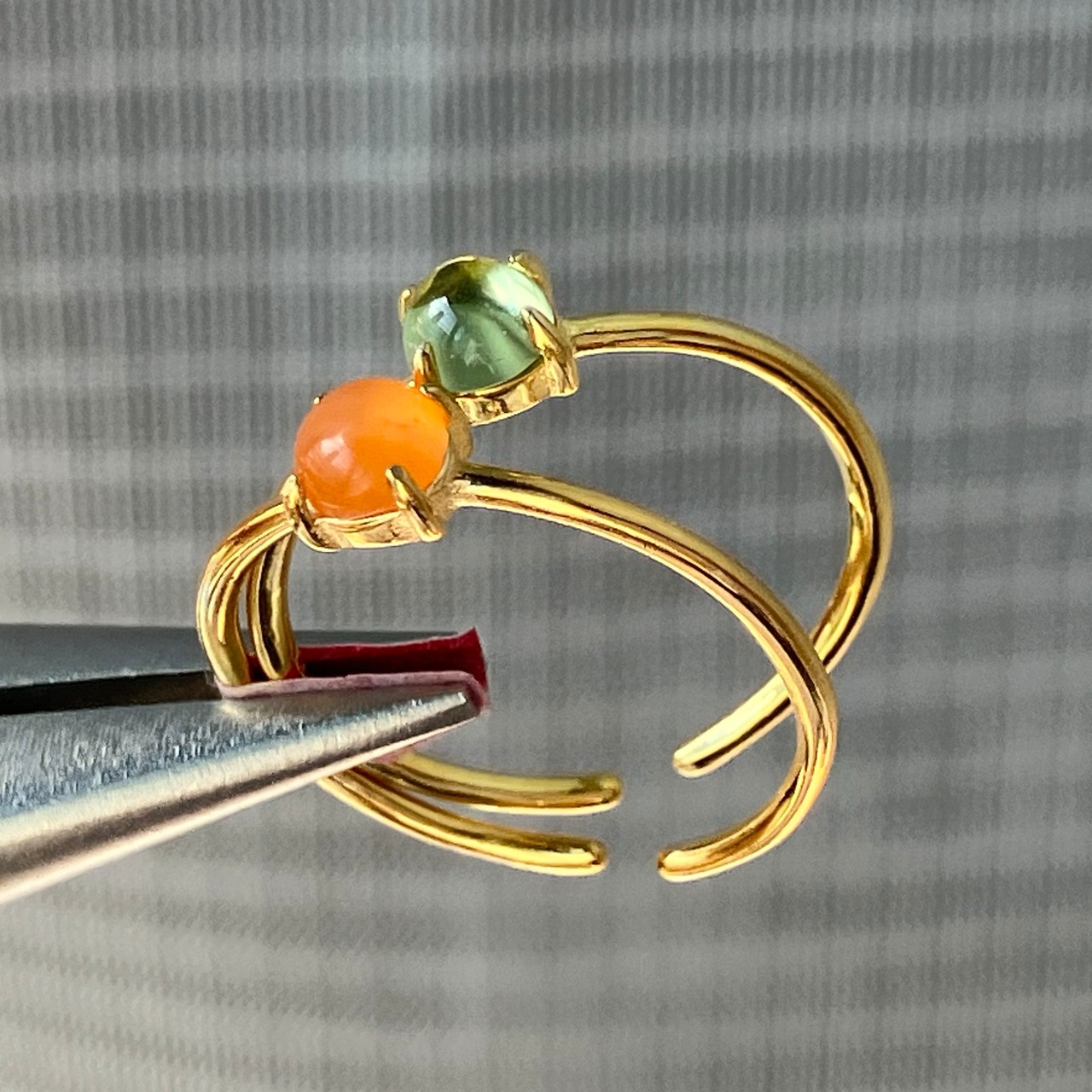 カーネリアンとペリドットのリングセットです。
