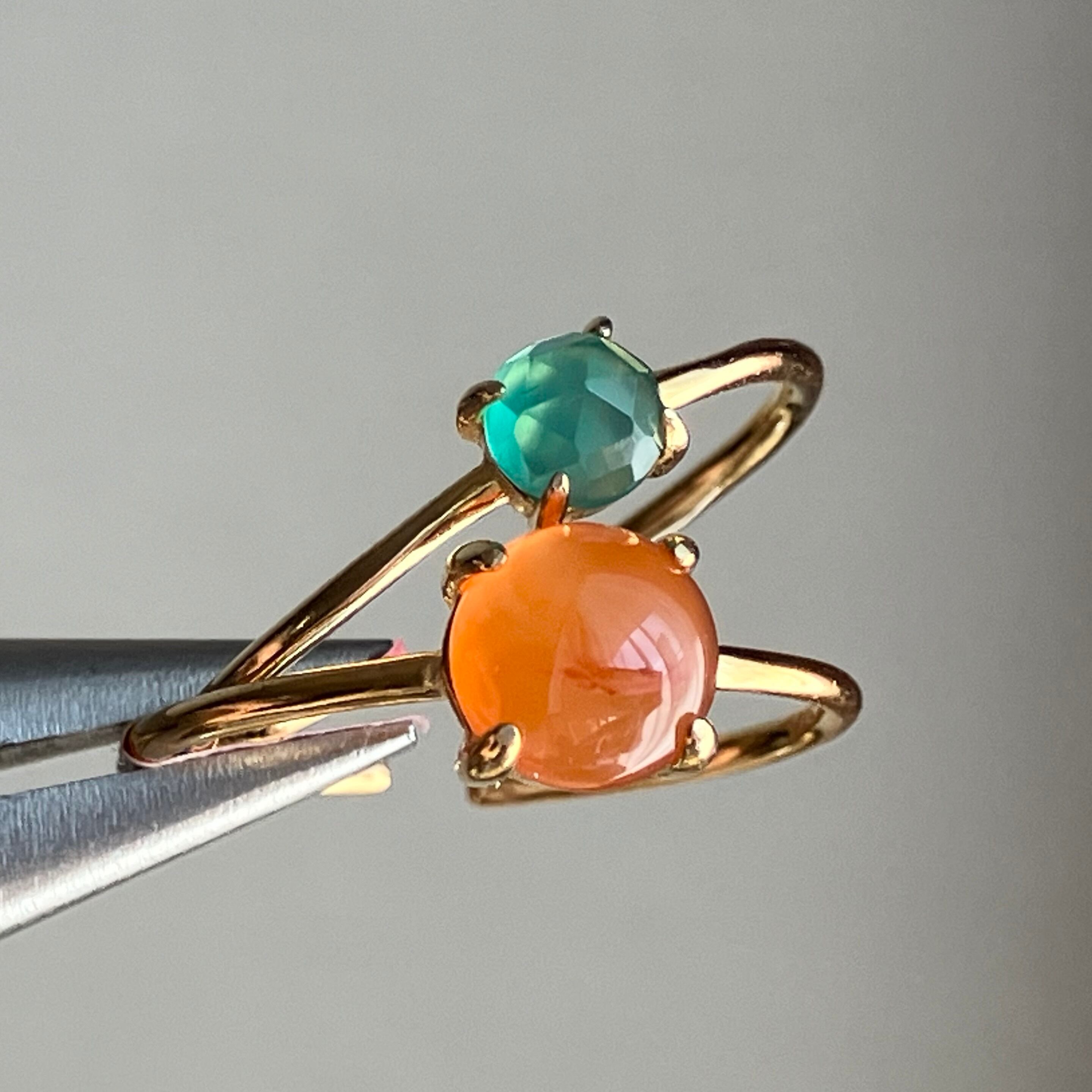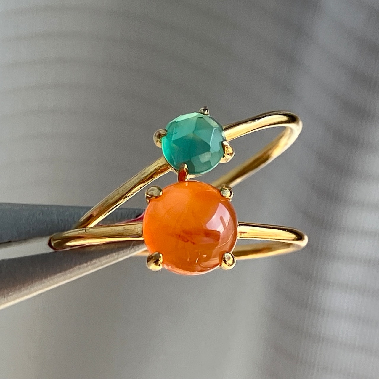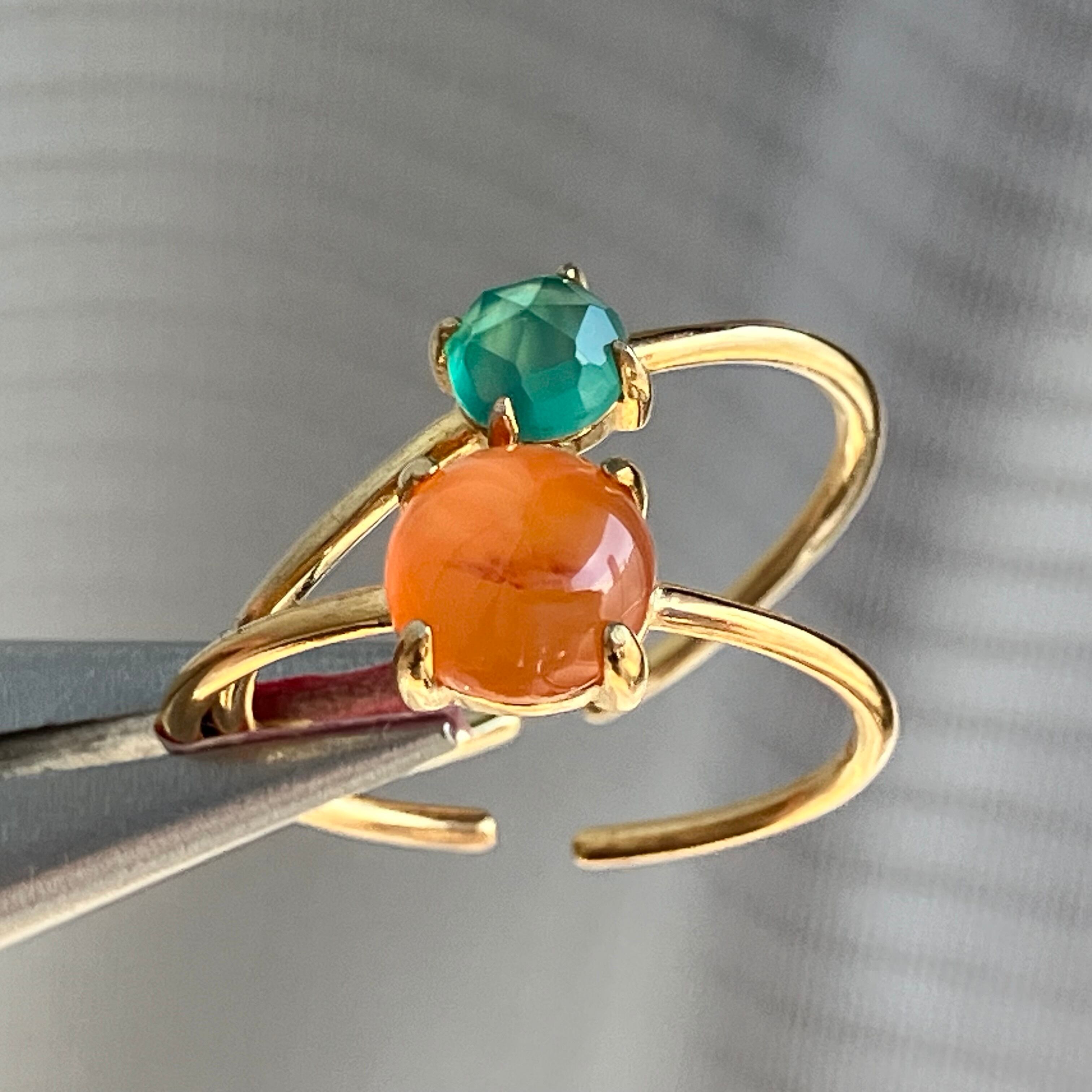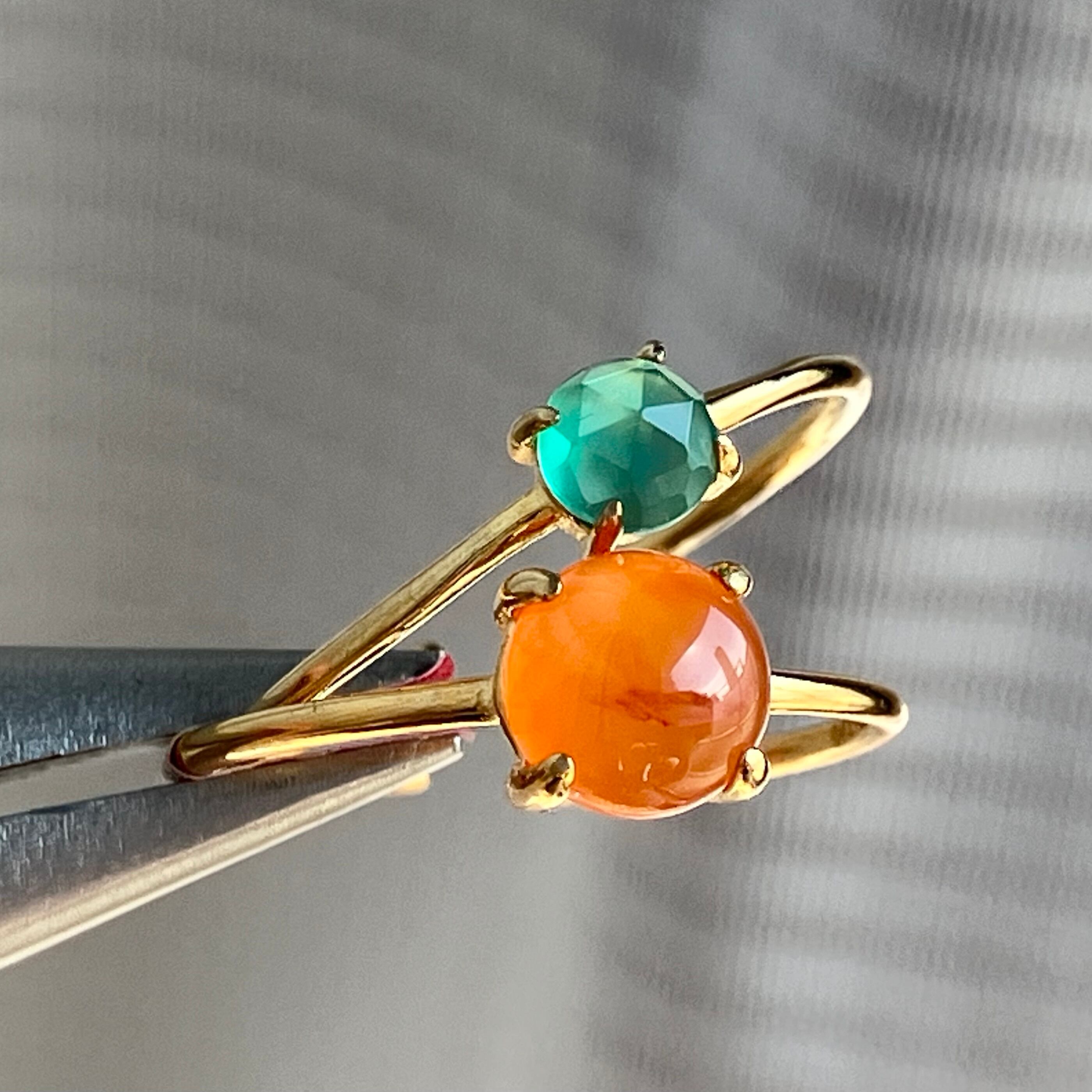 カーネリアンとグリーンオニキスのリングセットです。