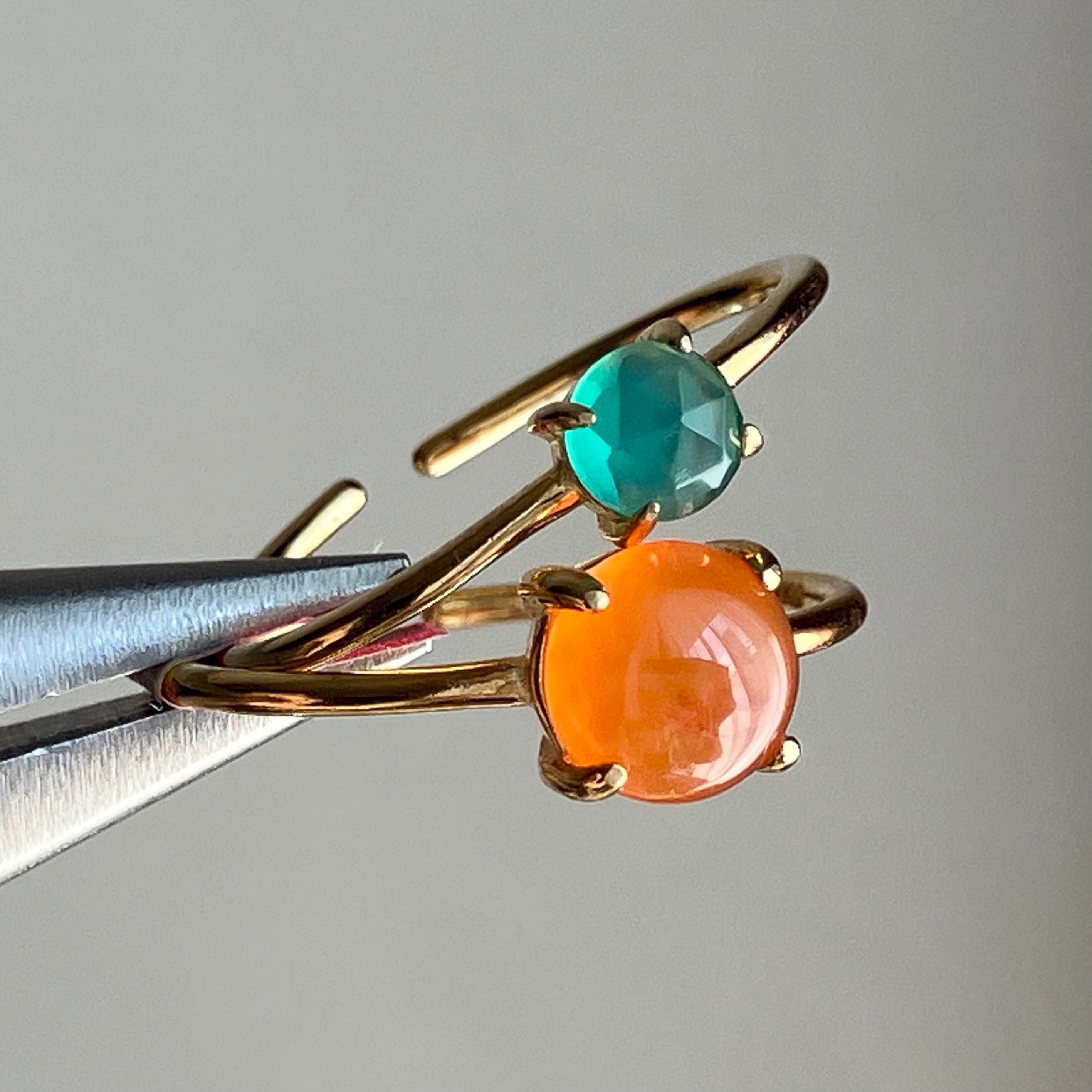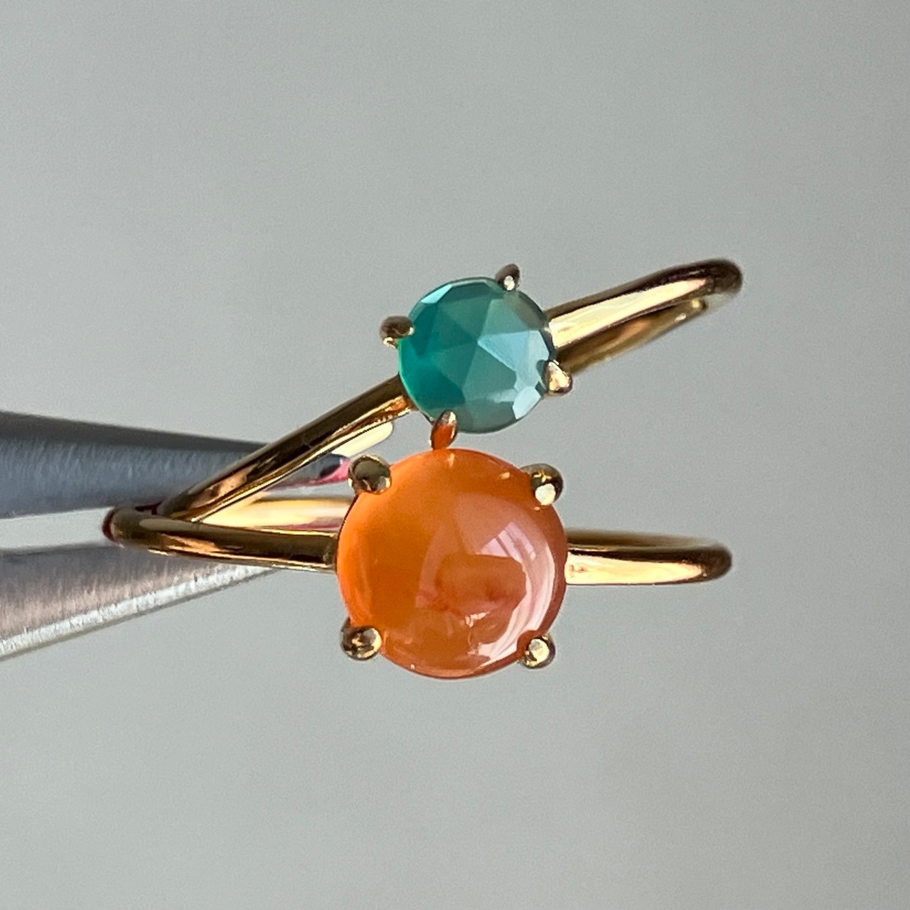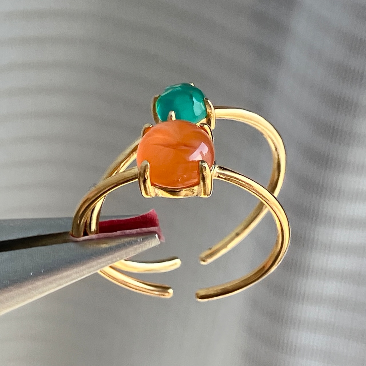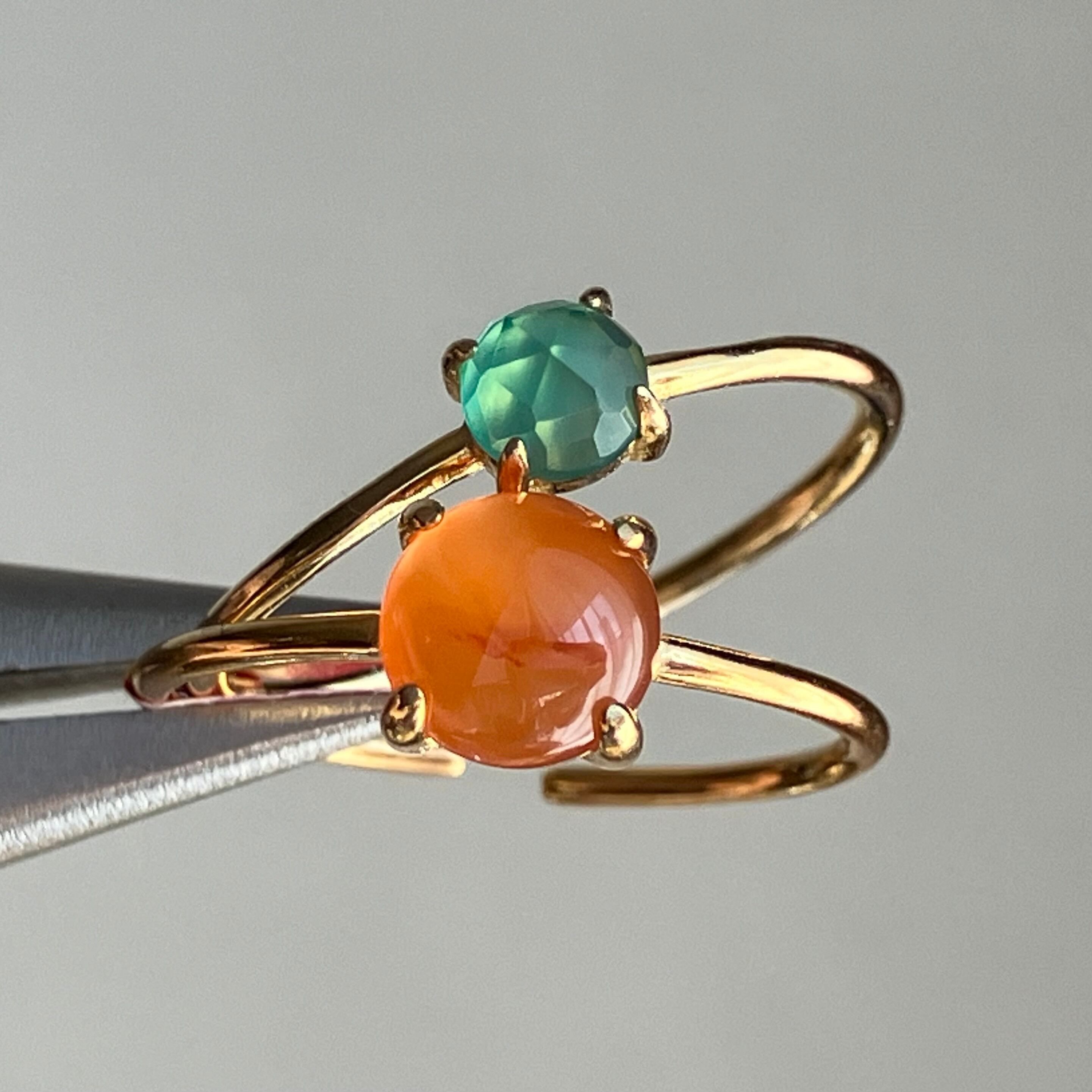 カーネリアンとグリーンオニキスのリングセットです。