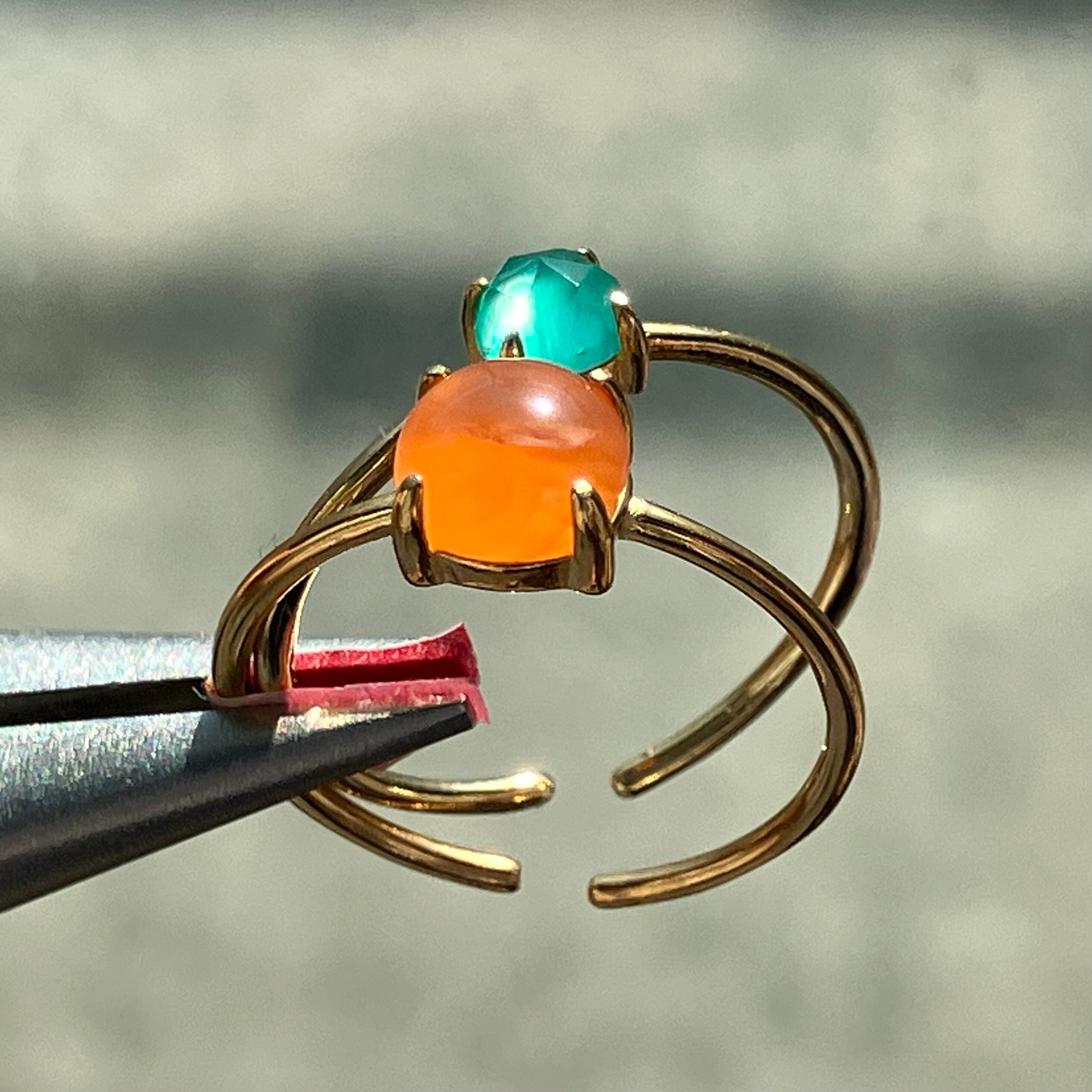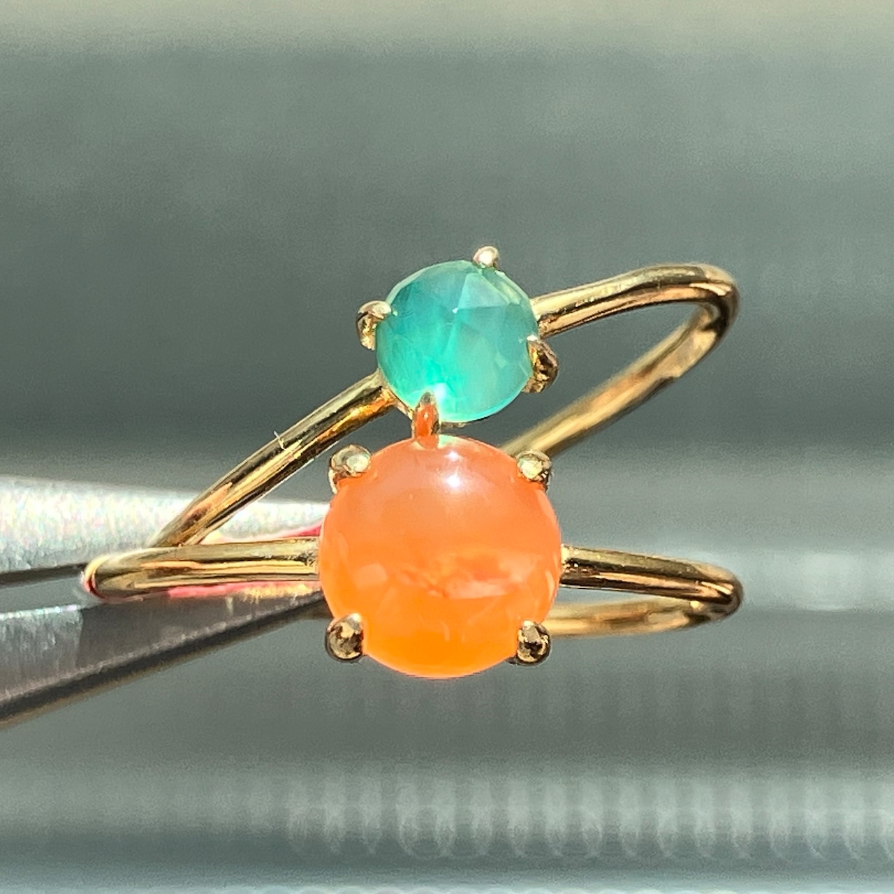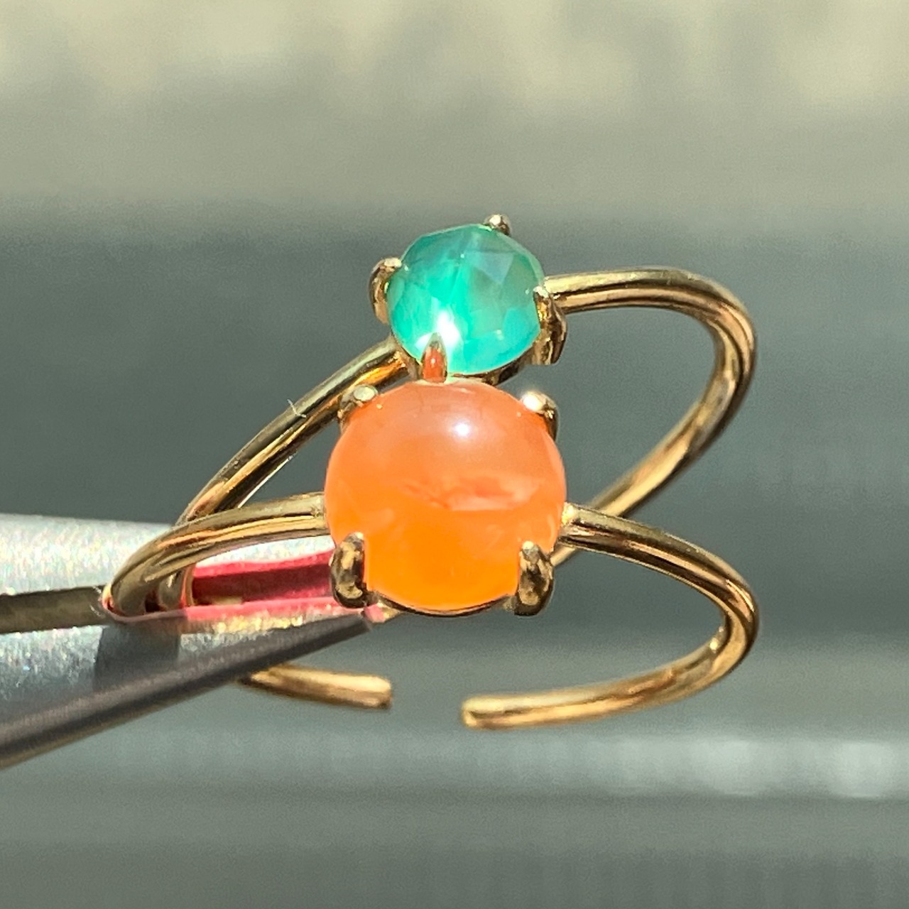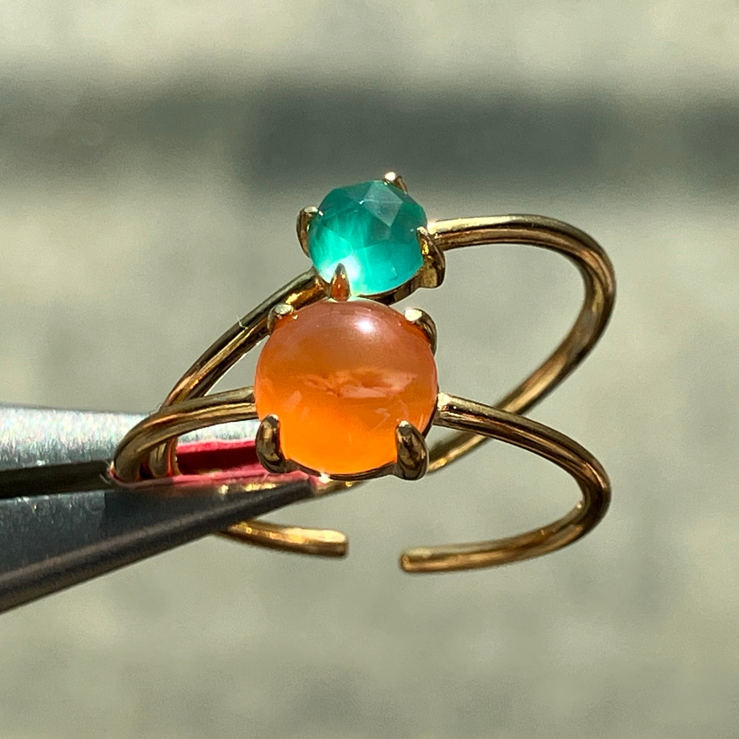 カーネリアンとグリーンオニキスのリングセットです。