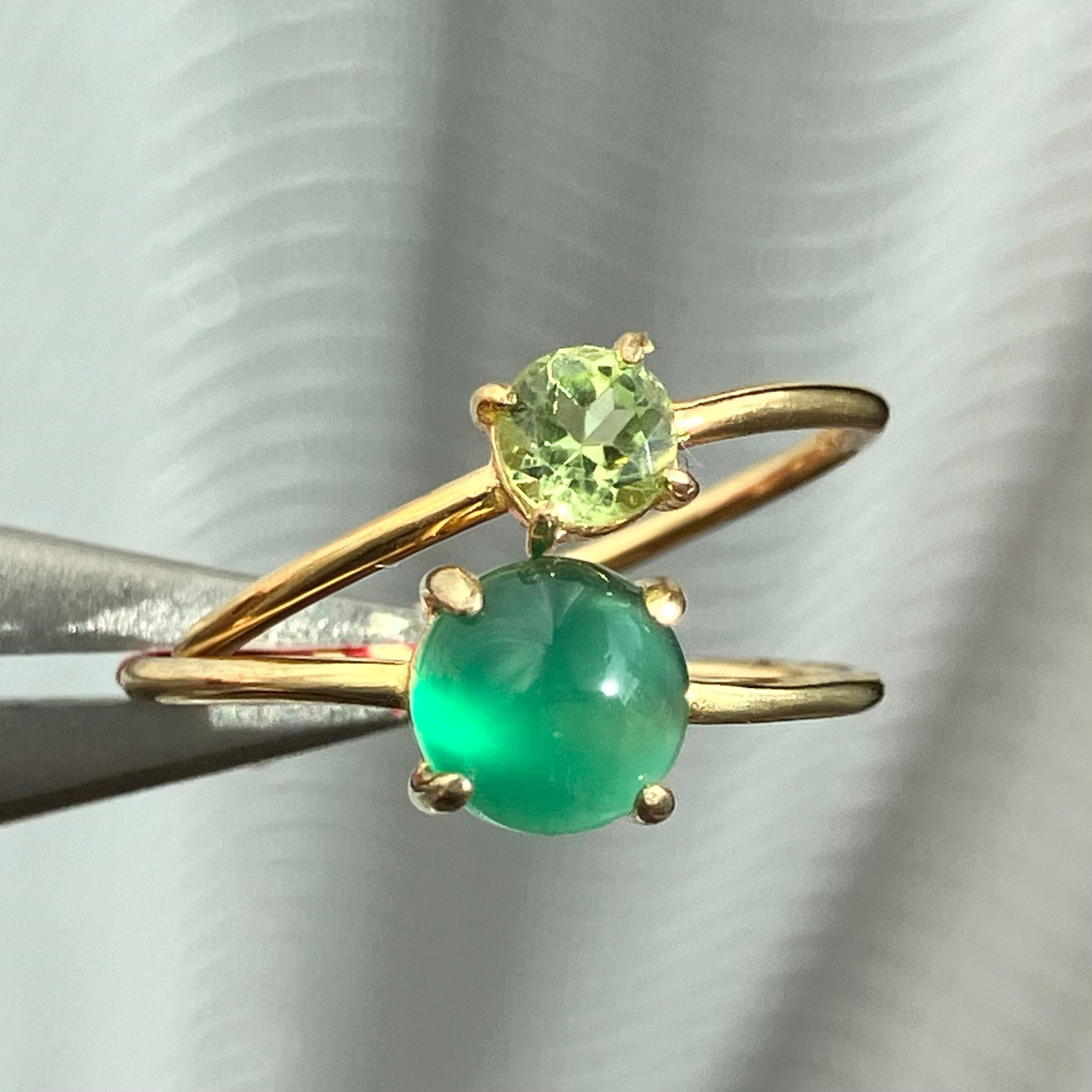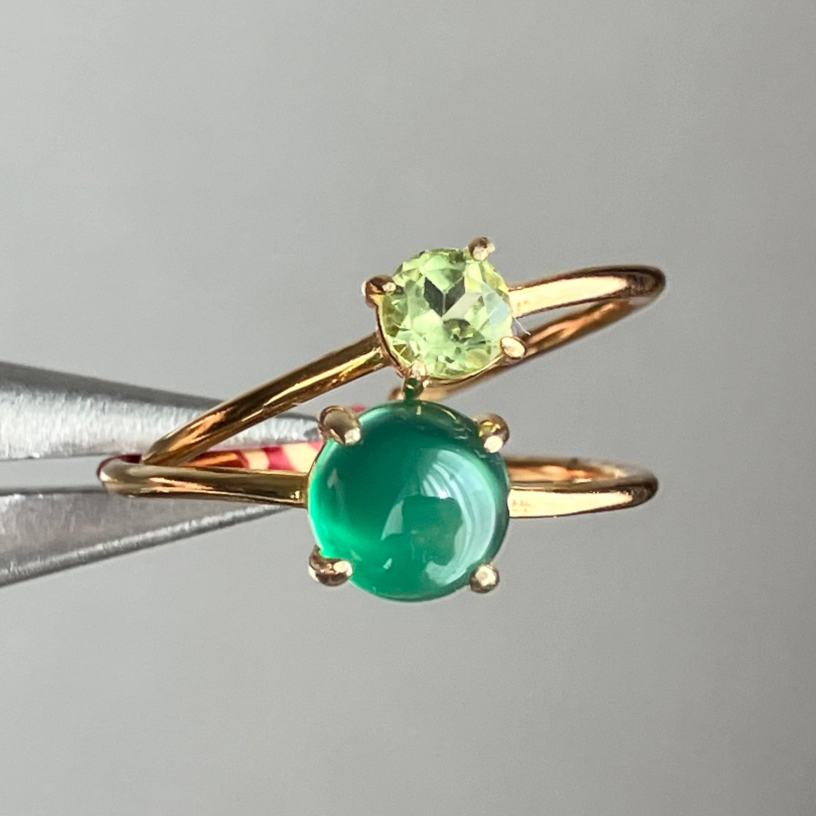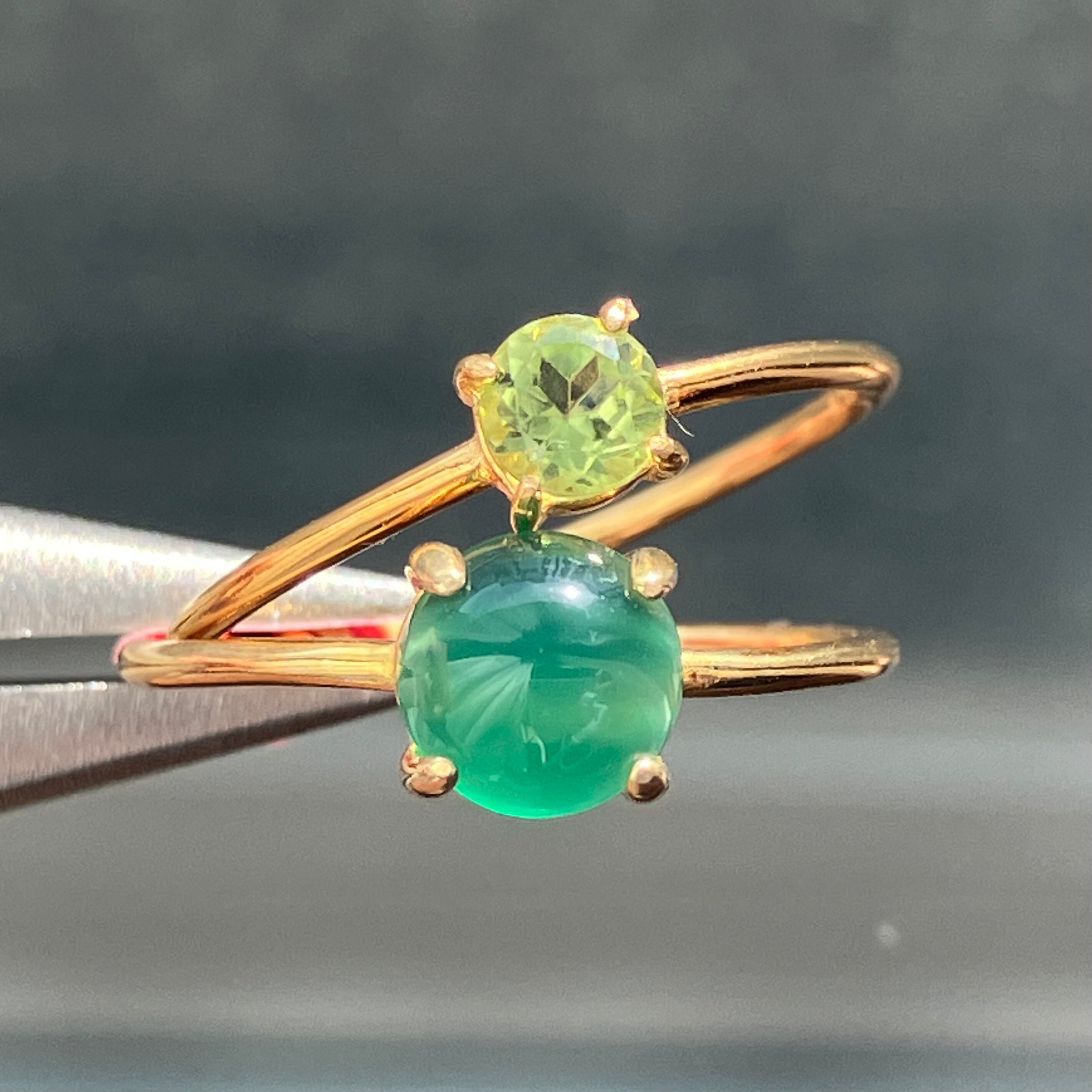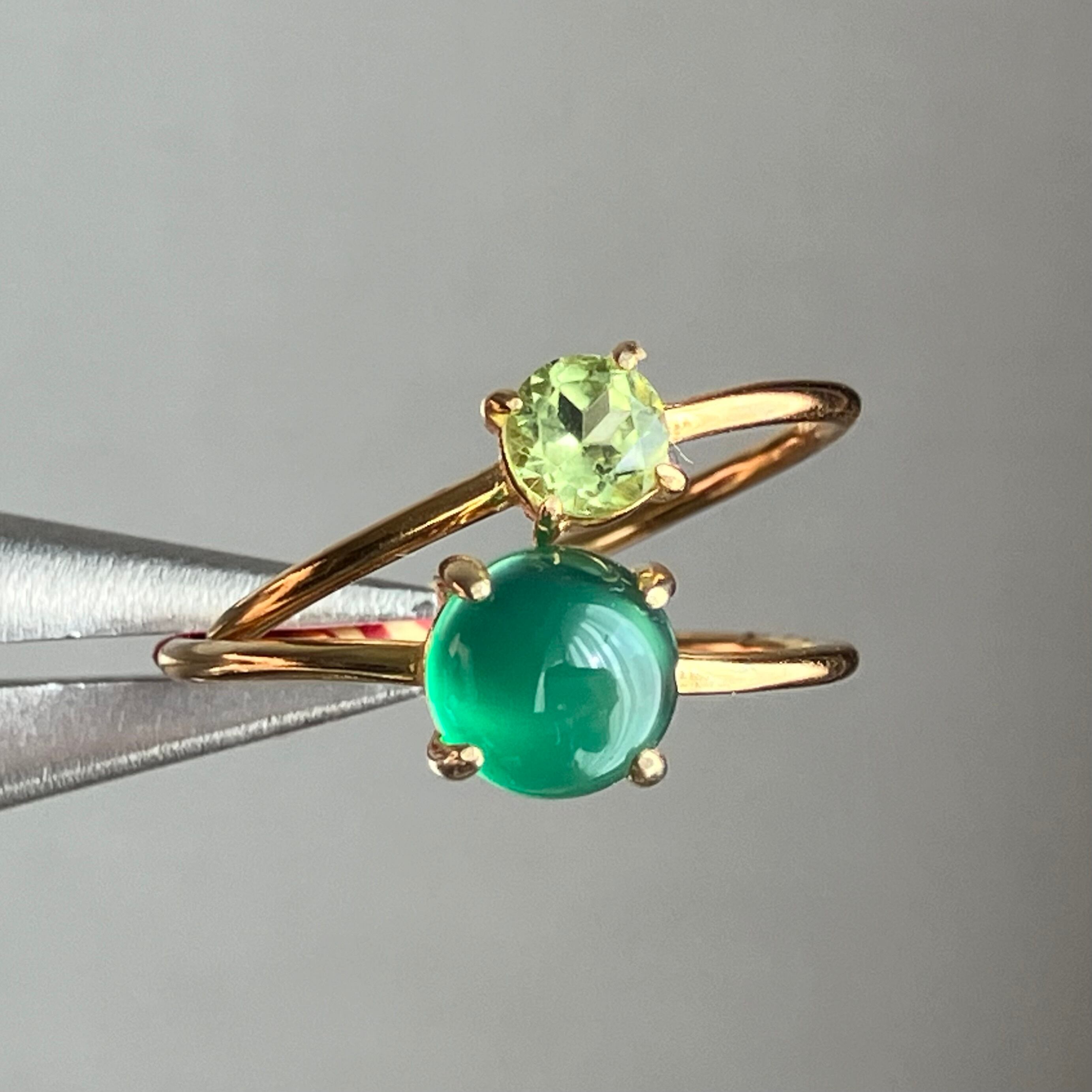 グリーンオニキスとペリドットのリングセットです。