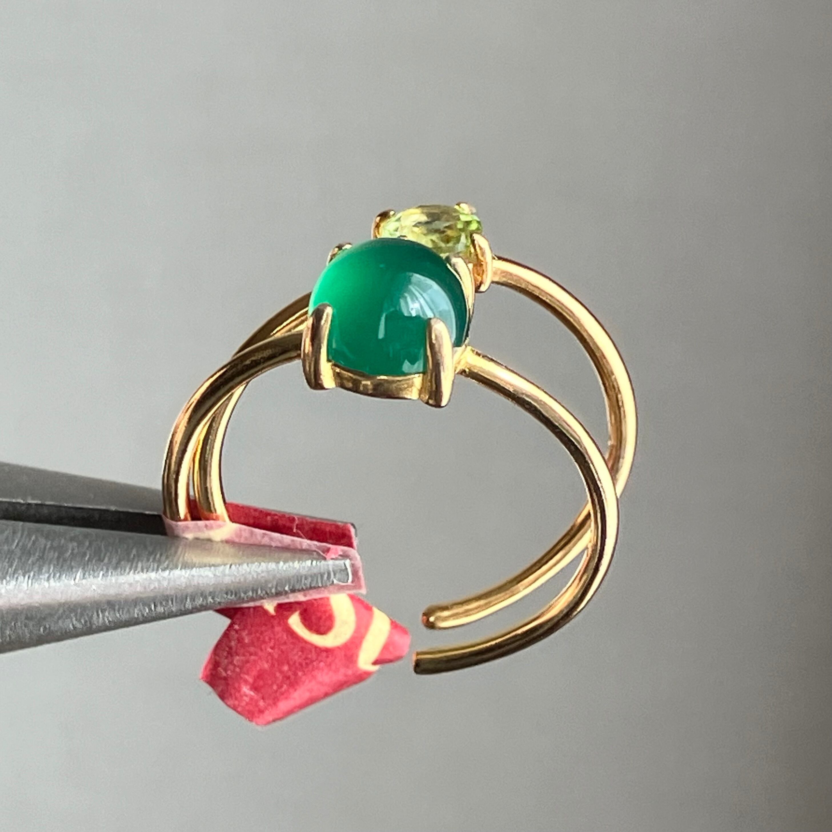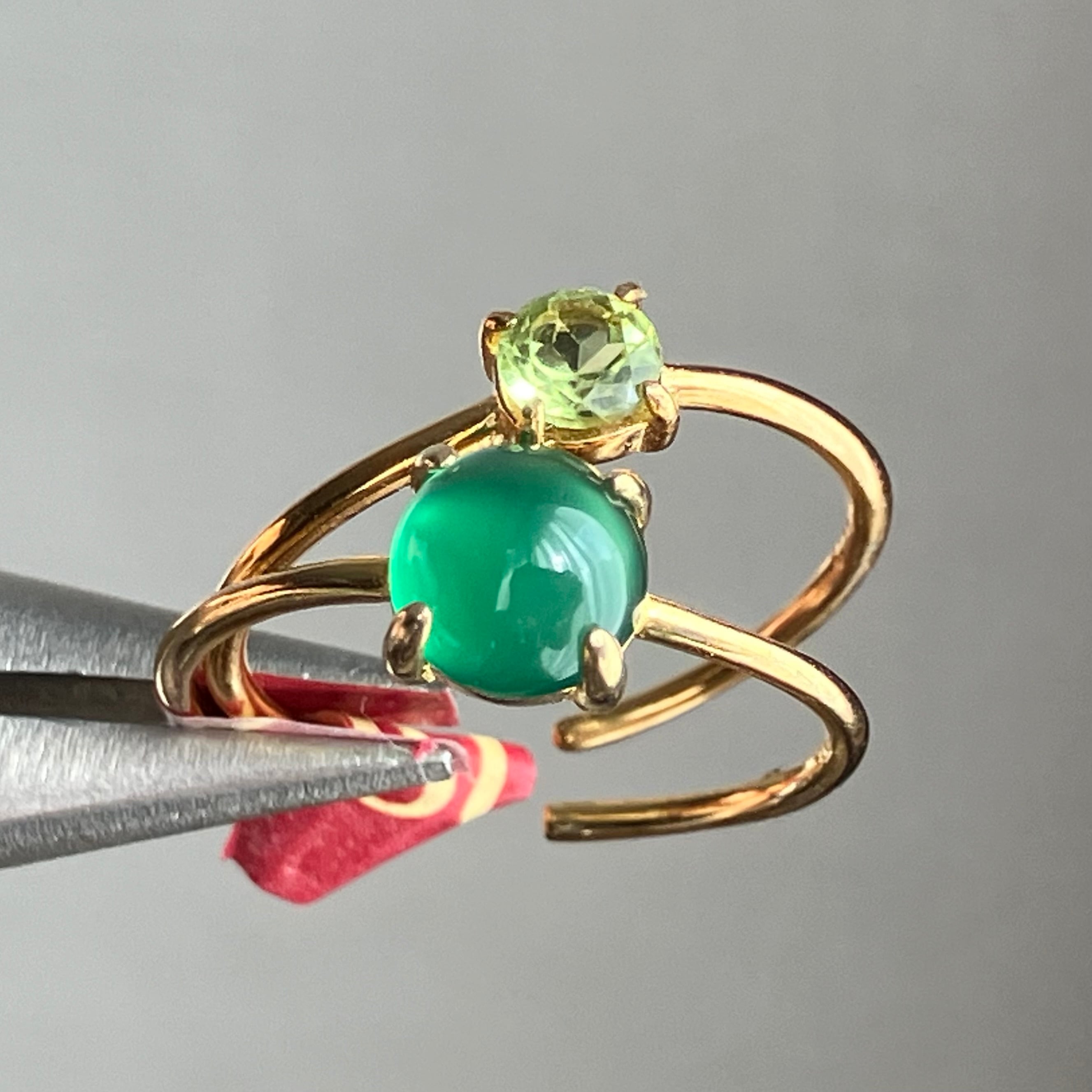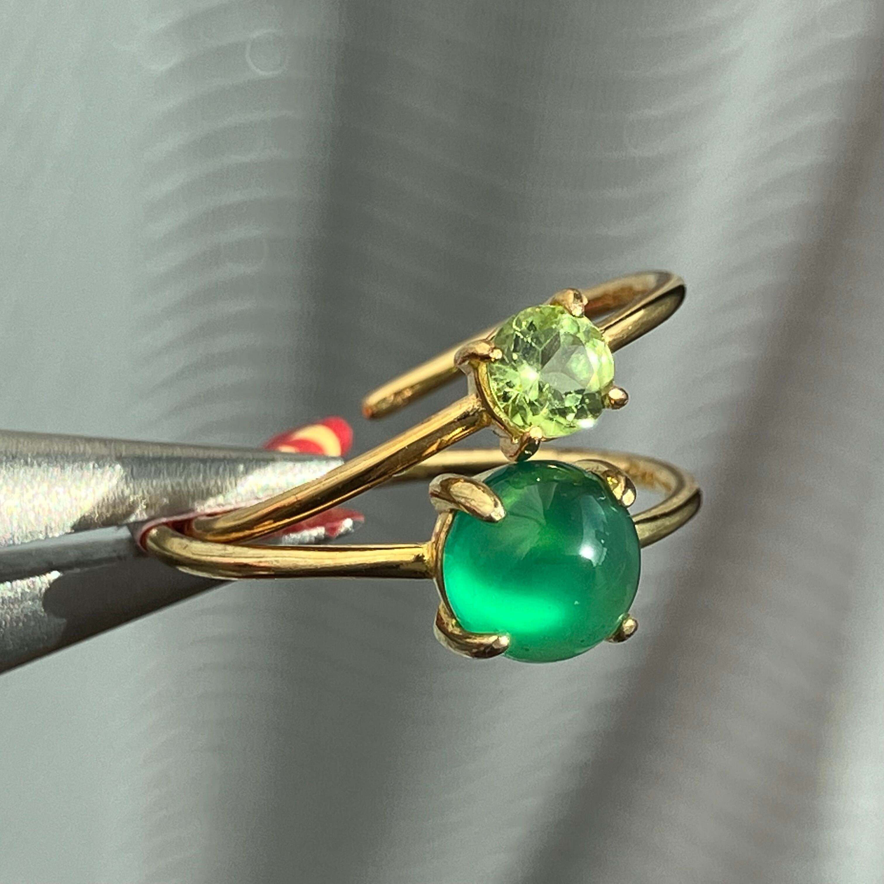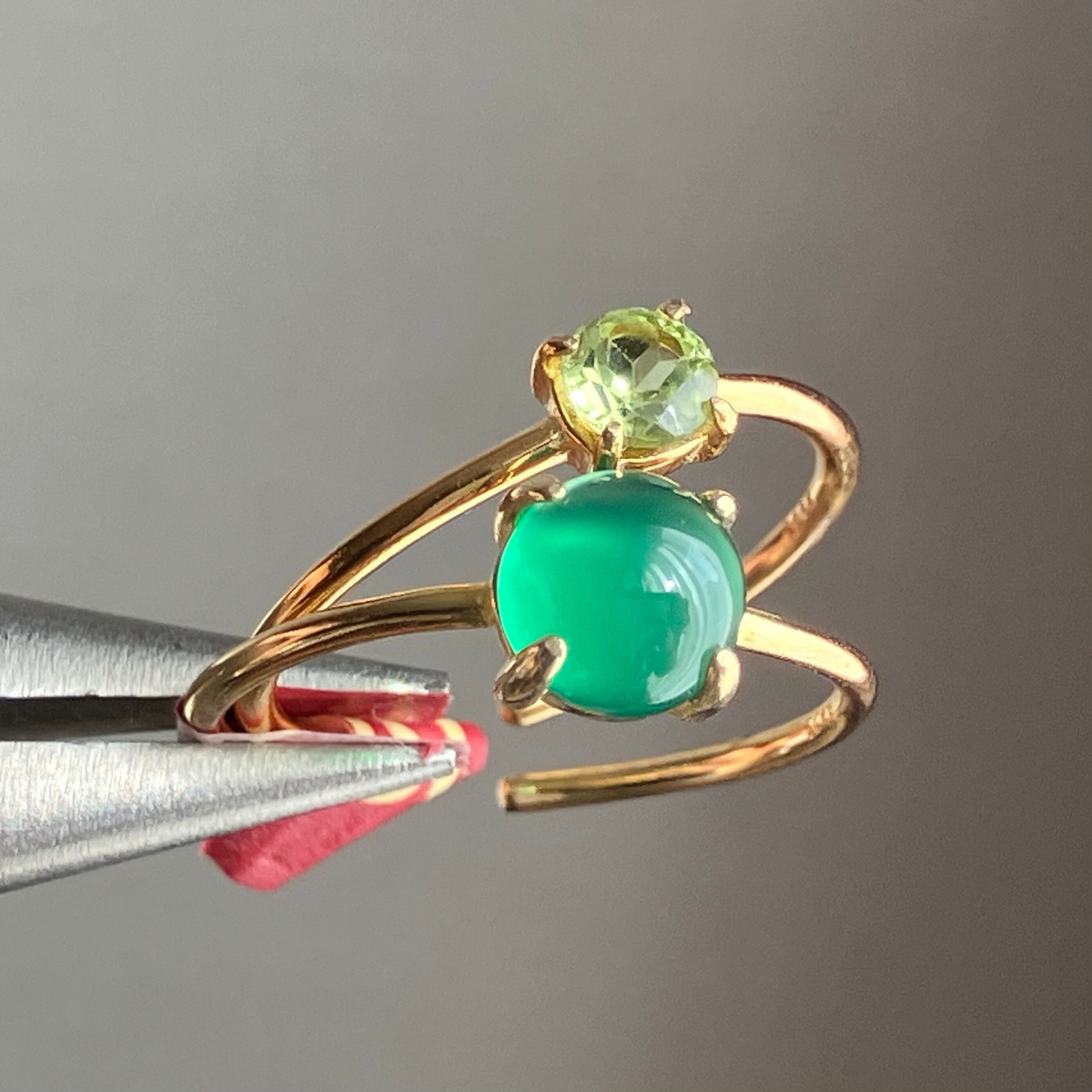 グリーンオニキスとペリドットのリングセットです。