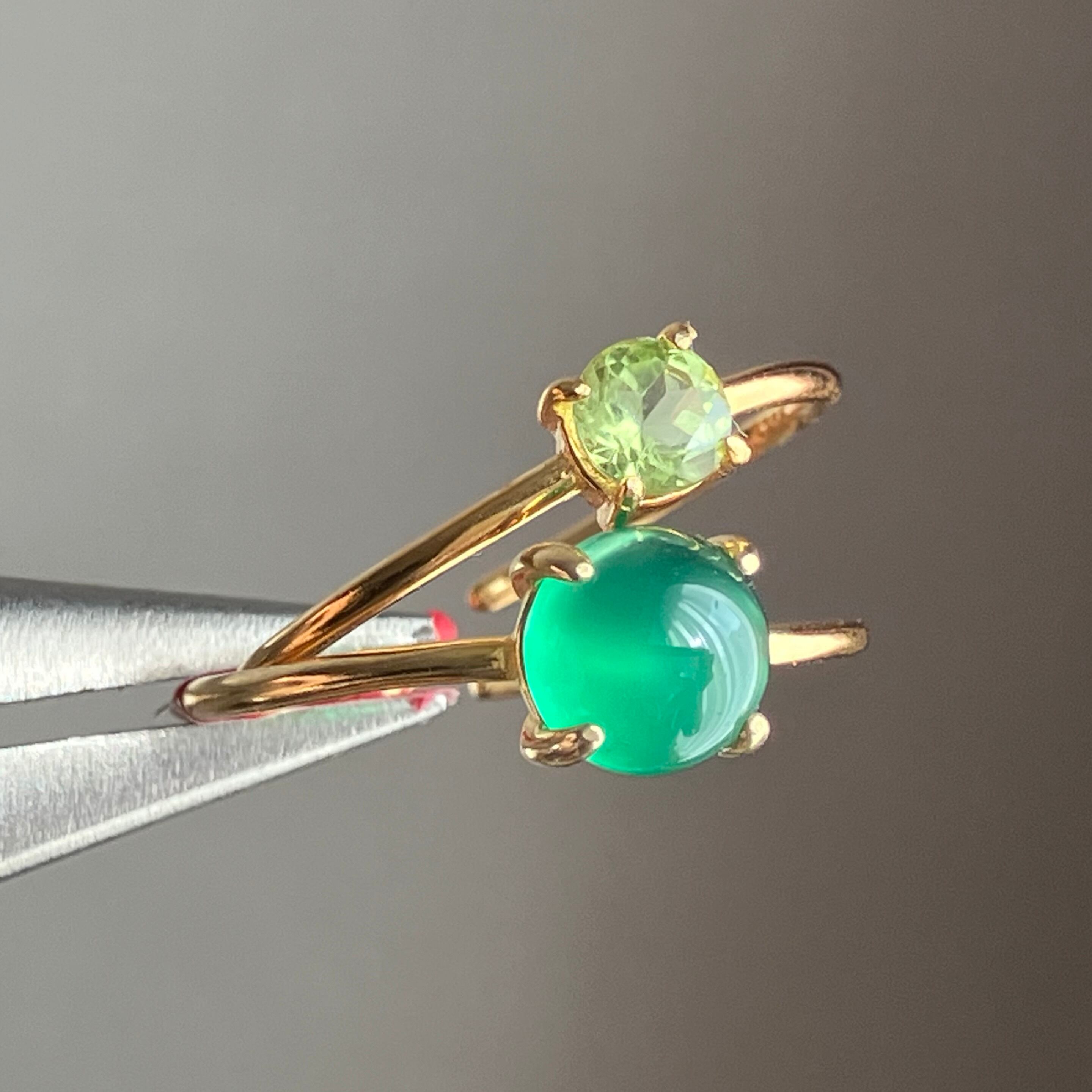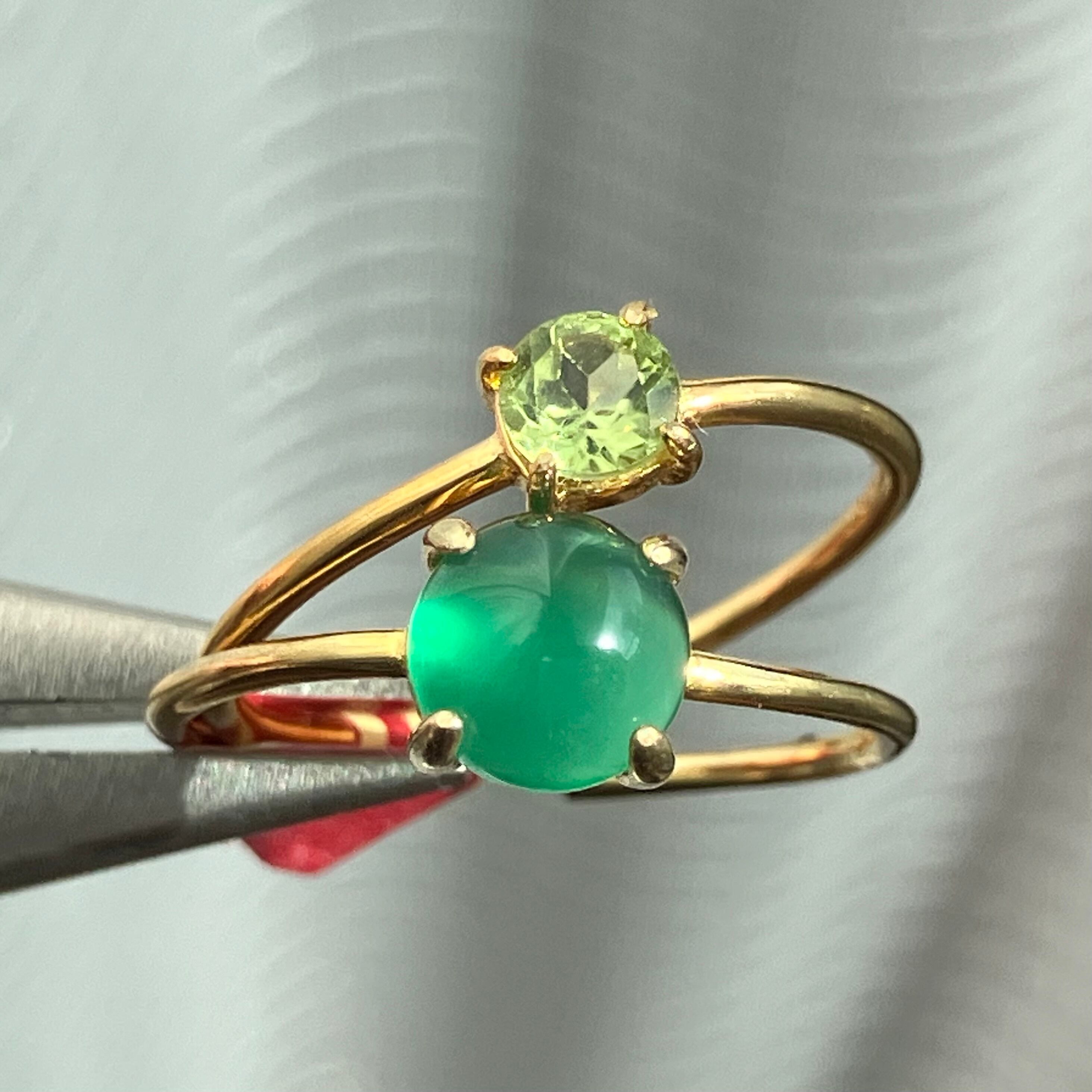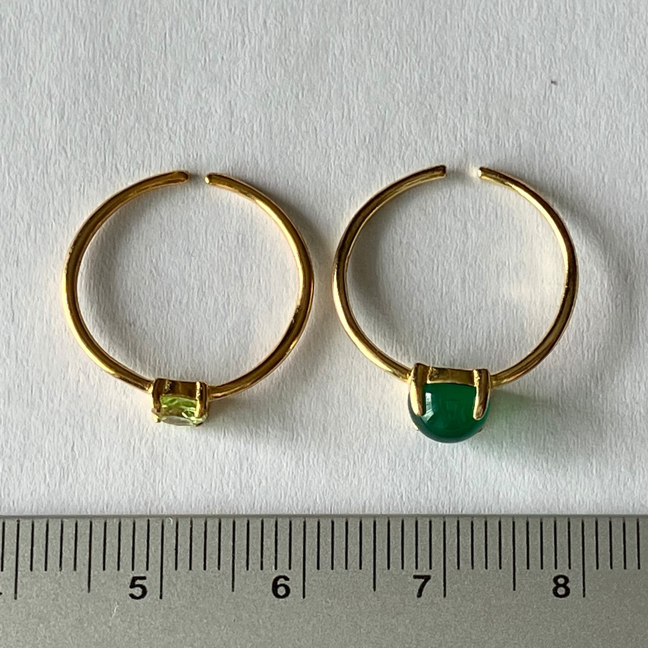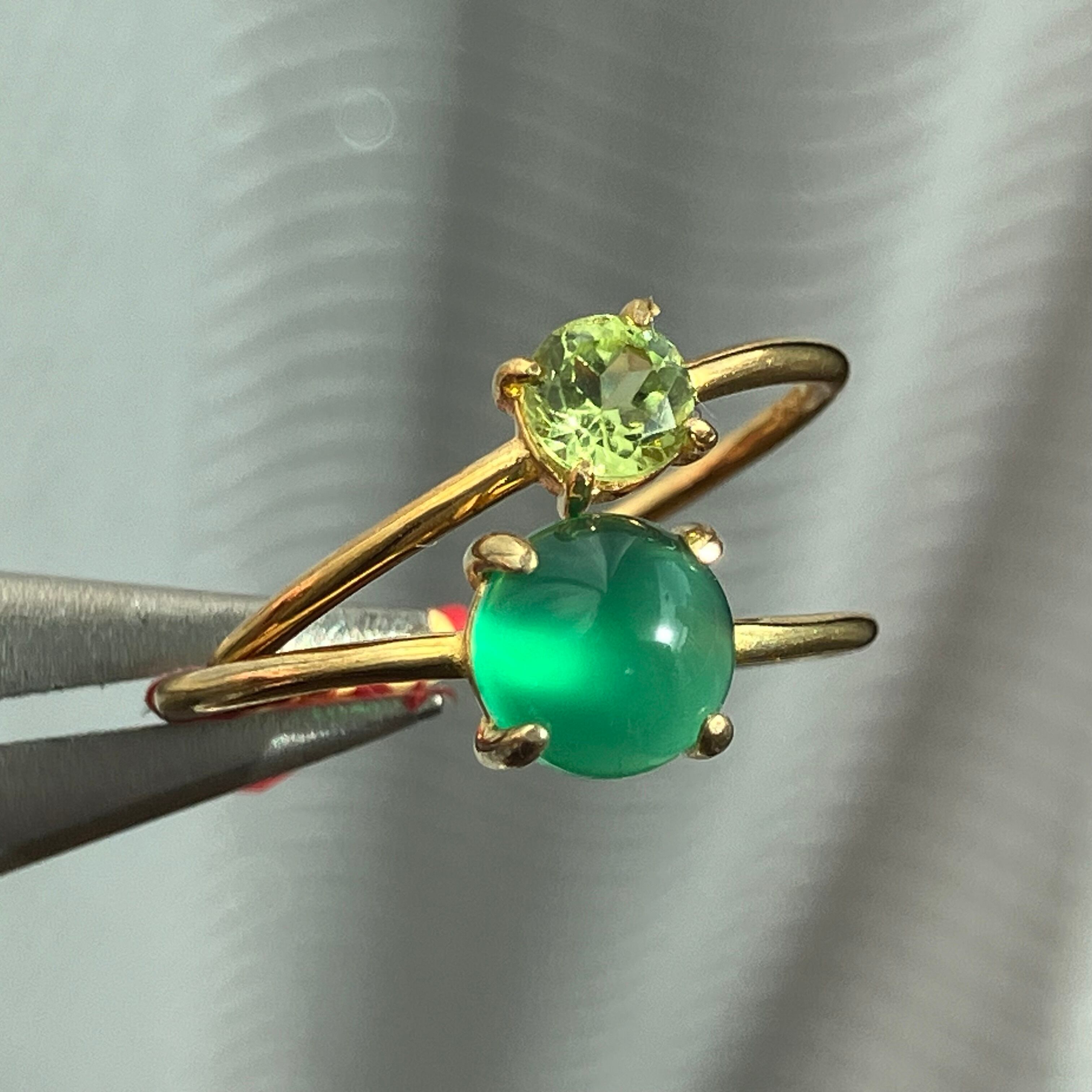 グリーンオニキスとペリドットのリングセットです。