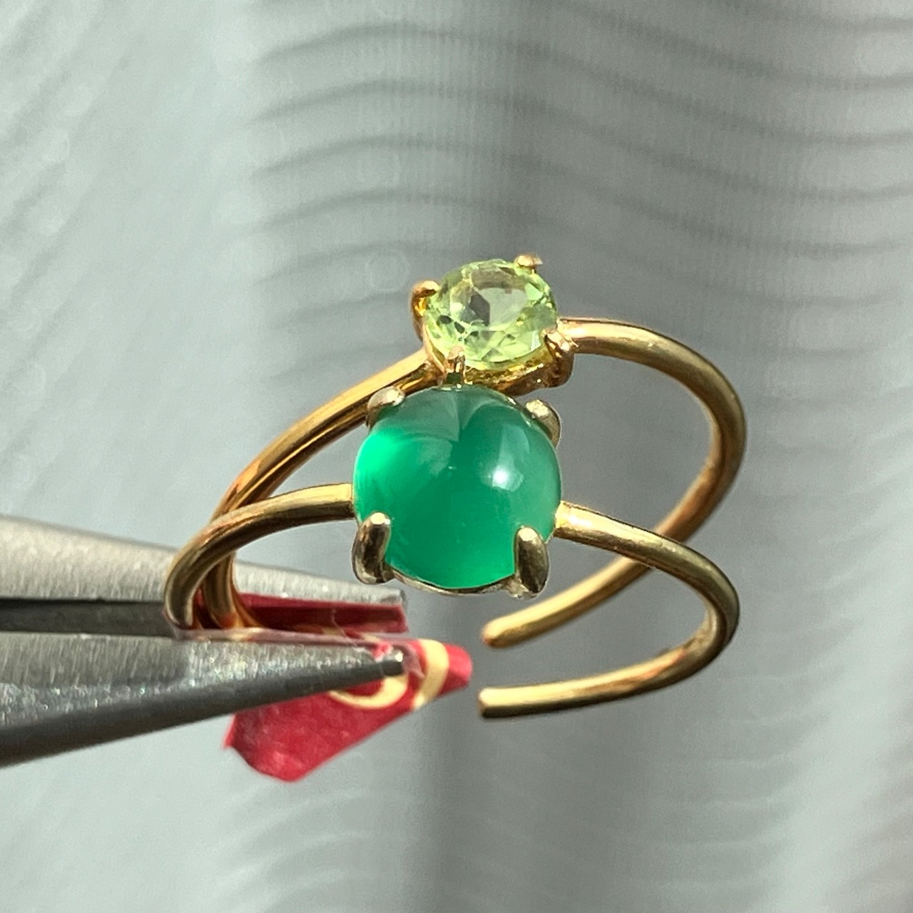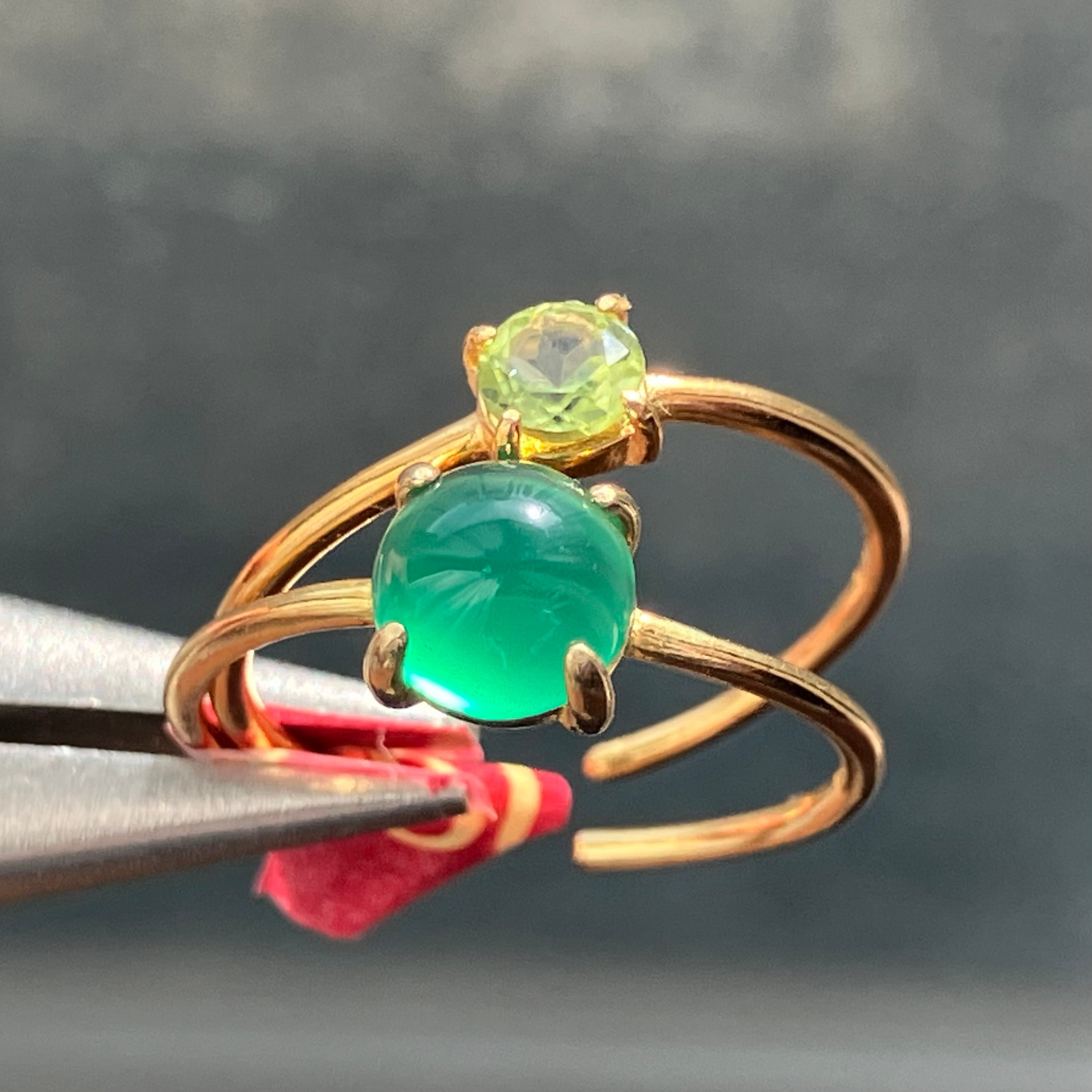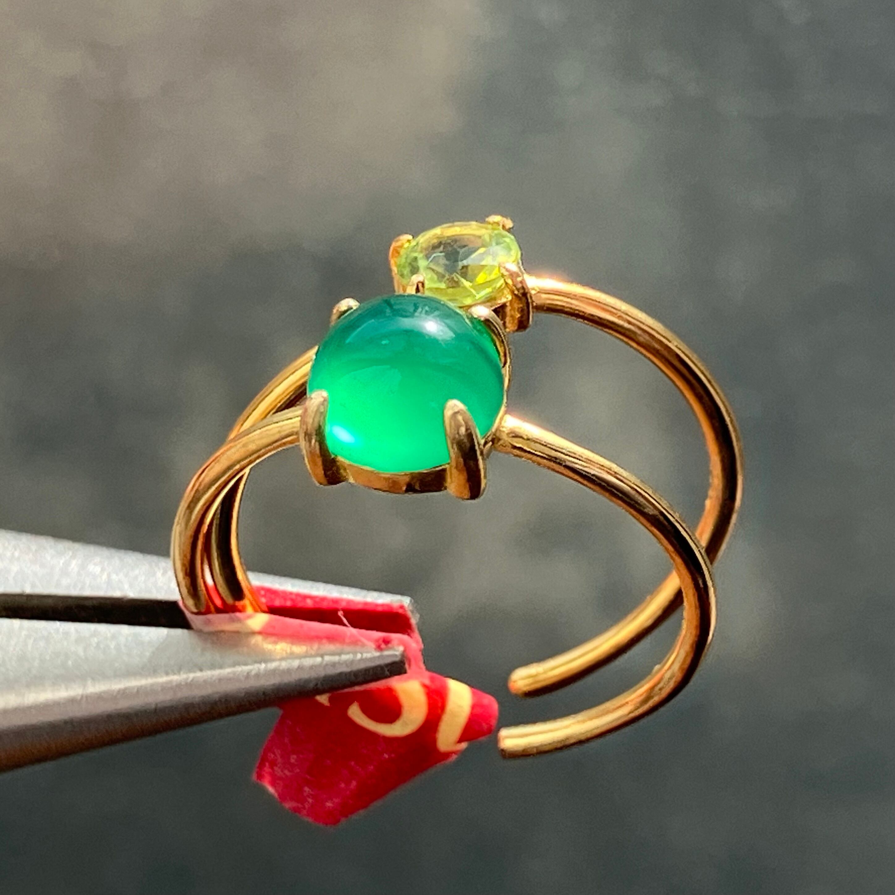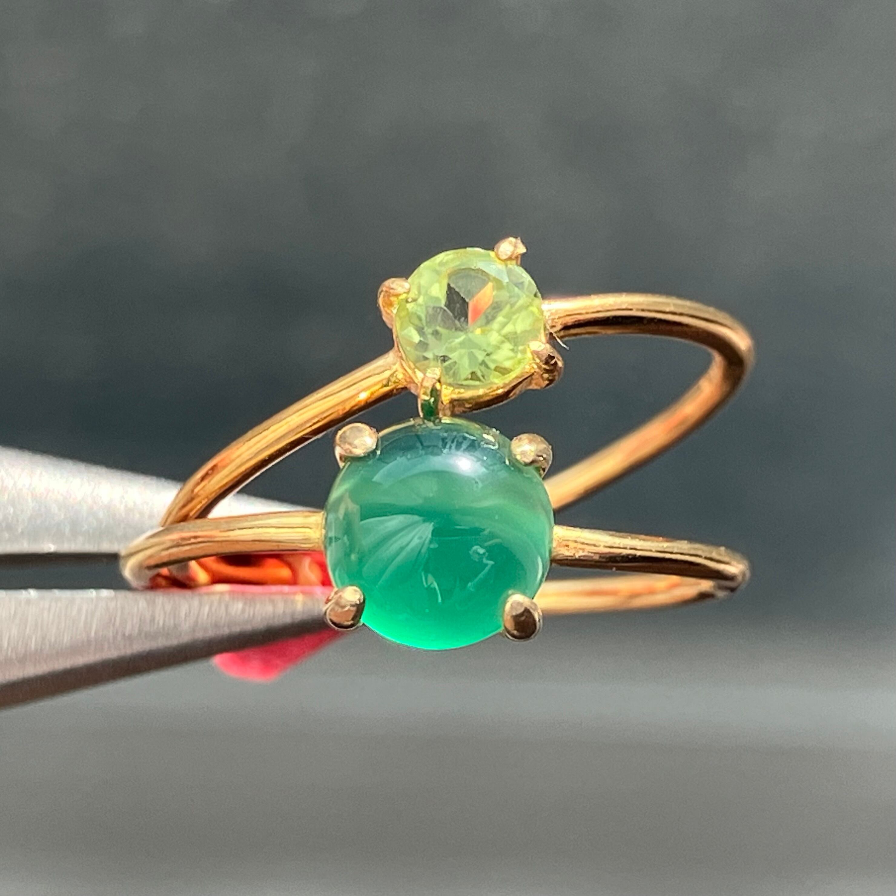 グリーンオニキスとペリドットのリングセットです。